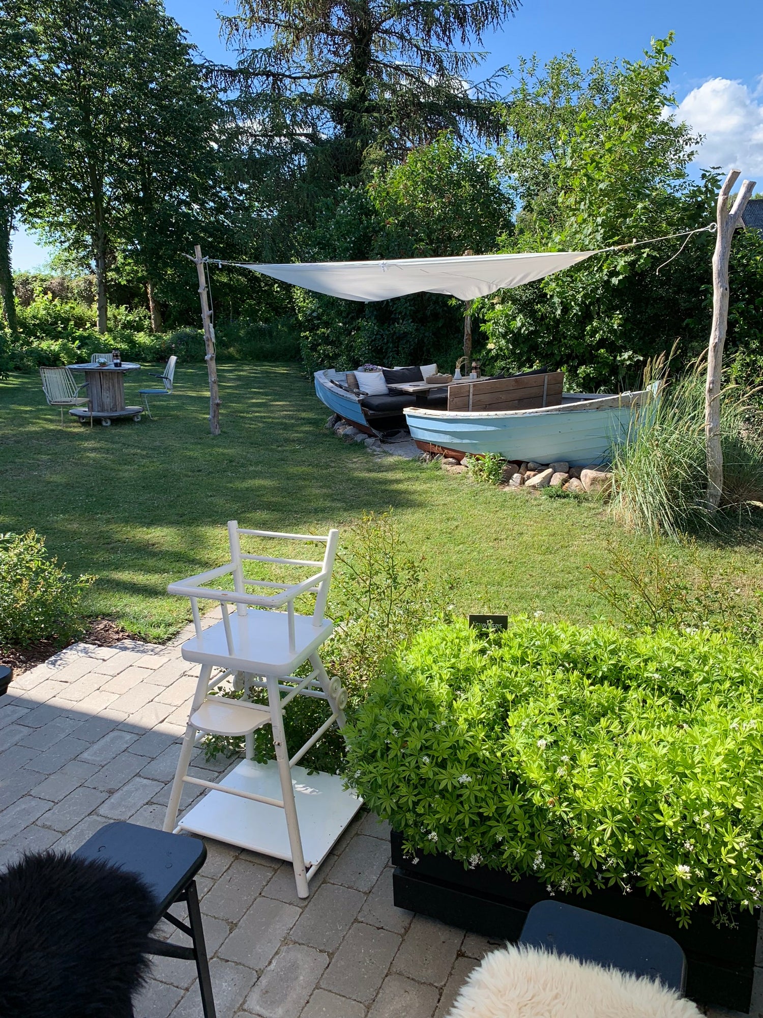På Fru Due har vi valt (under högsäsong) att utöka vår butik med en liten spirande i form av ett trädgårdscafé. Utbudet här är inte stort, å andra sidan är det ingen skillnad när det kommer till mys. Här har du möjlighet att sitta i vår roddbåt (det finns en gammal snogebækjolle) och njuta av en hembakad kaka tillsammans med lite gott kaffe, bryggt på handplockade och ekologiska bönor. Självklart har vi även gott te, läckra milkshakes eller varm choklad (gjord på den goda chokladen från Kjærstrup)