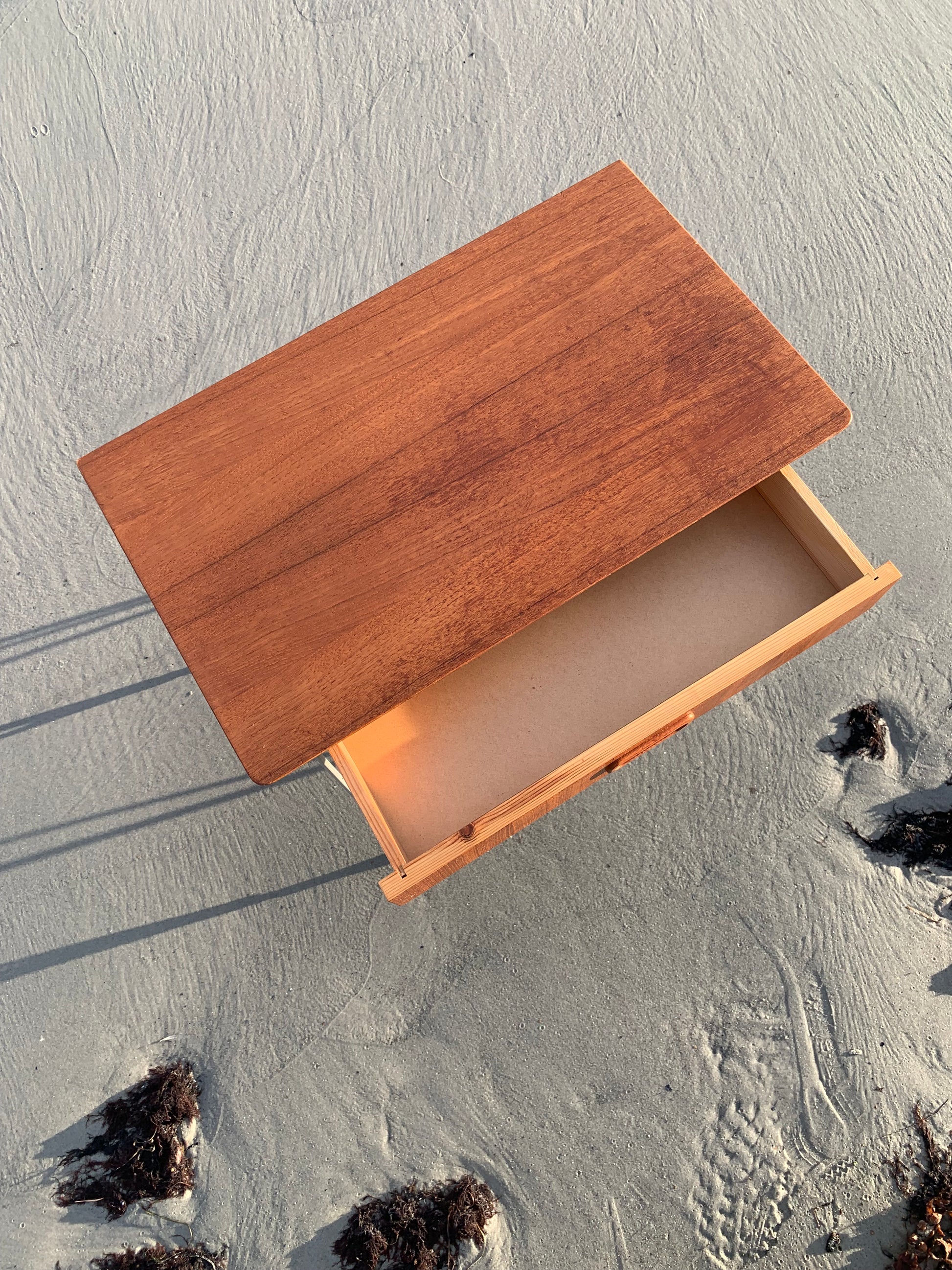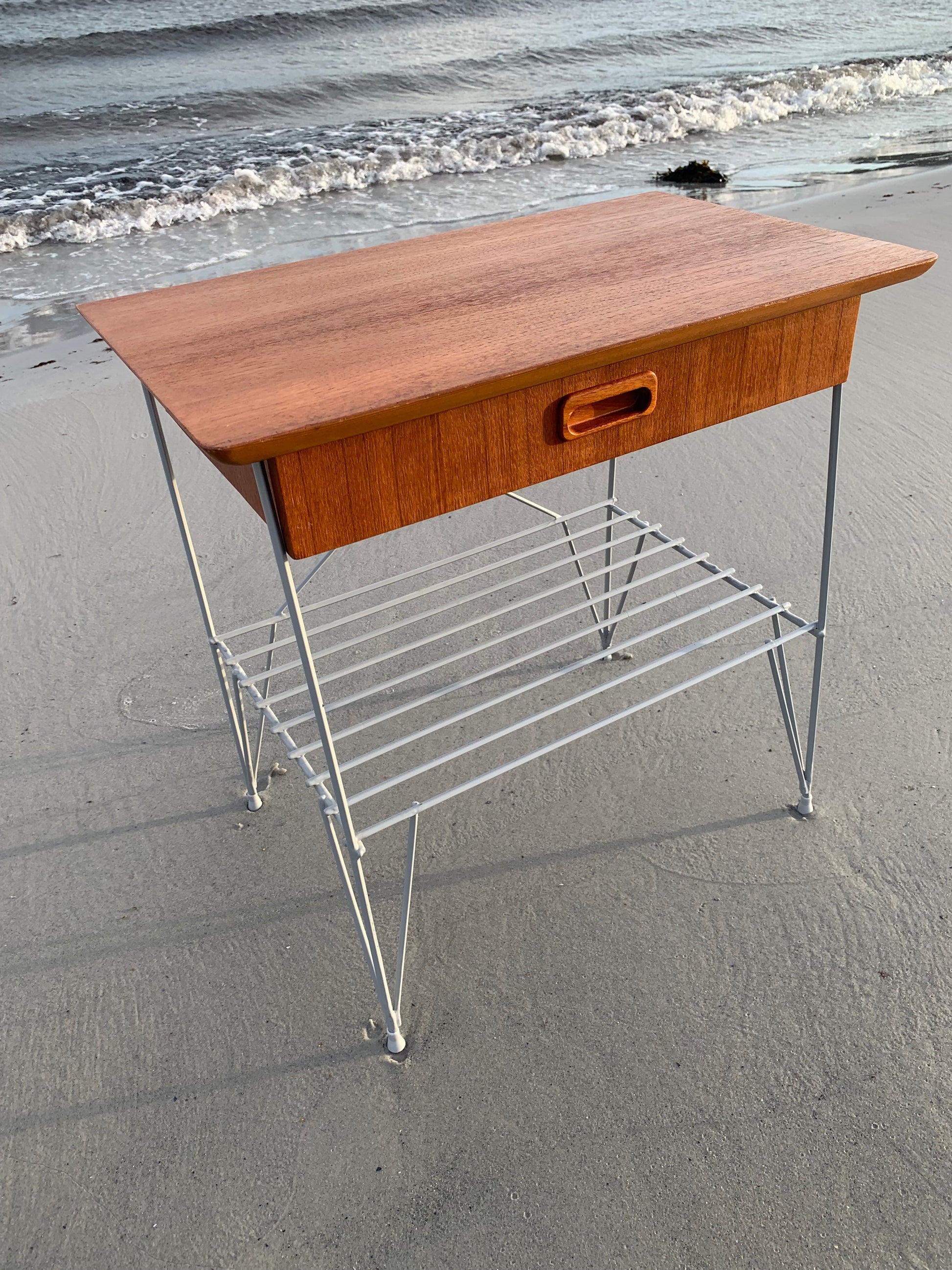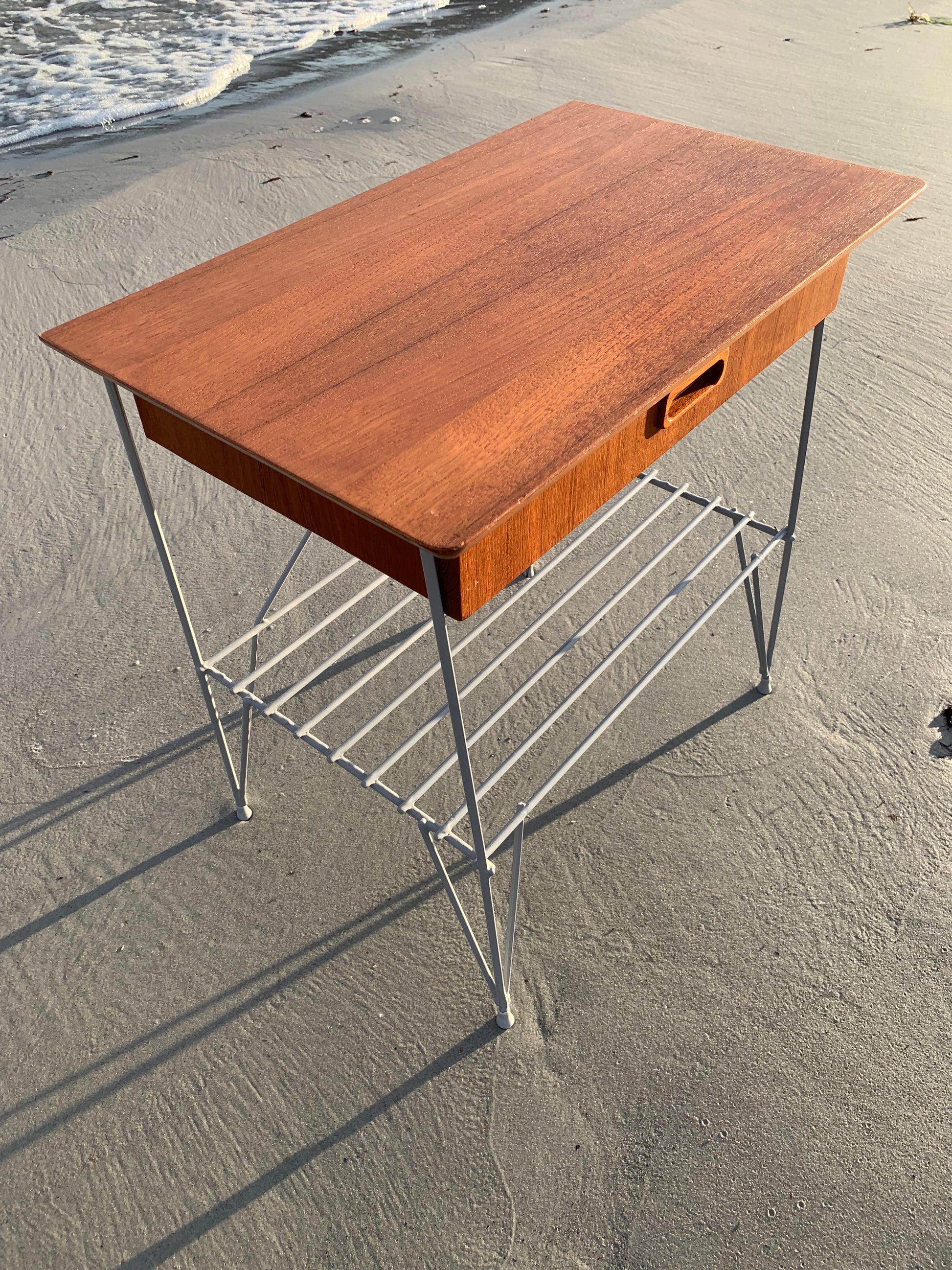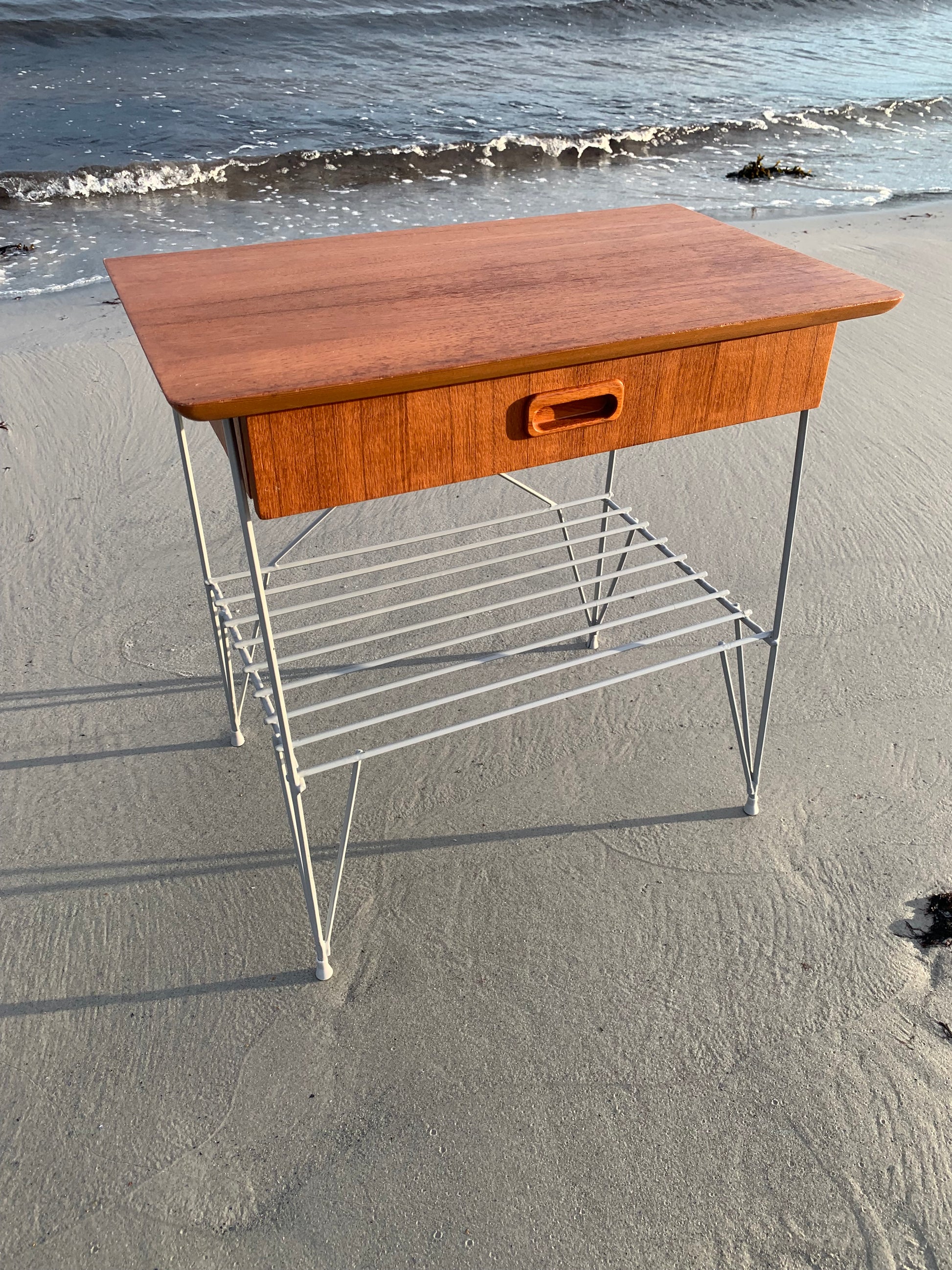 Fint litet bord med låda. Bordet har en fin lyster och vissa åldersrelaterade tecken på slitage, men överlag är det i riktigt fint vintageskick.