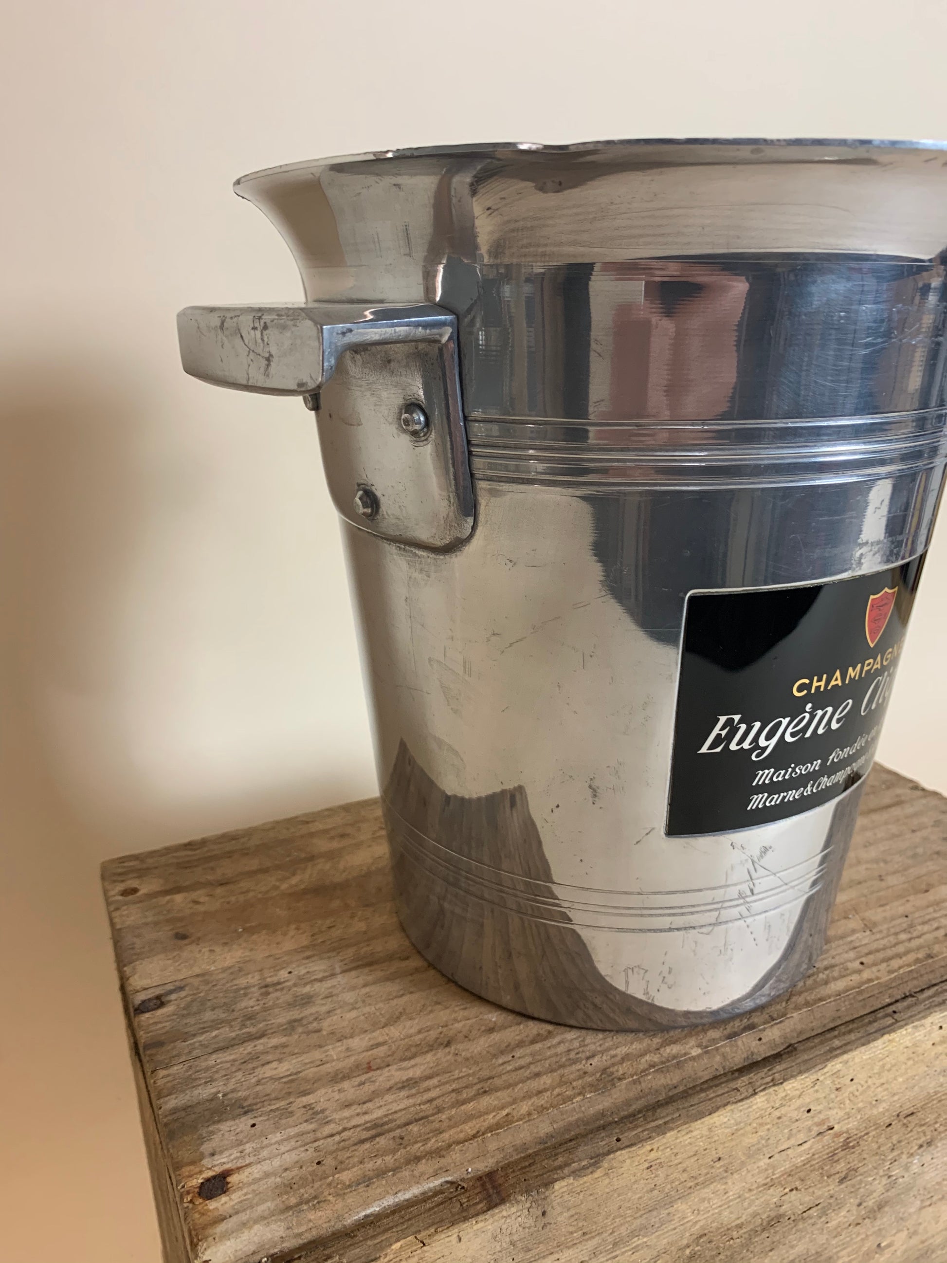Historia: Den klassiska versionen för att kyla champagne eller vin är en "hink" med vatten och is. "Hinken" är vanligtvis gjord av silver, tenn, rostfritt stål eller andra metaller.