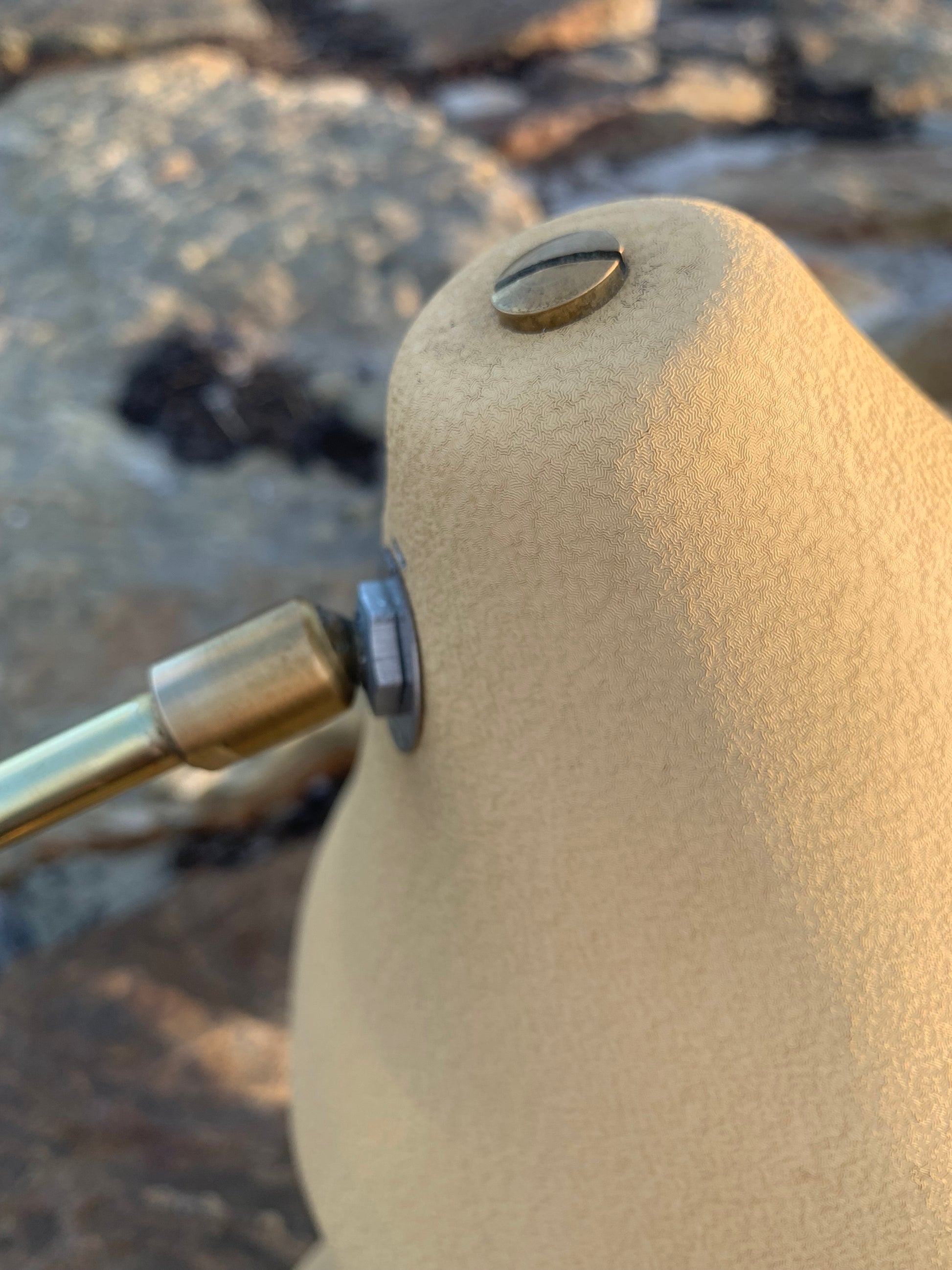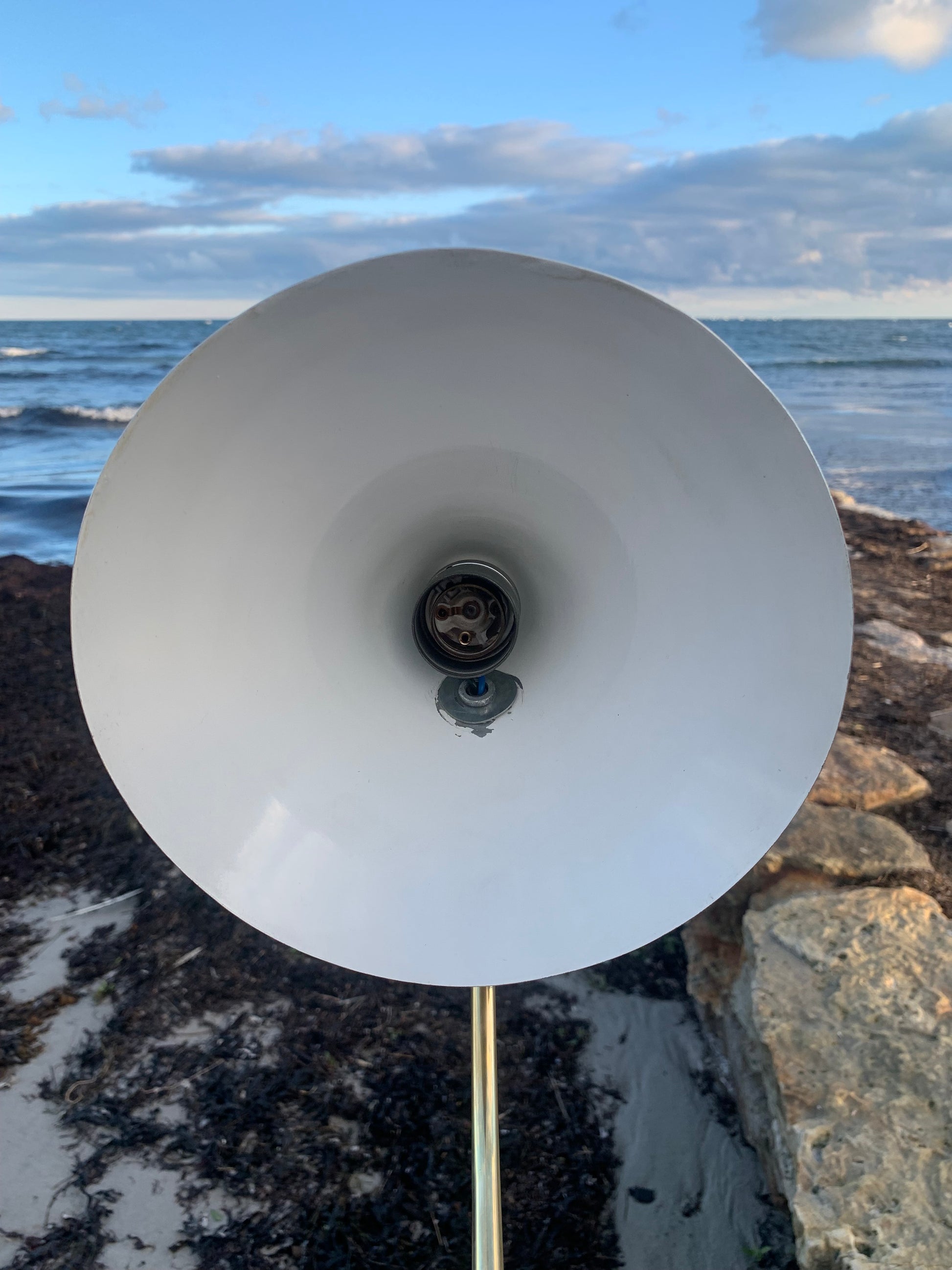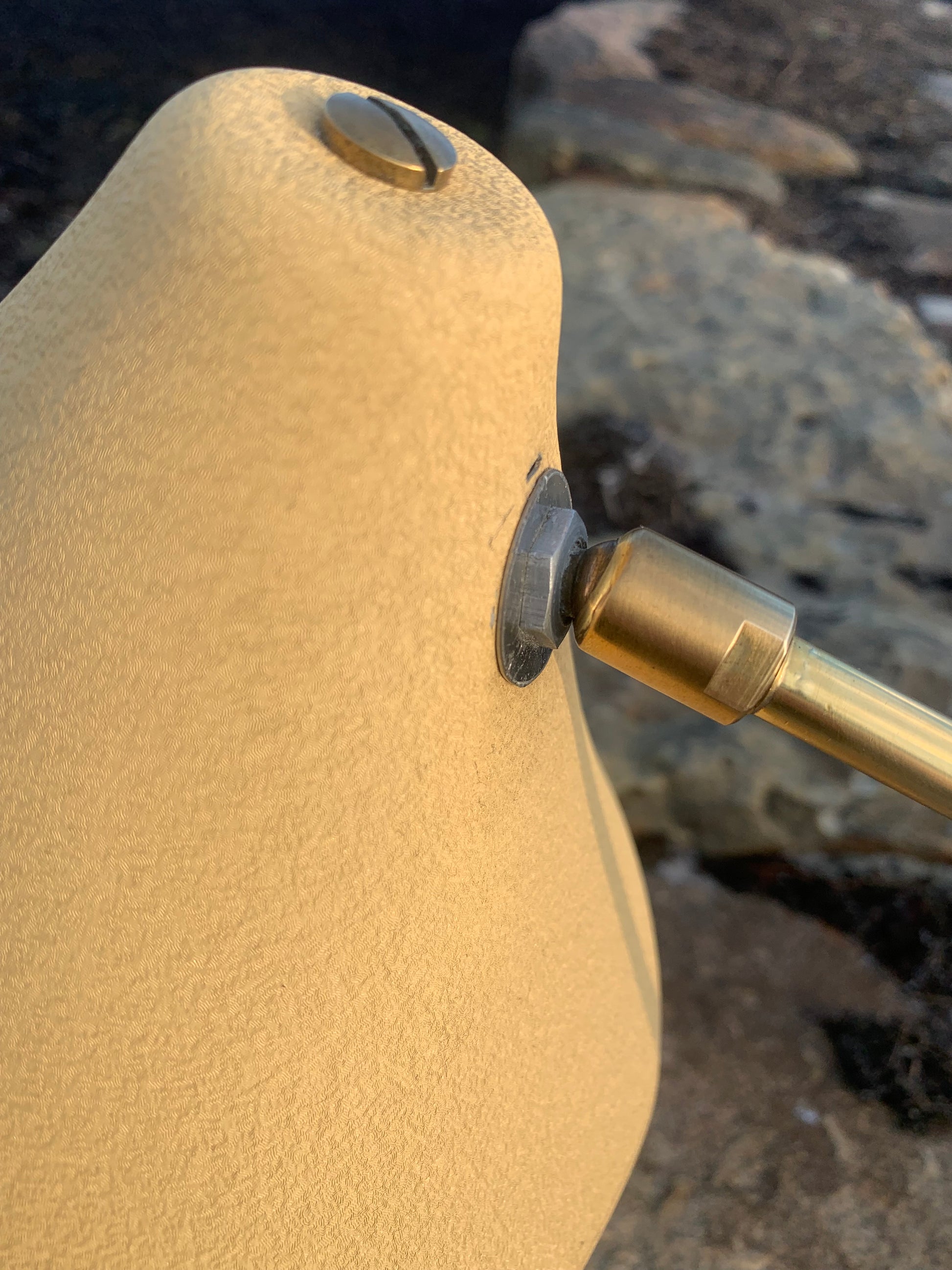 Fin vintagelampa från Cosack. Vintagelampan framstår som nykopplad och i originallack och har de åldersrelaterade tecken på slitage som en sådan lampa (enligt oss) bör ha.
