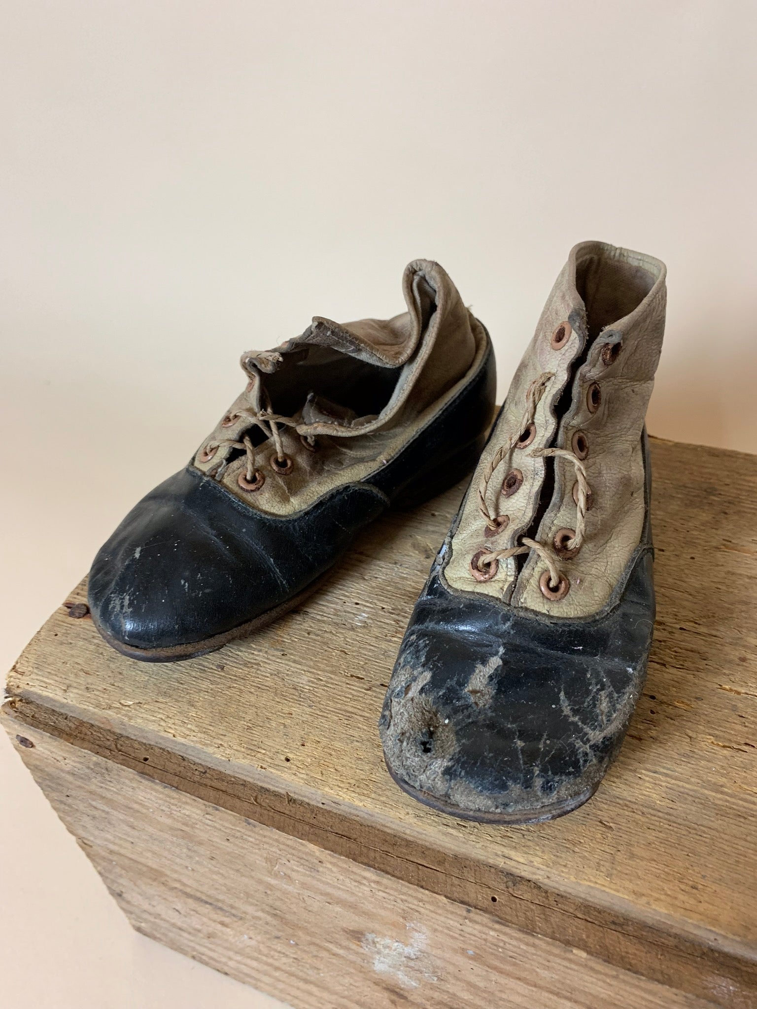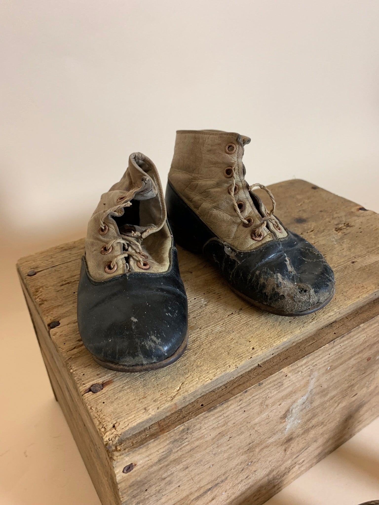 Historik: Detta fina exemplar hittades i en antikaffär i Sverige. Det är inte känt vem som har trampat på sina barnskor med dessa på. Men det var troligen ett barn i Sverige där de hittades.