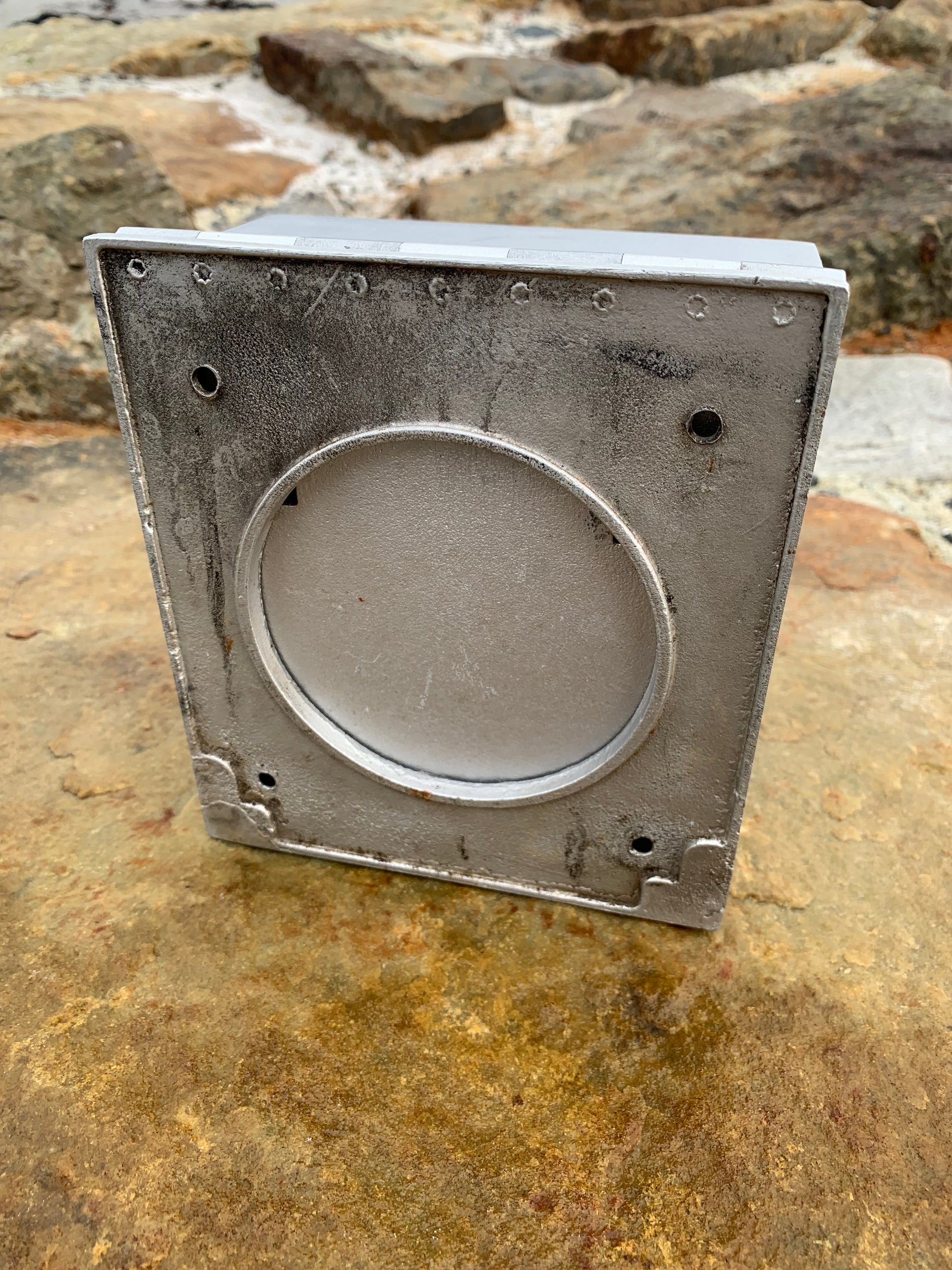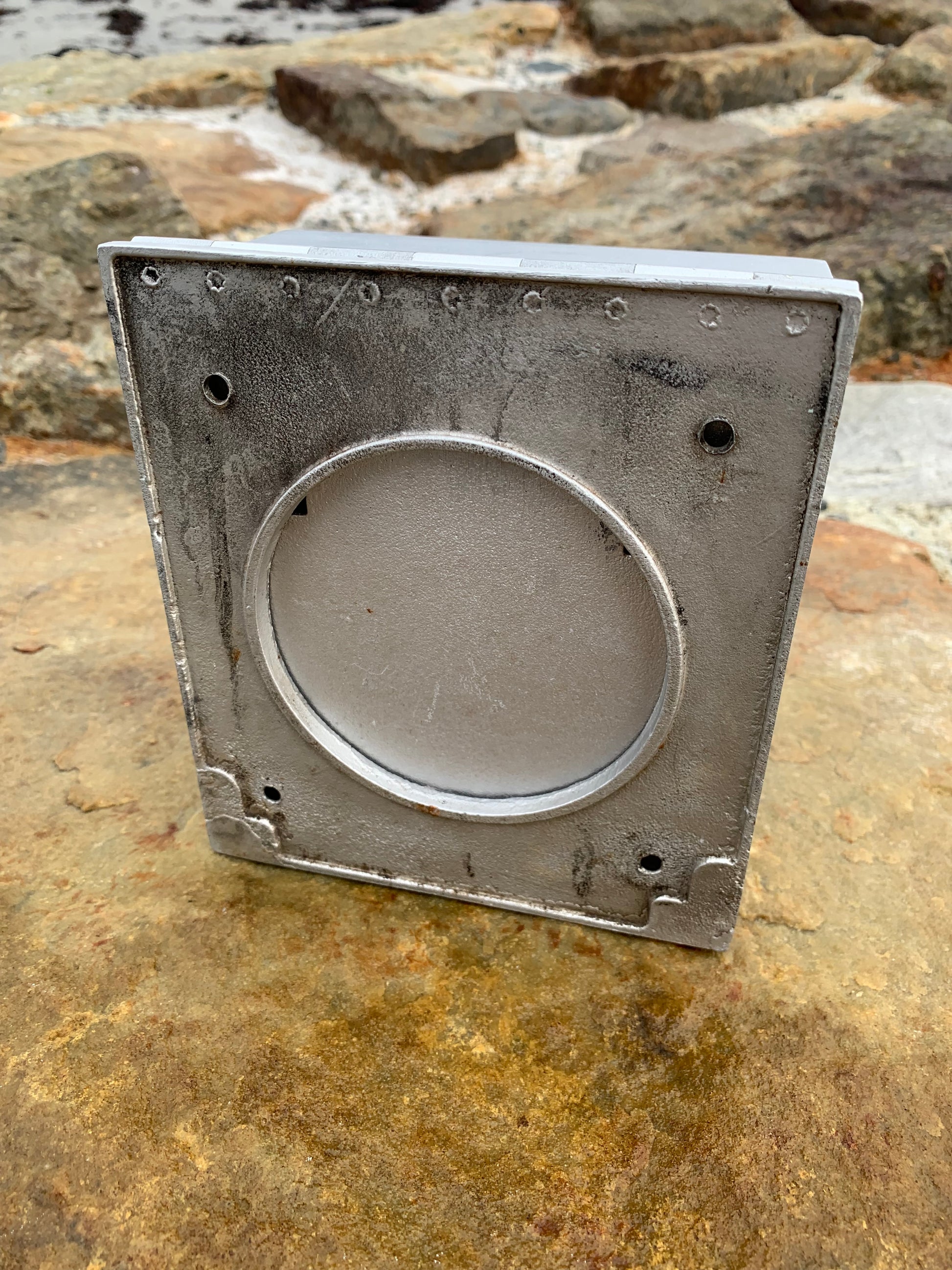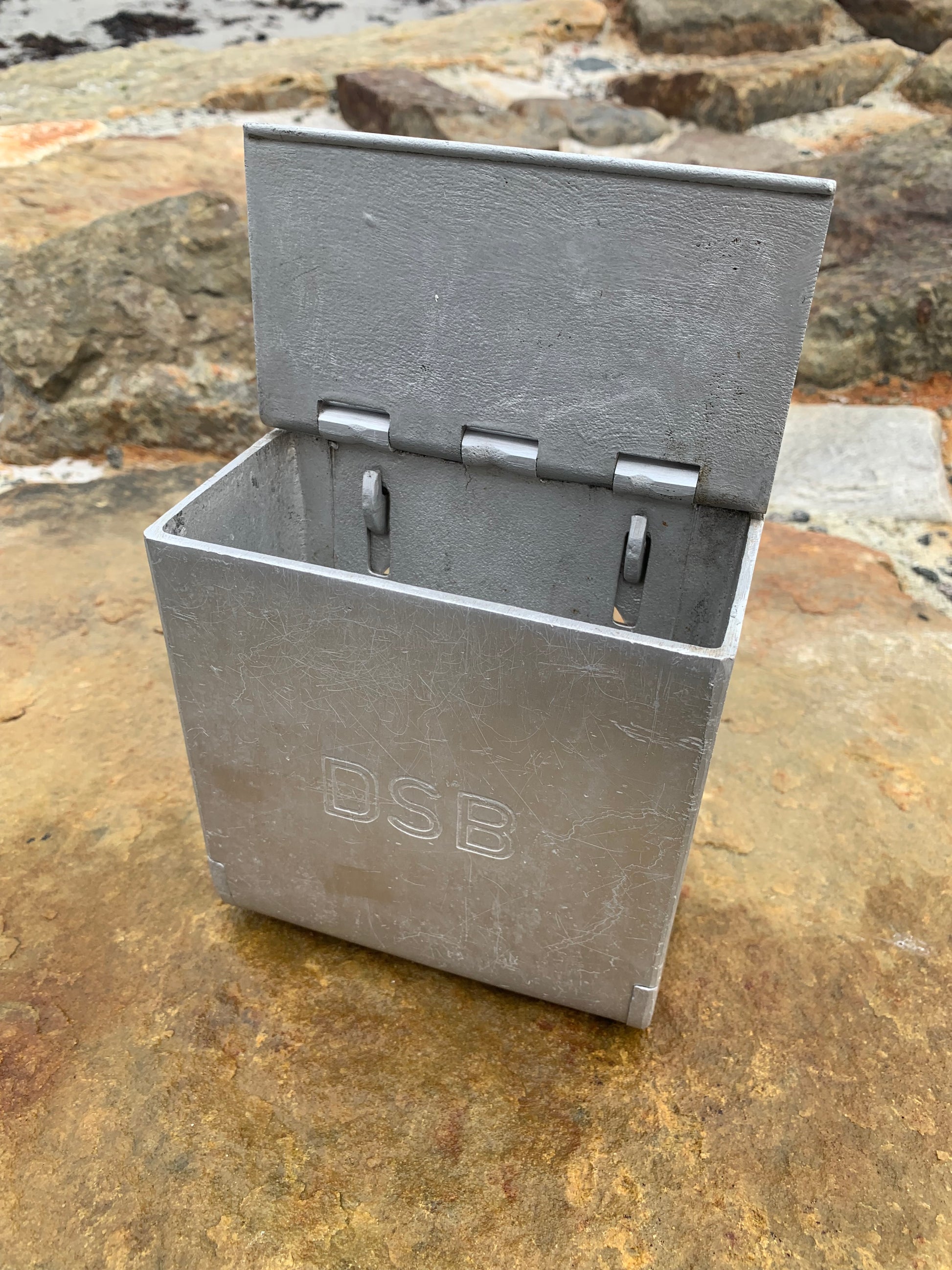 Superrolig (men kanske inte så politiskt korrekt) askkopp, från den tiden då rökning var tillåtet på tåg. Idag kan den monteras som en utomhusaskkopp. Den har massor av själ och historia. Askkoppen har åldersrelaterade tecken på slitage.