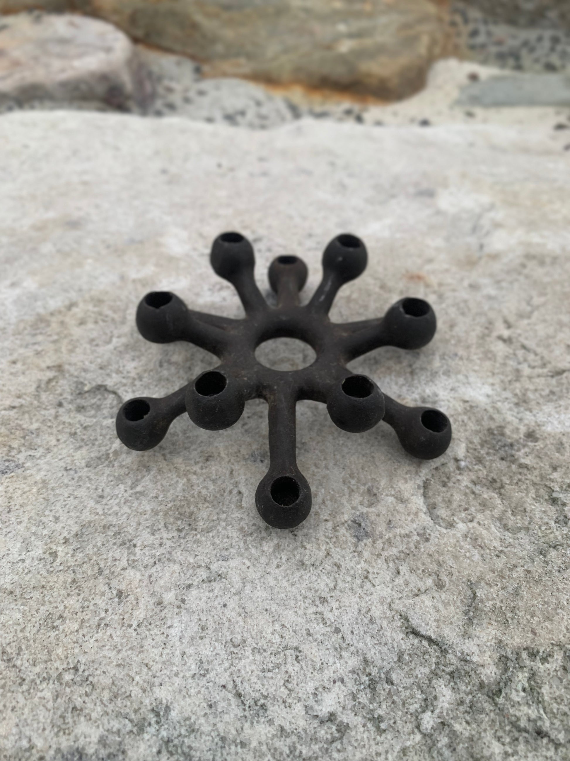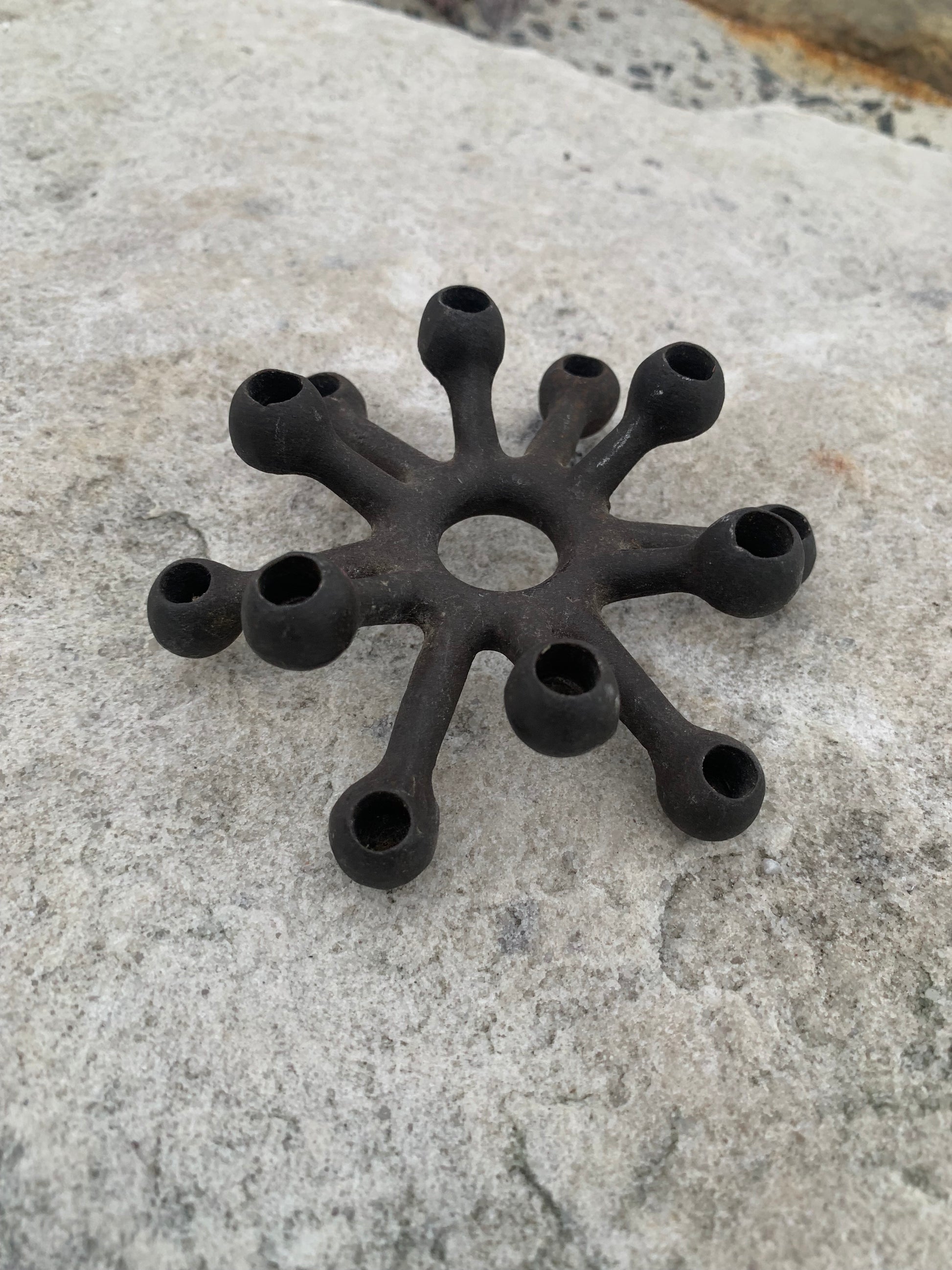 Historie: Edderkoppen - Den lille lysestage skabt af Jens Quistgaard for Dansk Design i 1963. Skulpturel og meget unik stearinlysholder i til små lys - passer til 12 lys!