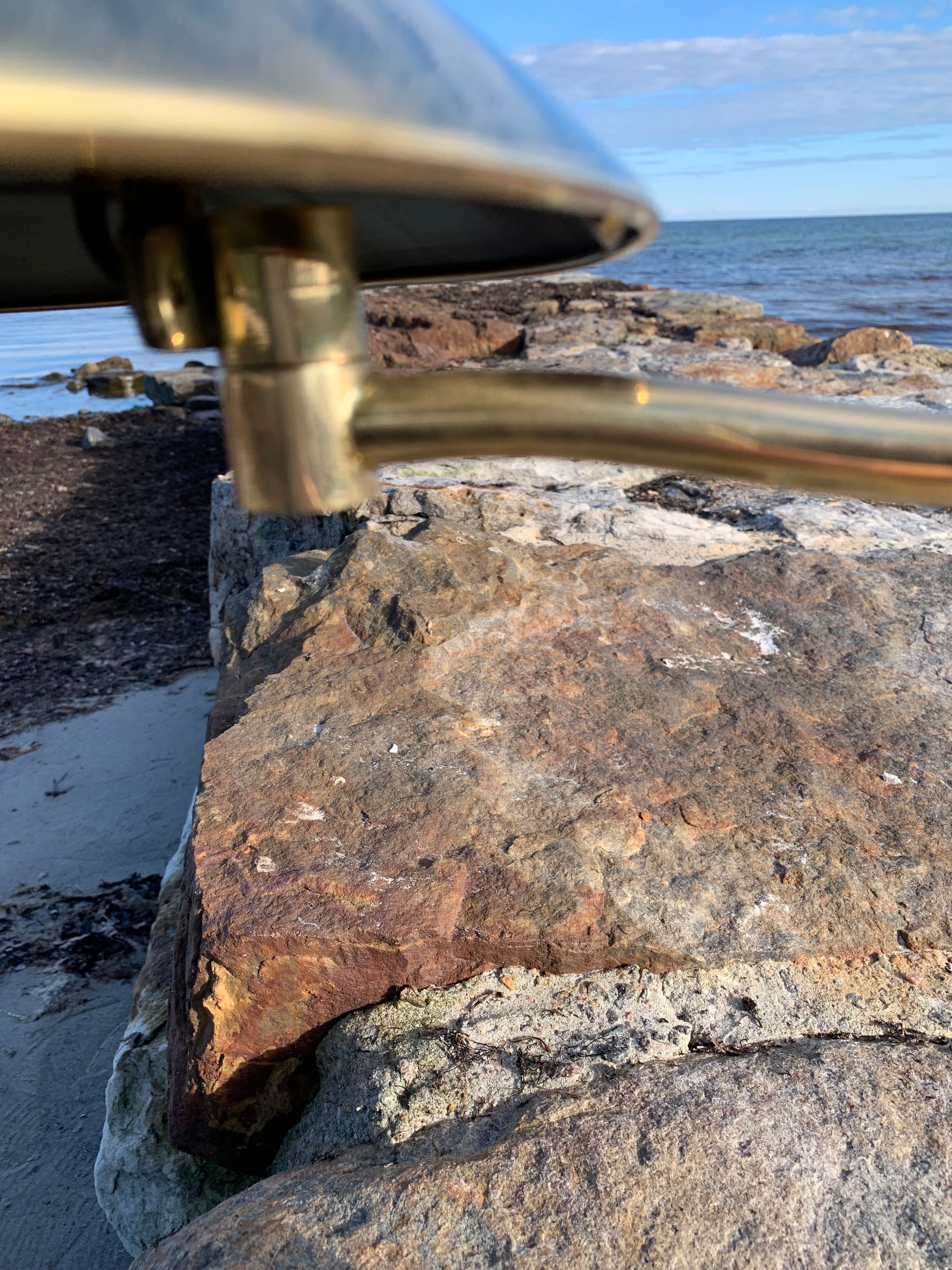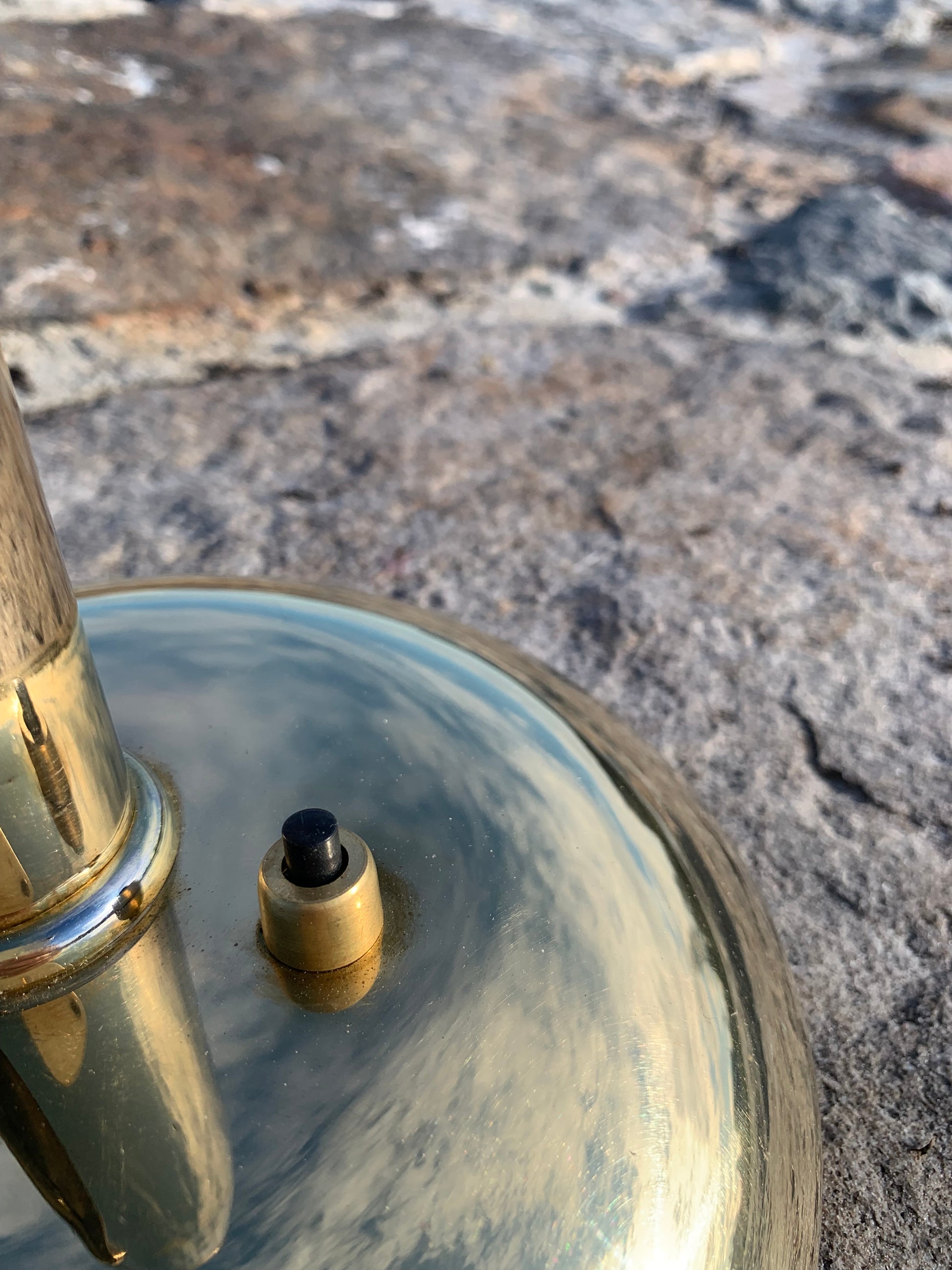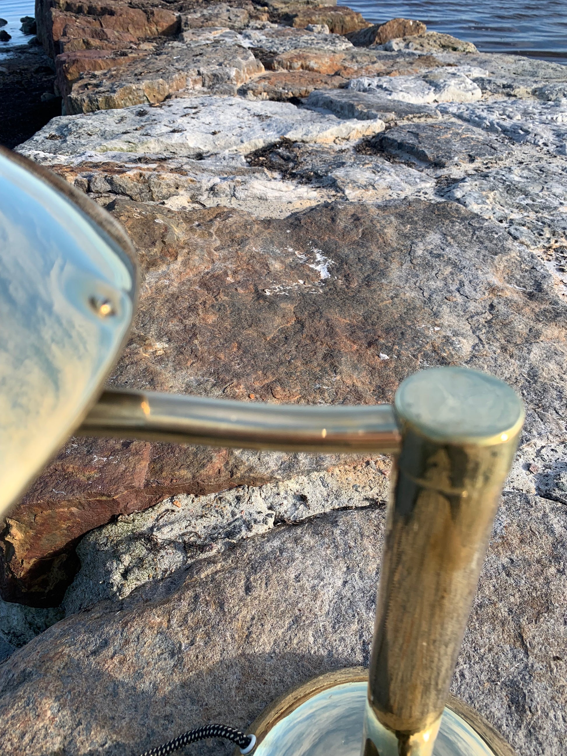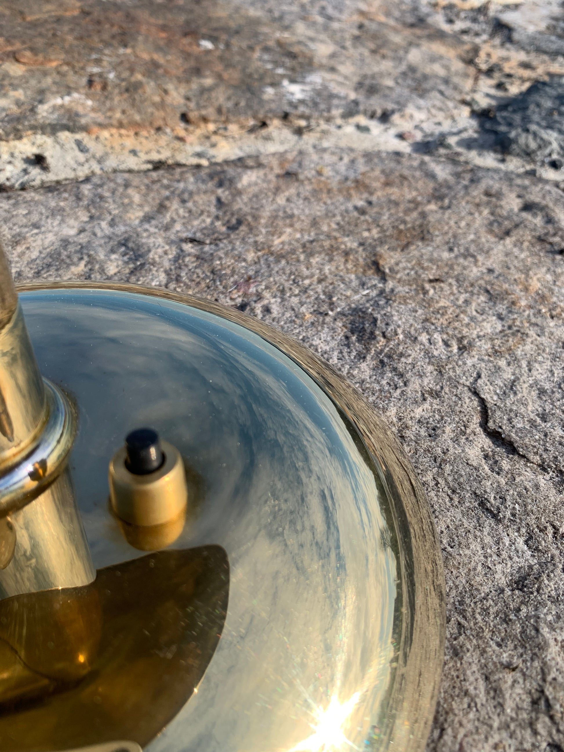 Vacker och omsorgsfullt restaurerad Egon Hillebrand vintagelampa i mässing. Lampan har en riktigt fin detalj i form av en svängarm. Detta kan göra att lampan förändrar hela sitt uttryck. Lampan framstår som vacker och med vissa tecken på slitage, vilka är minimala med tanke på dess ålder. Skicket är exceptionellt gott och lampan är nydragen.