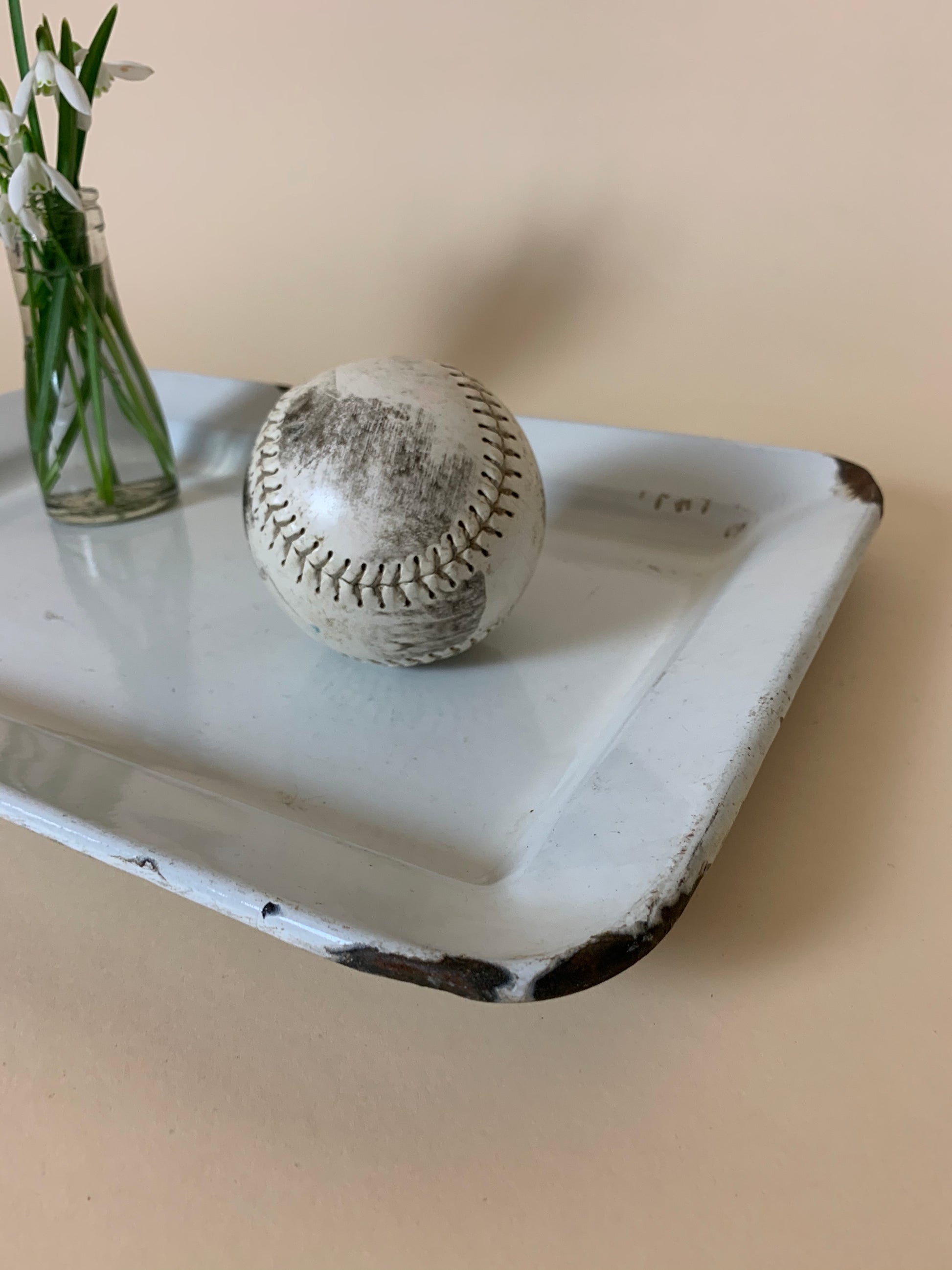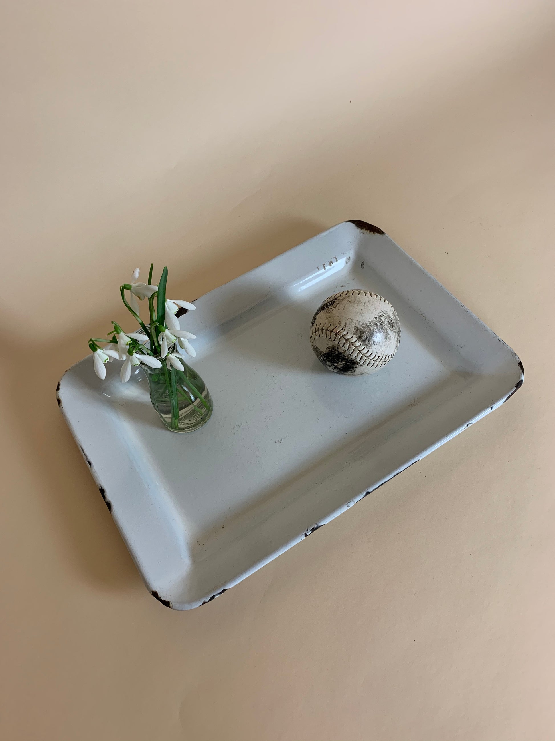 Emaljfat med charmiga spår av ett levt liv.