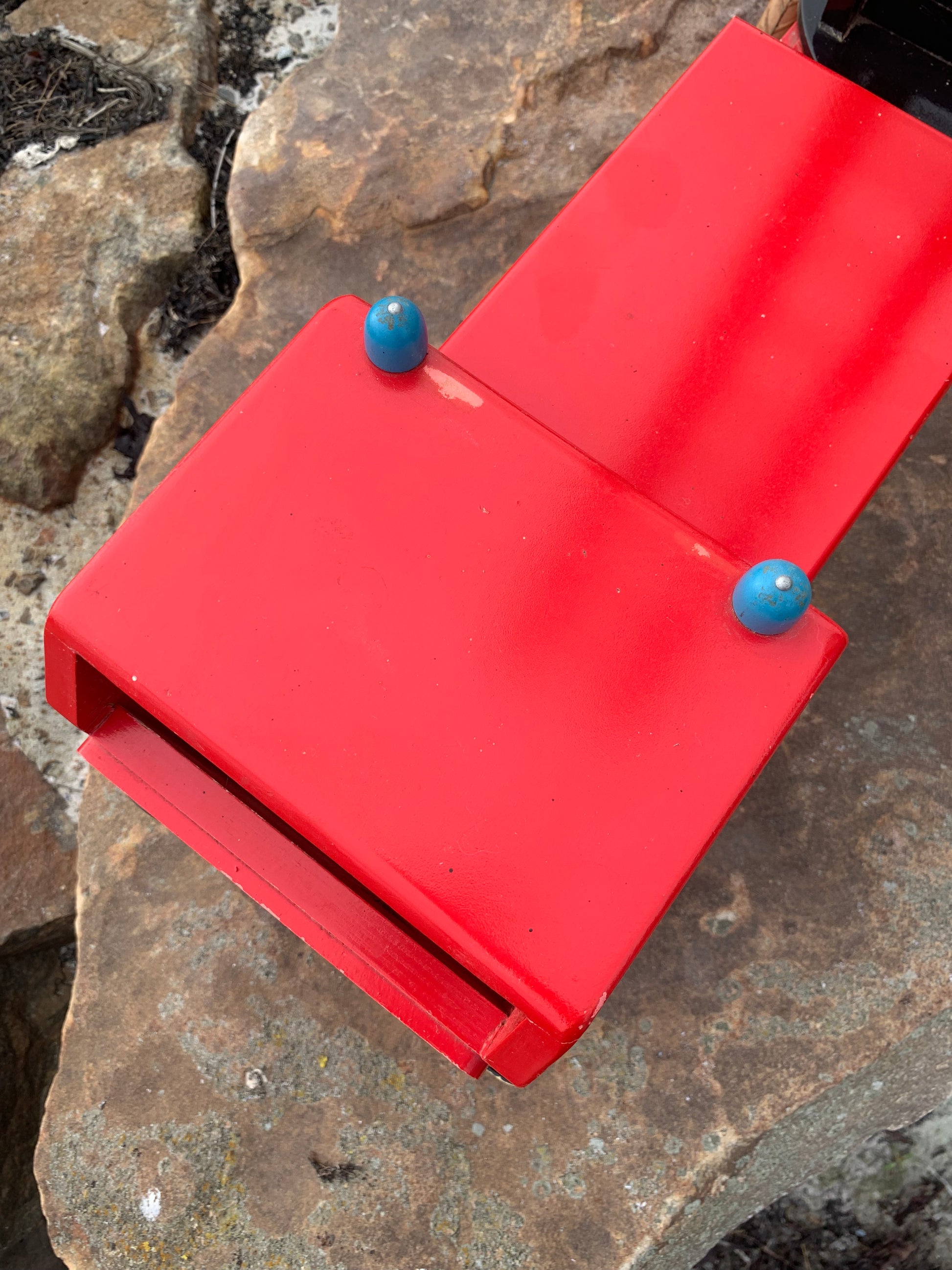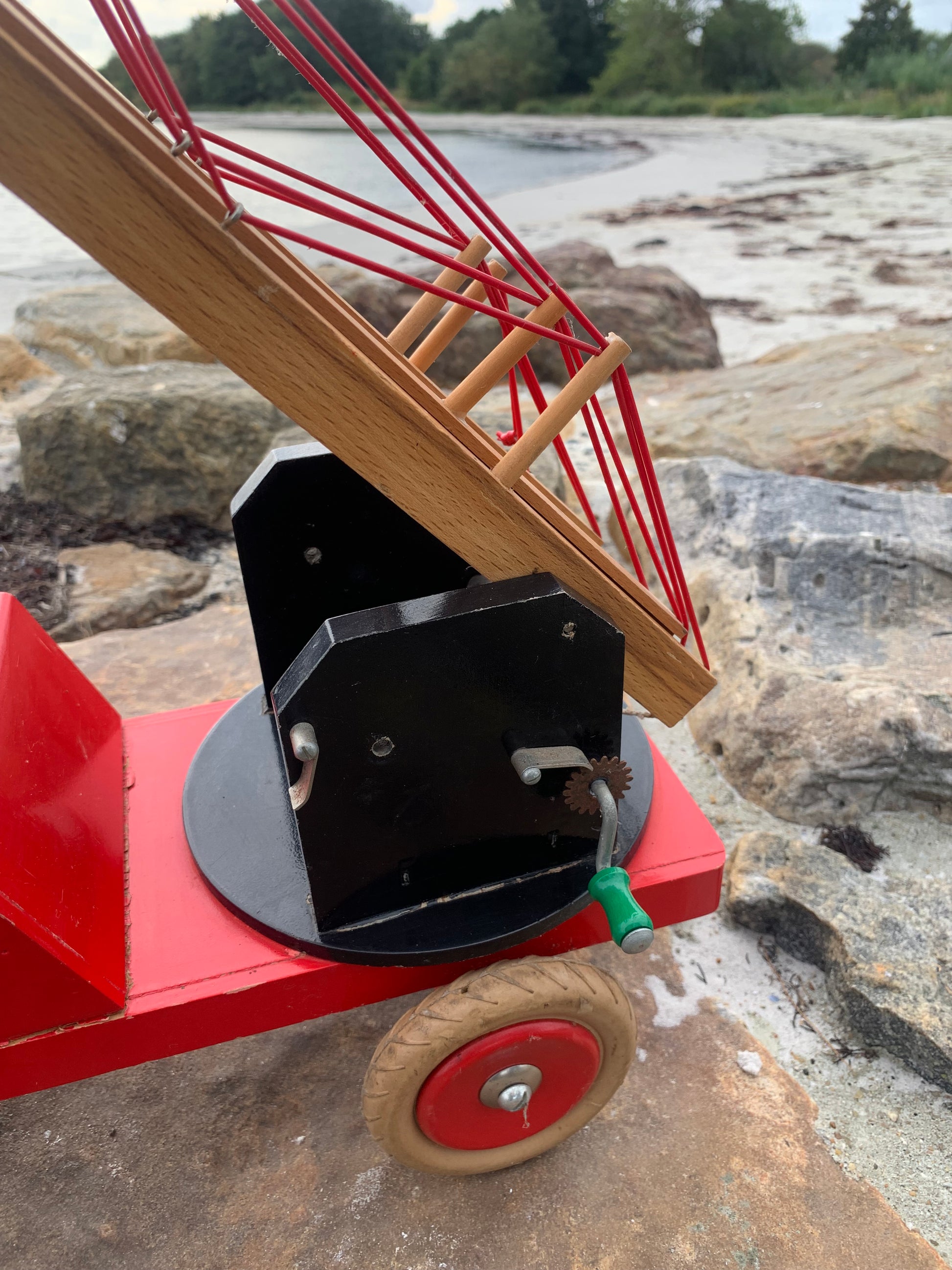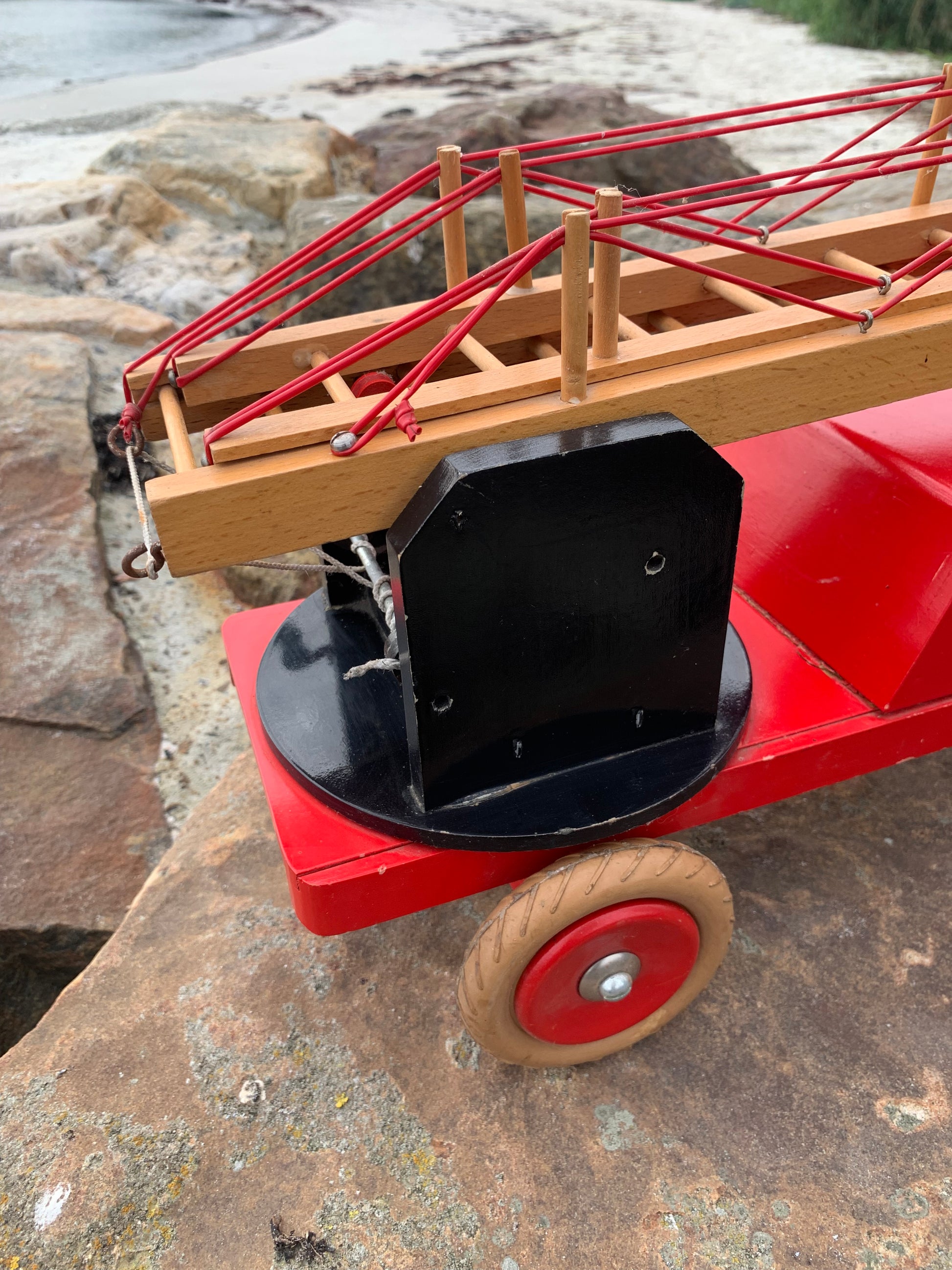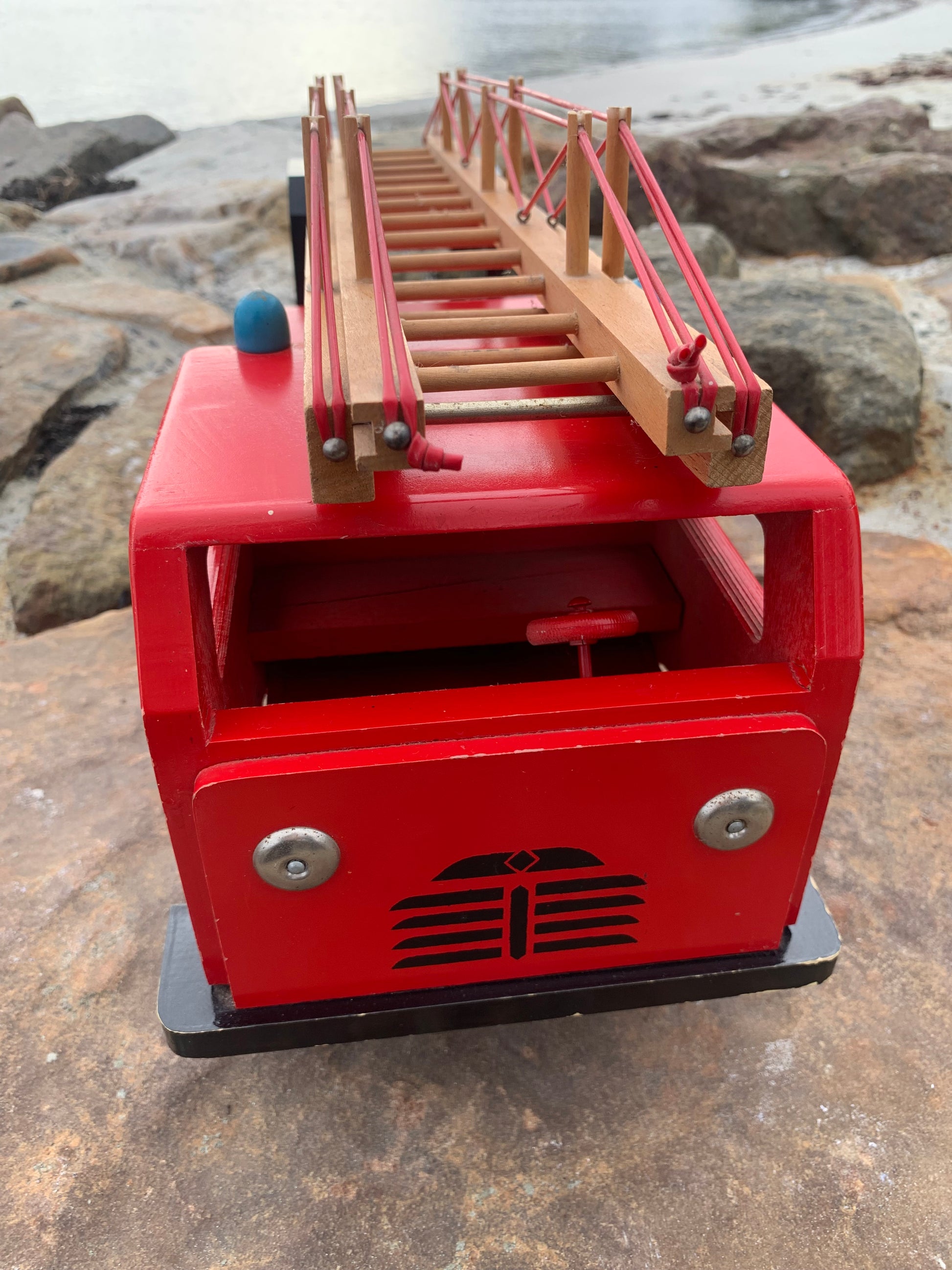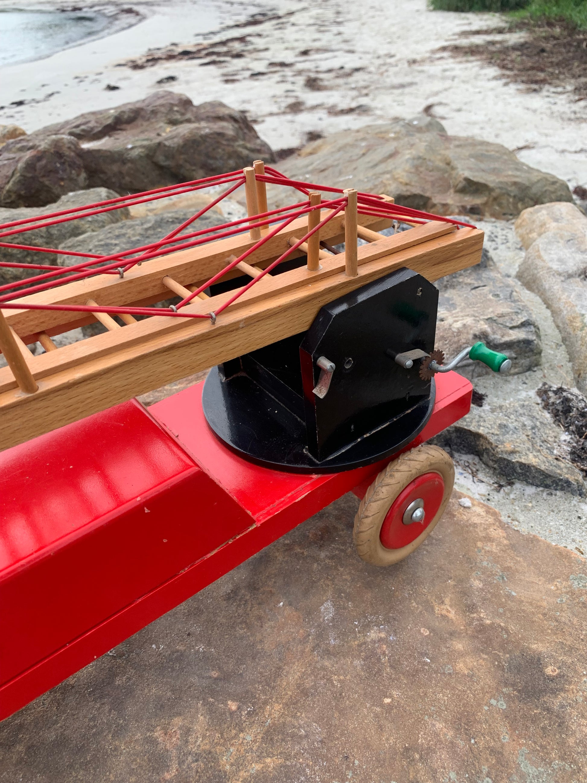 Vacker och stor gammal röd BRIO brandbil funnen och köpt från en samlare som berättade att den troligen var från 1950-60-talet. Skicket är inte helt perfekt, men med tanke på åldern är den mycket bra.