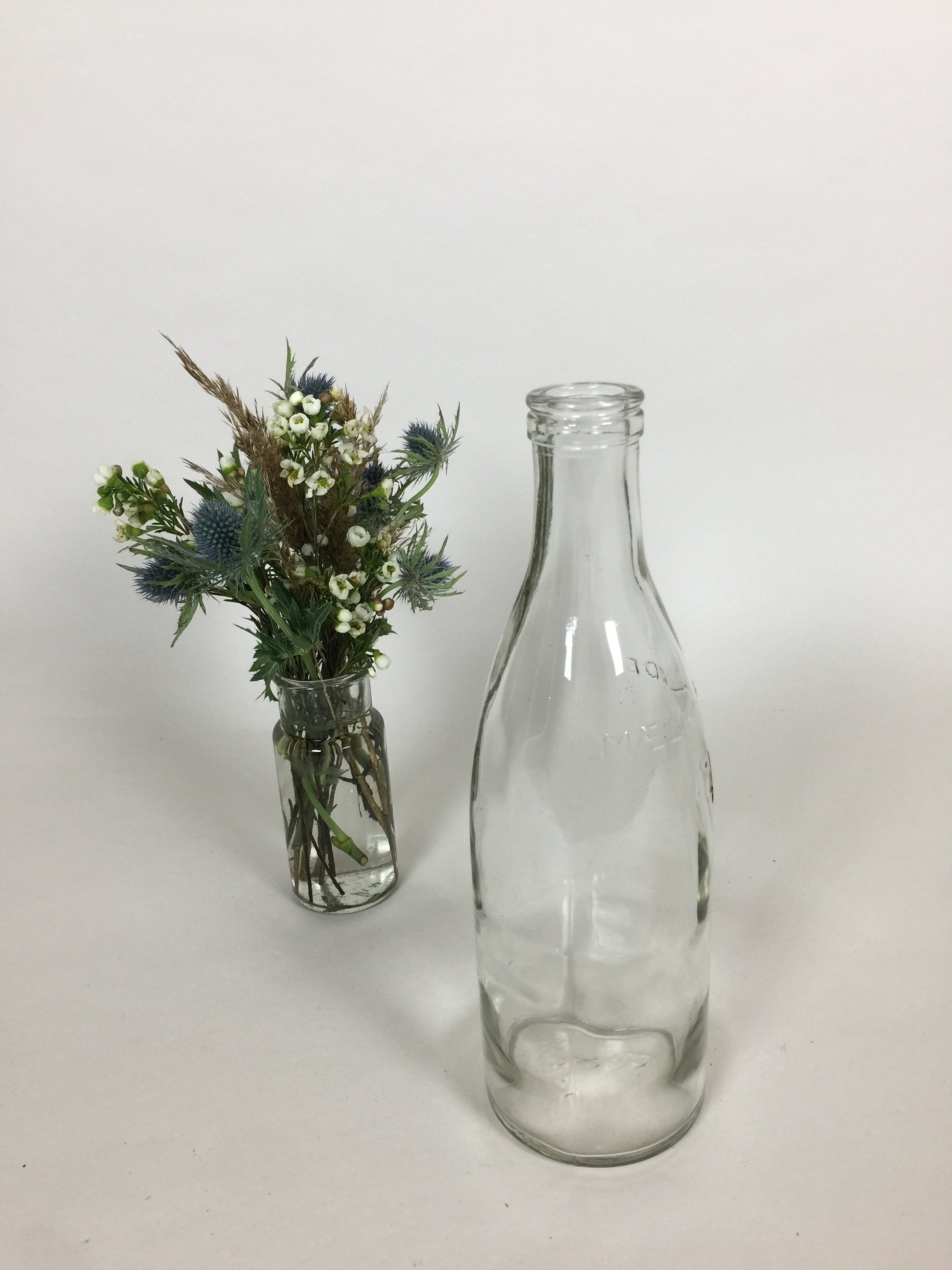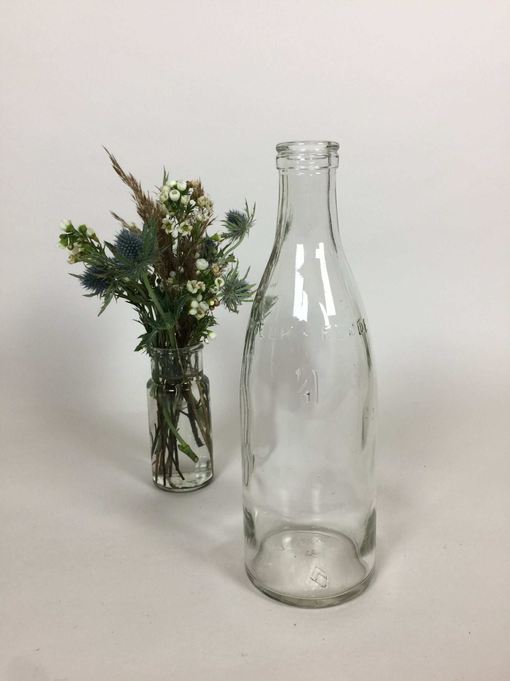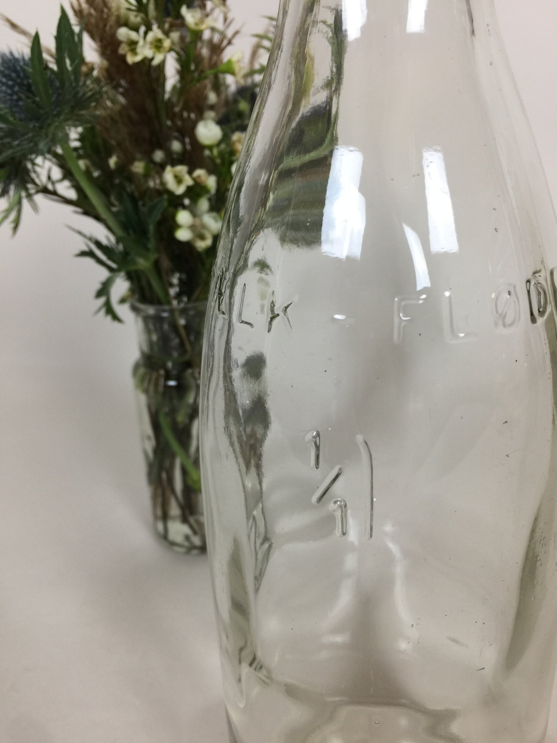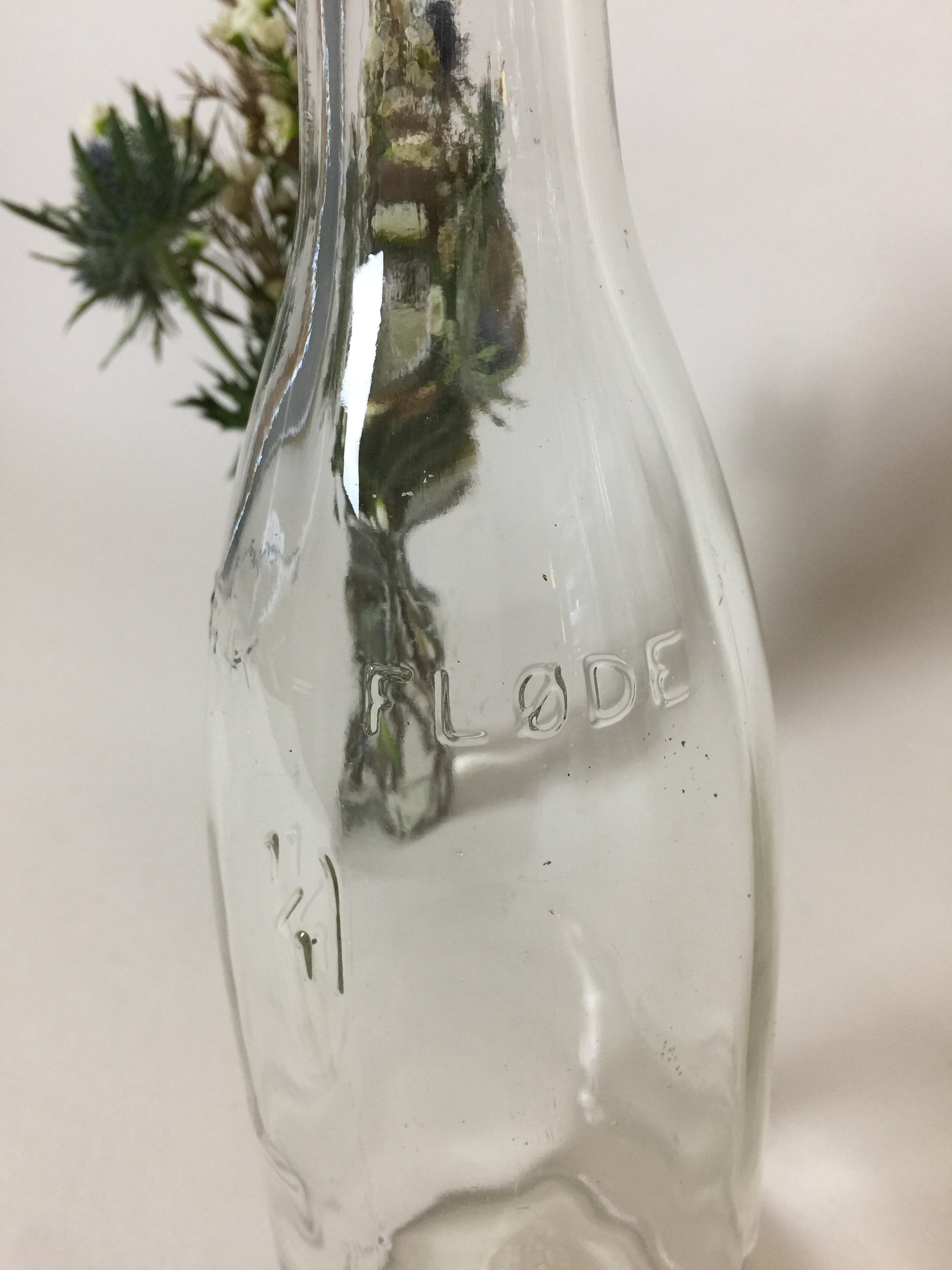 Gammal fin och dekorativ mjölkflaska... ställ till exempel flera av dem i olika storlekar på bordet och fyll dem med blommor... det ser vackert ut.