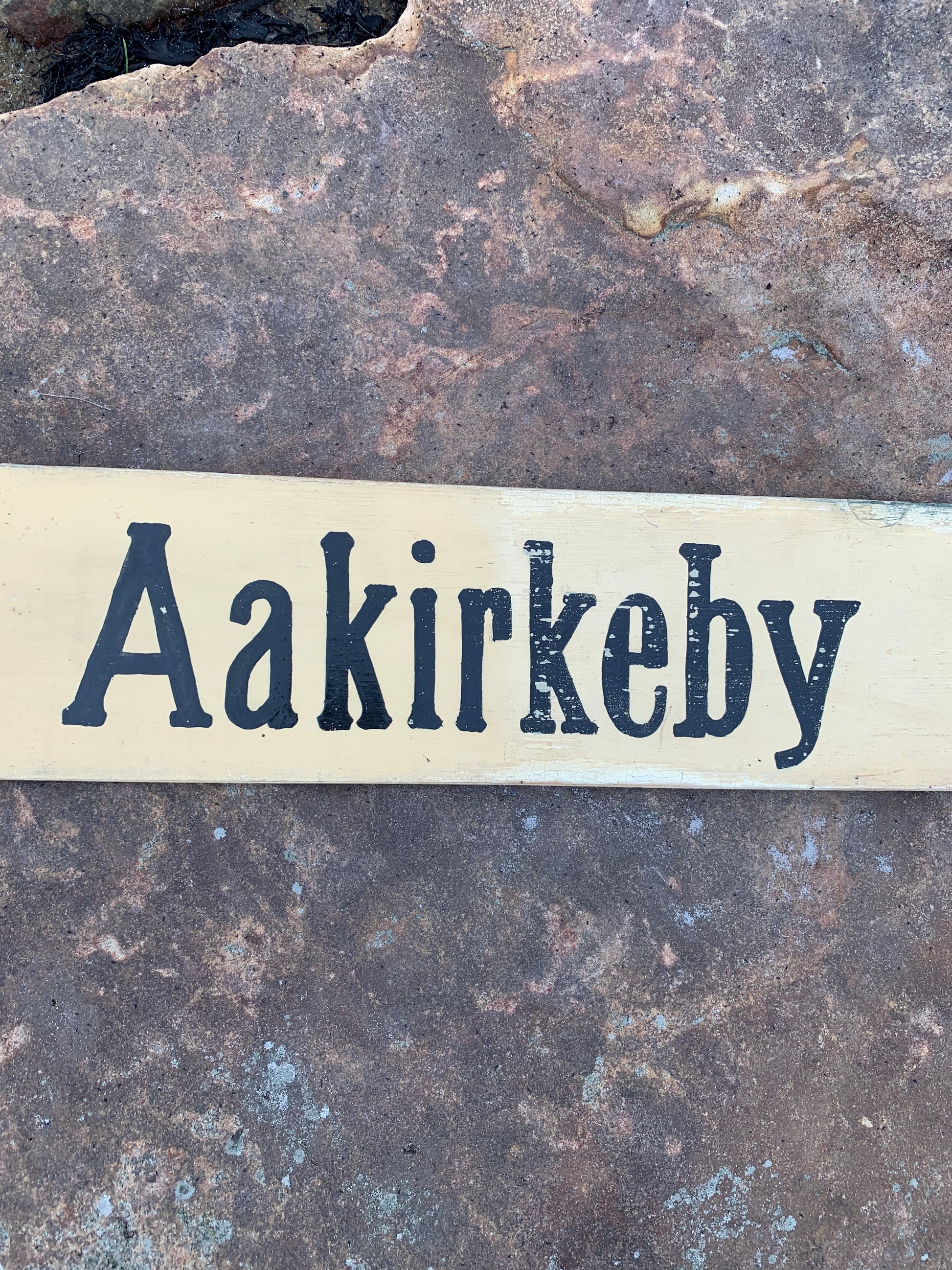 Gamla Bornholmsskylt från buss - Gudhjem/Aakrikeby