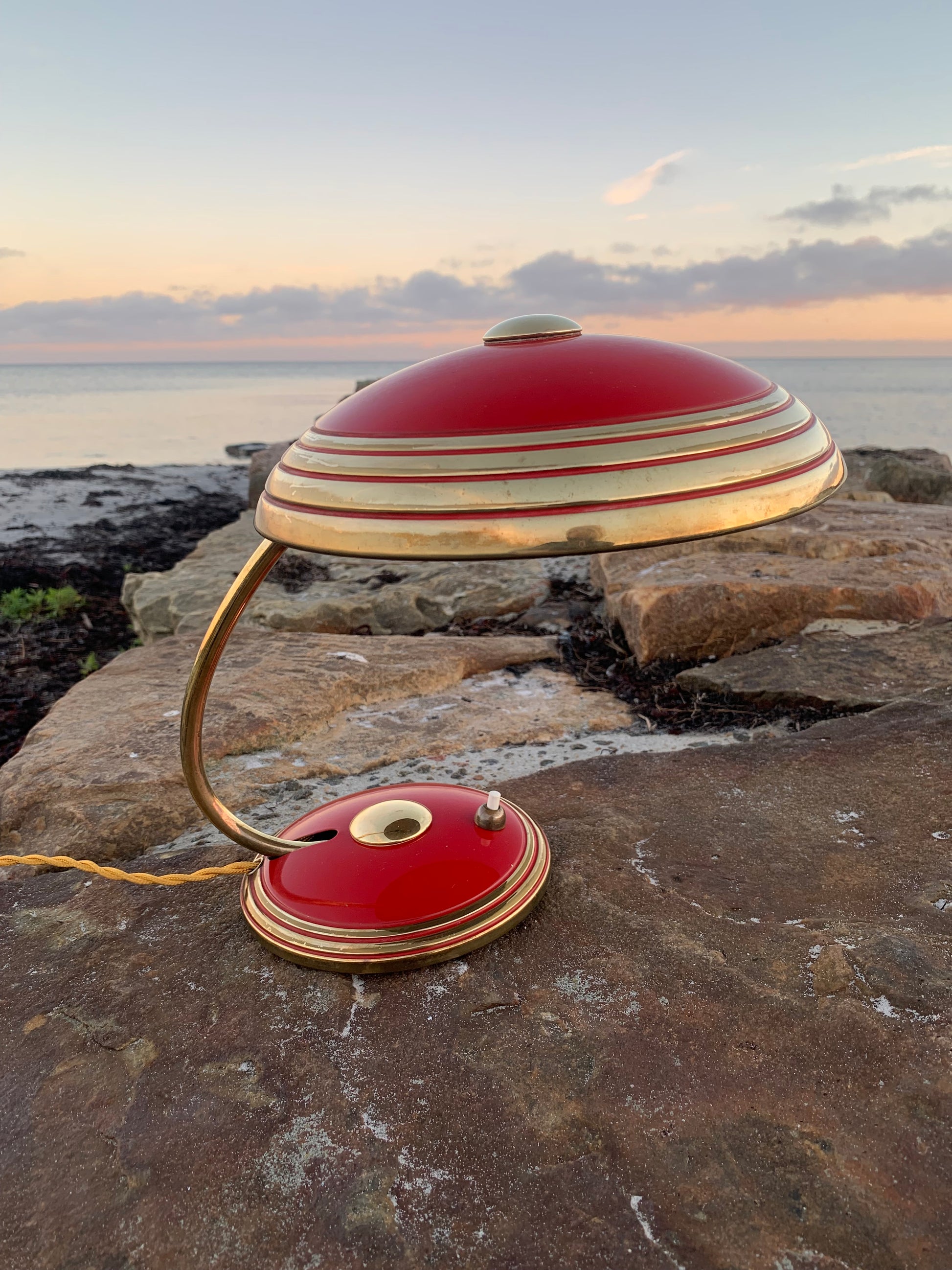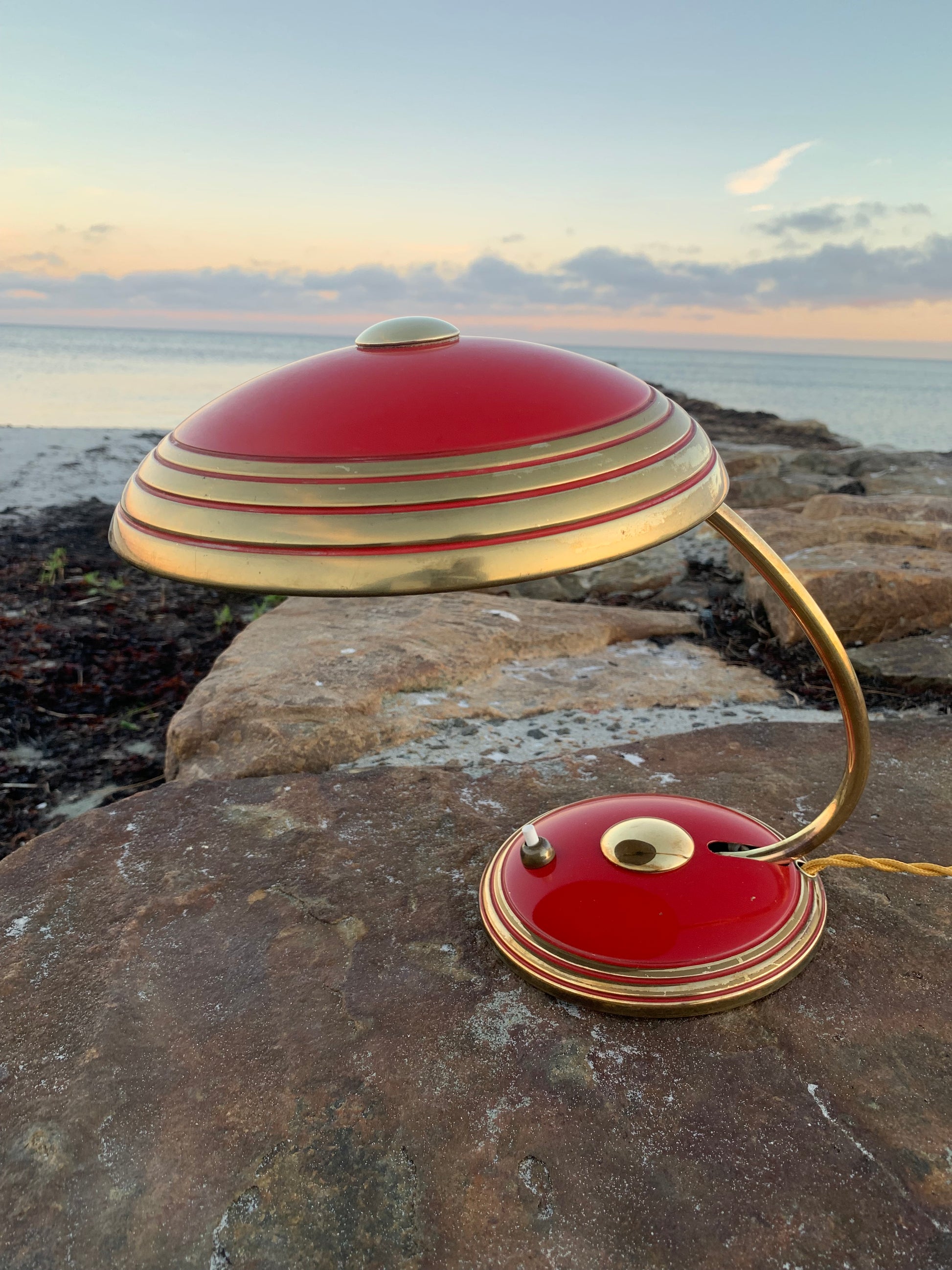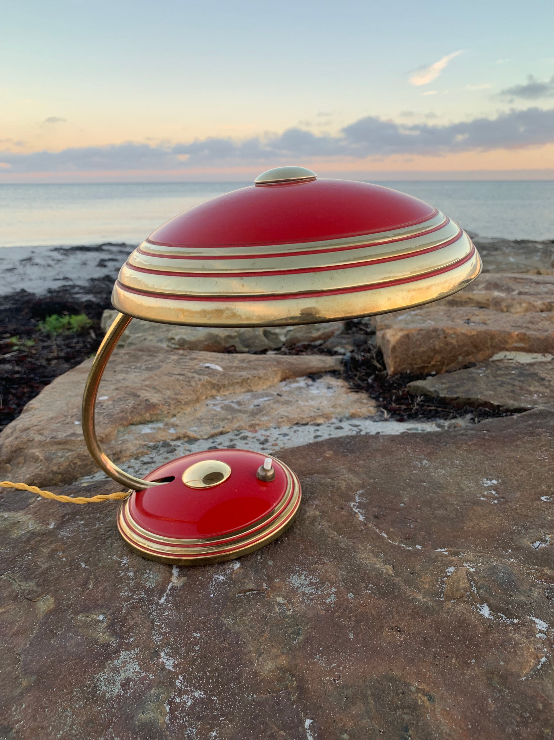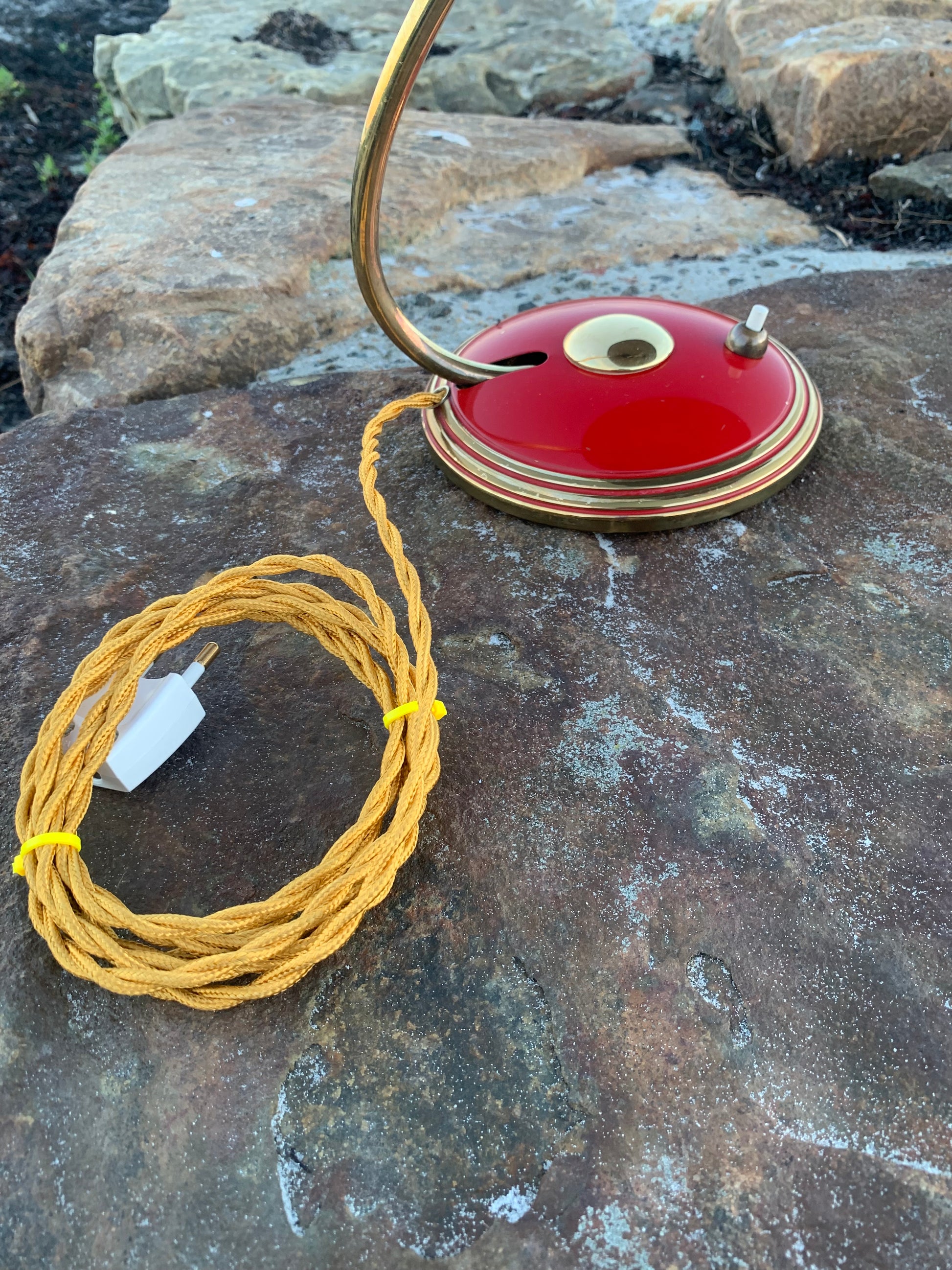 Vacker Helo vintagelampa. Lampan, som är nykopplad, har vissa åldersrelaterade tecken på slitage, vilket en sådan lampa (enligt oss) borde ha. Detta vittnar helt enkelt om dess originalitet och att lampan har många decennier på sig. Detta exemplar är troligen från 1950-talet.