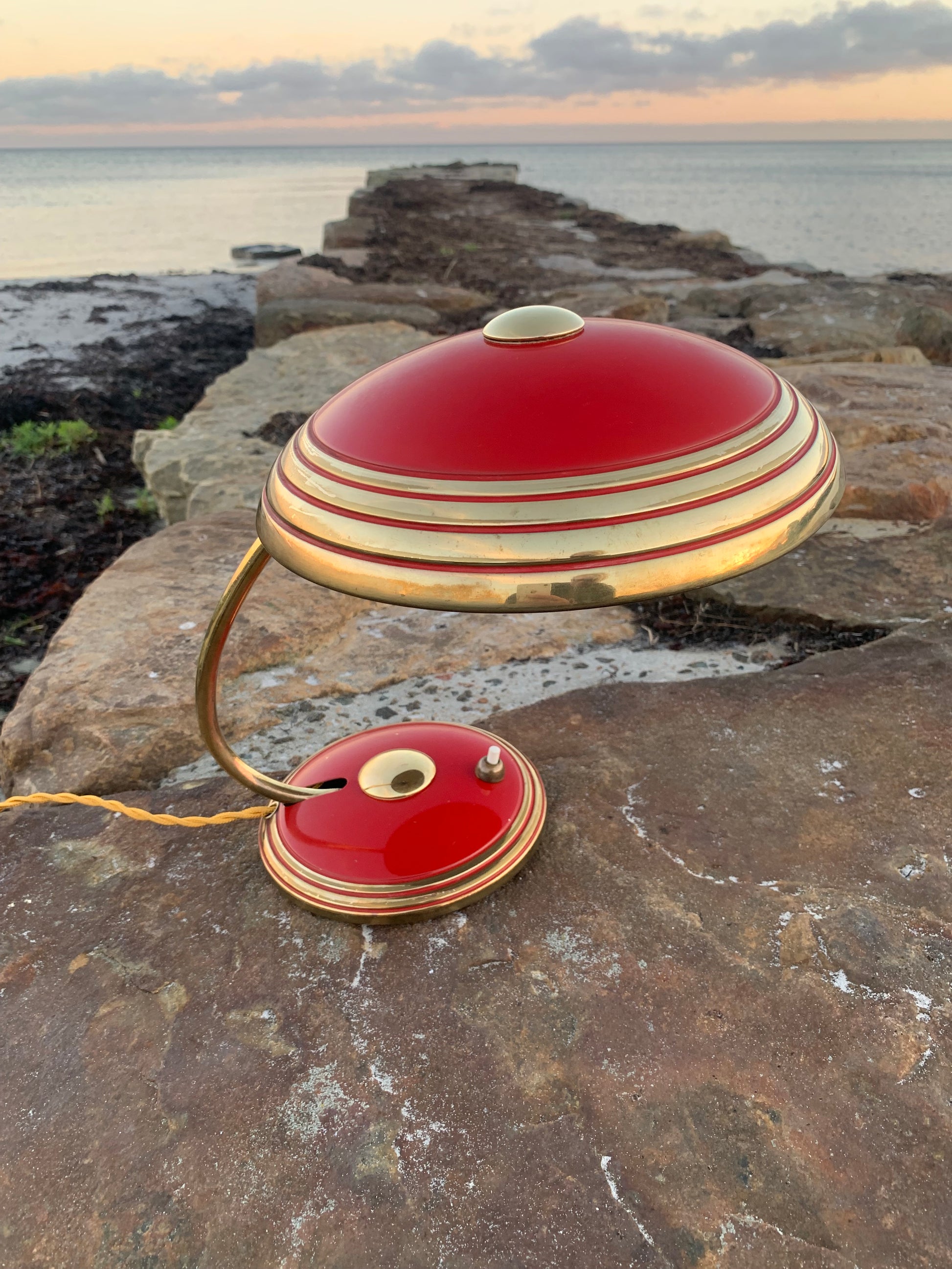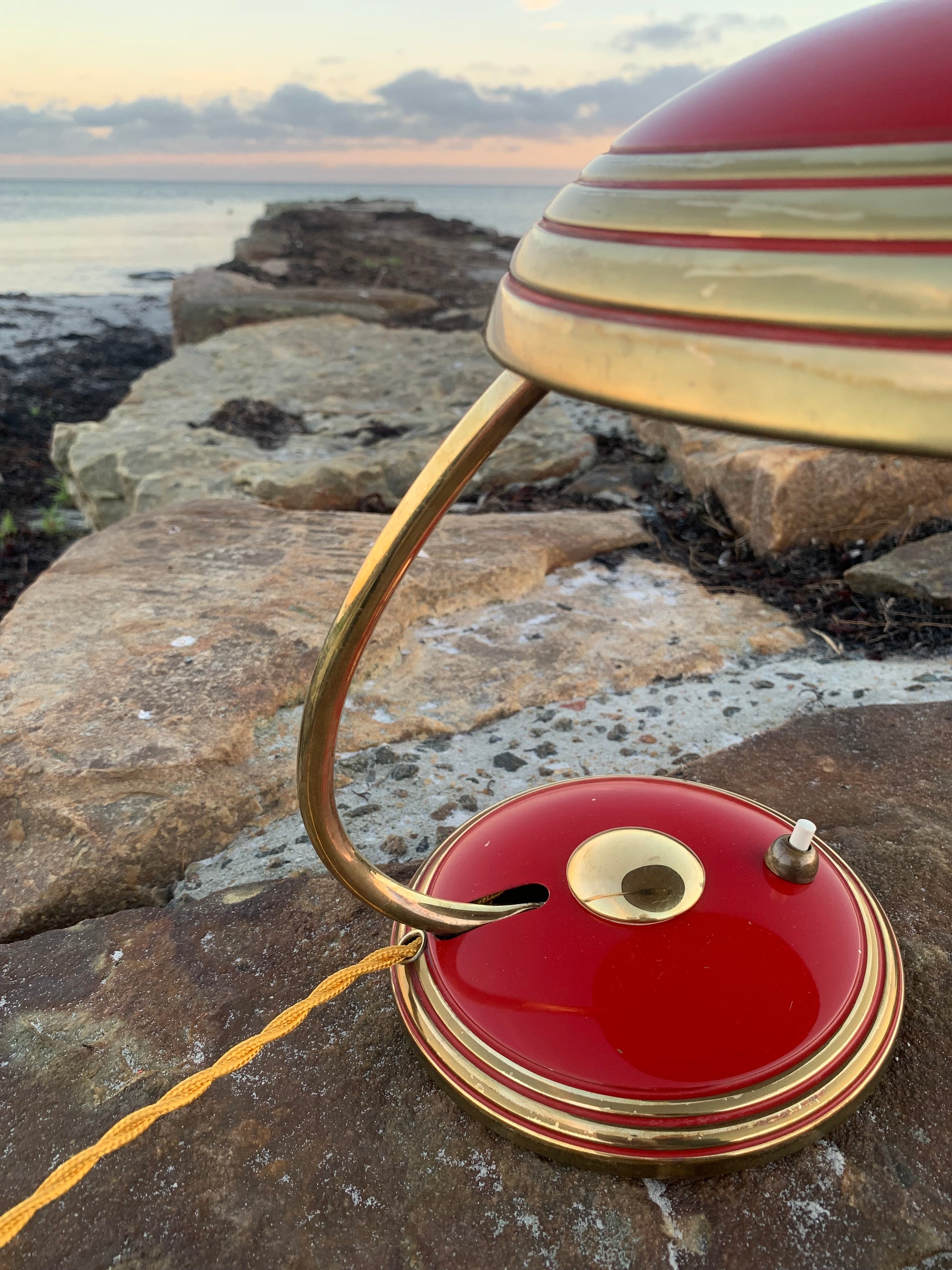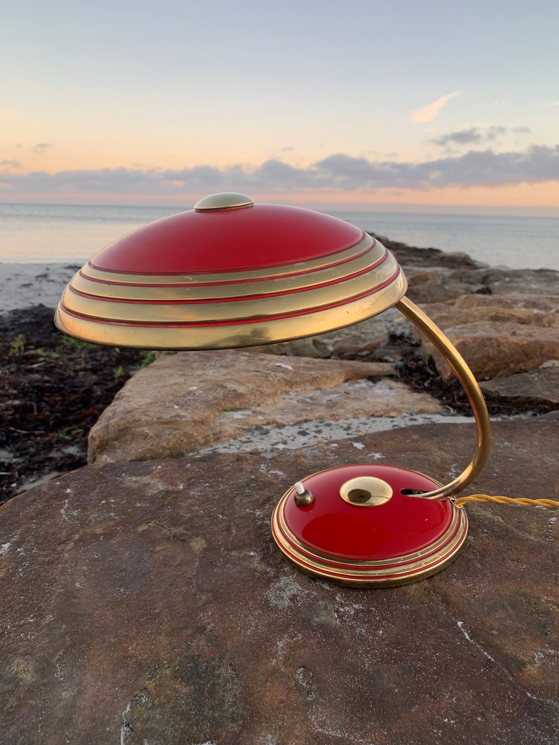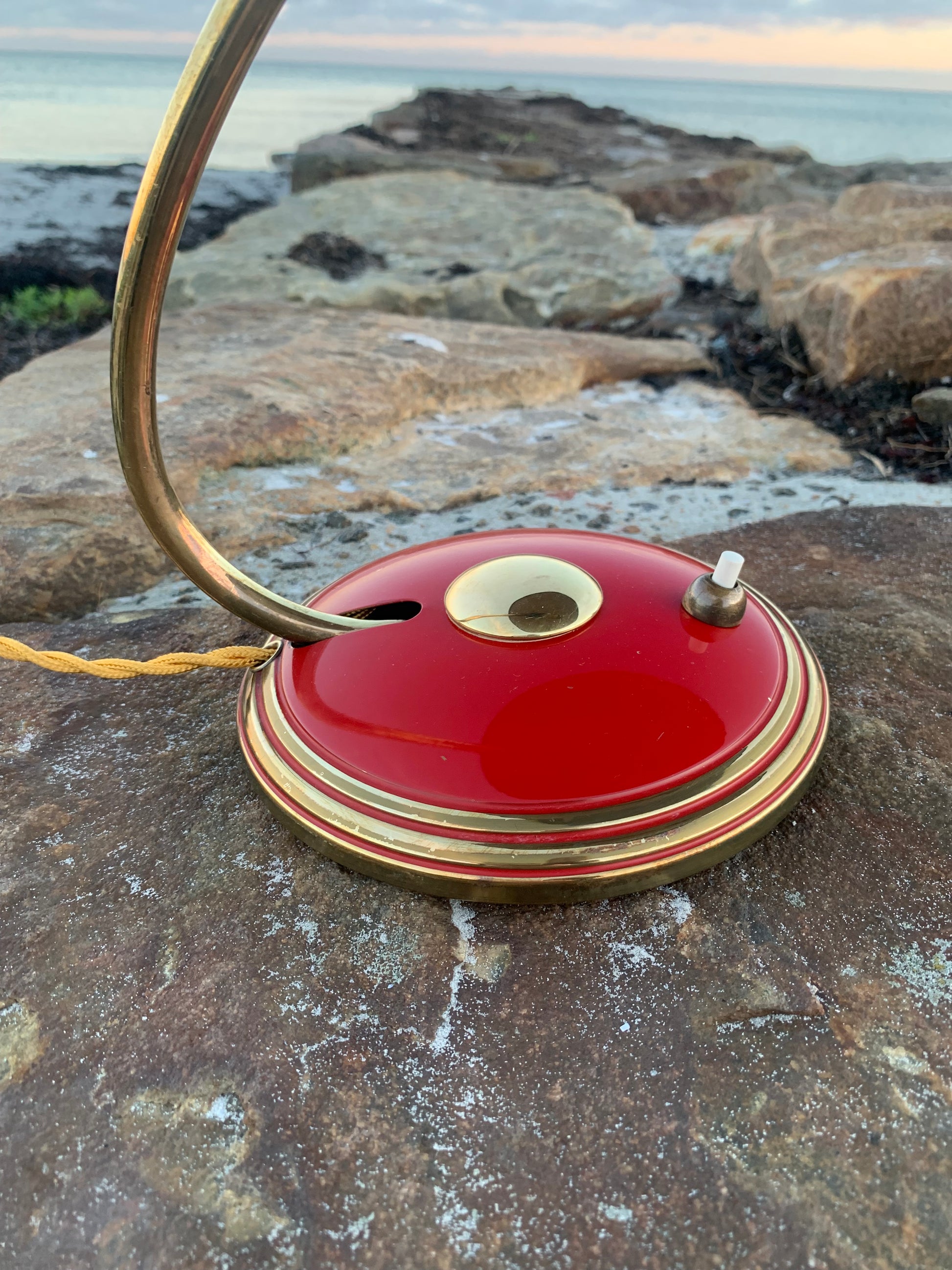 Vacker Helo vintagelampa. Lampan, som är nykopplad, har vissa åldersrelaterade tecken på slitage, vilket en sådan lampa (enligt oss) borde ha. Detta vittnar helt enkelt om dess originalitet och att lampan har många decennier på sig. Detta exemplar är troligen från 1950-talet.