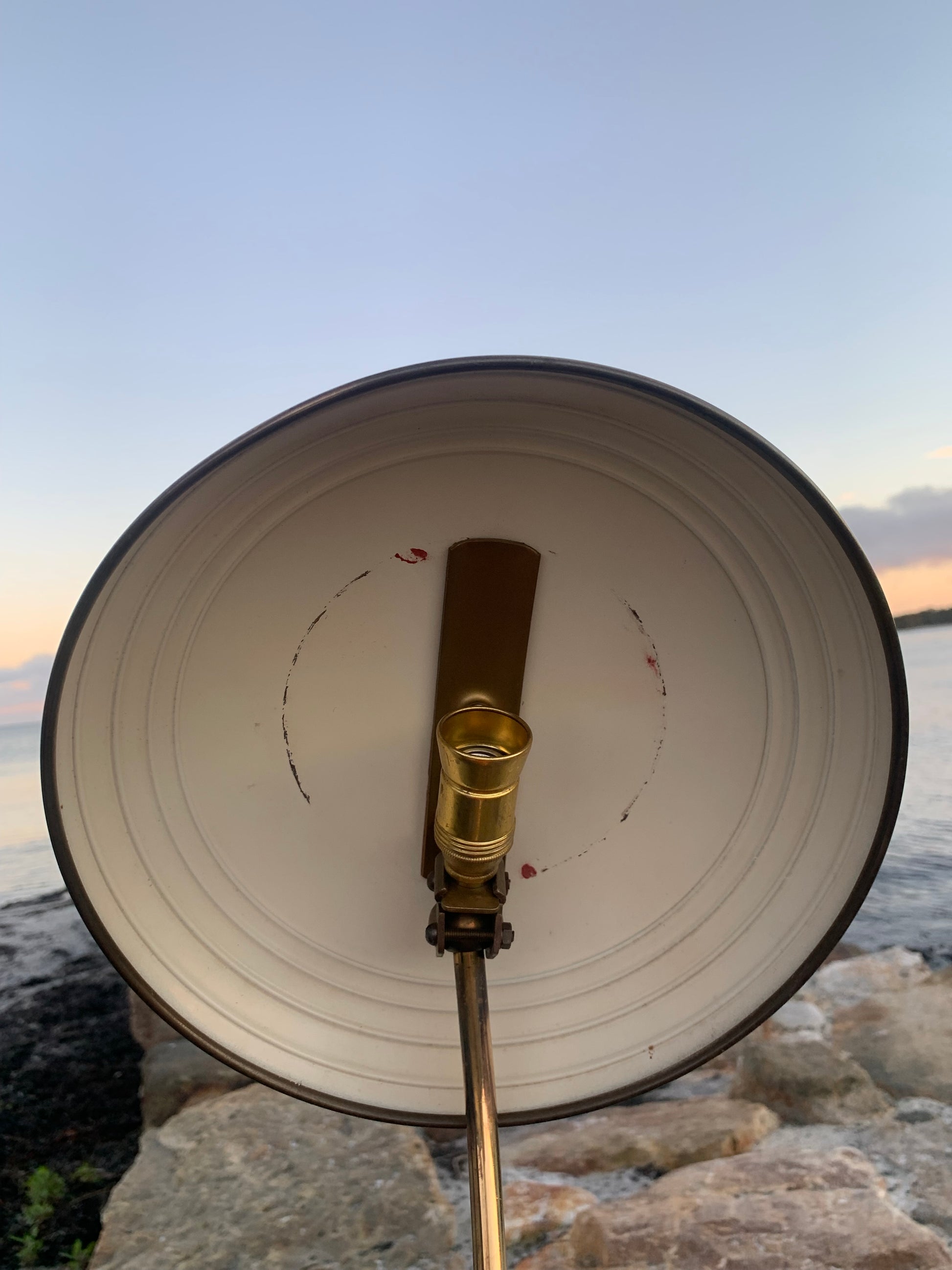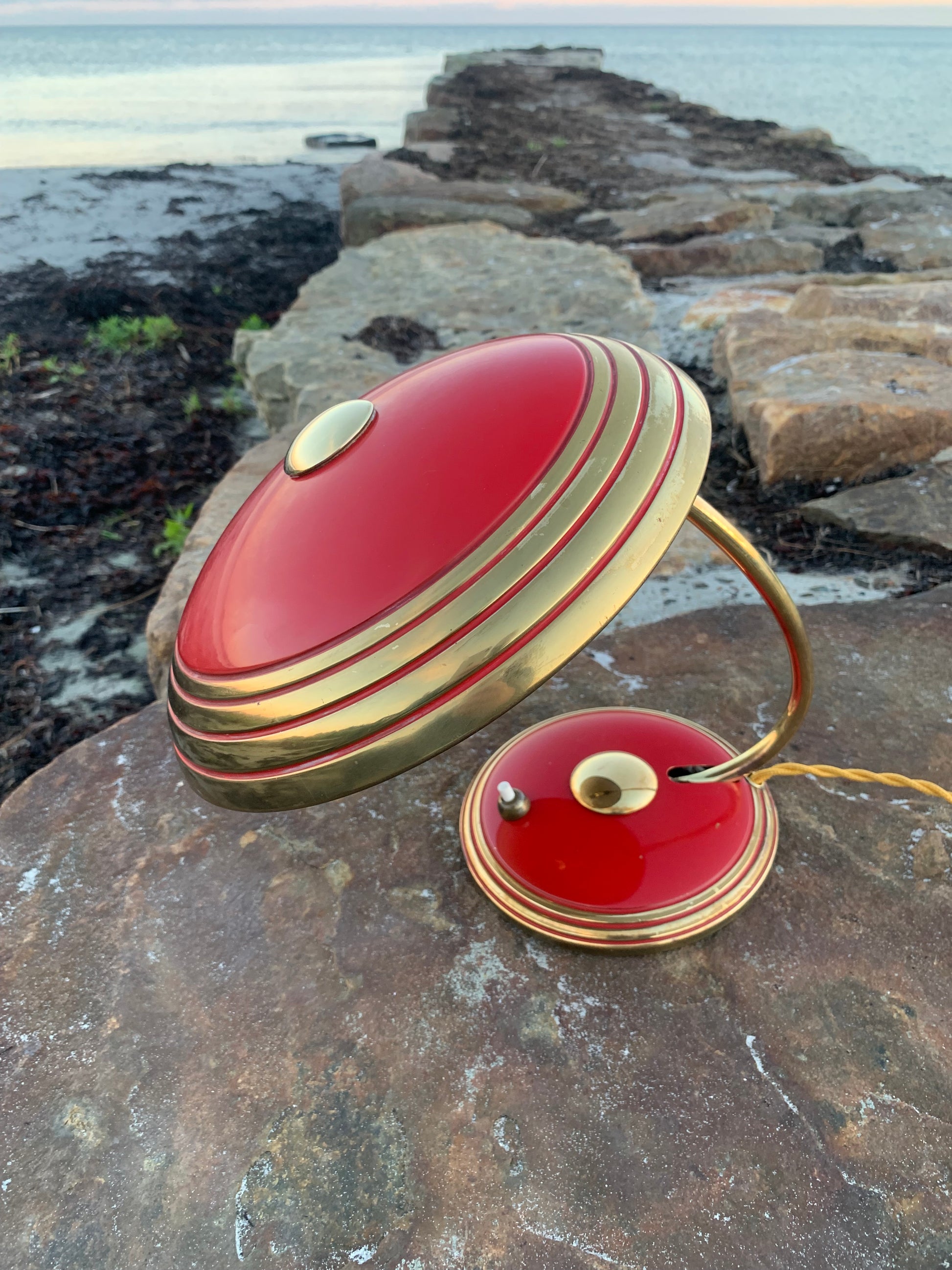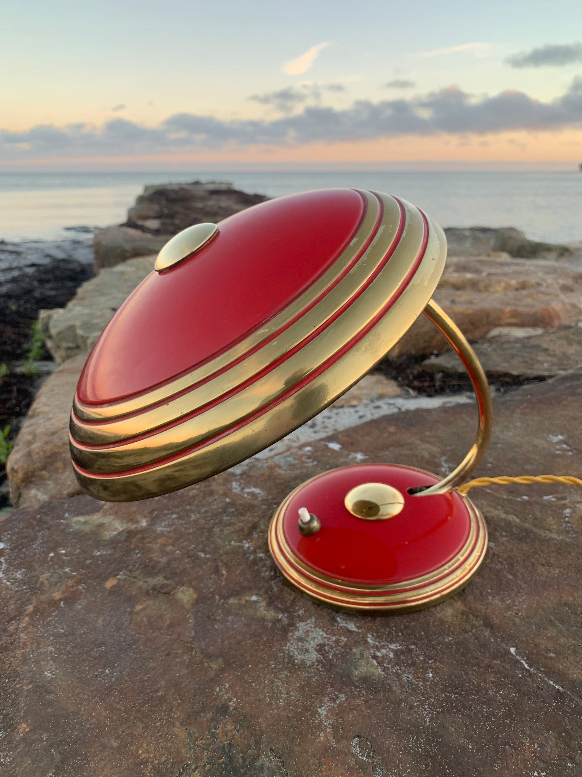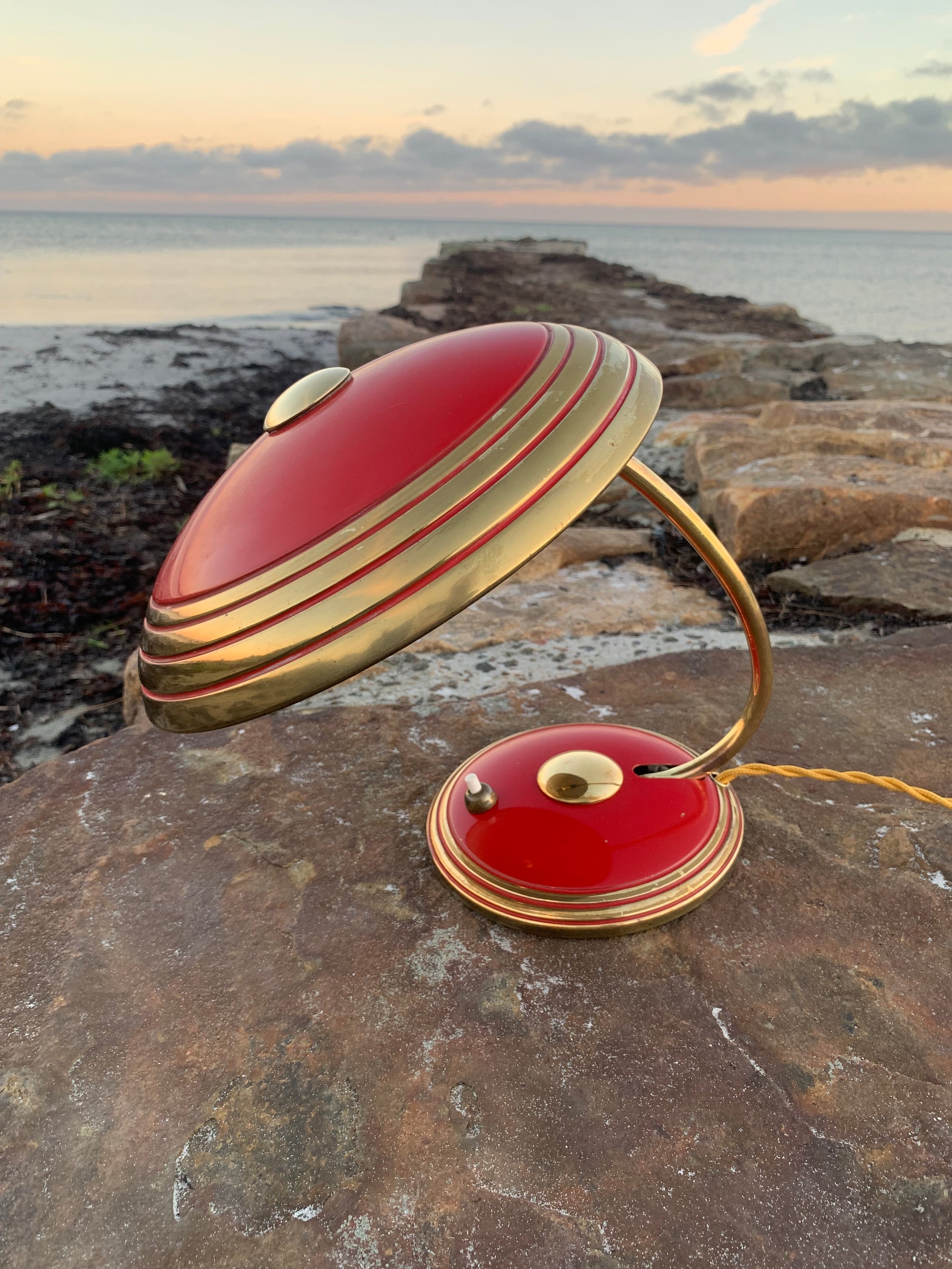 Vacker Helo vintagelampa. Lampan, som är nykopplad, har vissa åldersrelaterade tecken på slitage, vilket en sådan lampa (enligt oss) borde ha. Detta vittnar helt enkelt om dess originalitet och att lampan har många decennier på sig. Detta exemplar är troligen från 1950-talet.