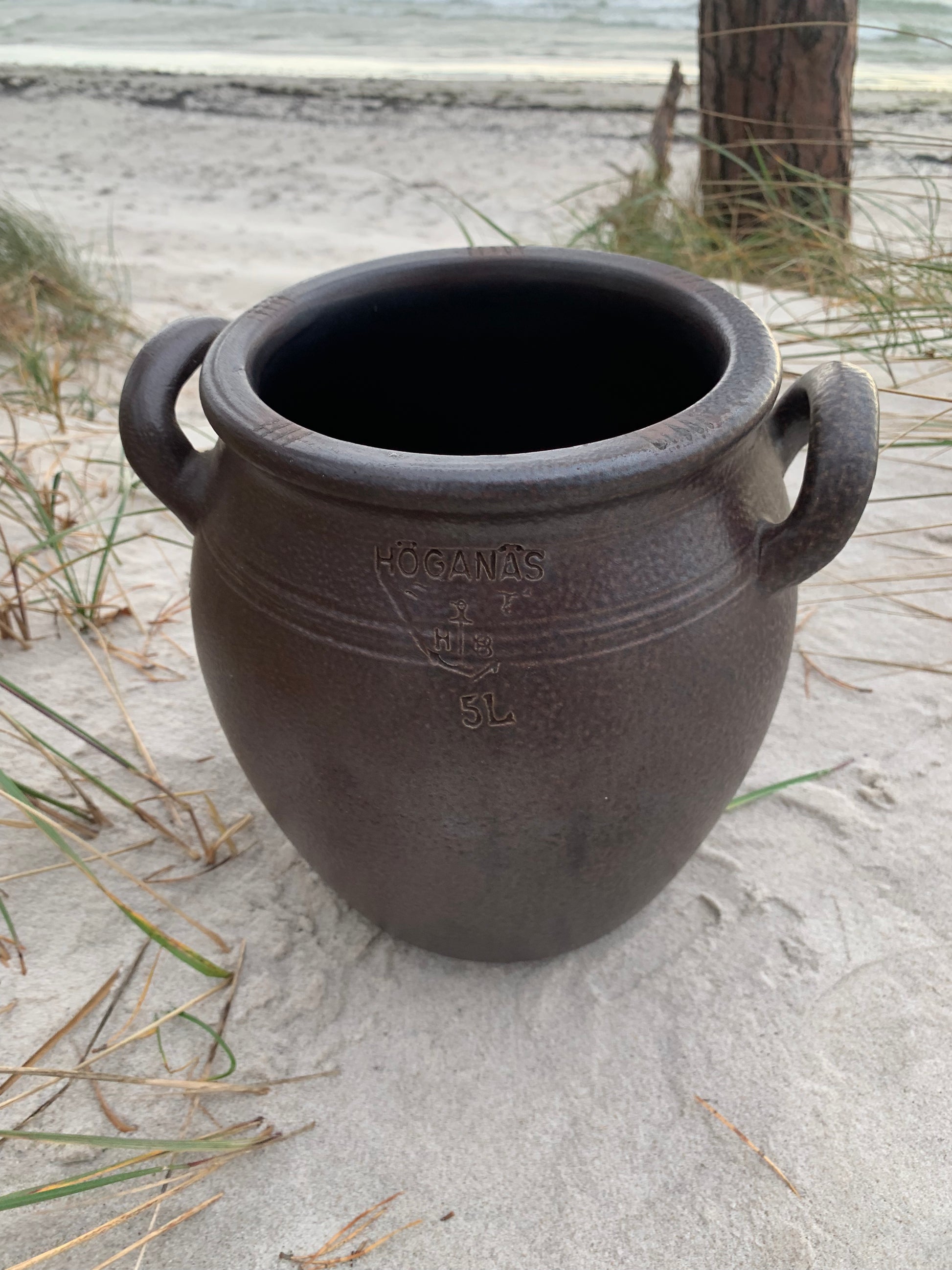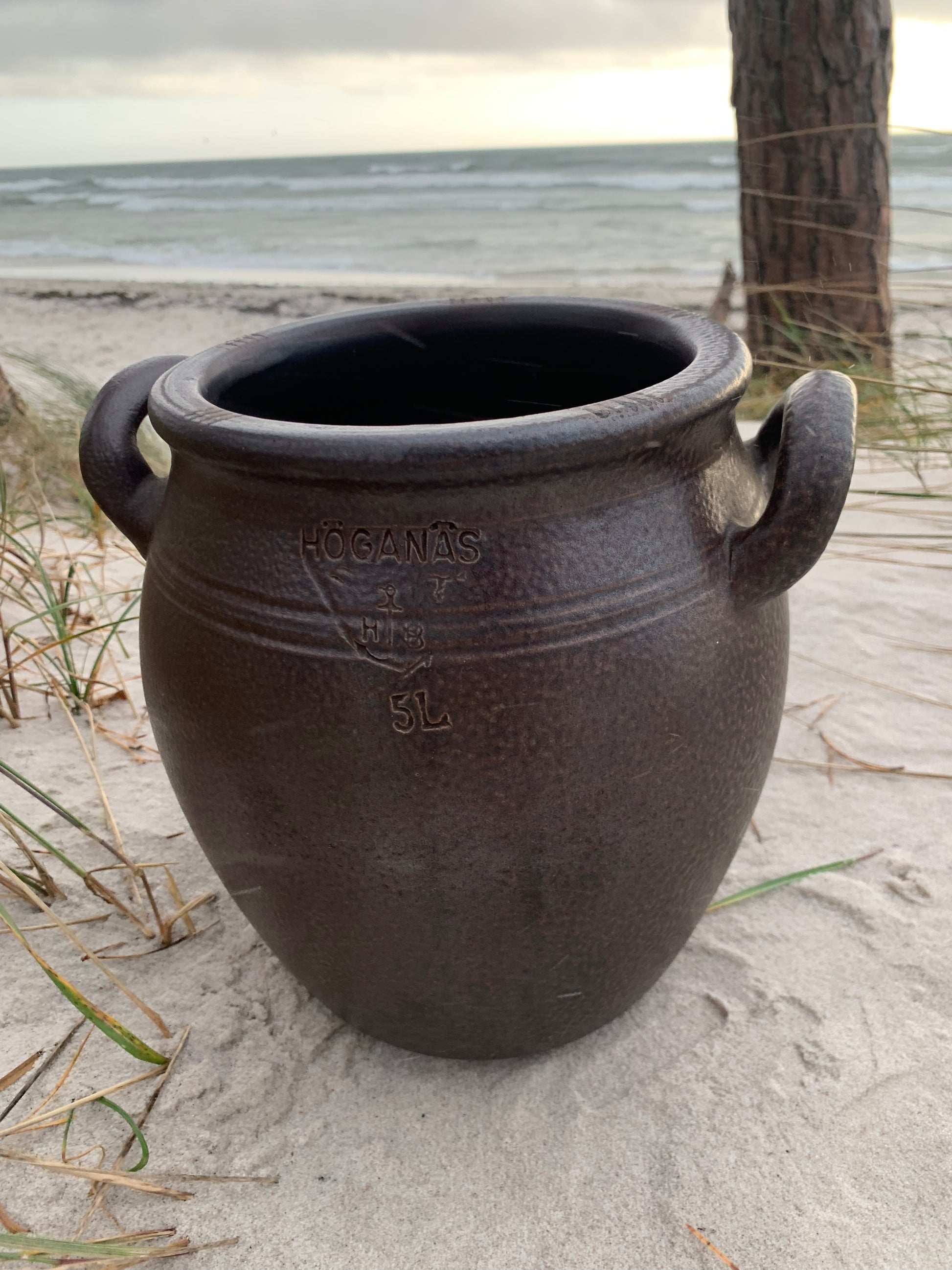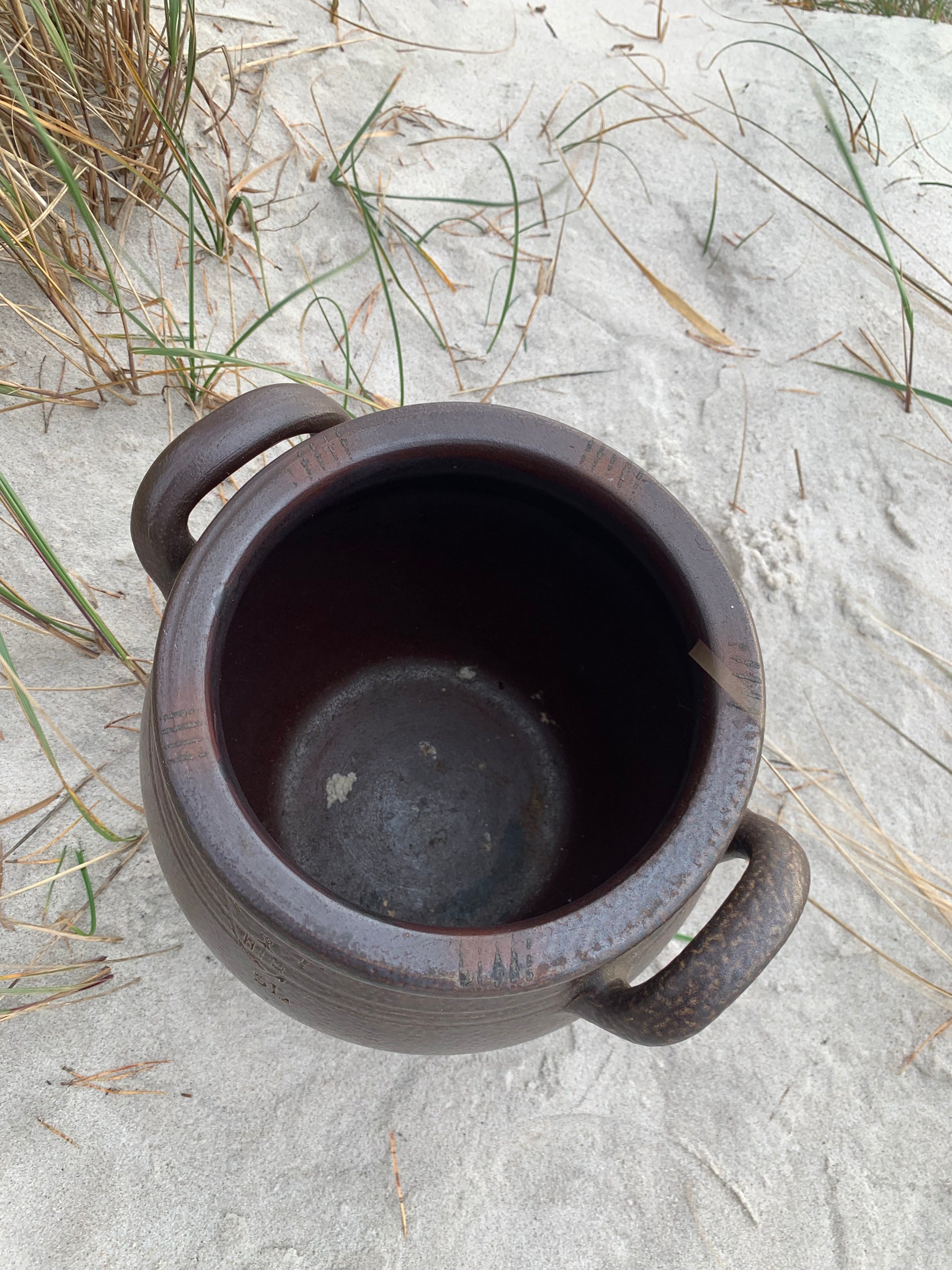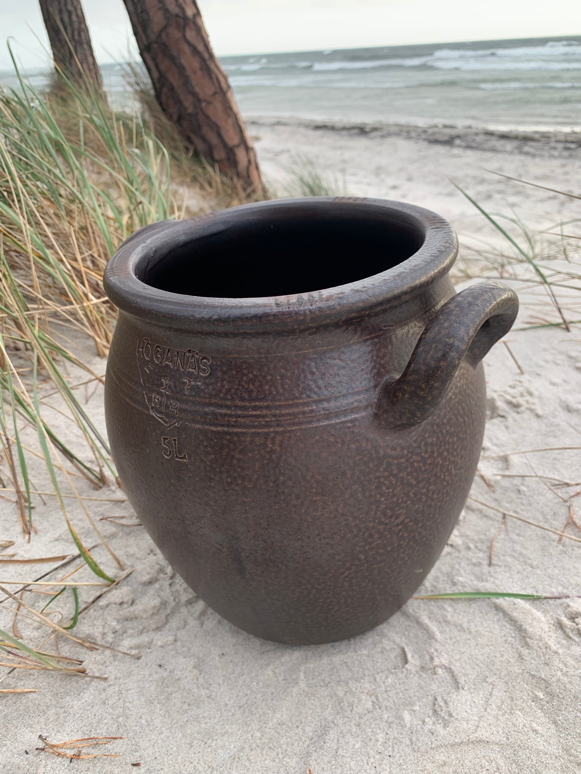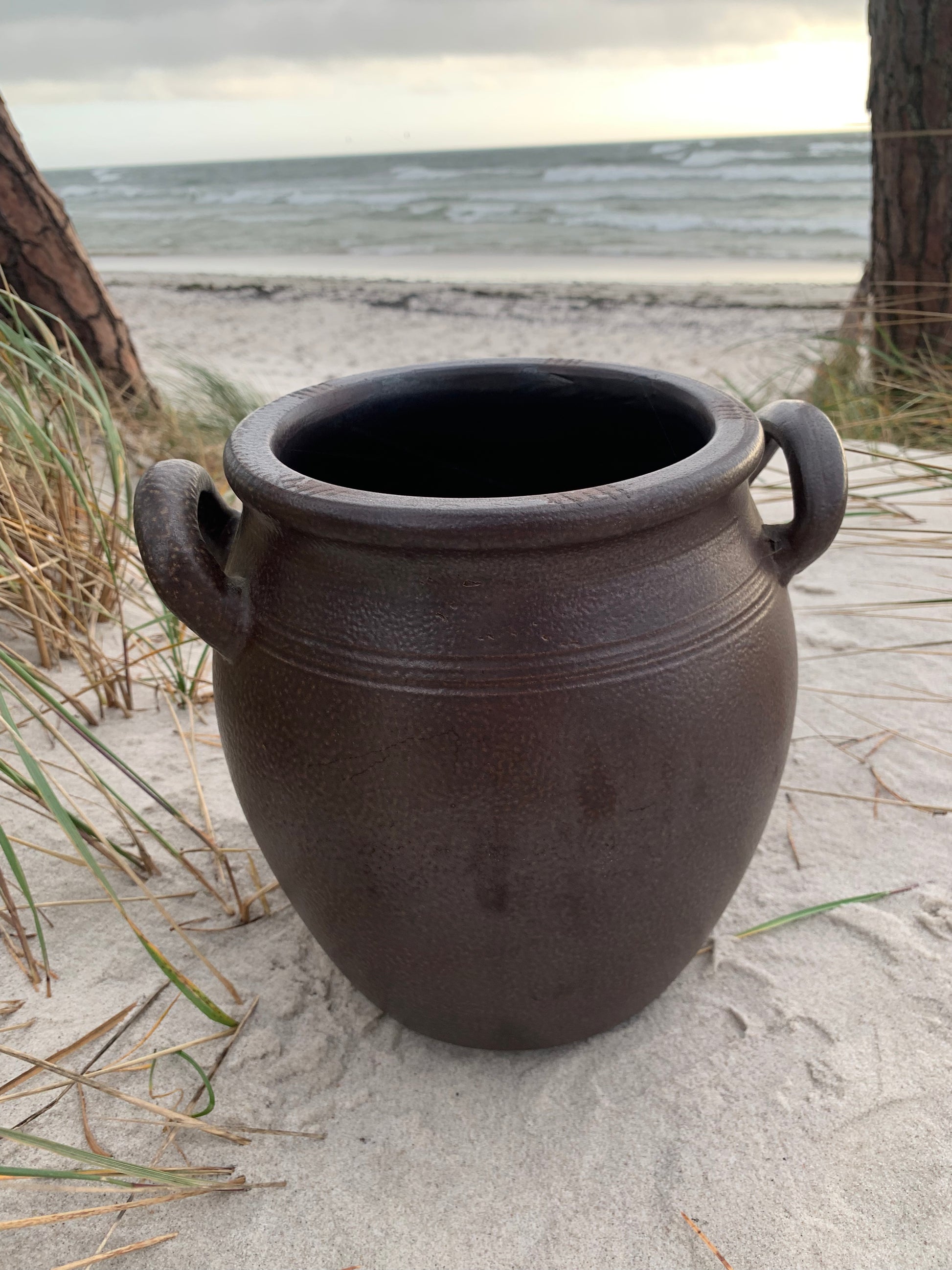 Användbar inläggningsburk som kan användas till en växt eller vad du nu kan tänka dig. Burken är original, charmig och har en patina.