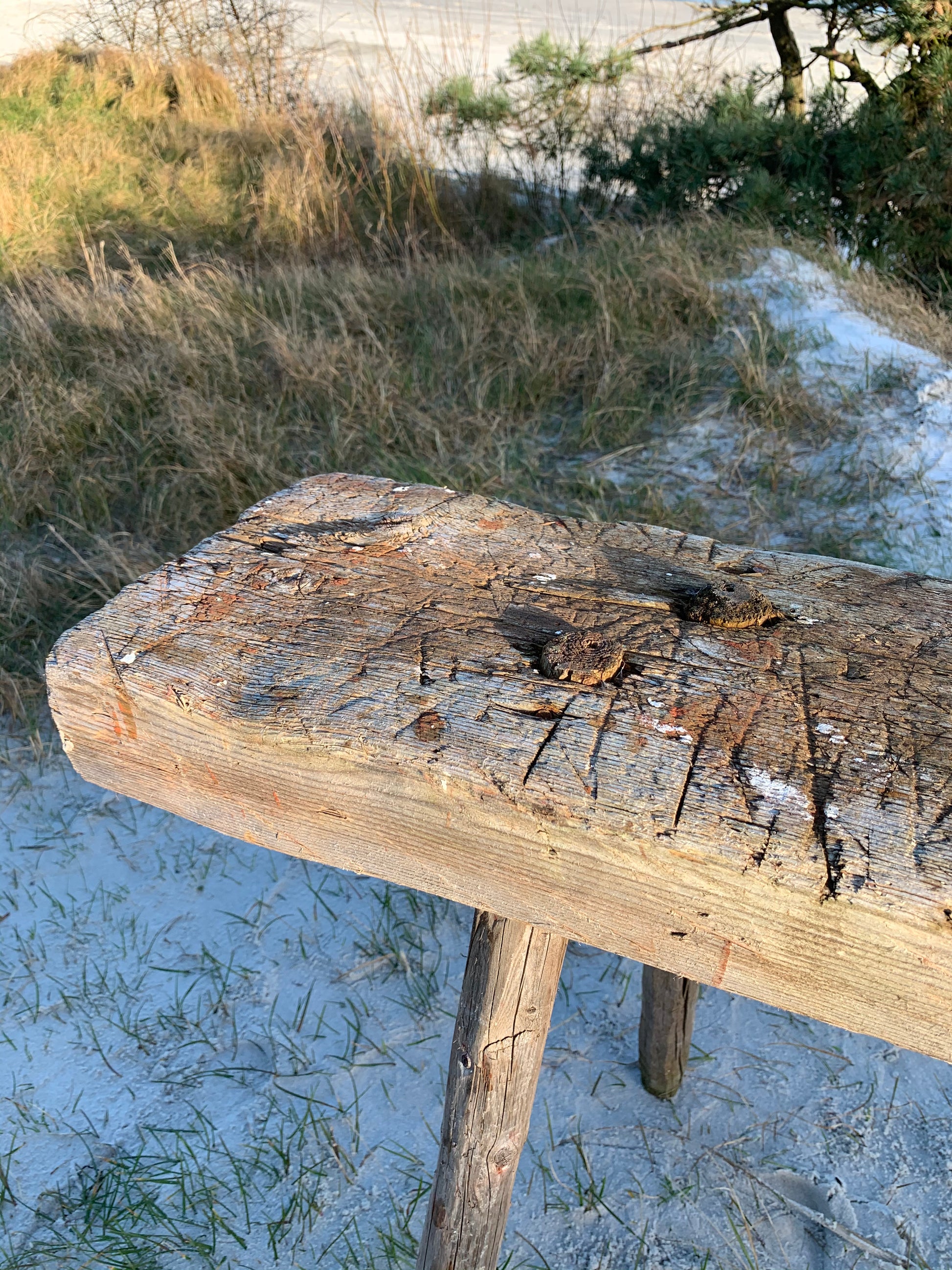 Historia: Den här fina bänken/huggklossen hittades hos en helt fantastisk kvinna, i en helt fantastisk butik där det dessutom luktade nybakat bröd.