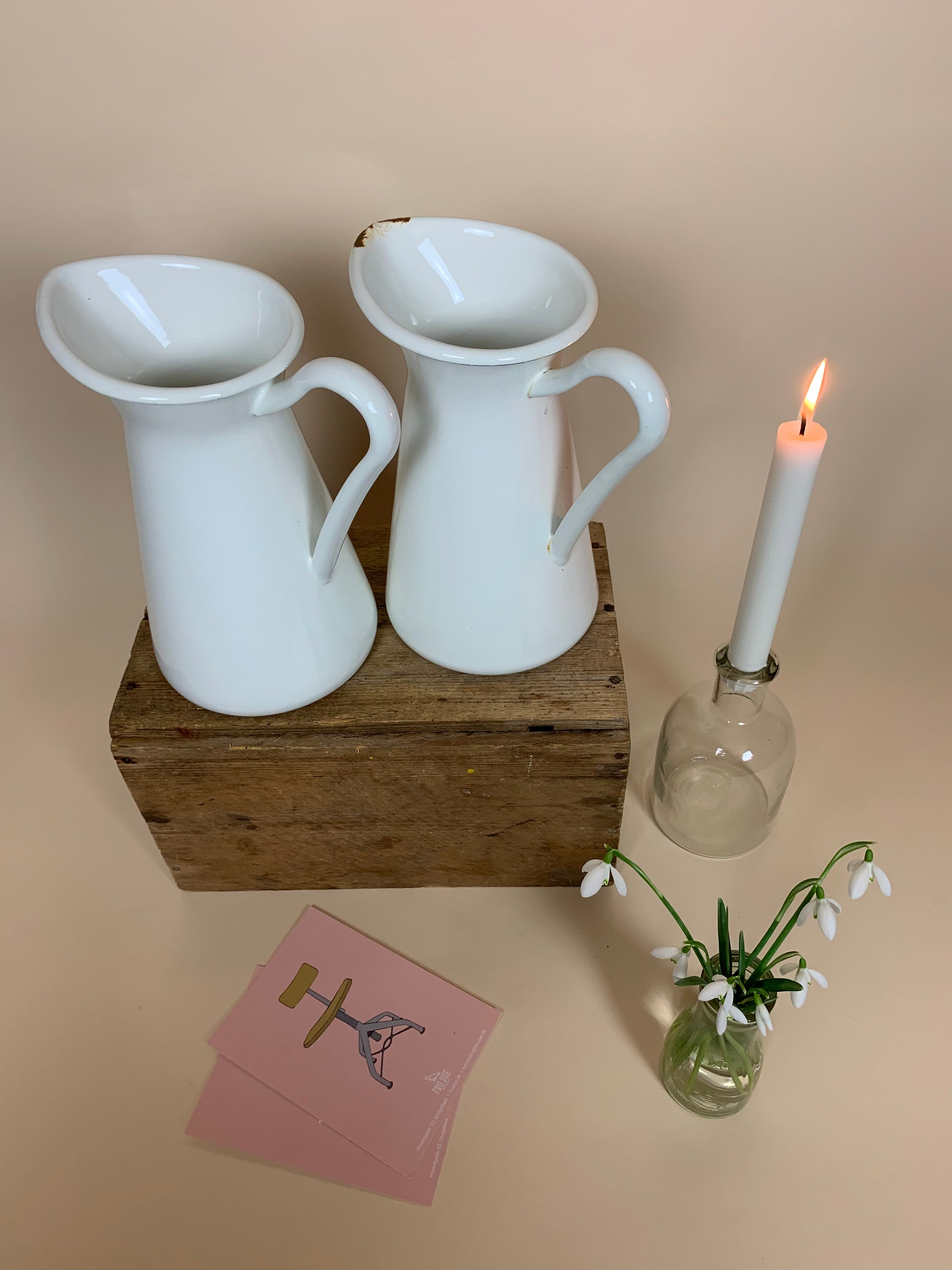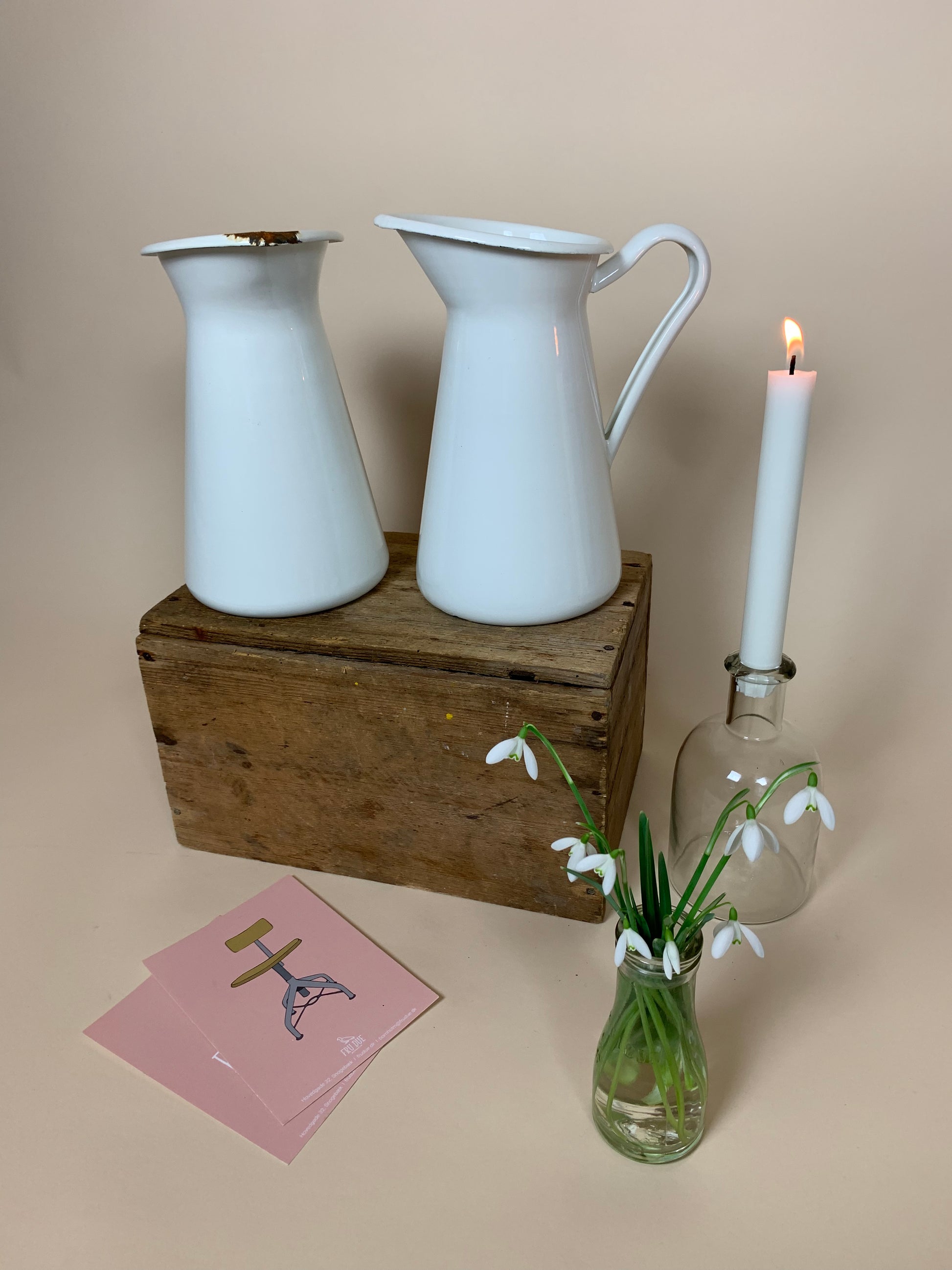 Emaljkanna med läcker patina - Priset är pr PCS.