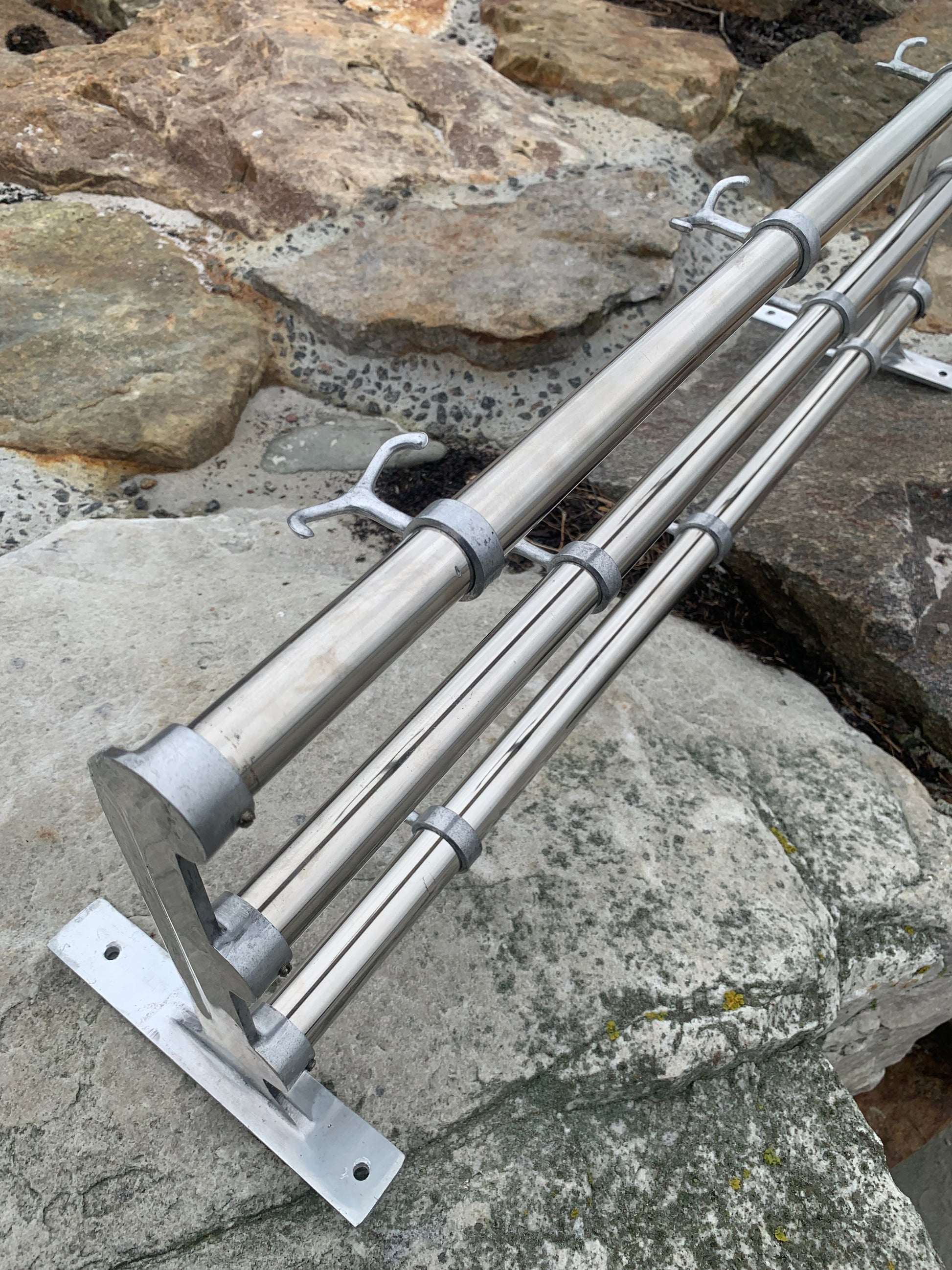 Vacker svensk hatthylla i god design. Tidens tand har tagit ut sin rätt, så den framstår med åldersrelaterade tecken på slitage, vilket bara tyder på att någon förmodligen har varit nöjd med den.