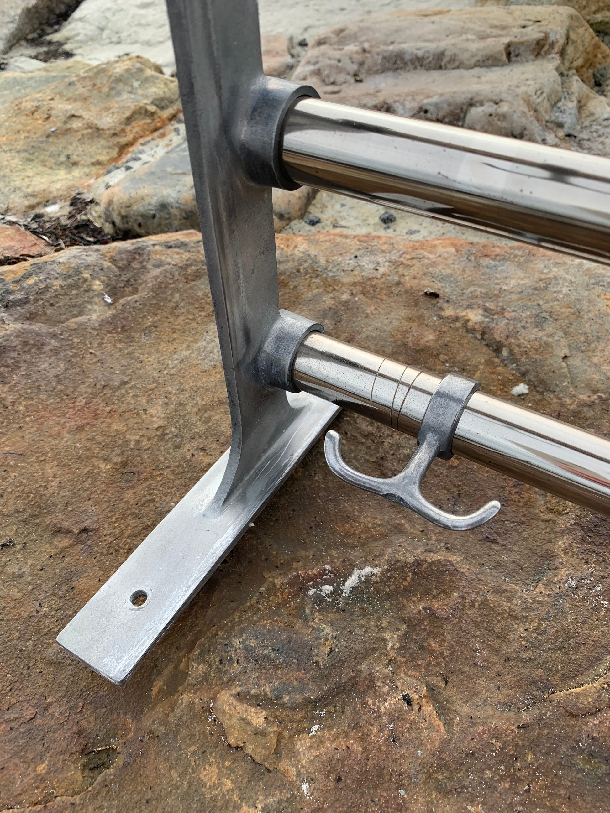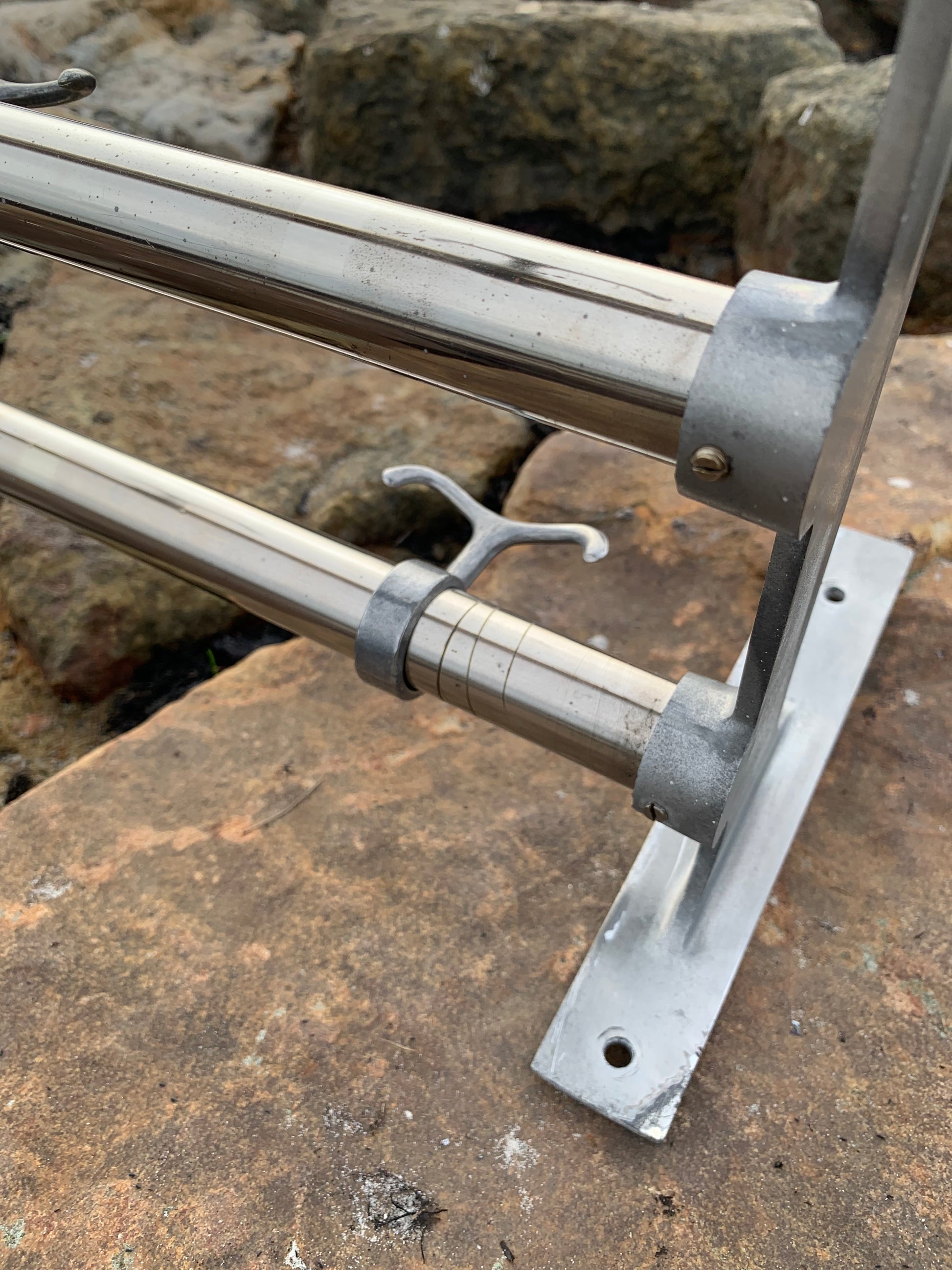 Vacker svensk hatthylla i god design. Hatthyllan har en mycket speciell och särskilt charmig hattkrok. Tidens tand har tagit ut sin rätt på hatthyllan, så den framstår med åldersrelaterade tecken på slitage, vilket bara tyder på att någon förmodligen har varit nöjd med den.