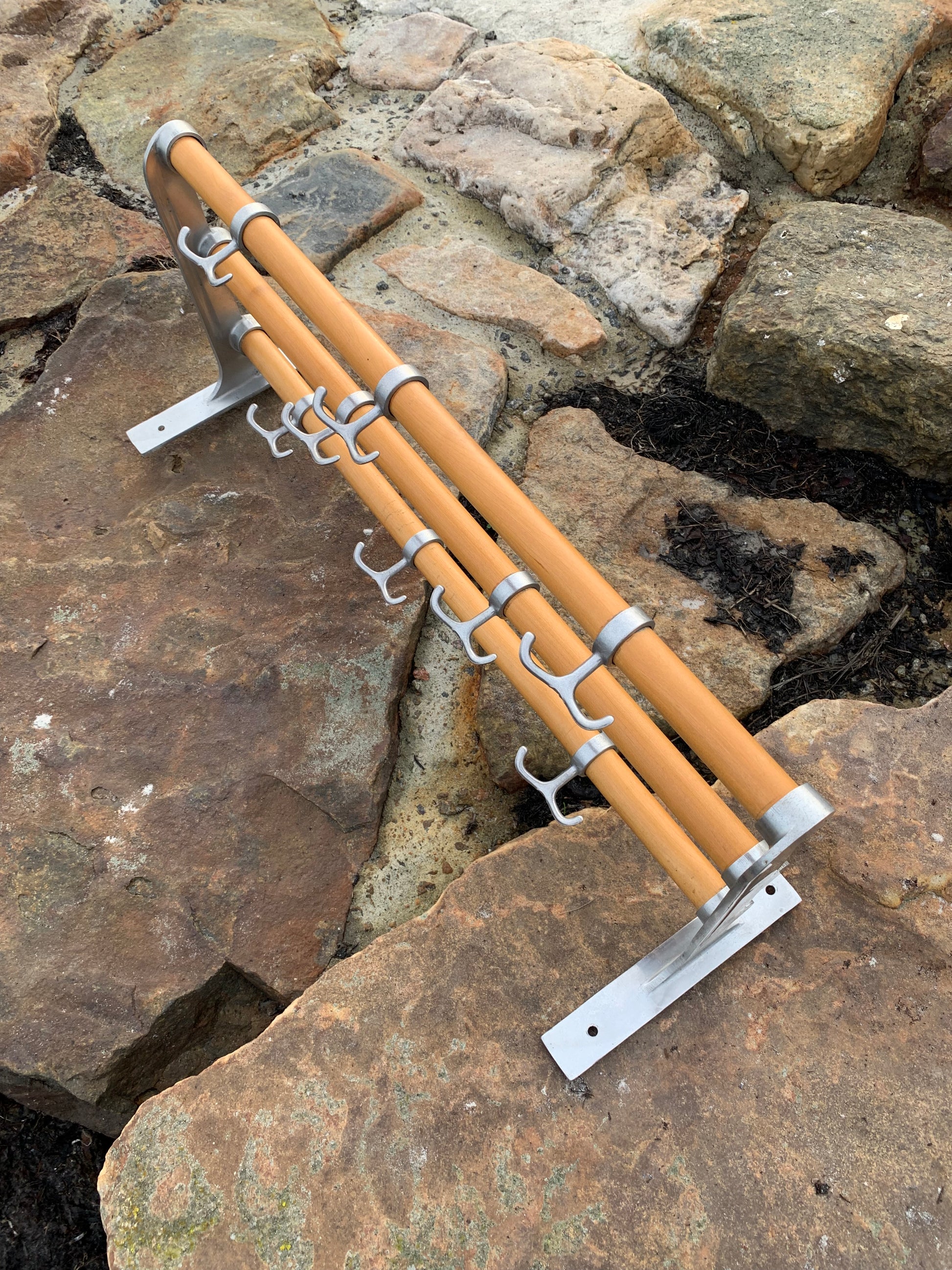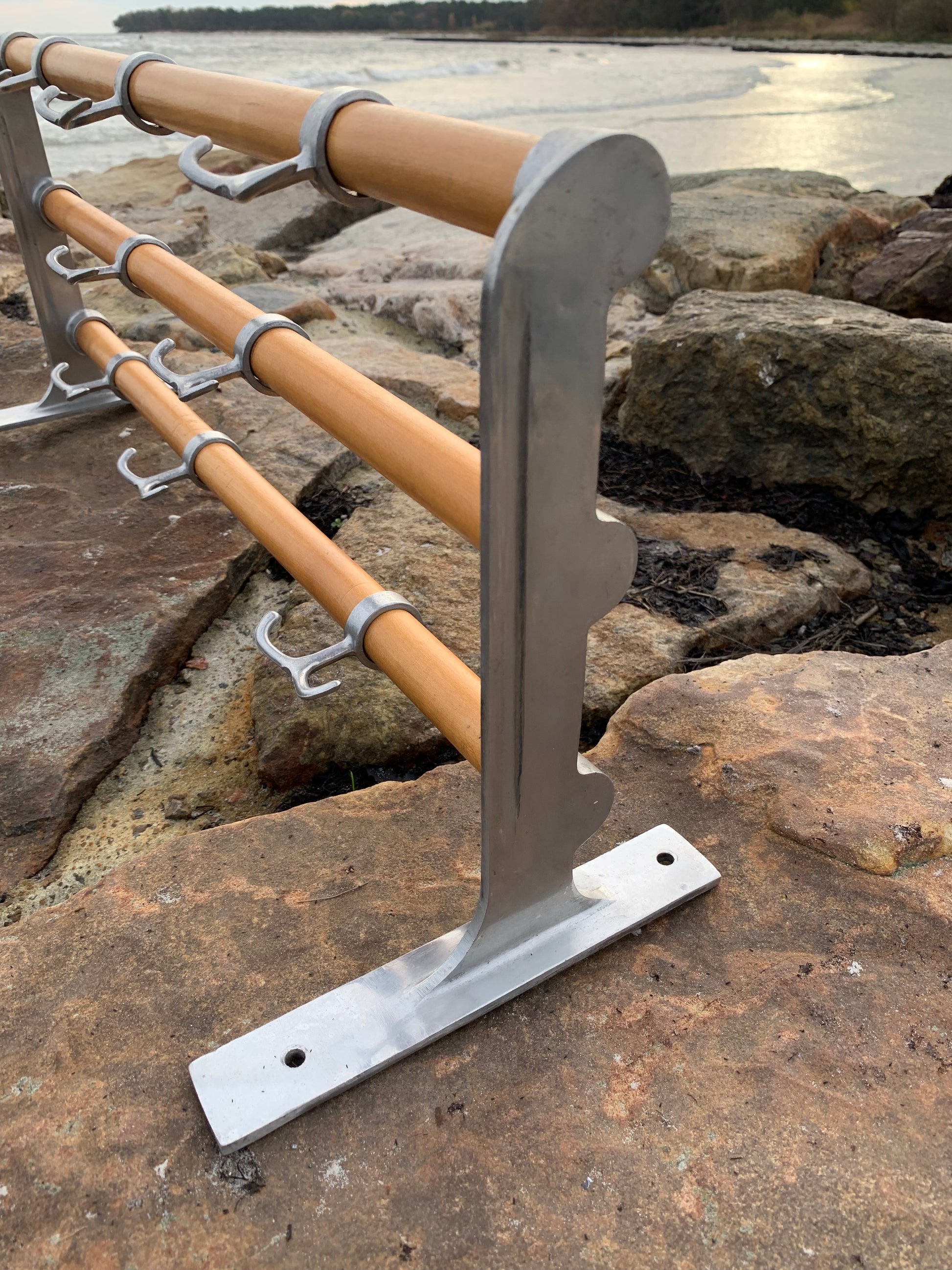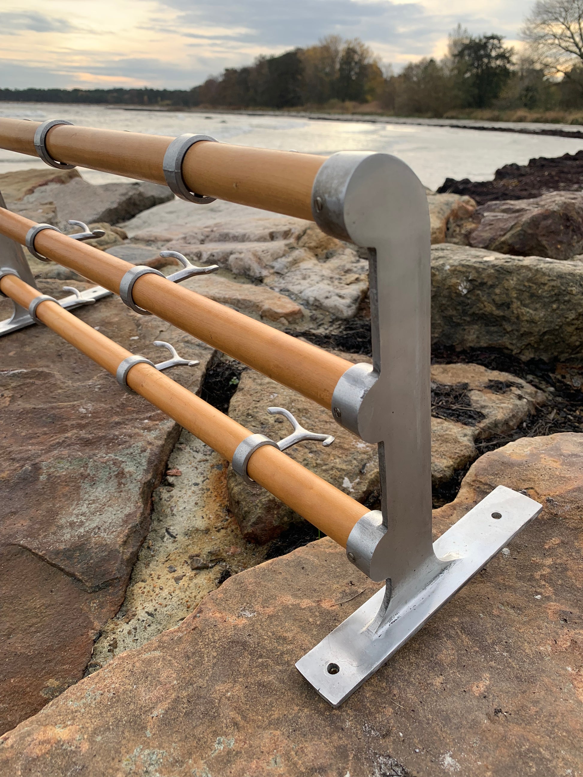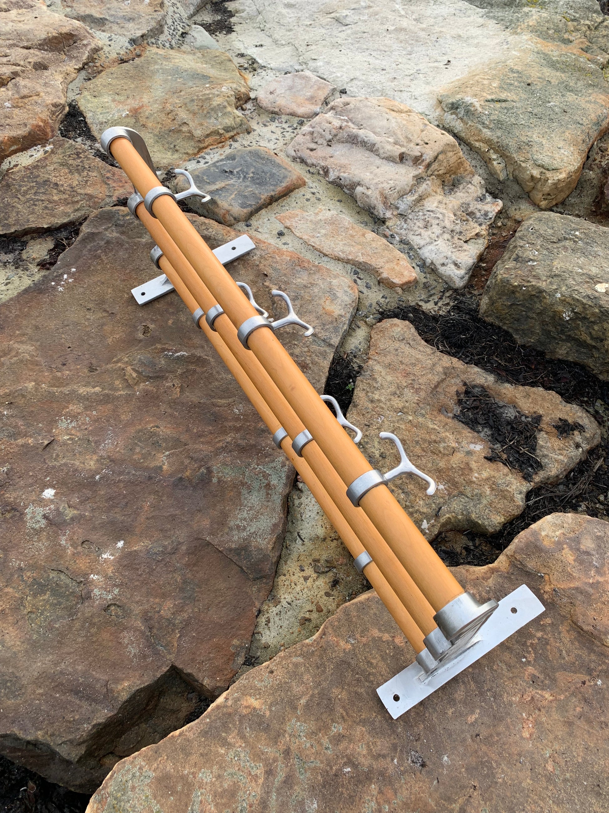 Vacker svensk hatthylla i god design av Gunnar Bolin. Tidens tand har tagit ut sin rätt, så den framstår med åldersrelaterade tecken på slitage, vilket bara tyder på att någon förmodligen har varit nöjd med den.