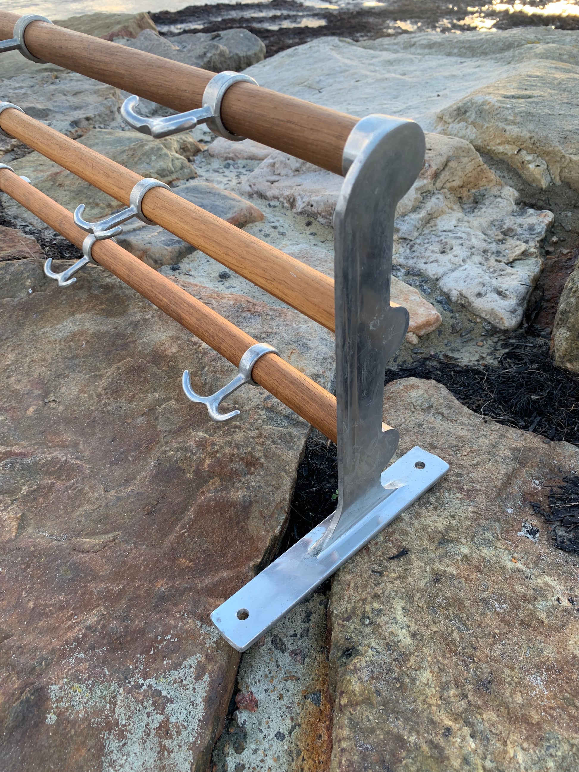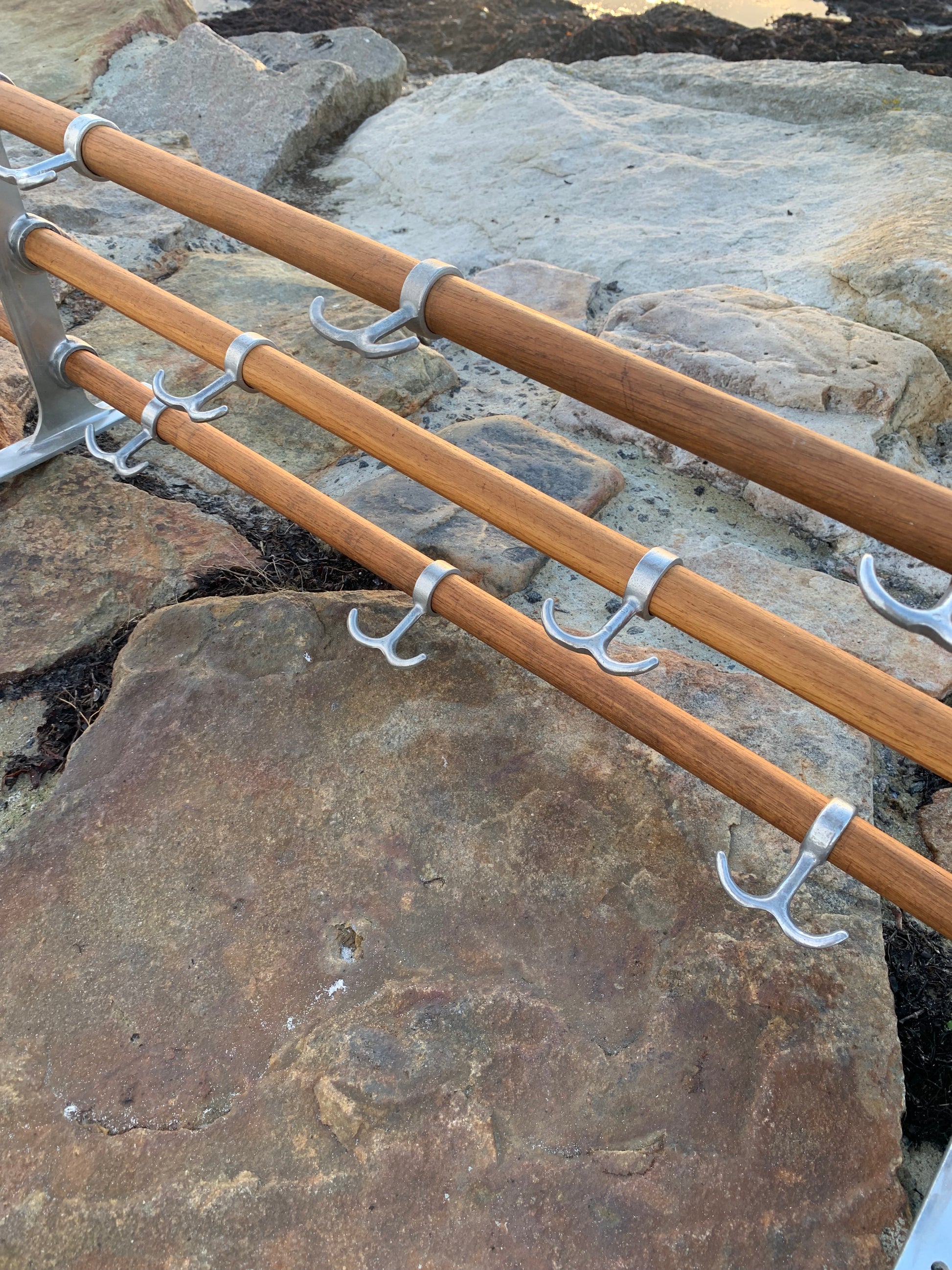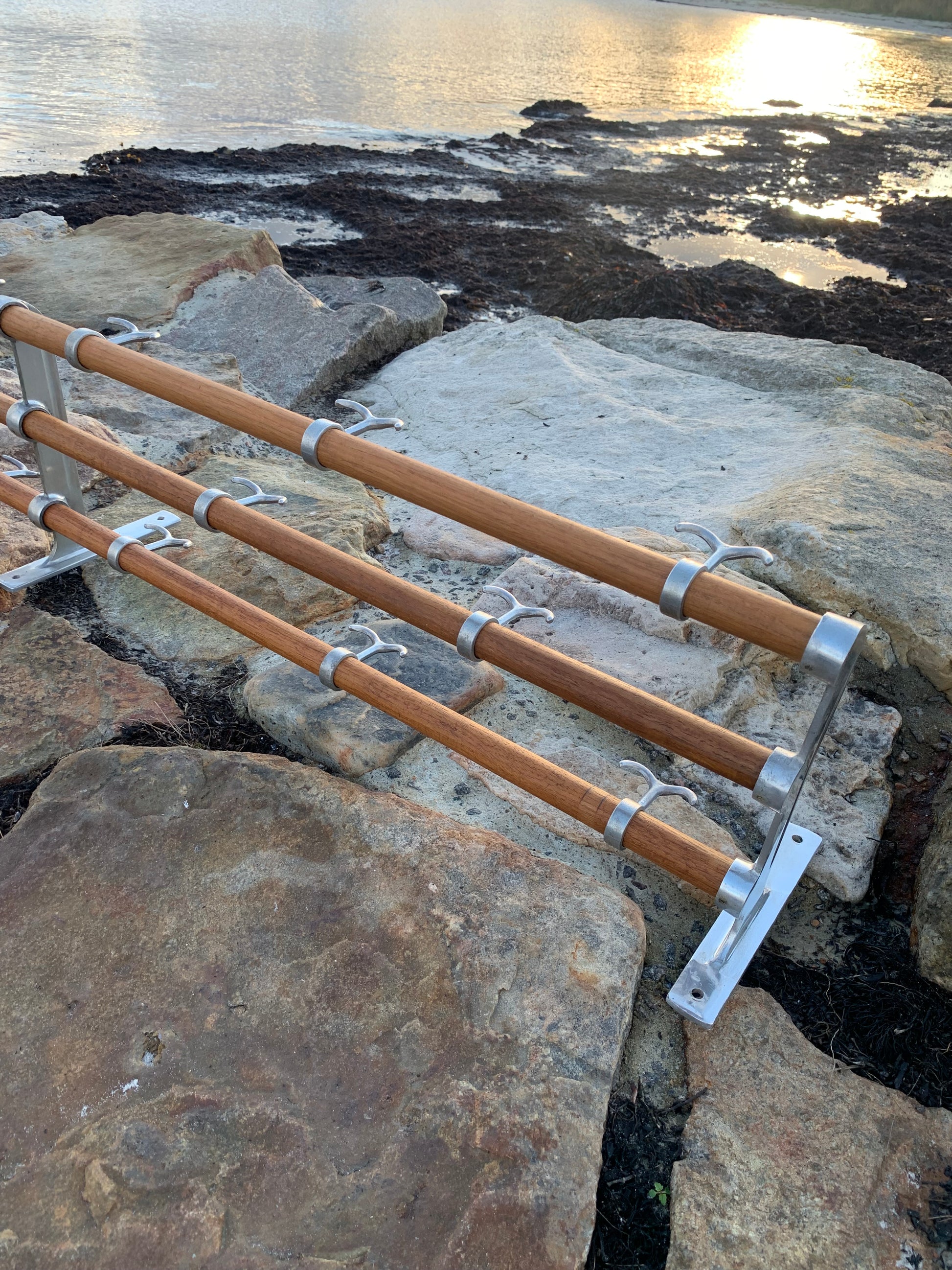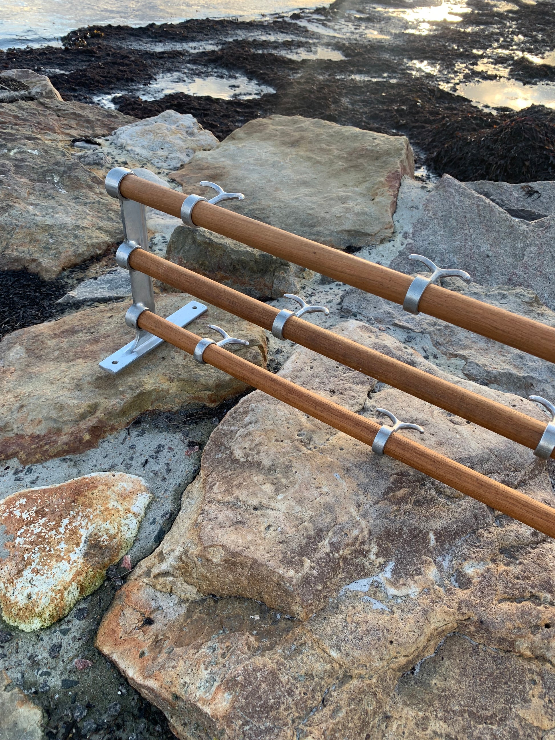 Vacker svensk hatthylla i god design av Gunnar Bolin. Tidens tand har tagit ut sin rätt, så den framstår med åldersrelaterade tecken på slitage, vilket bara tyder på att någon förmodligen har varit nöjd med den.