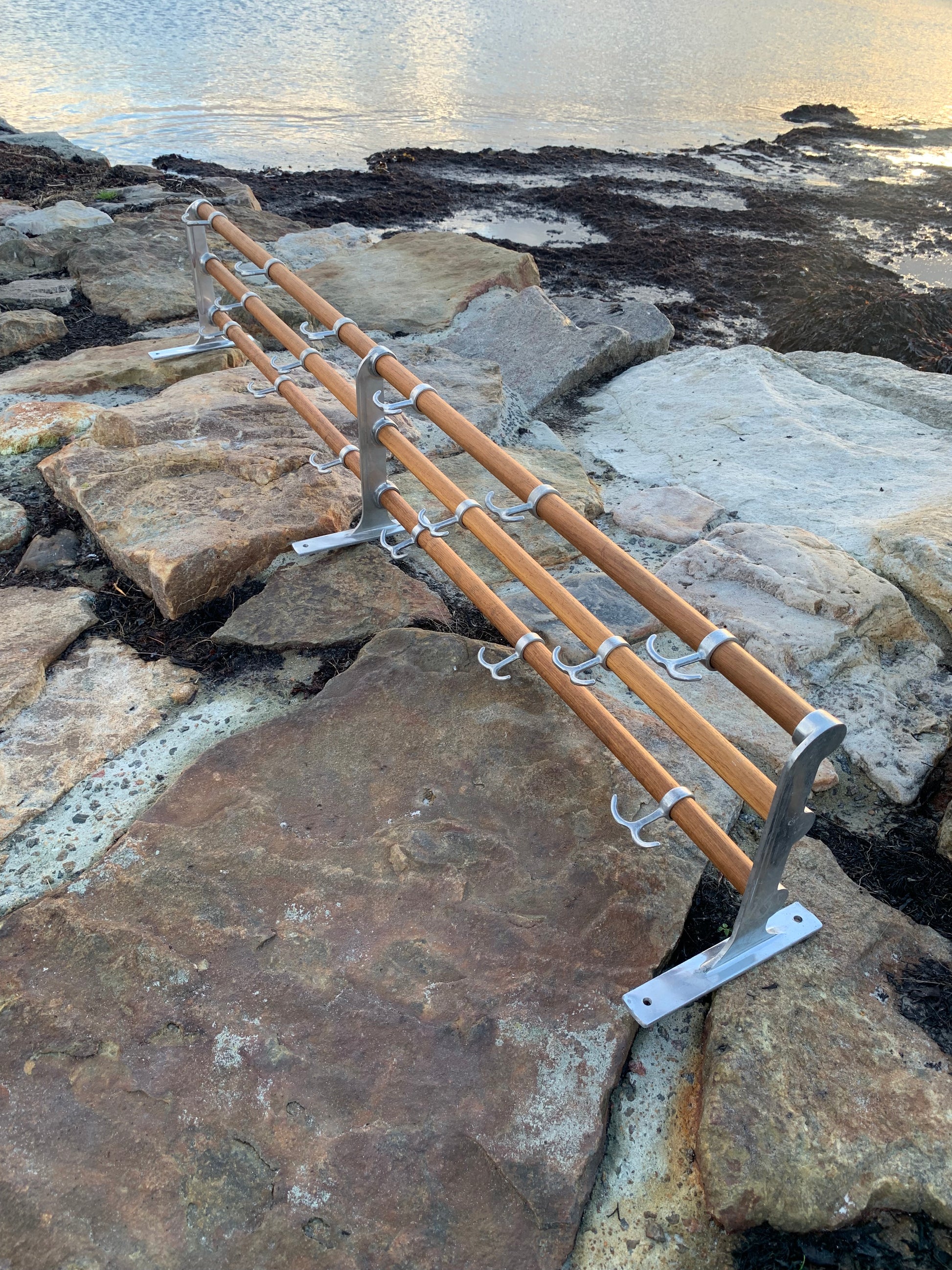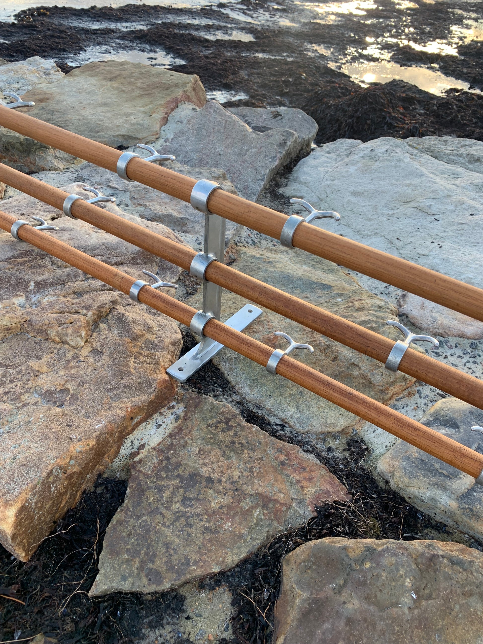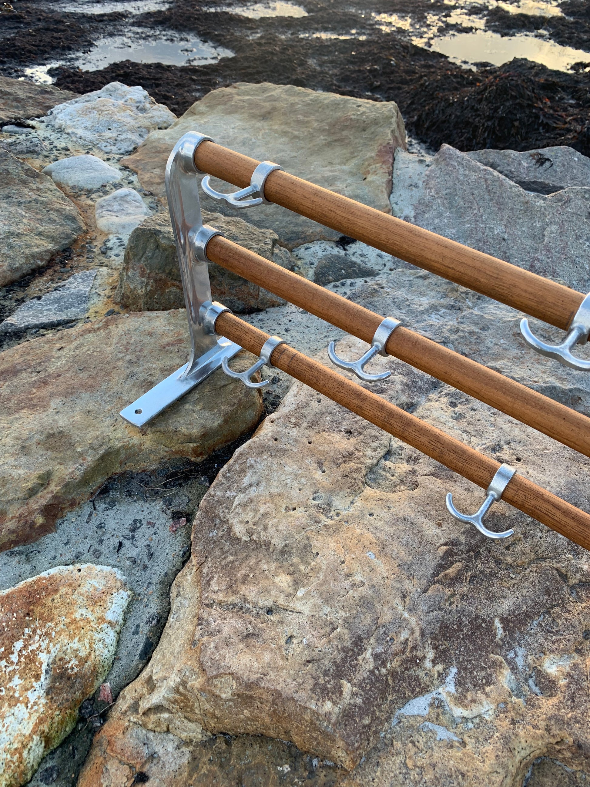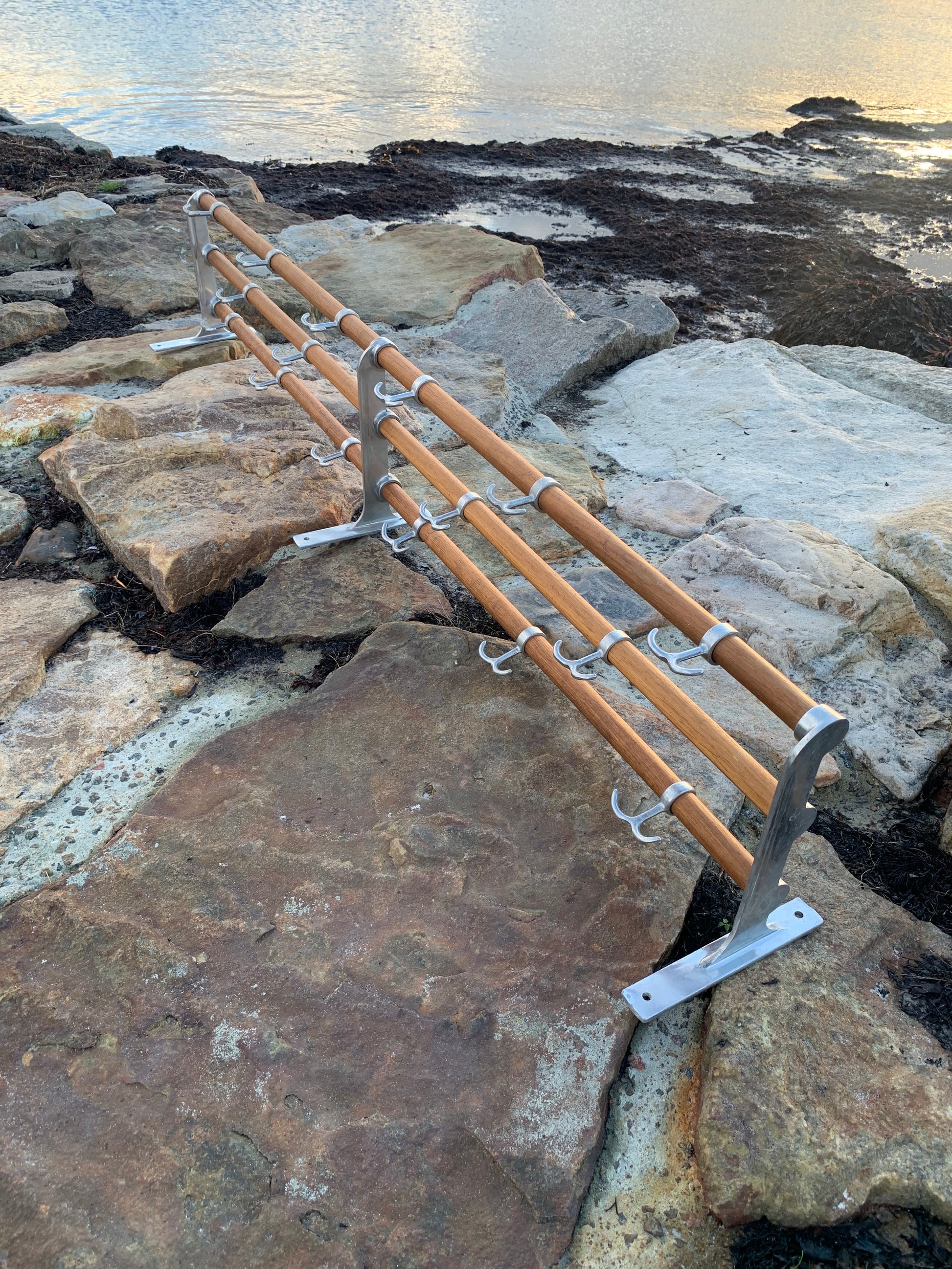 Vacker svensk hatthylla i god design av Gunnar Bolin. Tidens tand har tagit ut sin rätt, så den framstår med åldersrelaterade tecken på slitage, vilket bara tyder på att någon förmodligen har varit nöjd med den.