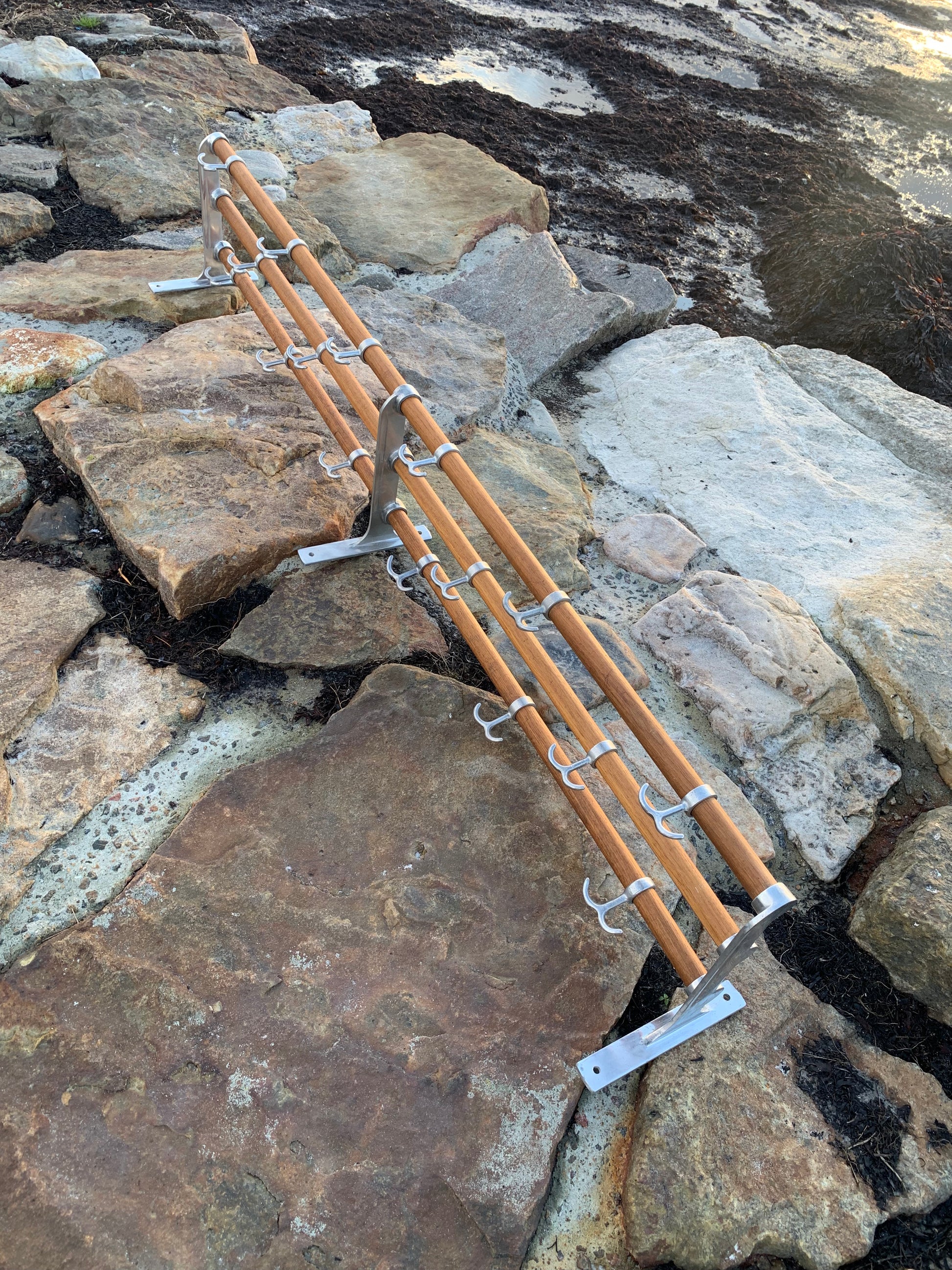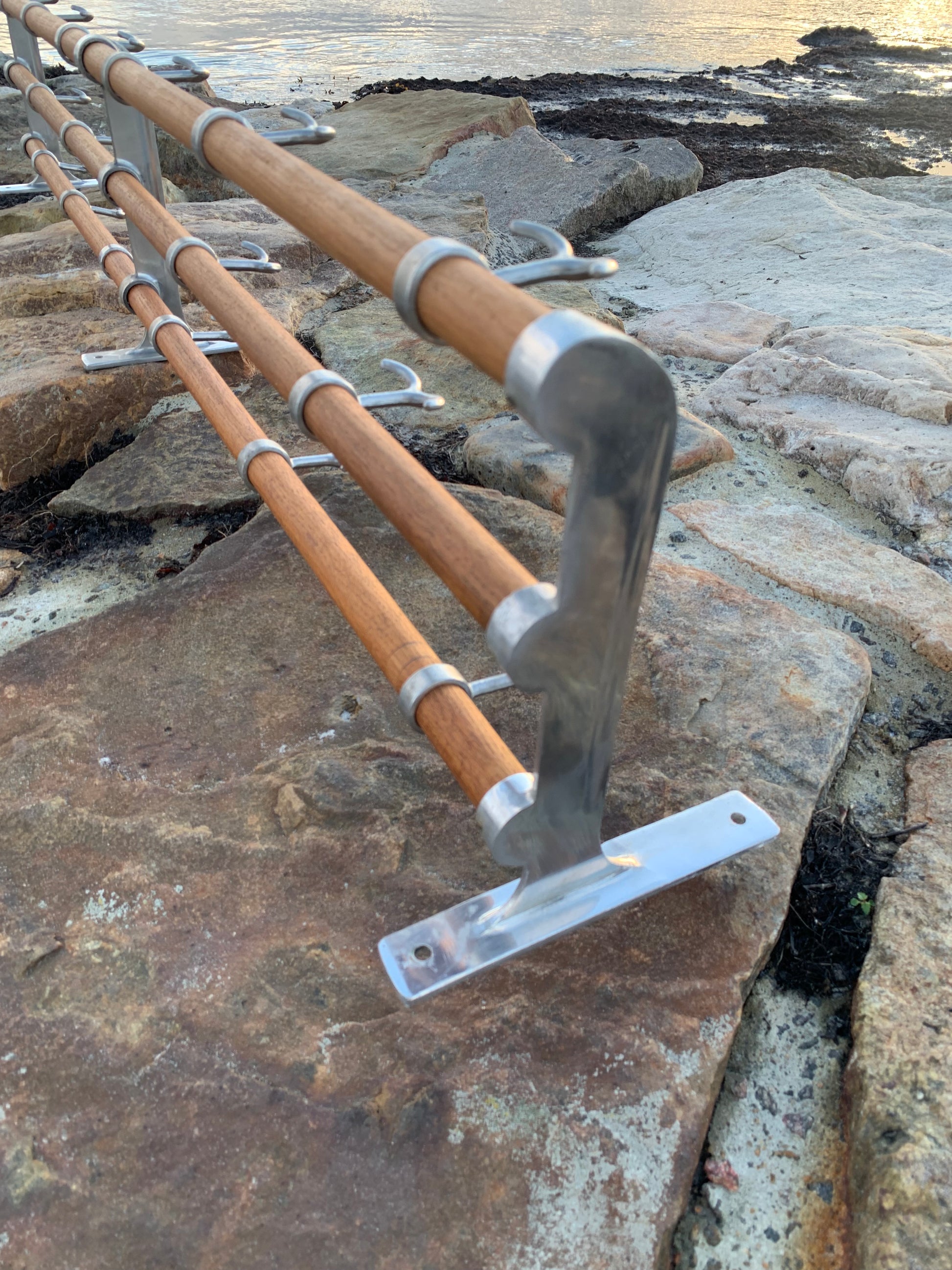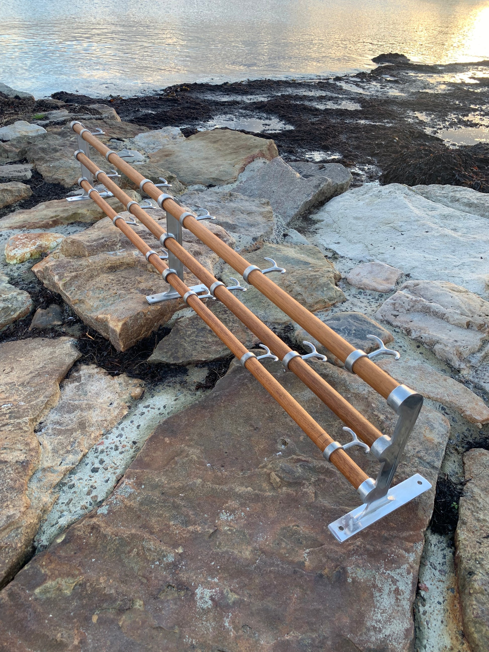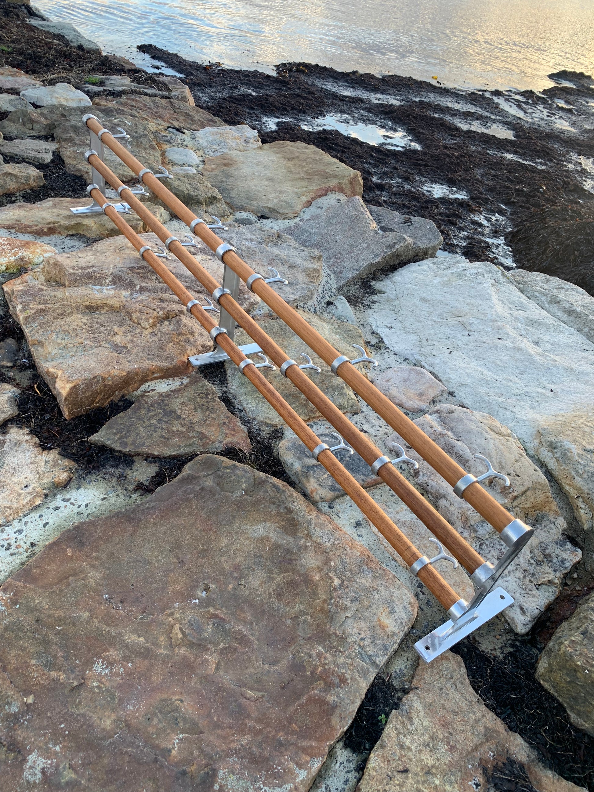 Vacker svensk hatthylla i god design av Gunnar Bolin. Tidens tand har tagit ut sin rätt, så den framstår med åldersrelaterade tecken på slitage, vilket bara tyder på att någon förmodligen har varit nöjd med den.