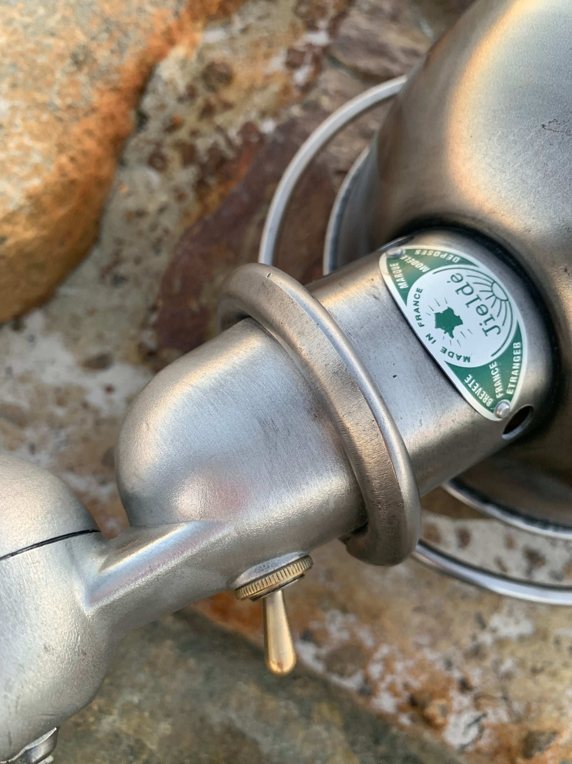Denna lampa är en vintageversion som har blivit varsamt restaurerad av en fransk hantverkare. Han är mycket noggrann och – enligt vår mening – vet verkligen hur man bevarar det vackra uttryck som dessa lampor har.