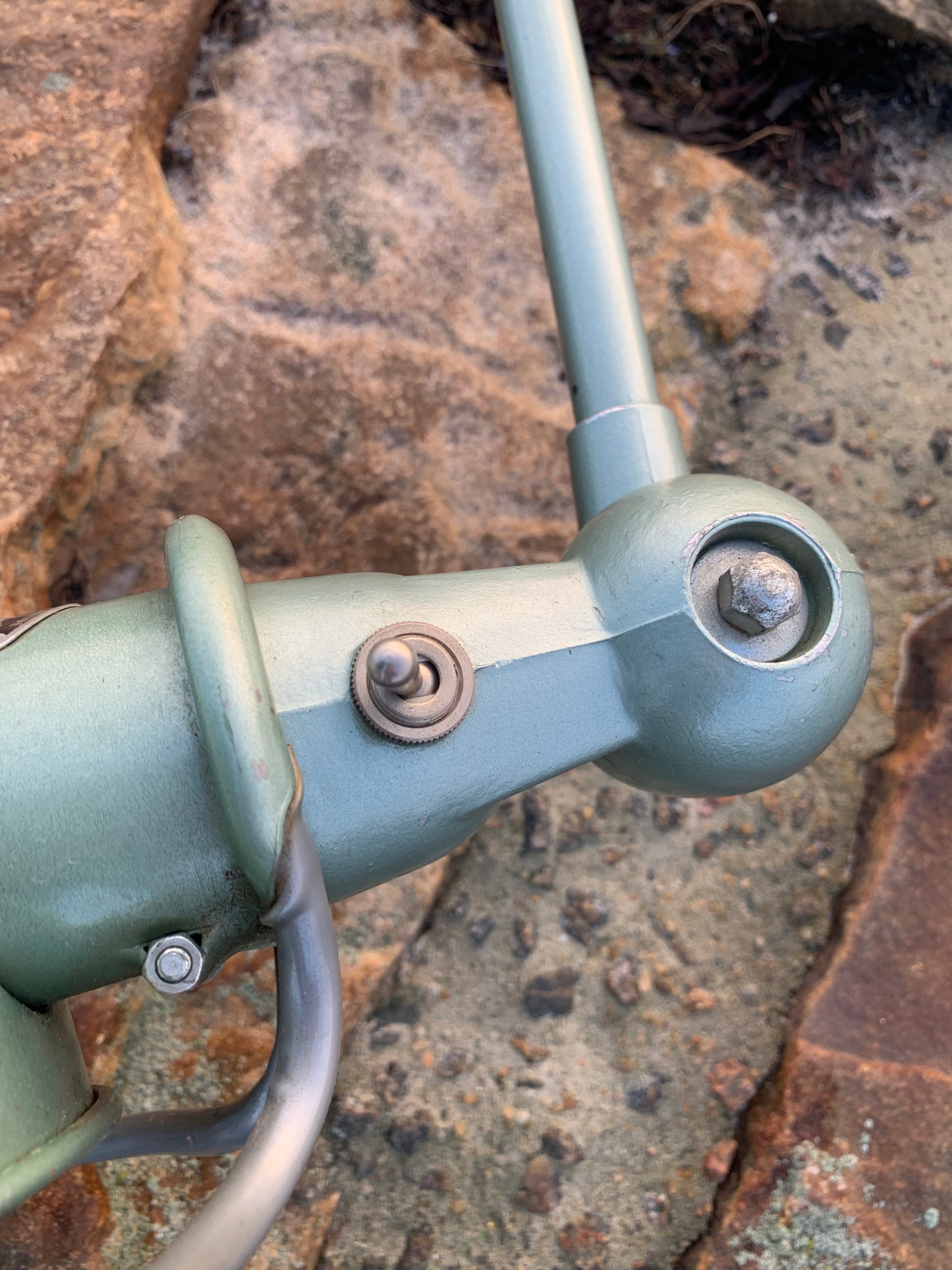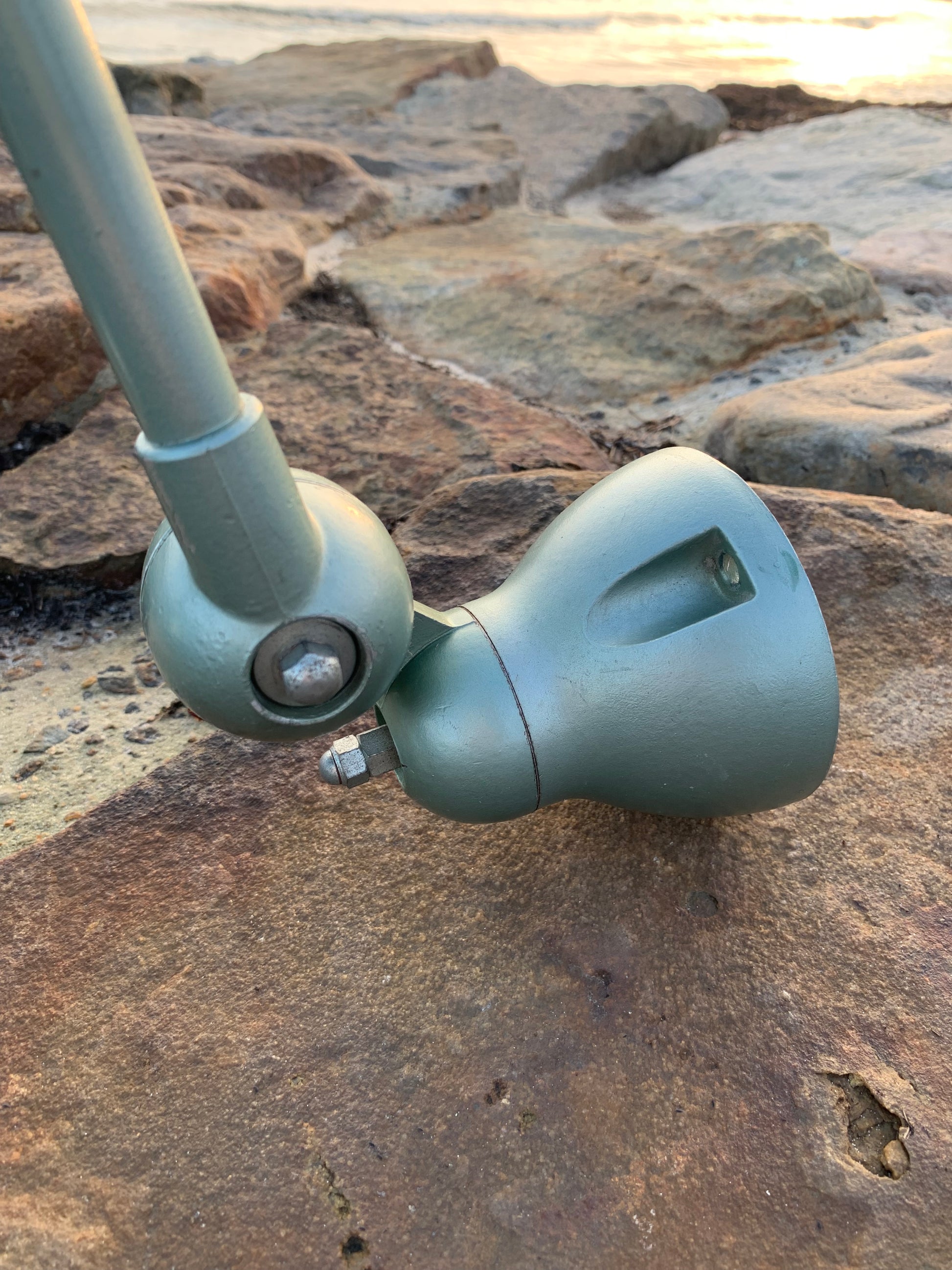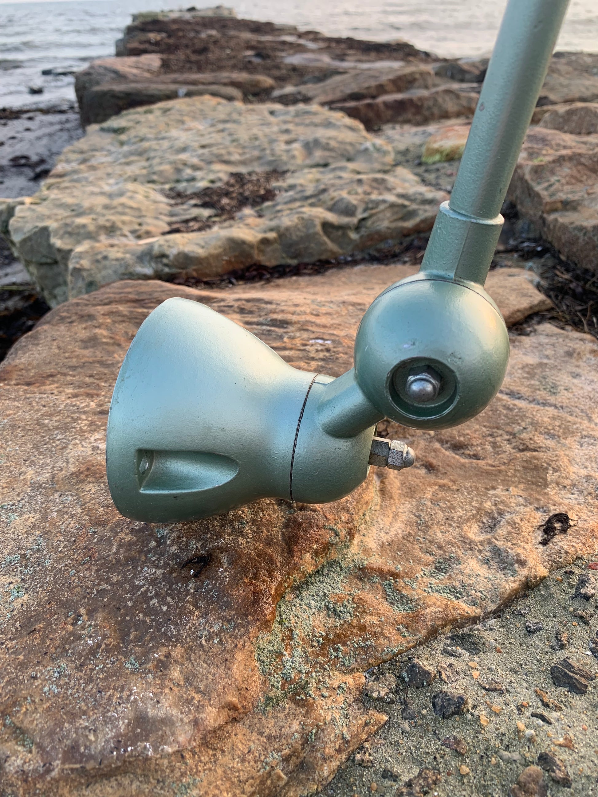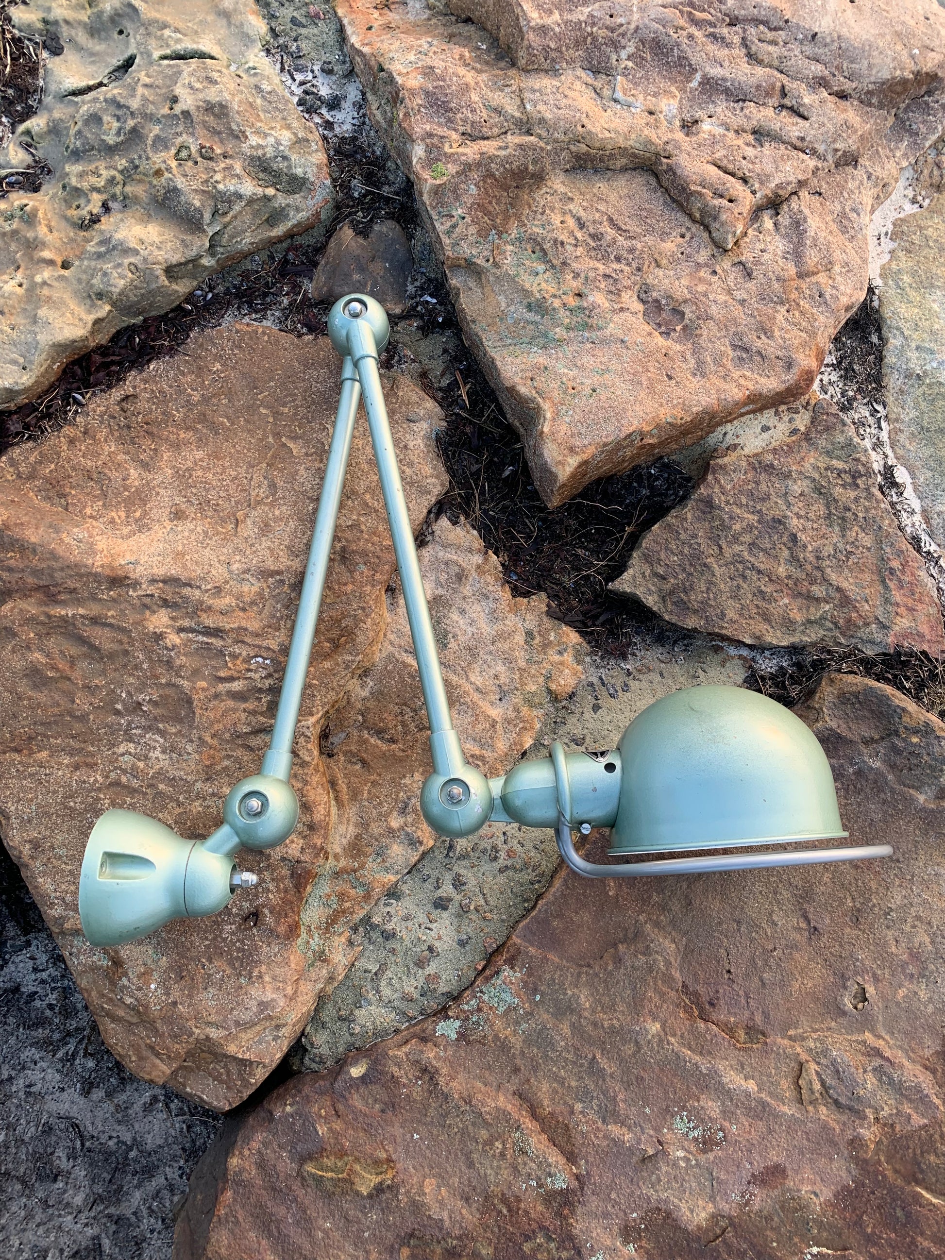 Vacker klassisk Jieldé-lampa i en härlig grön färg. Lampan har vissa åldersrelaterade bruksspår, vilket en sådan lampa (enligt oss) borde ha.