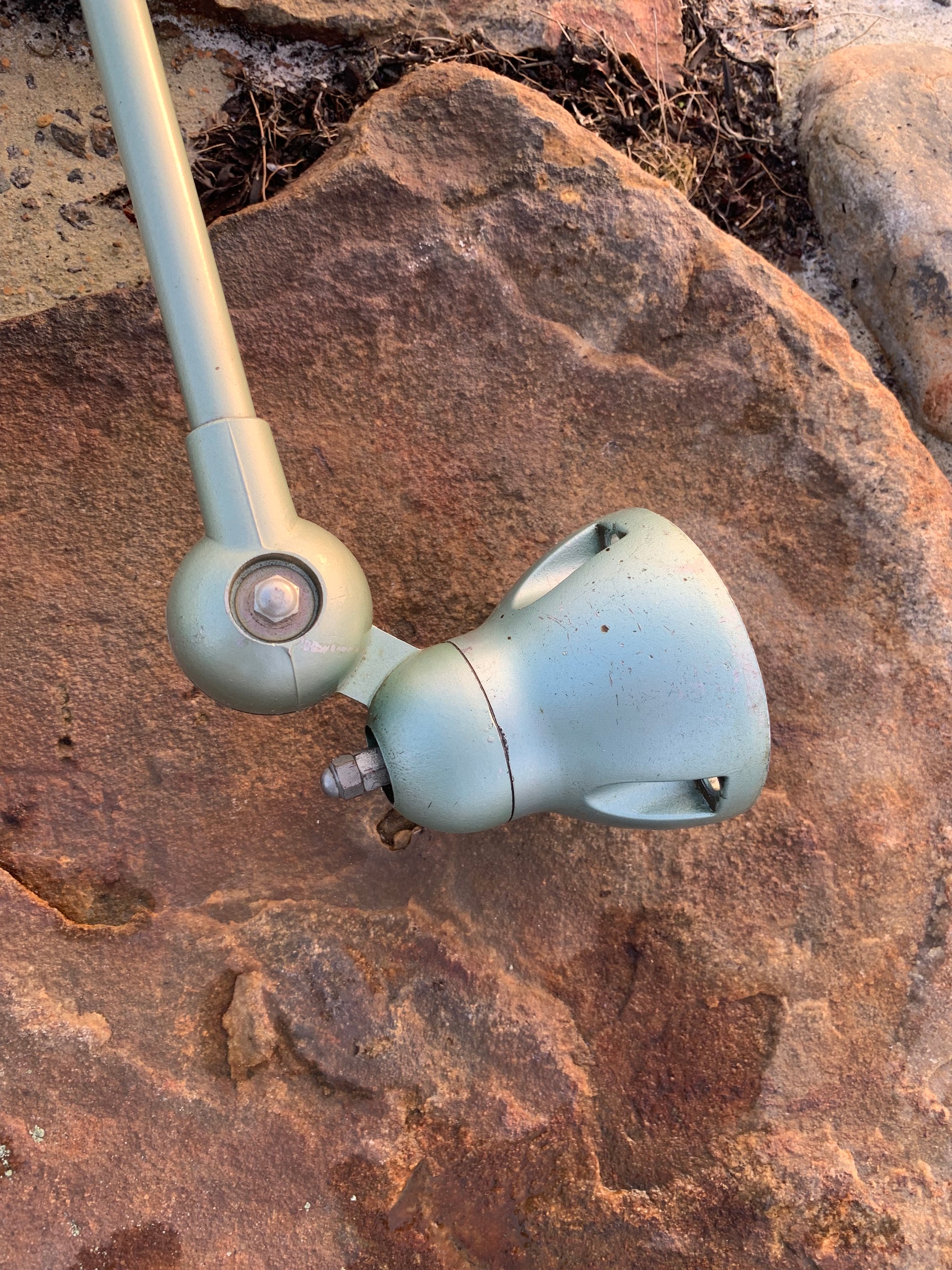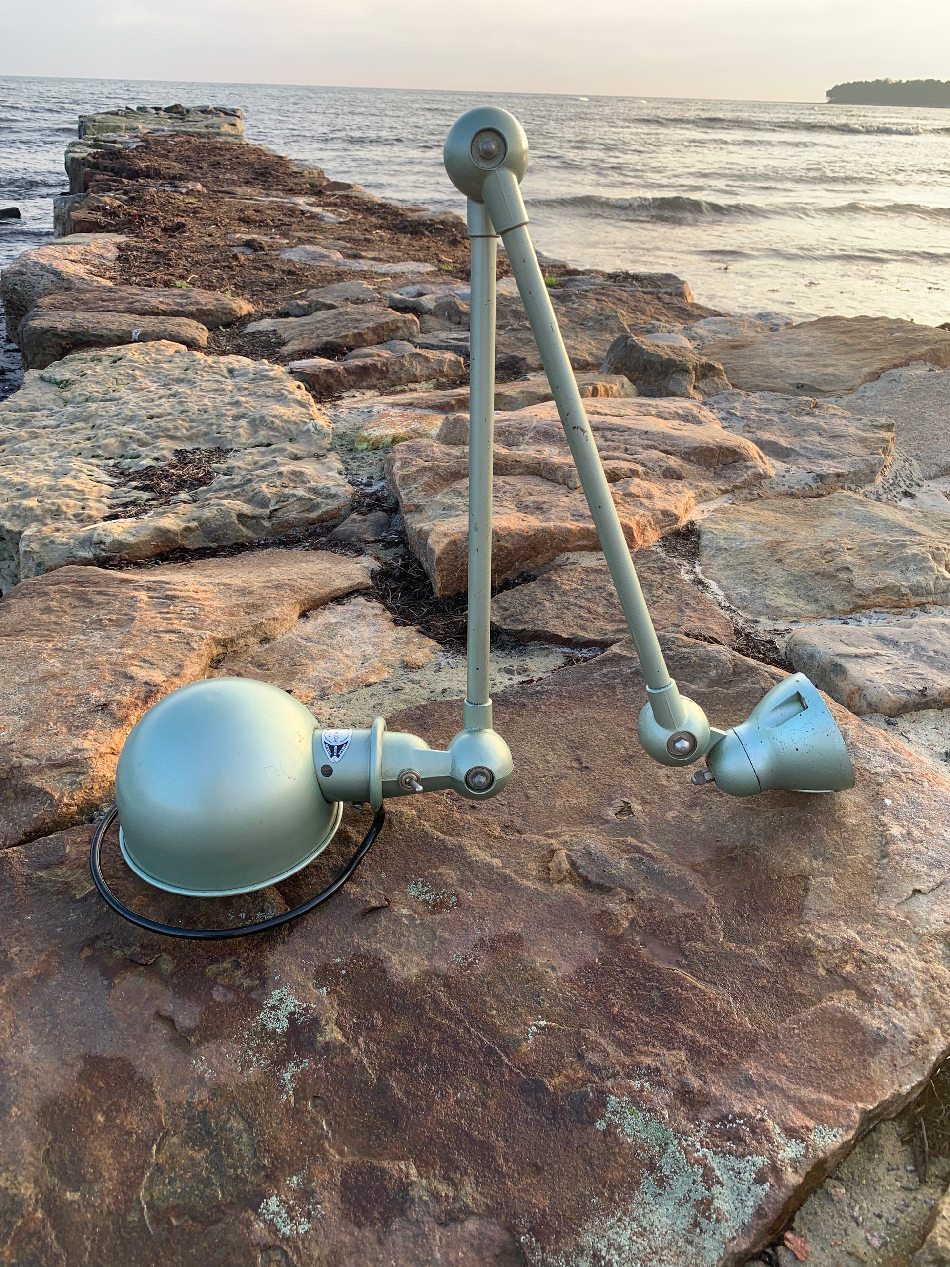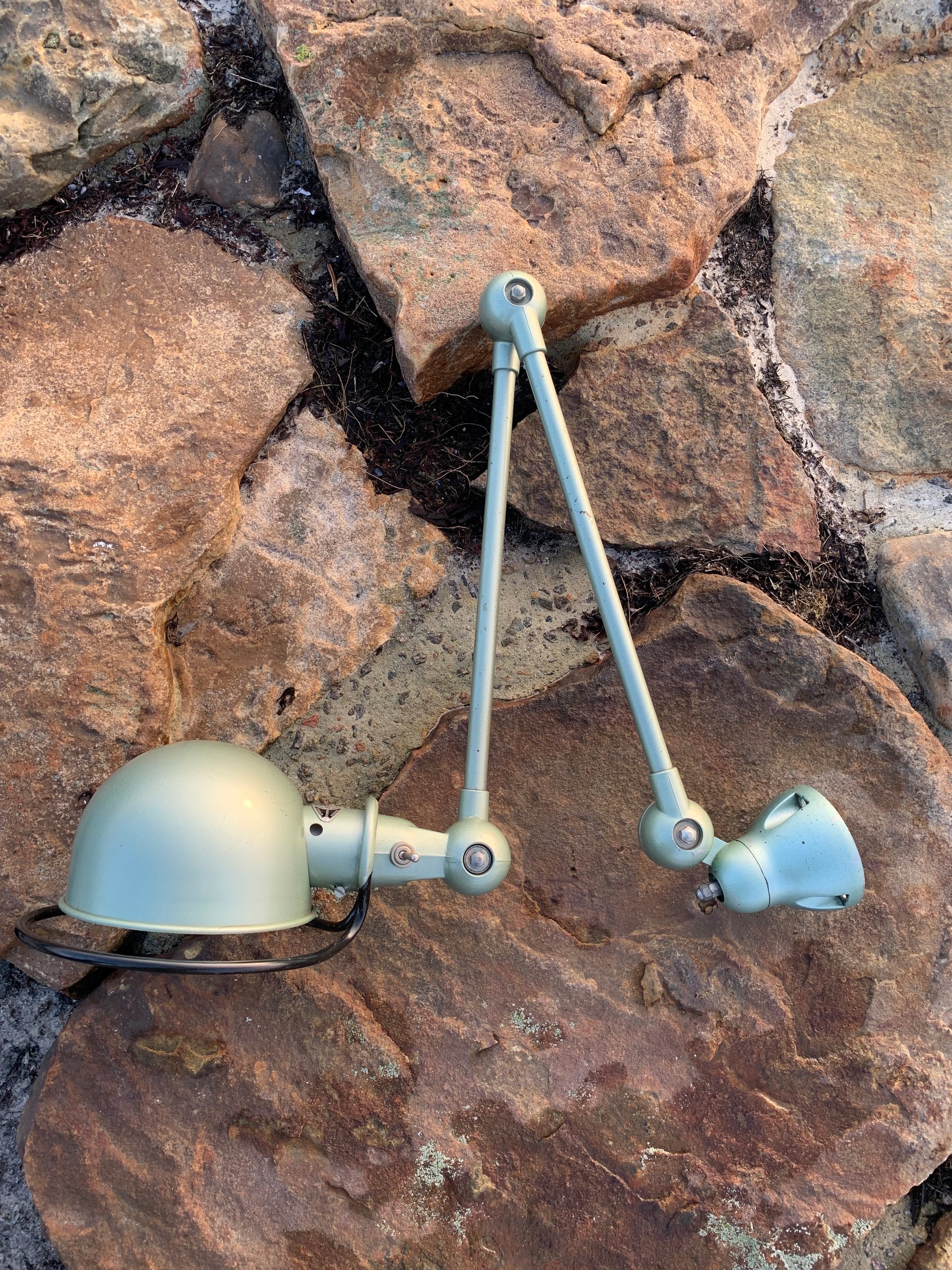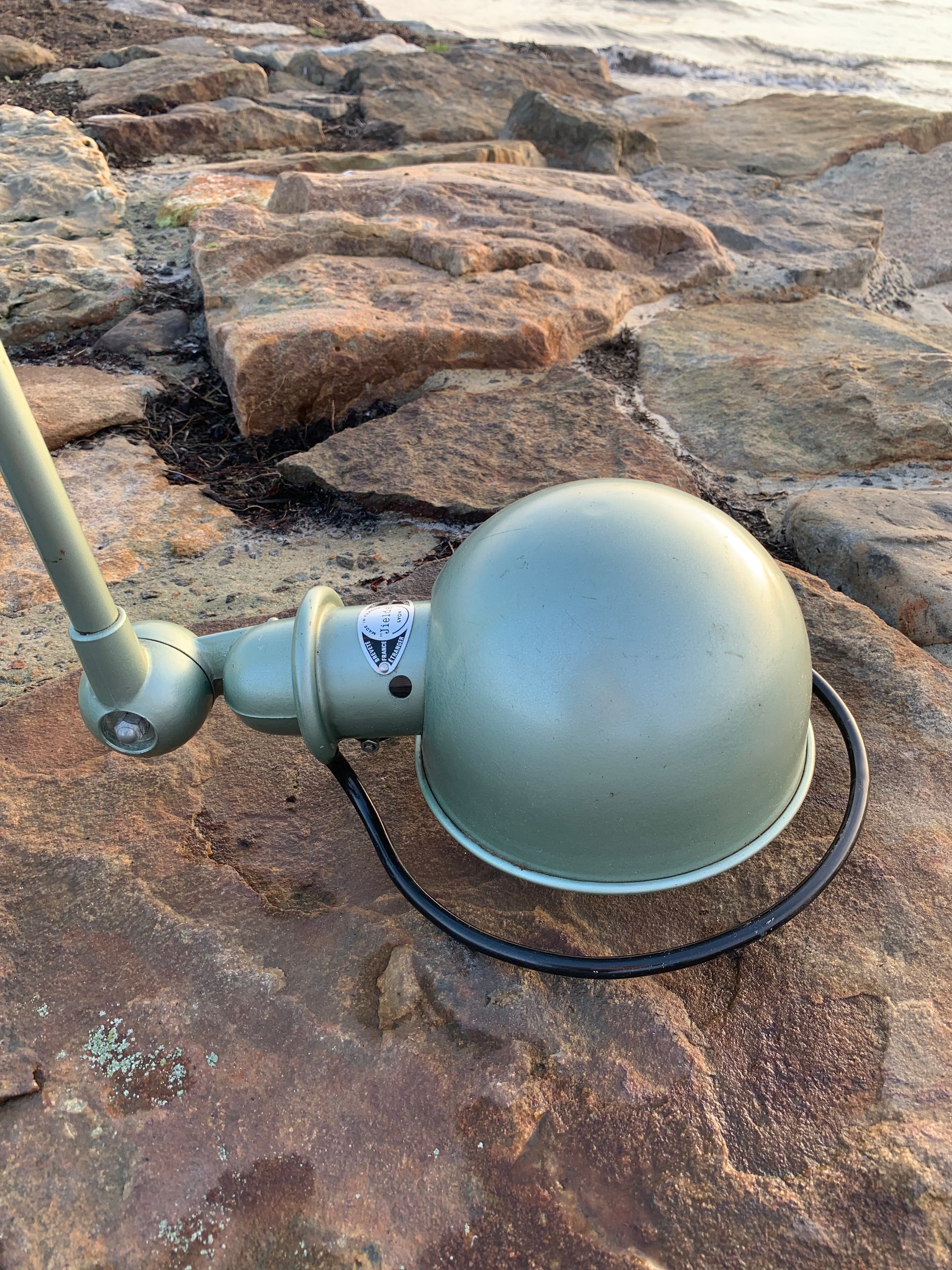Vacker klassisk Jieldé-lampa i en härlig grön färg. Lampan har vissa åldersrelaterade bruksspår, vilket en sådan lampa (enligt oss) borde ha.