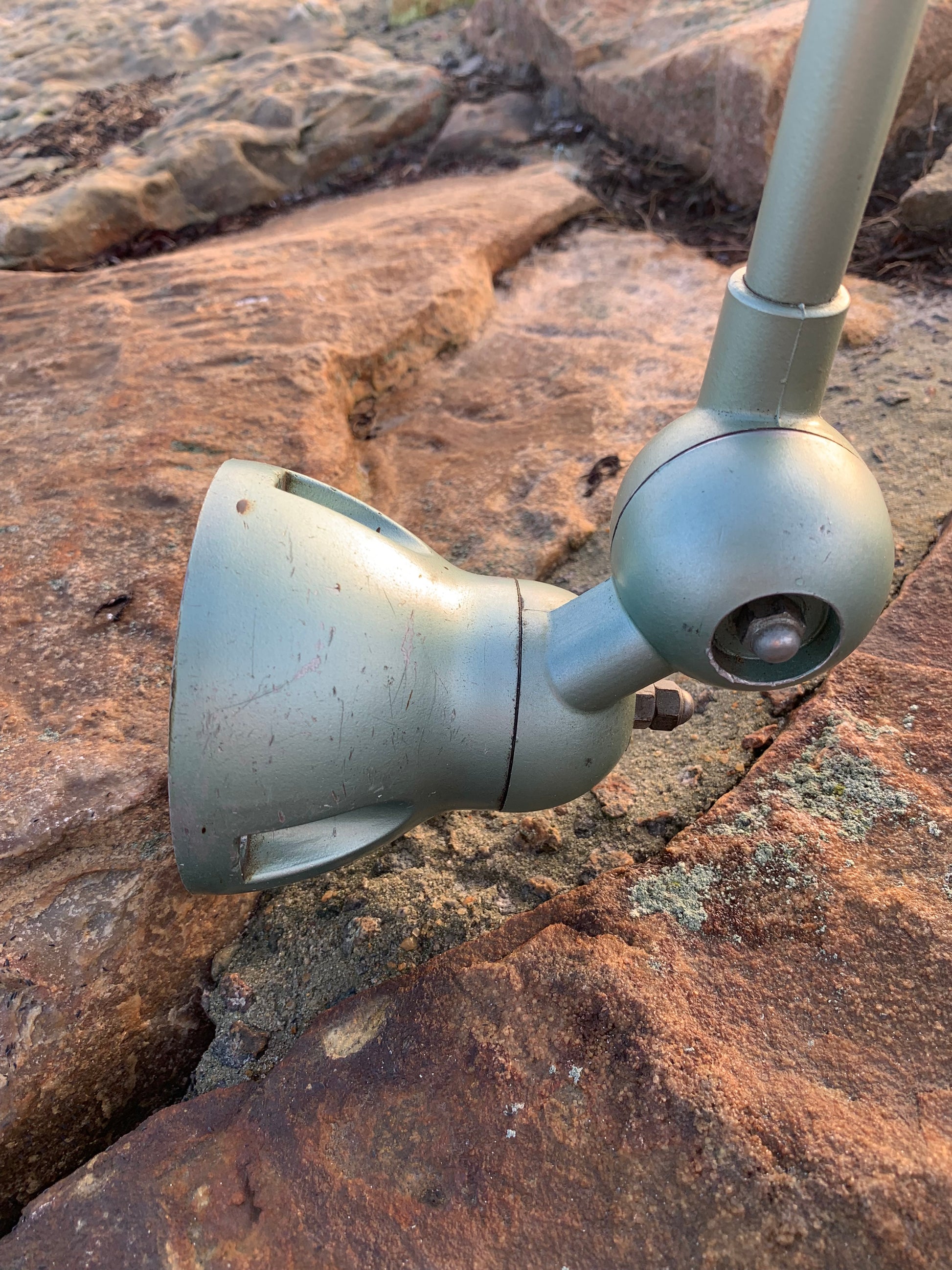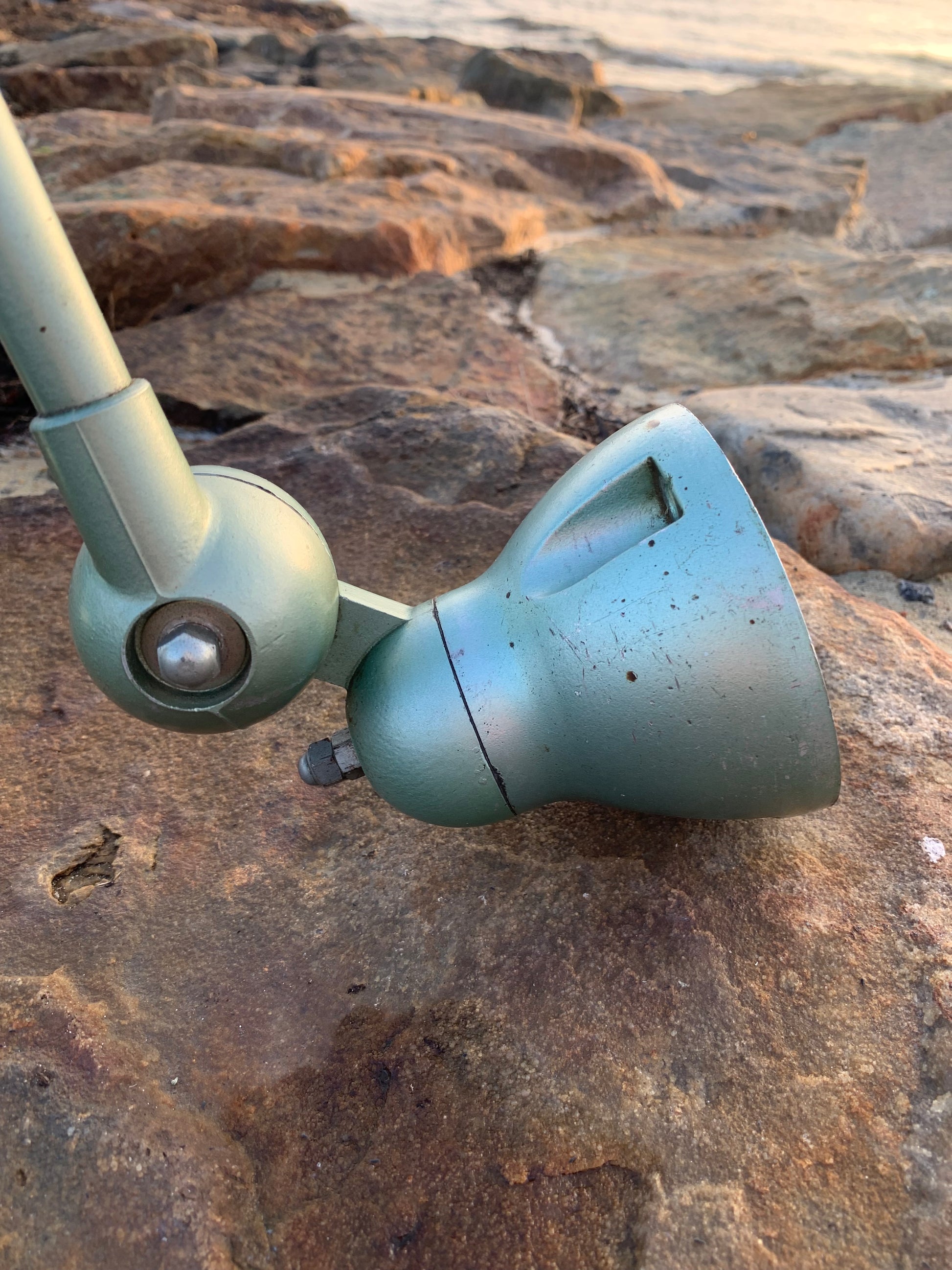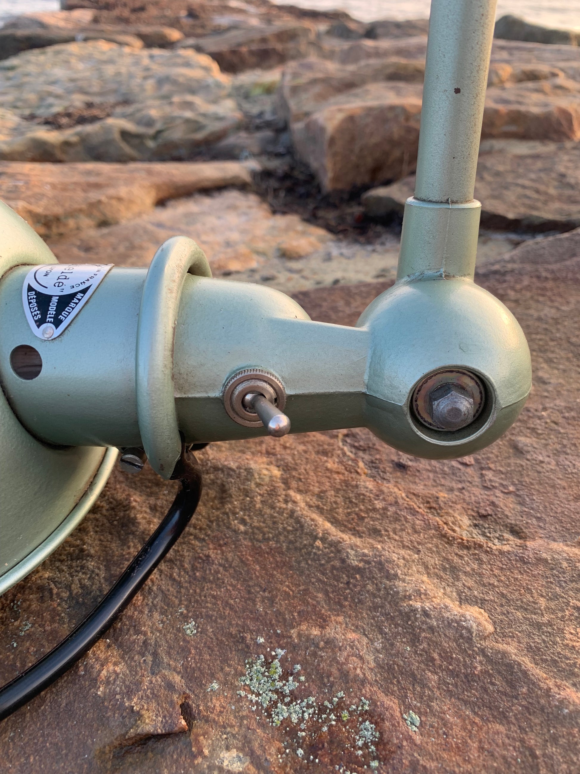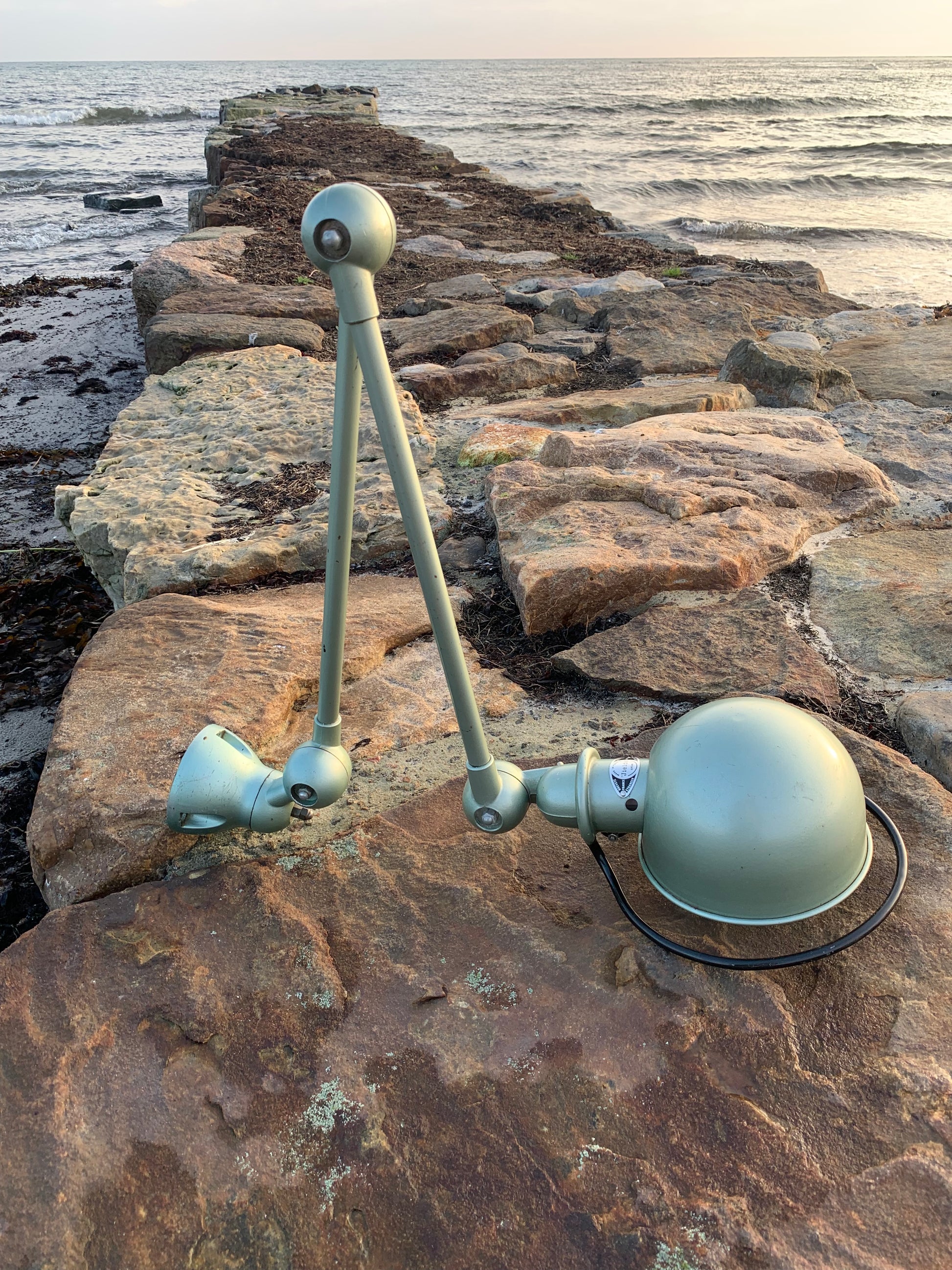 Vacker klassisk Jieldé-lampa i en härlig grön färg. Lampan har vissa åldersrelaterade bruksspår, vilket en sådan lampa (enligt oss) borde ha.