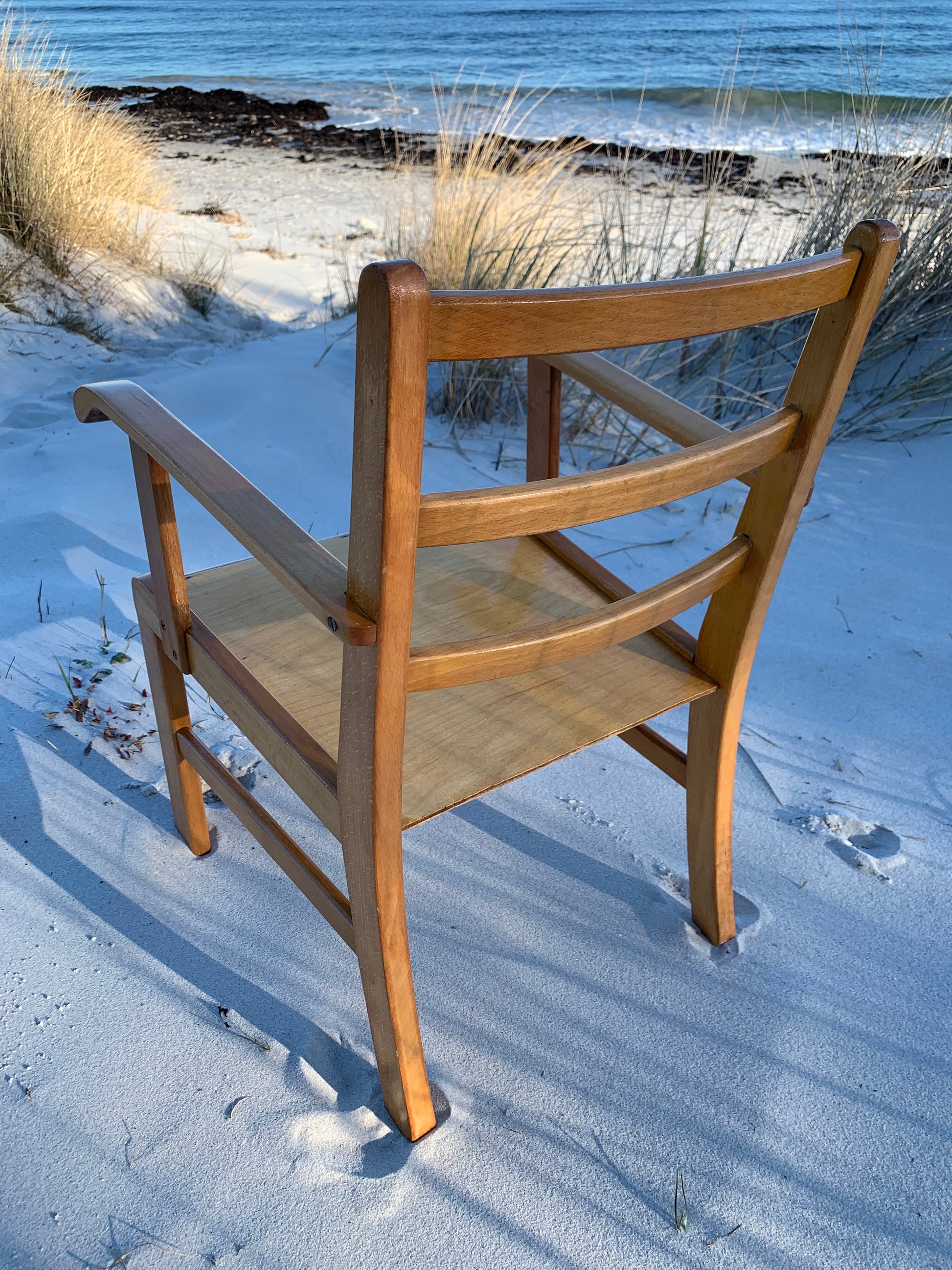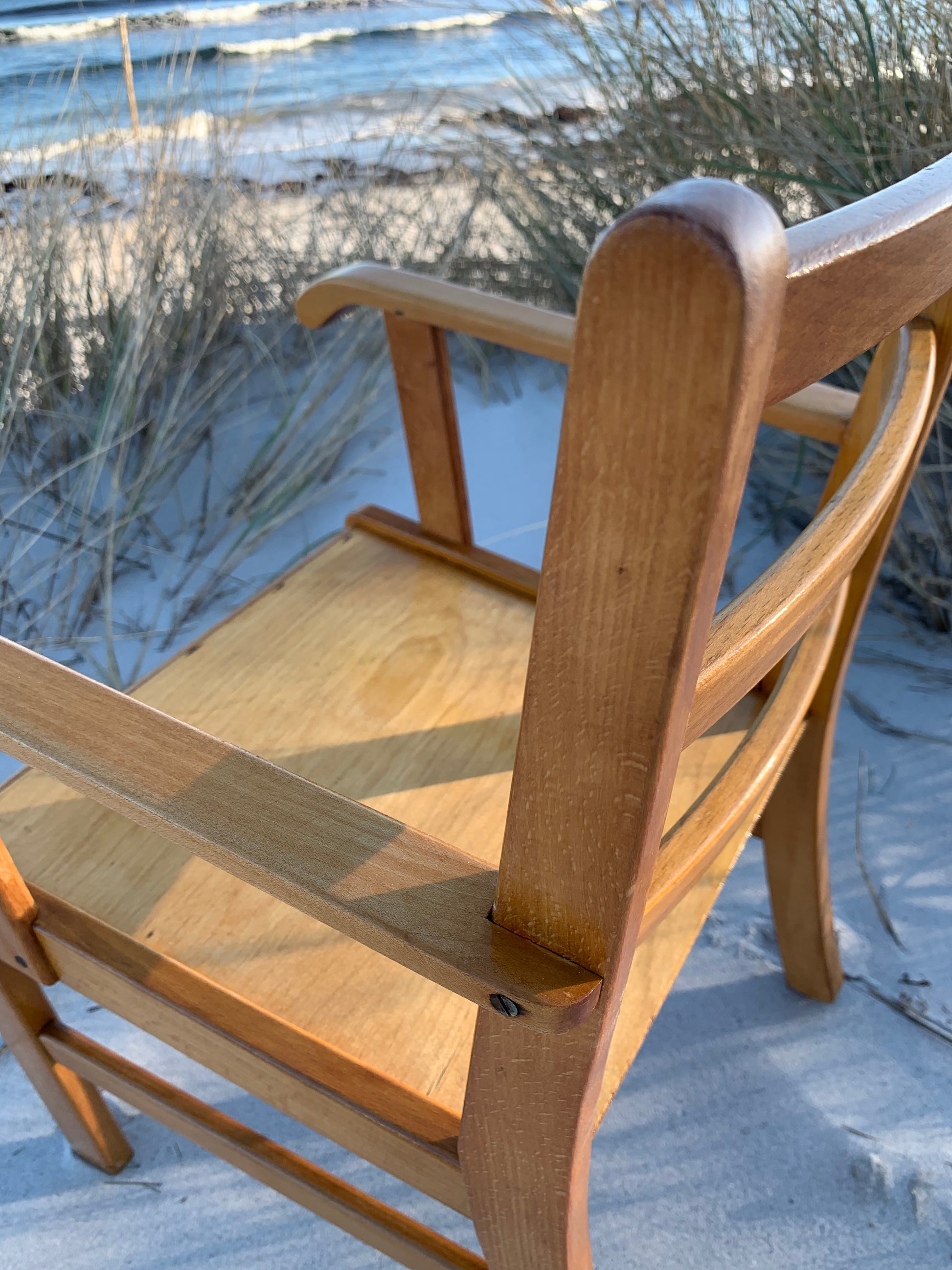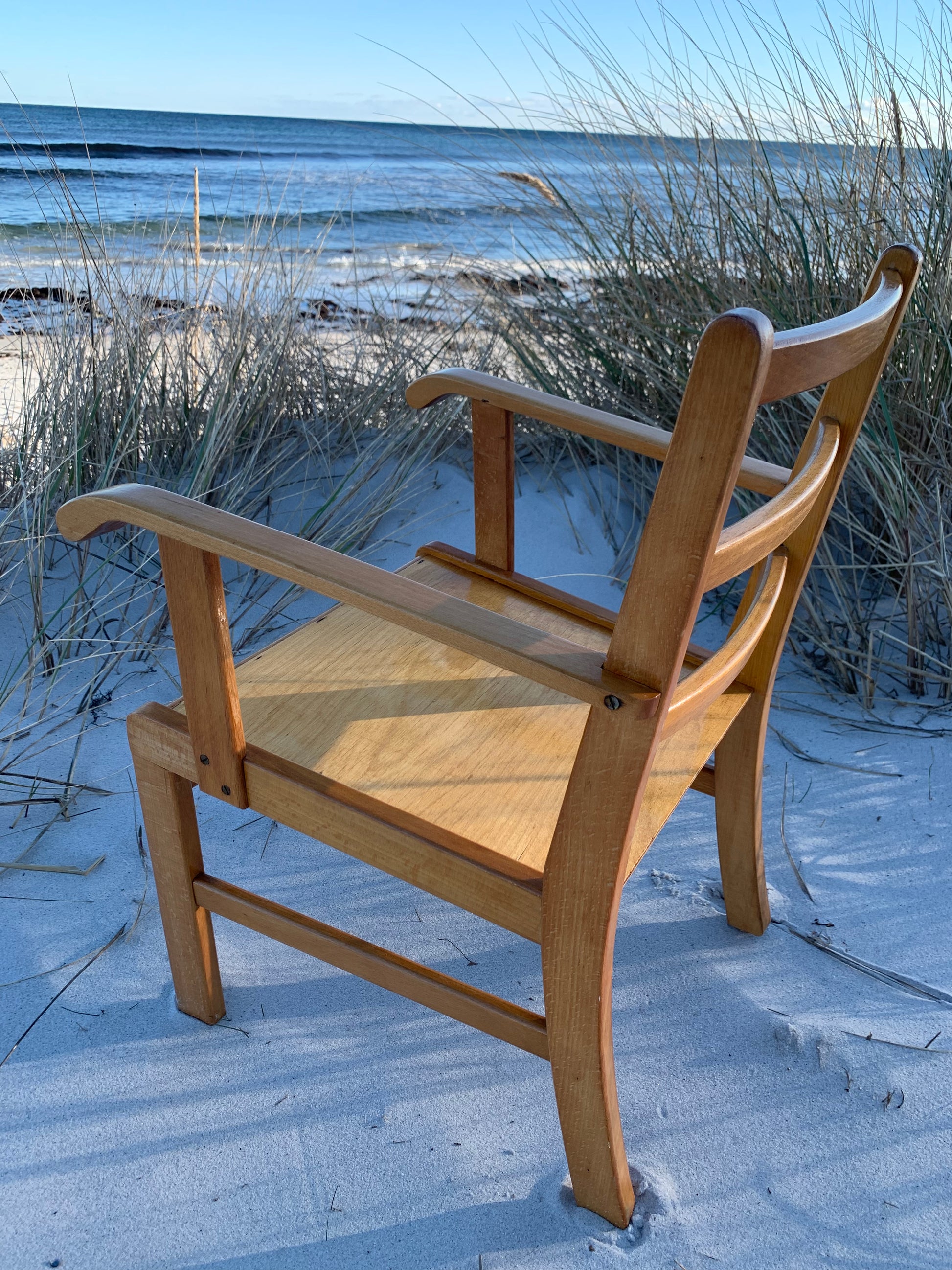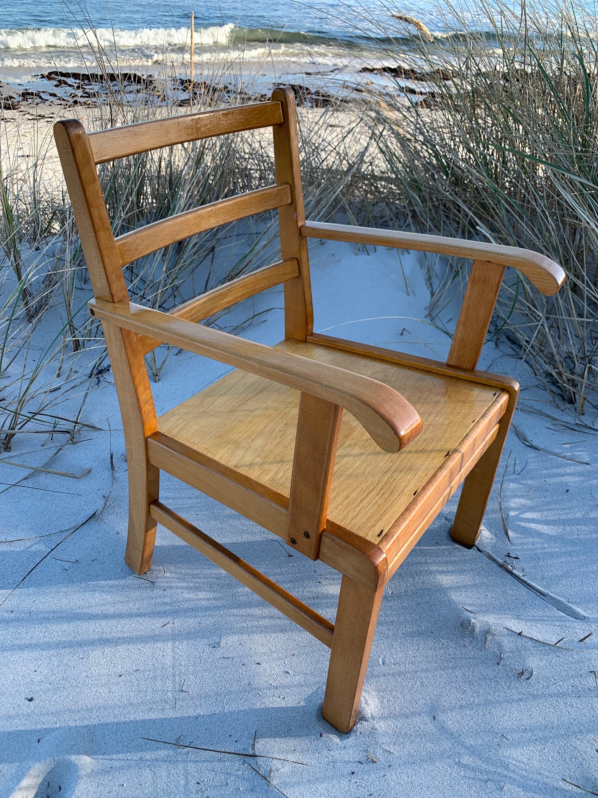Denna vackra Kaare Klint stol är en mycket älskad klassiker hos oss. Vackrare möbler för barn måste man leta länge efter, så vi förstår att det har varit mycket efterfrågat. Idag står den högt upp på önskelistan hos många inredningsentusiaster. Stolen har några åldersrelaterade tecken på användning, men överlag är den i ett riktigt fint vintageskick.
