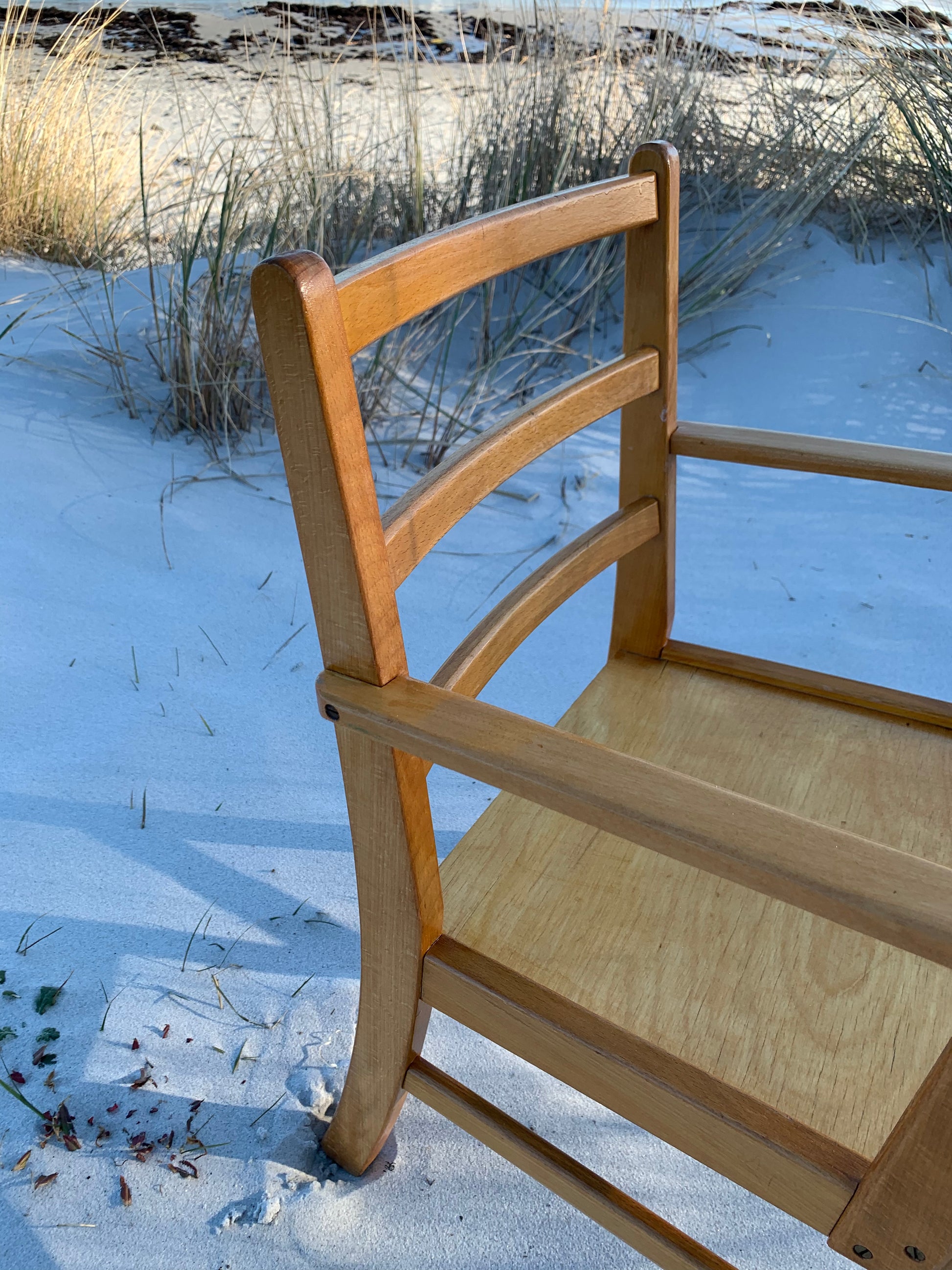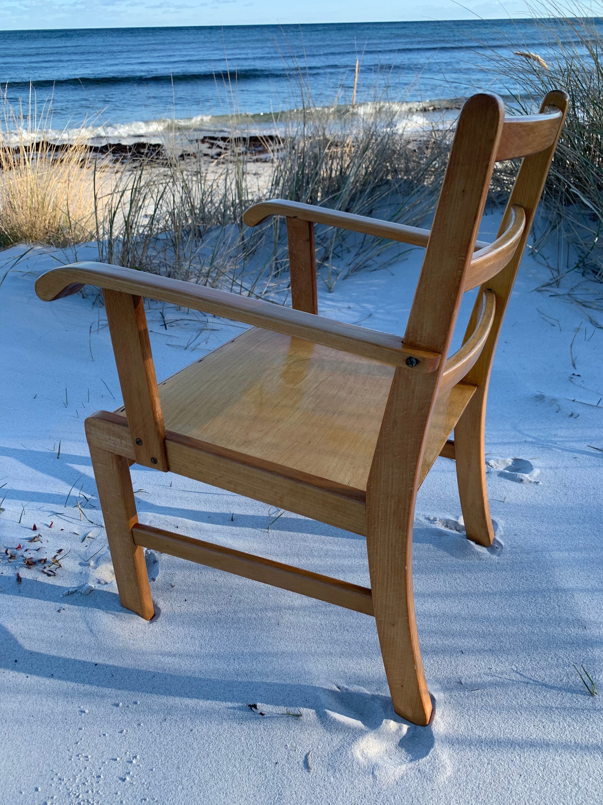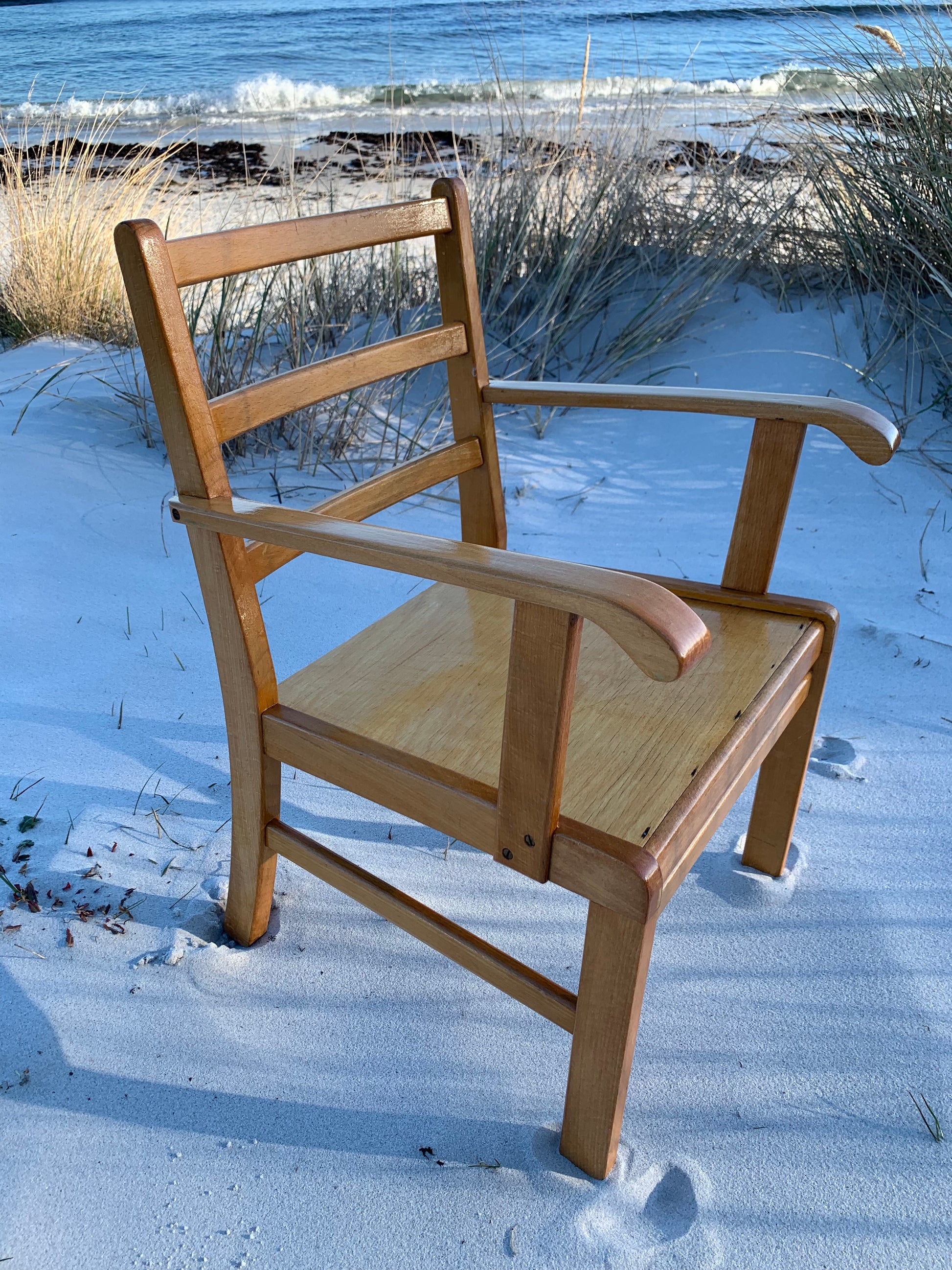 Denna vackra Kaare Klint stol är en mycket älskad klassiker hos oss. Vackrare möbler för barn måste man leta länge efter, så vi förstår att det har varit mycket efterfrågat. Idag står den högt upp på önskelistan hos många inredningsentusiaster. Stolen har några åldersrelaterade tecken på användning, men överlag är den i ett riktigt fint vintageskick.