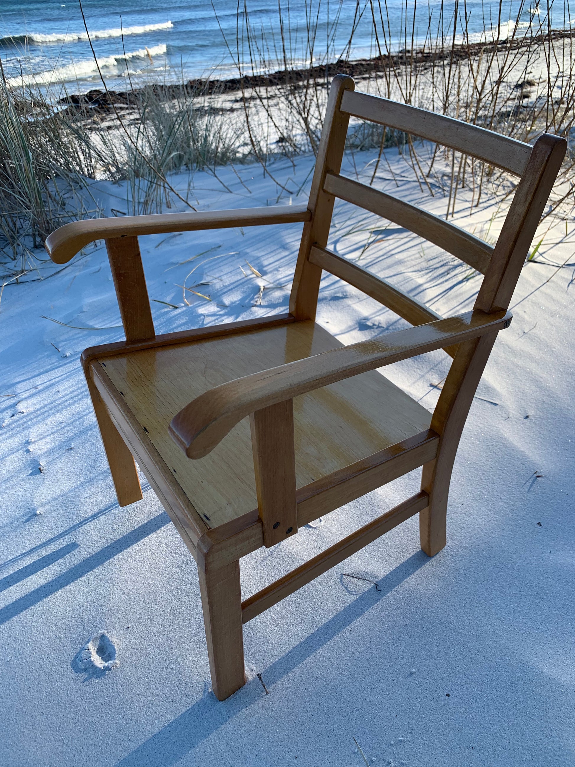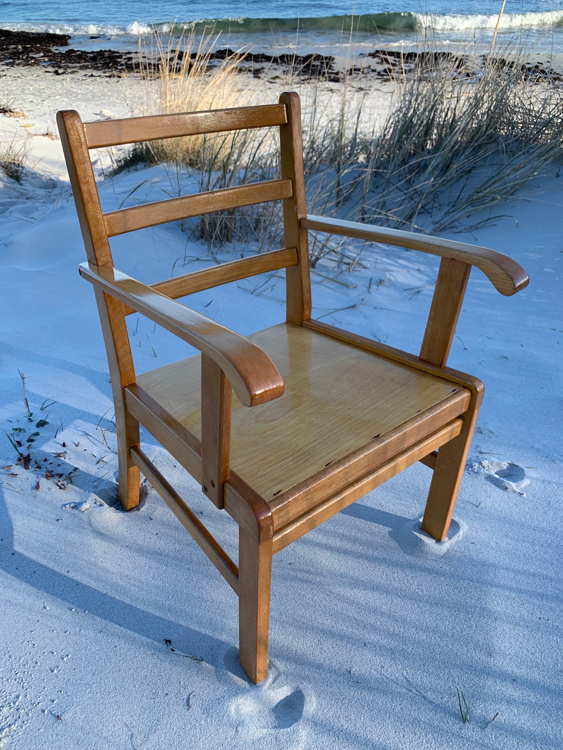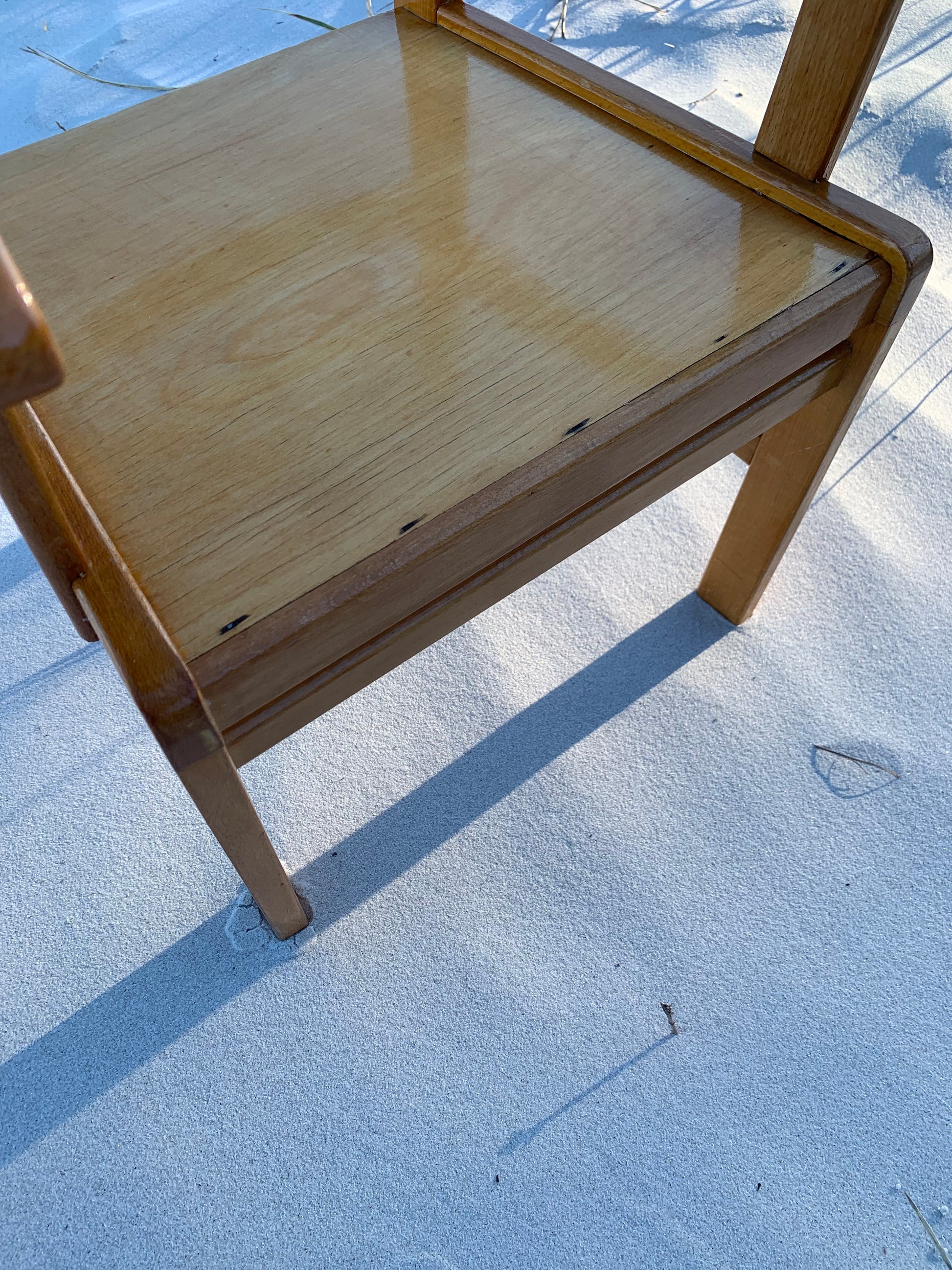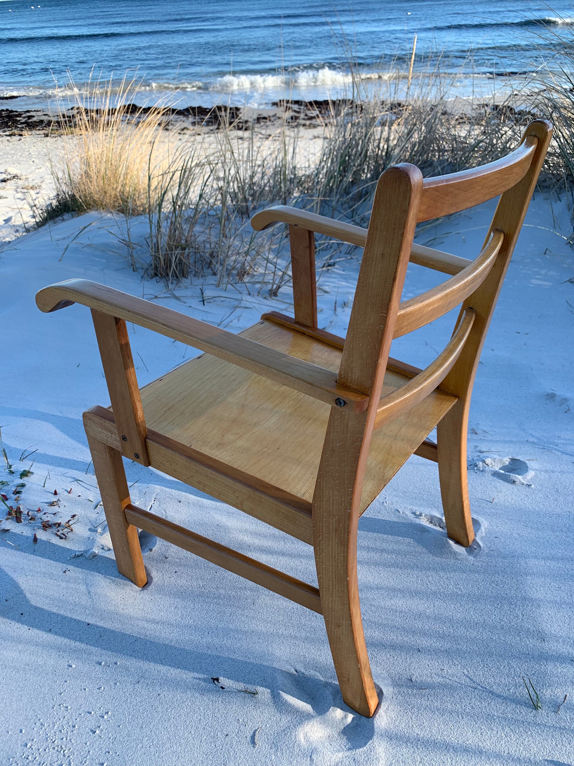 Denna vackra Kaare Klint stol är en mycket älskad klassiker hos oss. Vackrare möbler för barn måste man leta länge efter, så vi förstår att det har varit mycket efterfrågat. Idag står den högt upp på önskelistan hos många inredningsentusiaster. Stolen har några åldersrelaterade tecken på användning, men överlag är den i ett riktigt fint vintageskick.