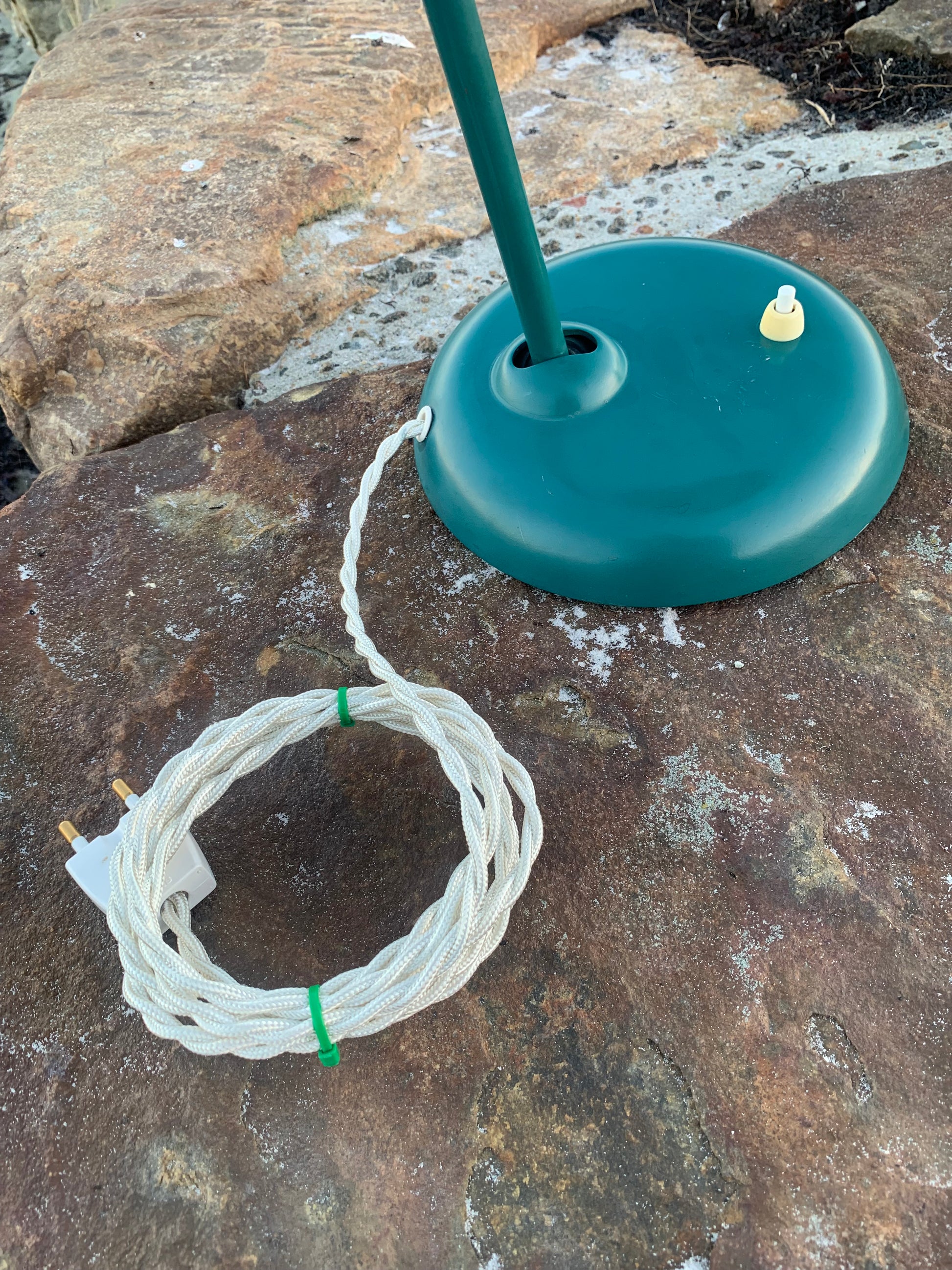 Detta exempel visas med originallack och nya kablar. Lampan har vissa åldersrelaterade tecken på slitage, vilket en sådan lampa (enligt oss) borde ha.