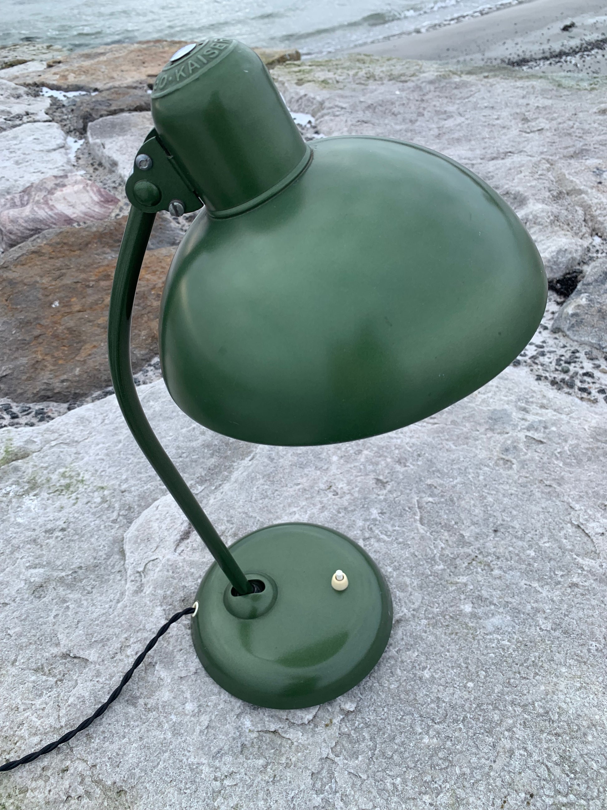 Vacker Kaiser Idell-lampa designad av Christian Dell. Denna vackra klassiker riktar sig till dig som ser skönheten i god och tidlös design. De fina gamla Kaiser Idell-lamporna är ett bevis på god kvalitet och gott hantverk. Dessa vackra gamla vintagelampor har ofta vissa åldersrelaterade tecken på slitage, vilket både förstärker äktheten och originaliteten. Dessa tecken både vittnar om och berättar historien om lampans resa genom flera decennier.