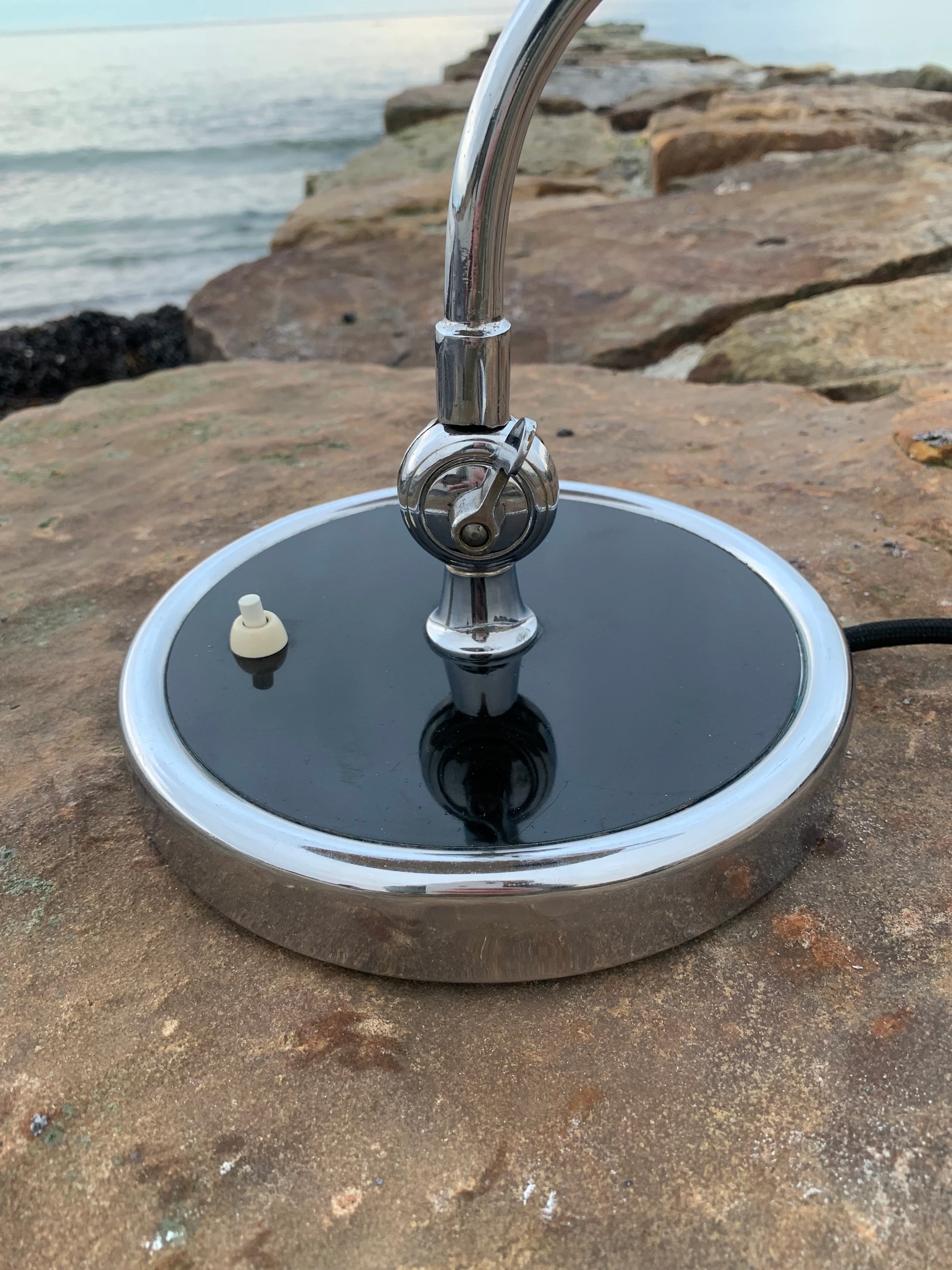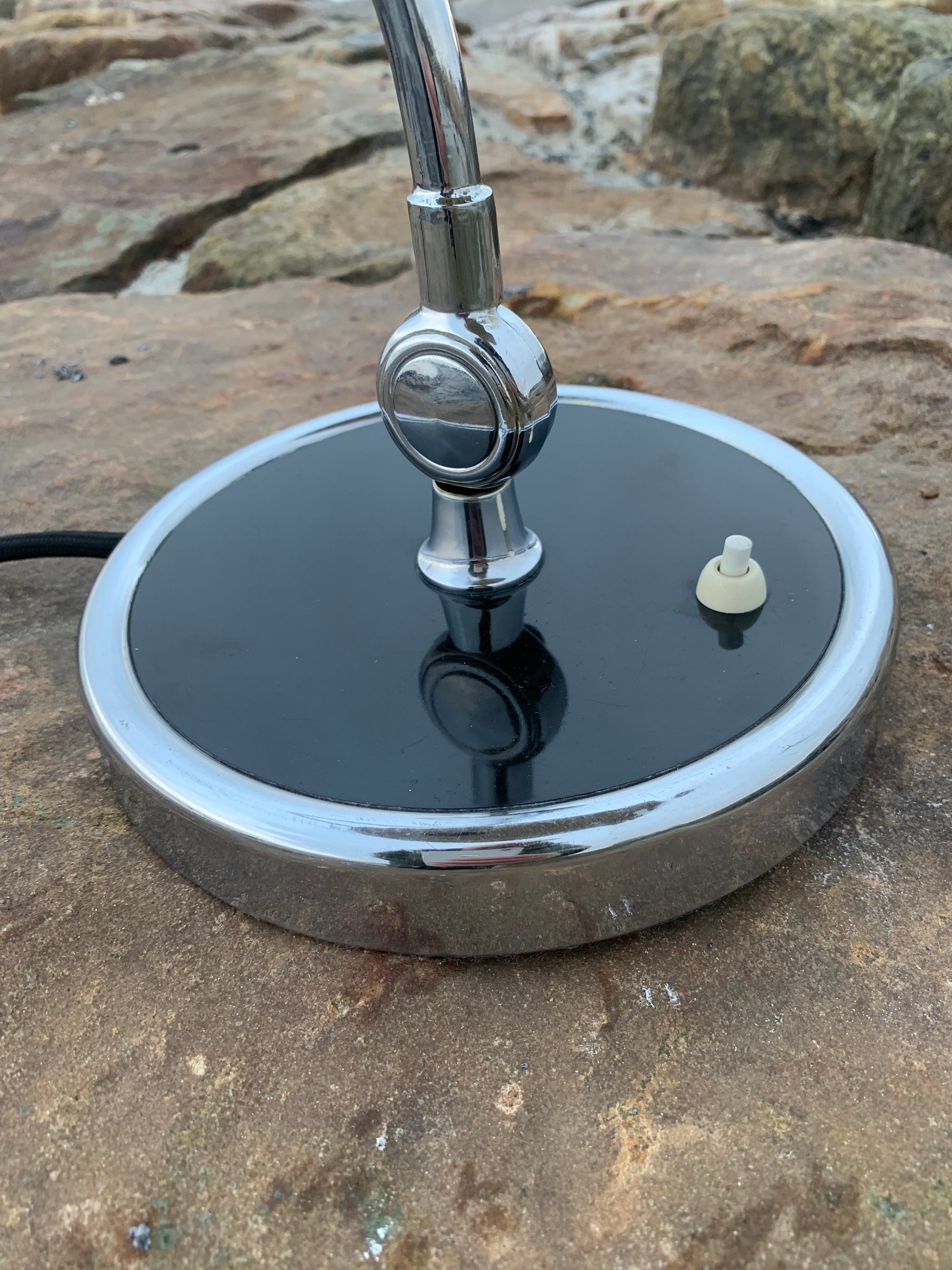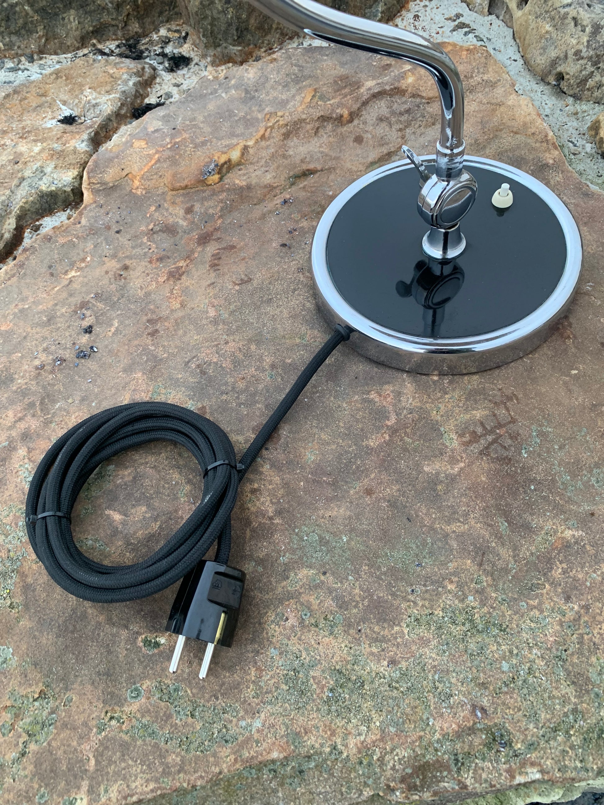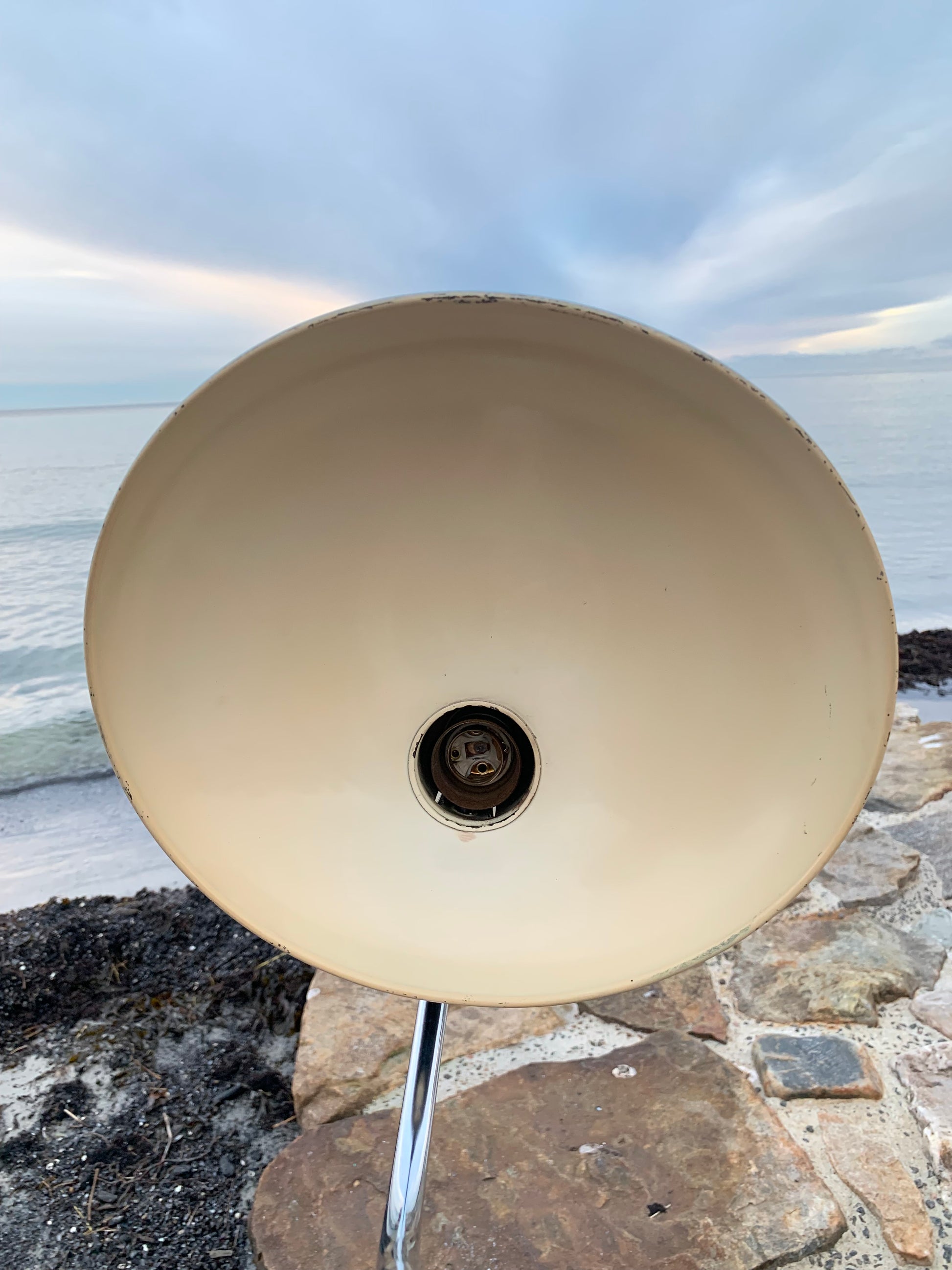Detta exempel visas i originallack och med nya kablar. Lampan har några åldersrelaterade tecken på slitage, vilket en sådan lampa (enligt oss) borde ha, men överlag är den i fint vintageskick.