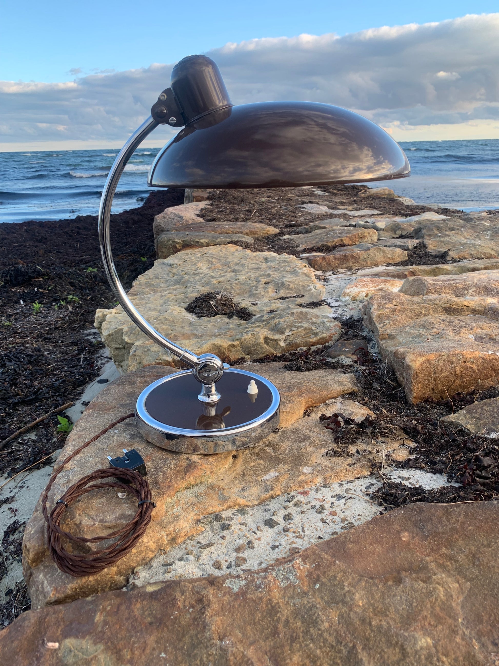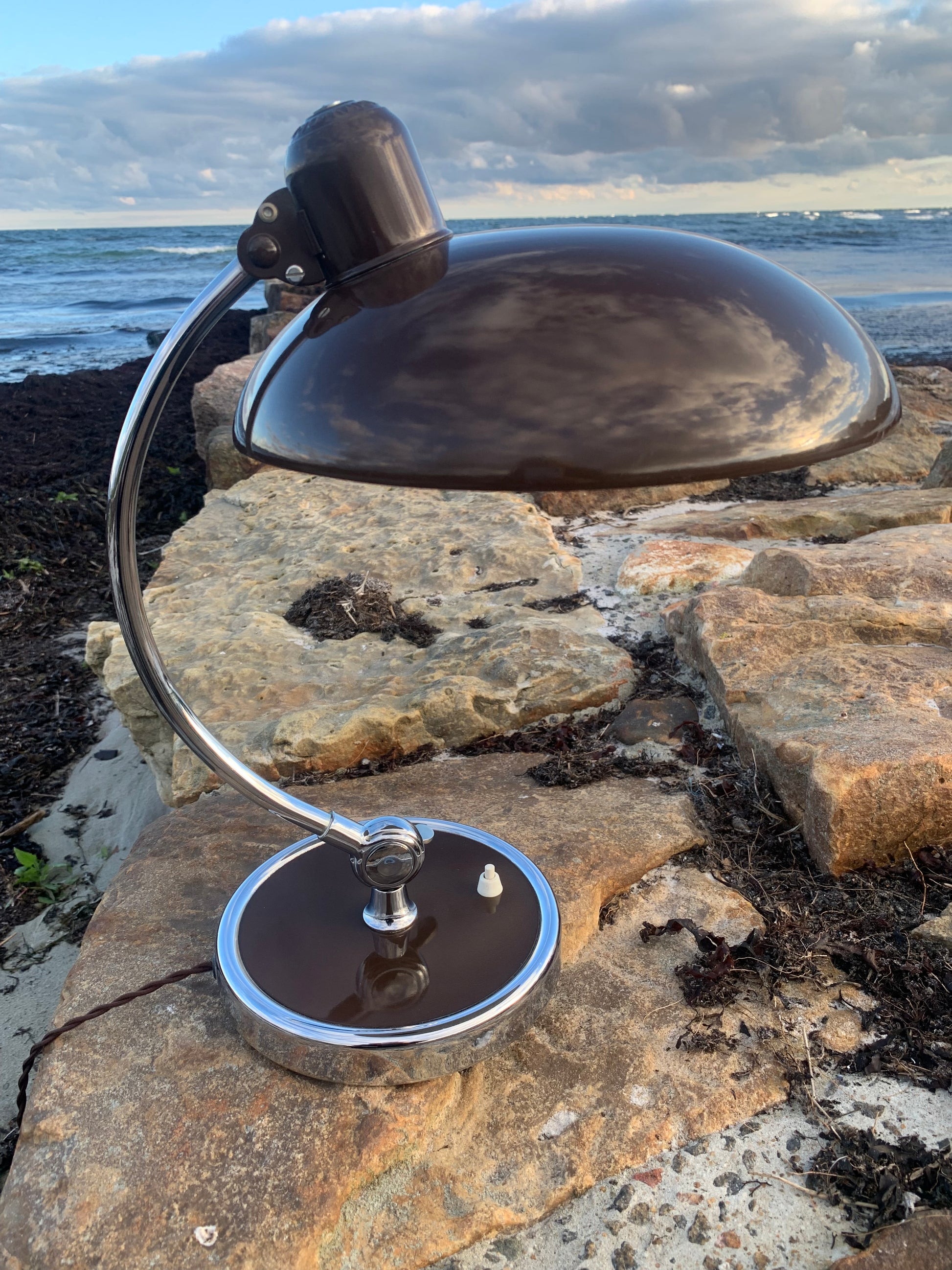Vacker Kaiser Idell-lampa designad av Christian Dell. Denna vackra lampa är för dig som ser skönheten i en god och tidlös design. De fina gamla Kaiser Idell-lamporna vittnar om god kvalitet och gott hantverk. Dessa vackra gamla vintagelampor har ofta åldersrelaterade tecken på användning, vilket både förstärker äktheten och originaliteten. Dessa tecken både vittnar om och berättar historien om lampans resa genom många decennier.