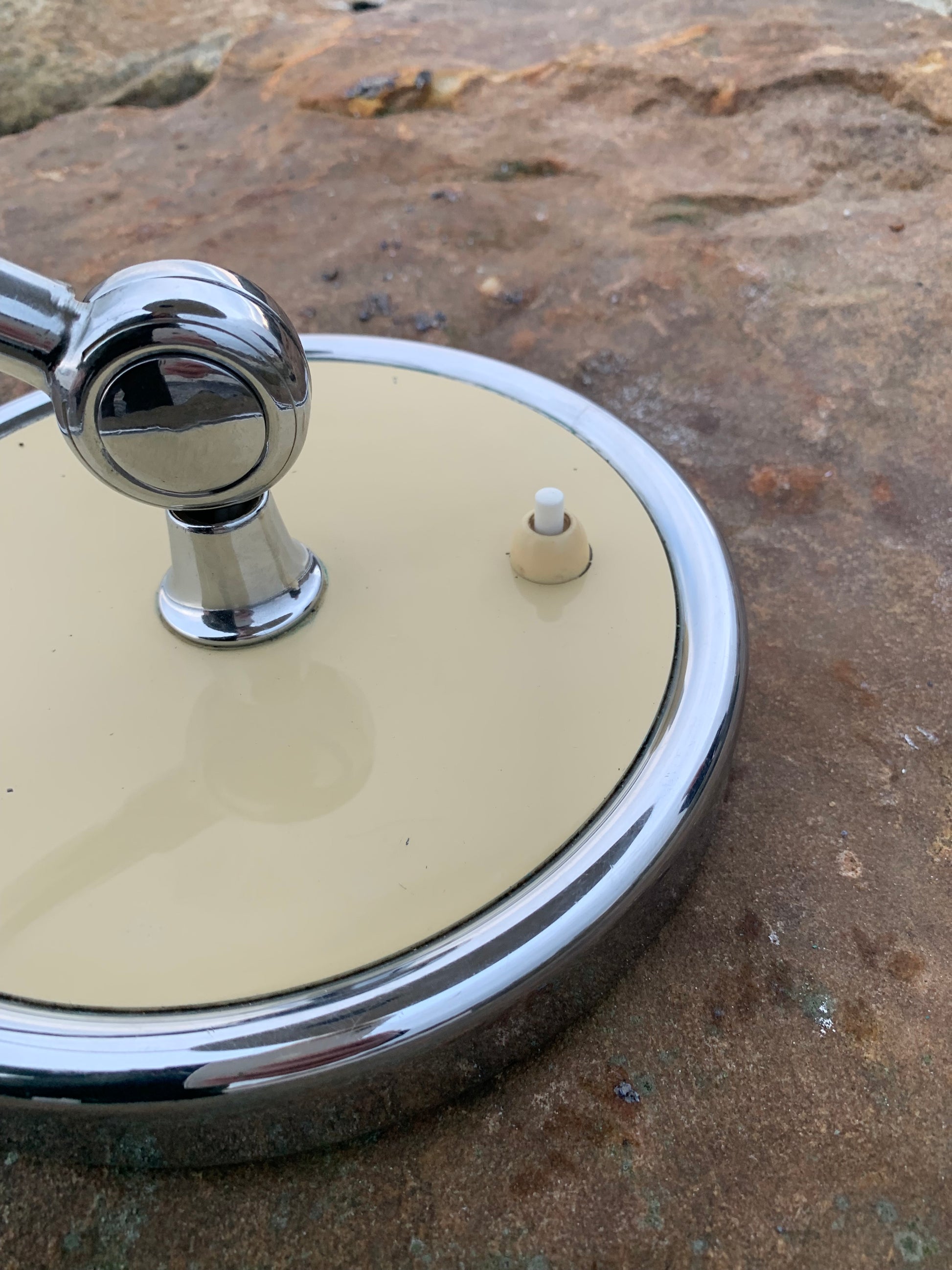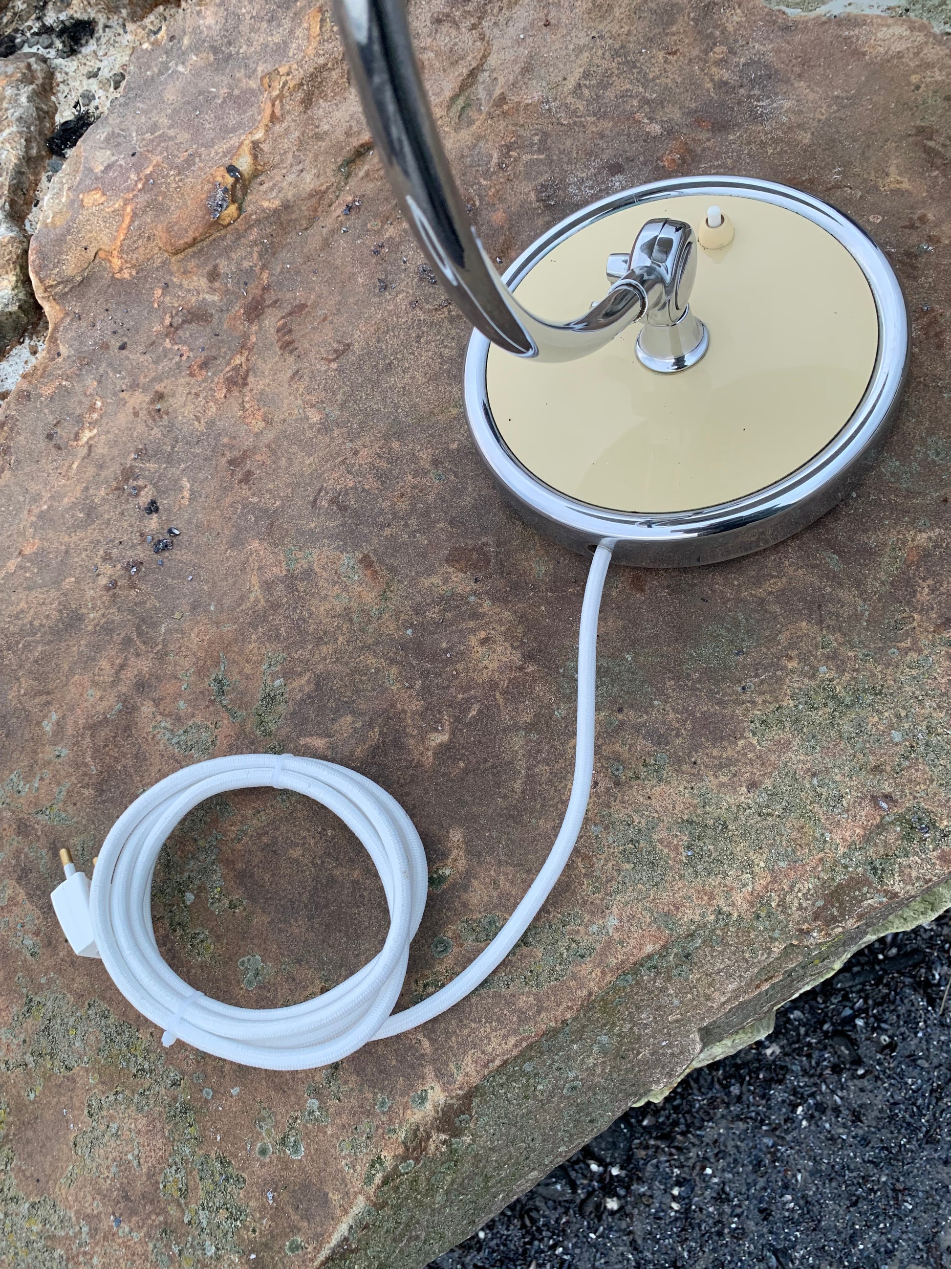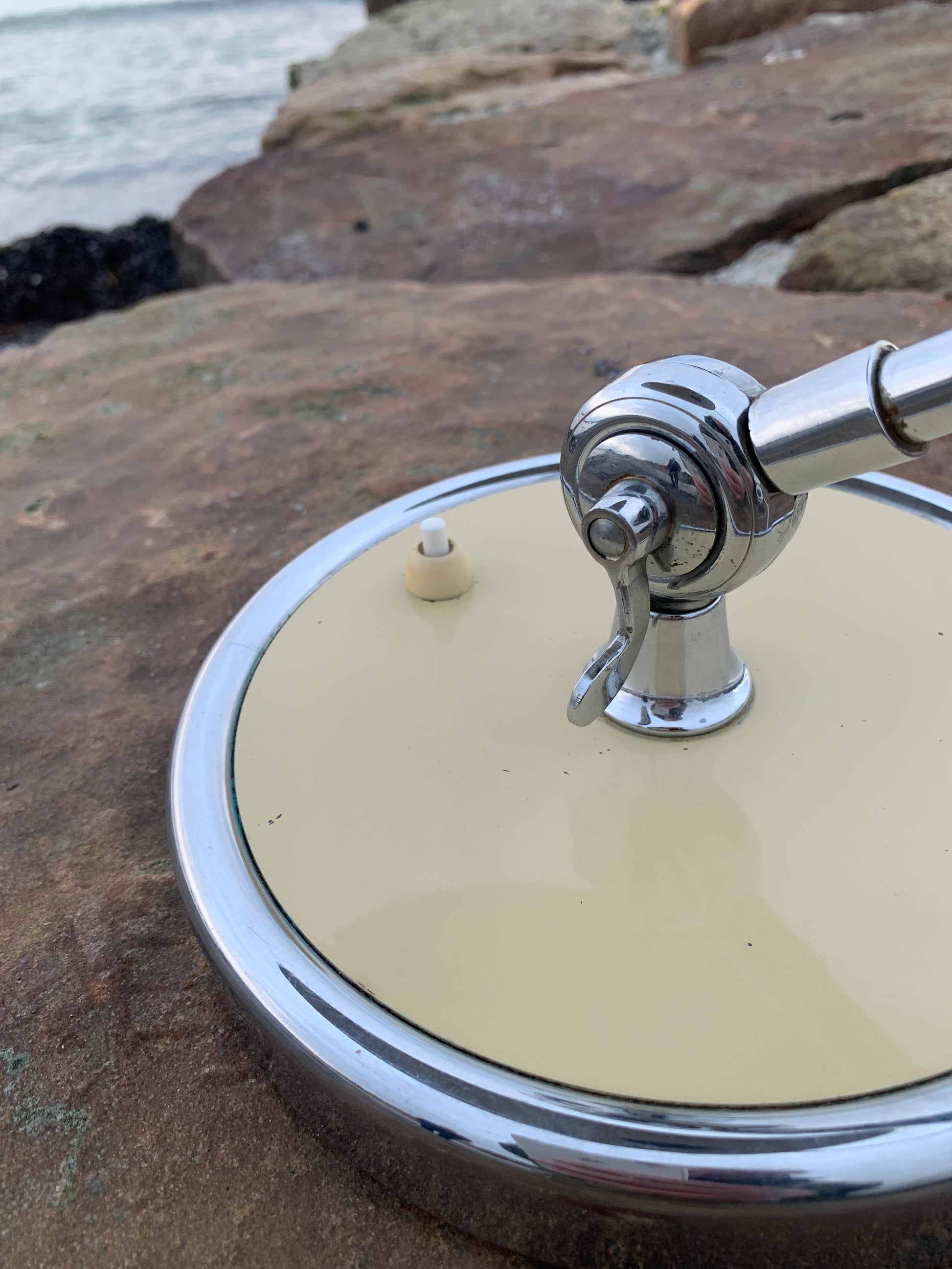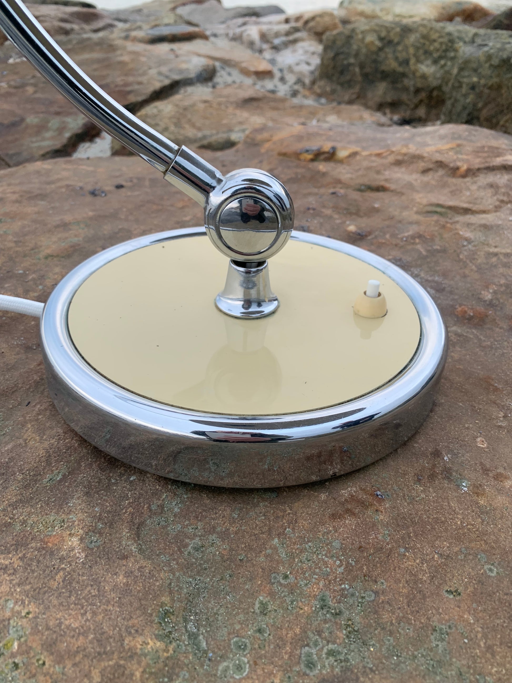 Detta exempel visas i originallack och med nya kablar. Lampan har några åldersrelaterade tecken på slitage, vilket en sådan lampa (enligt oss) borde ha. Lampan har en liten "soft touch" på ett ställe på ena sidan av skärmen och lite tunn färg, men överlag är den i fint vintageskick.