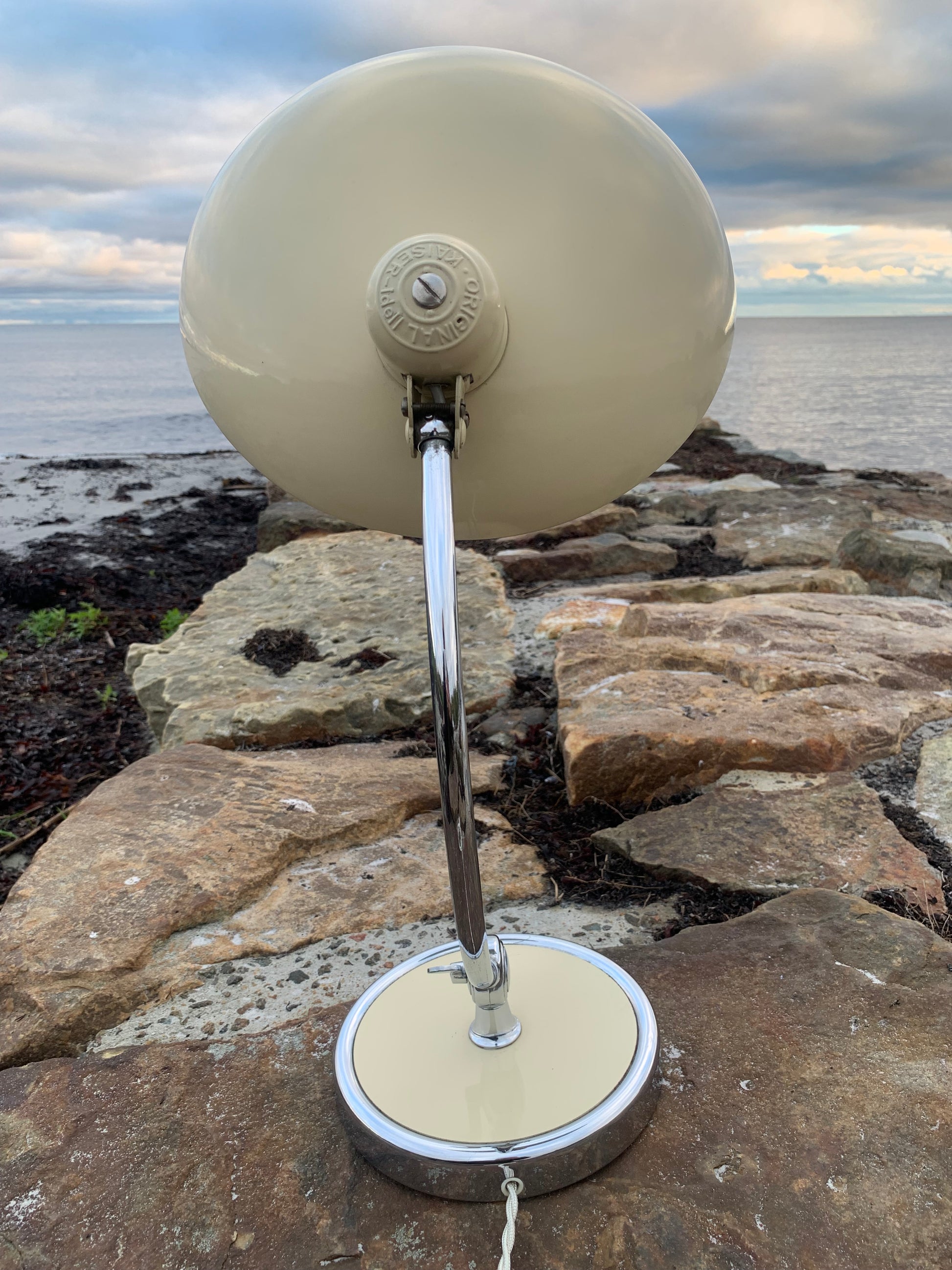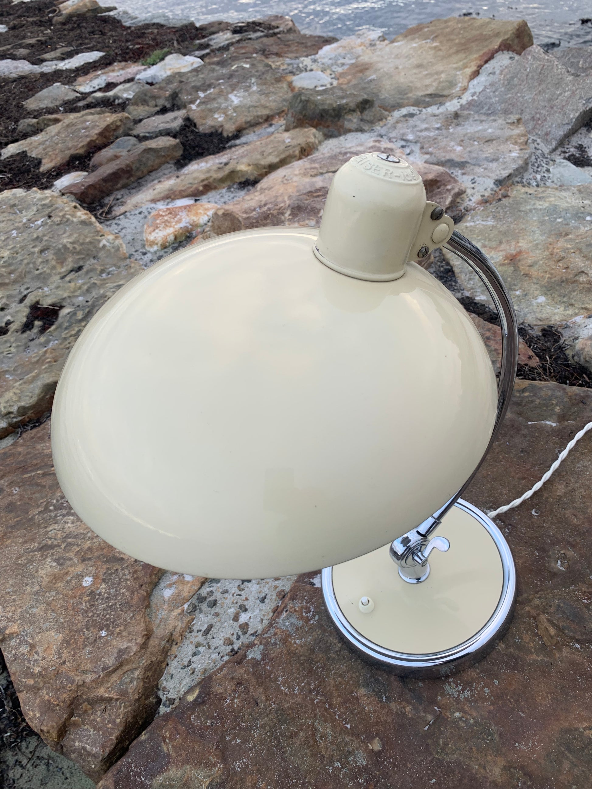 Vacker Kaiser Idell-lampa designad av Christian Dell. Denna vackra lampa är för dig som ser skönheten i en god och tidlös design. De fina gamla Kaiser Idell-lamporna vittnar om god kvalitet och gott hantverk. Dessa vackra gamla vintagelampor har ofta åldersrelaterade tecken på användning, vilket både förstärker äktheten och originaliteten. Dessa tecken både vittnar om och berättar historien om lampans resa genom många decennier.