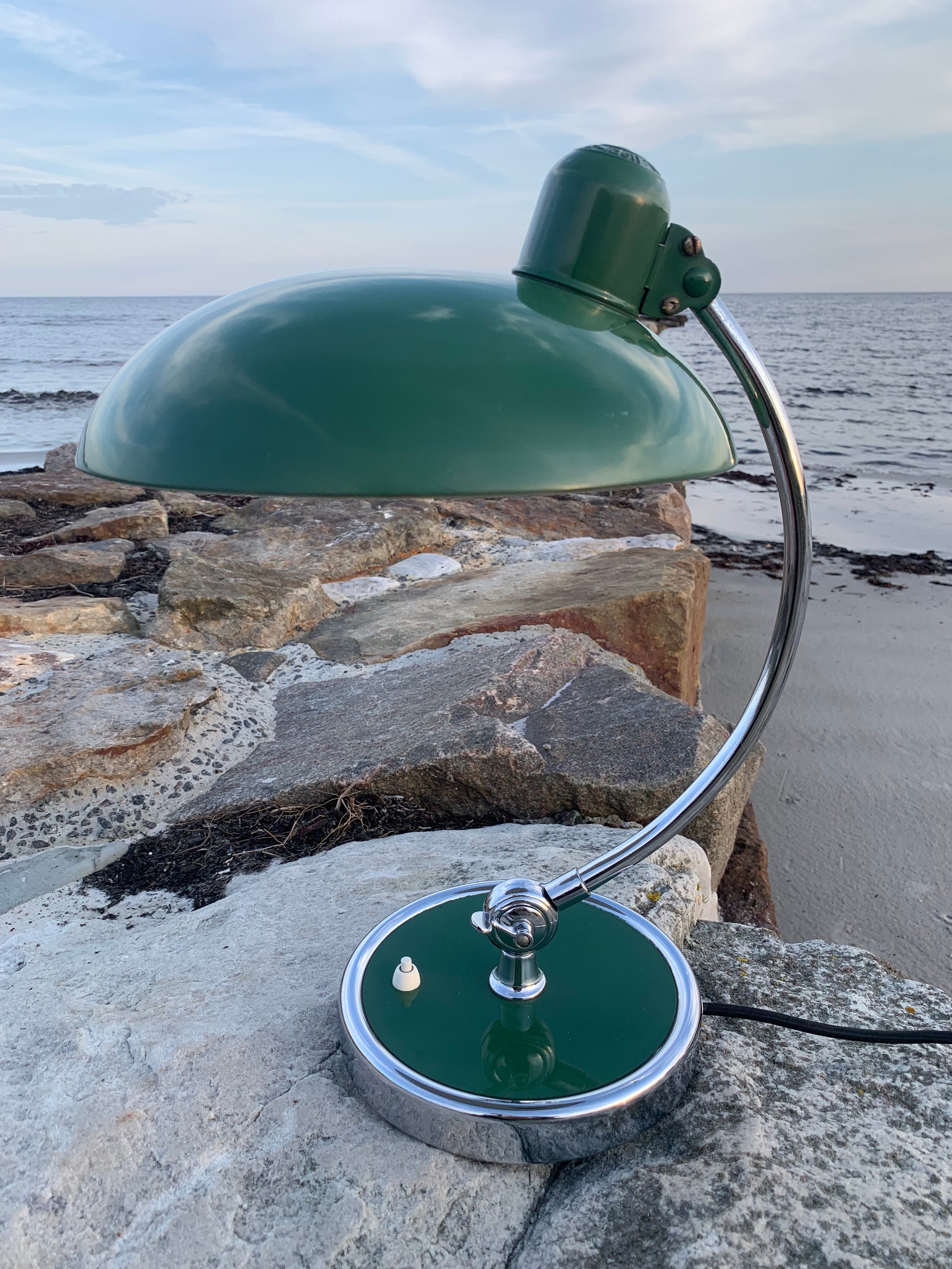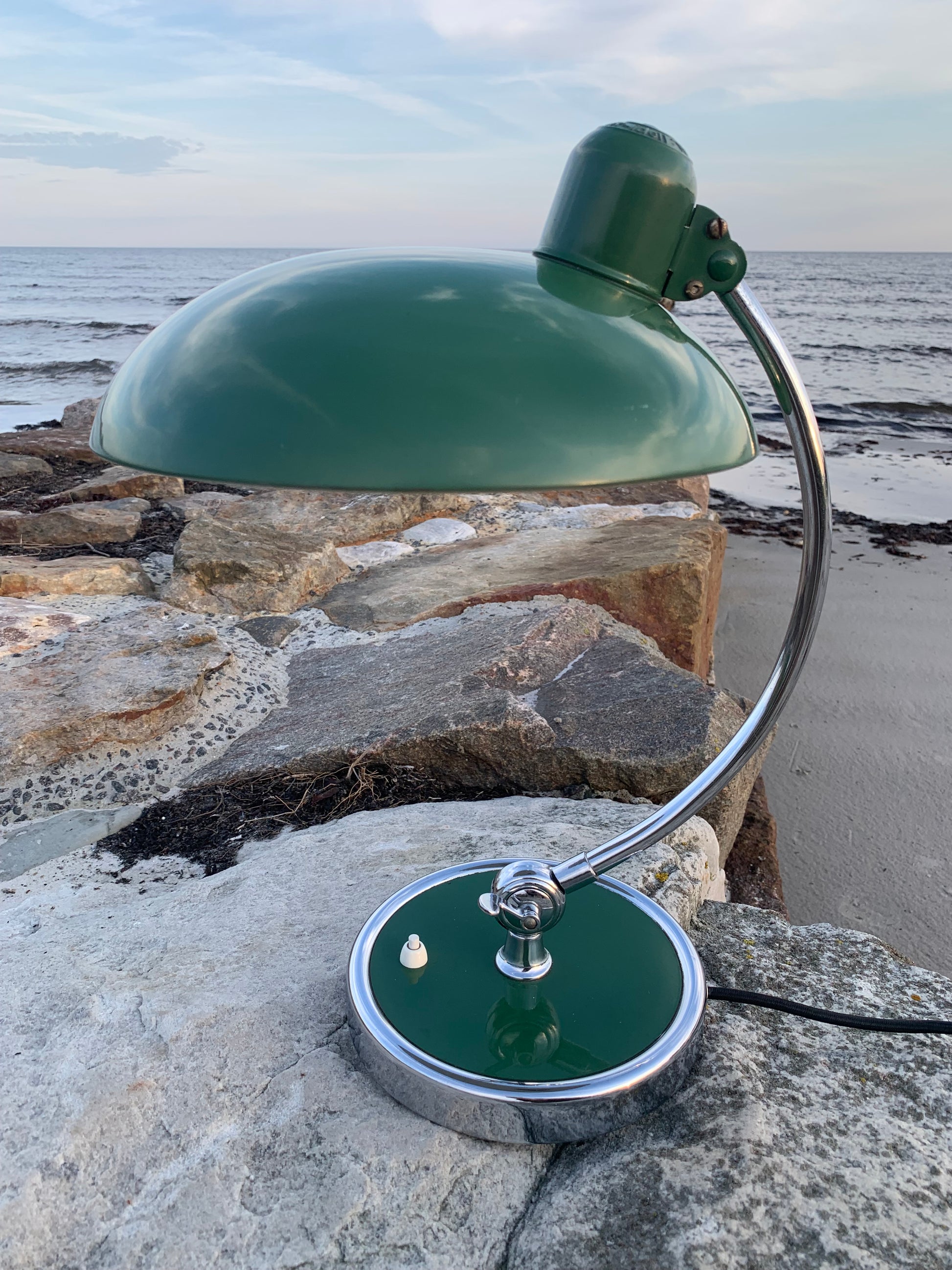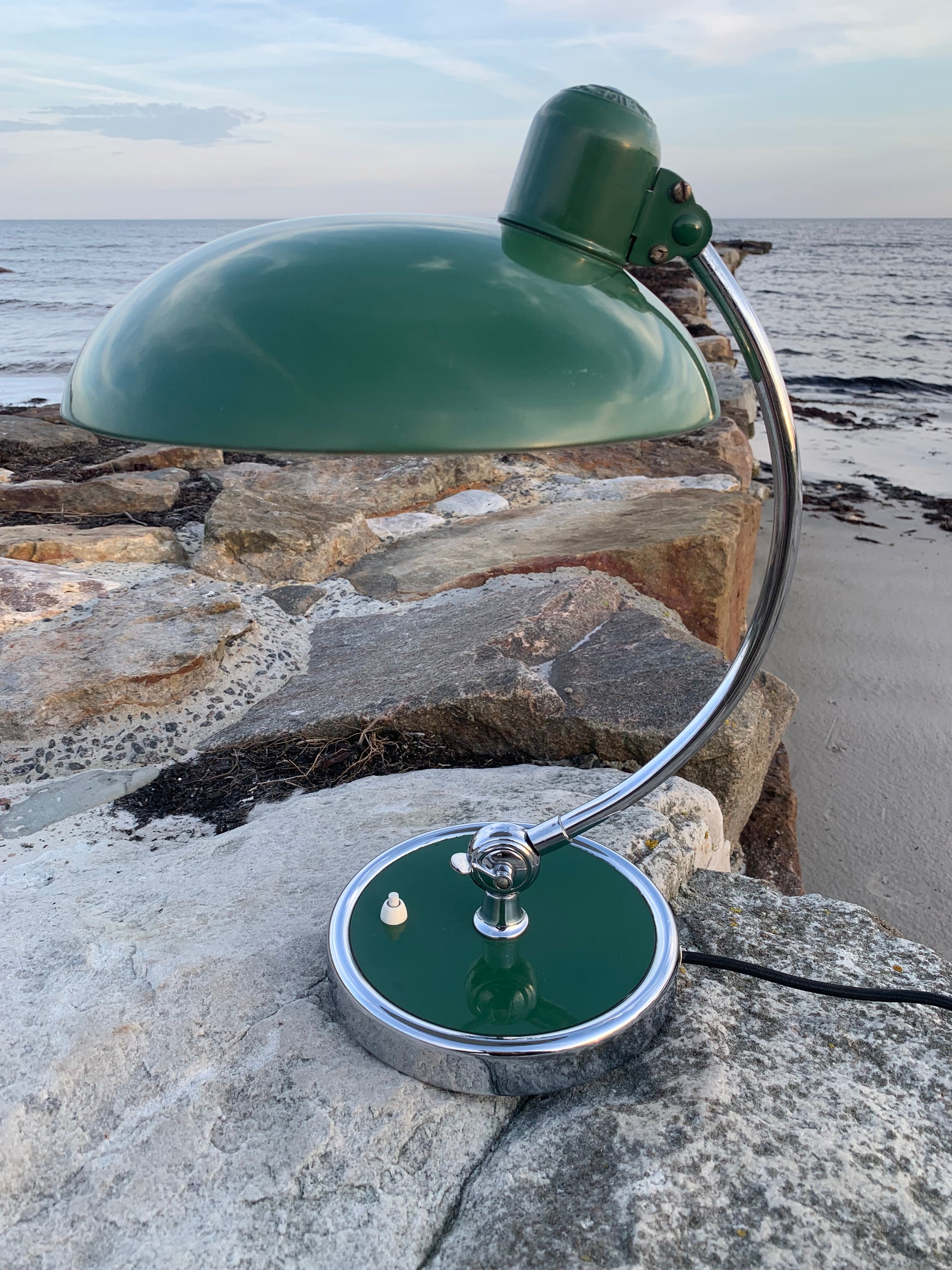 Vacker Kaiser Idell-lampa designad av Christian Dell. Denna vackra lampa är för dig som ser skönheten i en god och tidlös design. De fina gamla Kaiser Idell-lamporna vittnar om god kvalitet och gott hantverk. Dessa vackra gamla vintagelampor har ofta åldersrelaterade tecken på användning, vilket både förstärker äktheten och originaliteten. Dessa tecken både vittnar om och berättar historien om lampans resa genom många decennier.