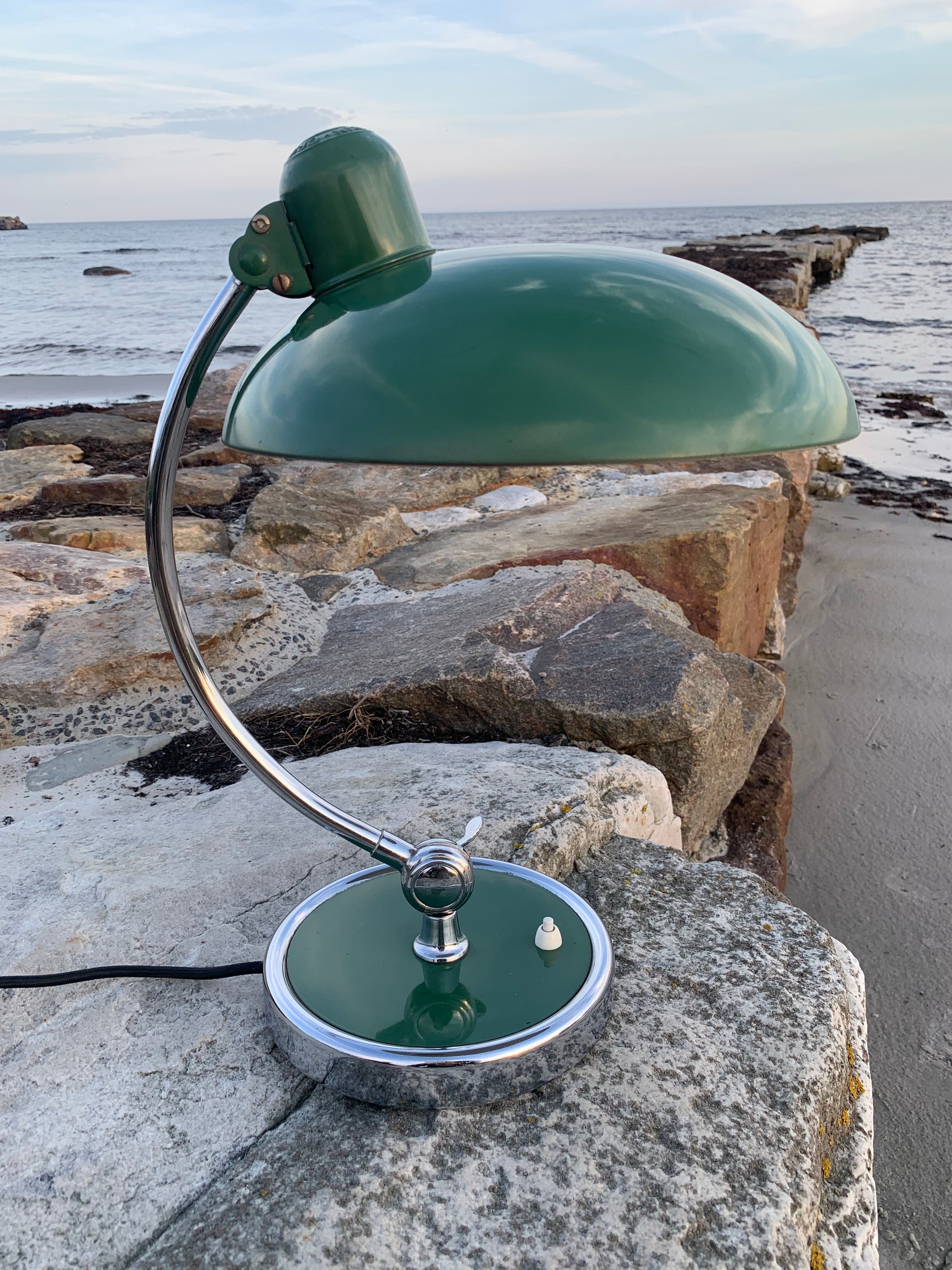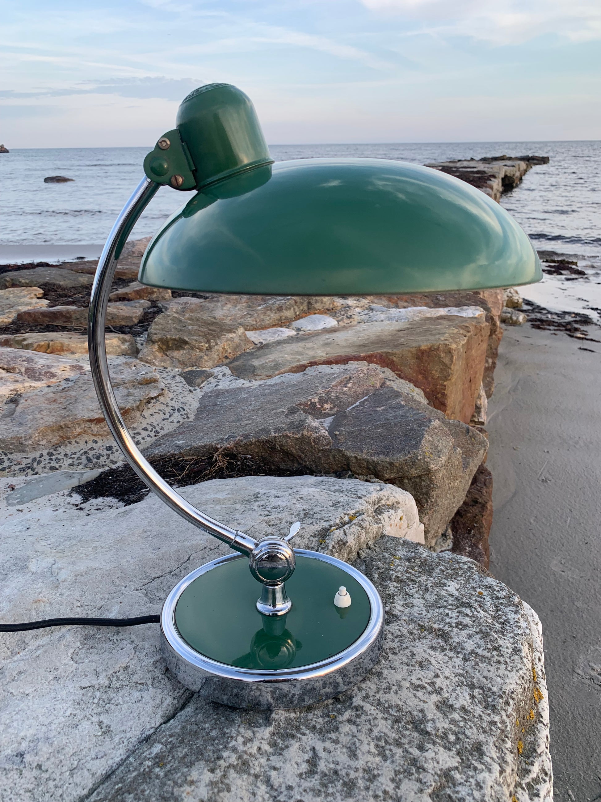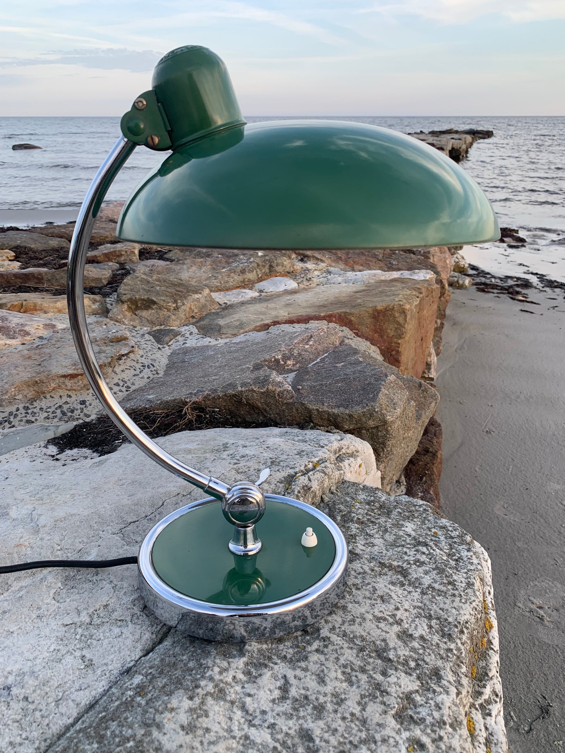 Vacker Kaiser Idell-lampa designad av Christian Dell. Denna vackra lampa är för dig som ser skönheten i en god och tidlös design. De fina gamla Kaiser Idell-lamporna vittnar om god kvalitet och gott hantverk. Dessa vackra gamla vintagelampor har ofta åldersrelaterade tecken på användning, vilket både förstärker äktheten och originaliteten. Dessa tecken både vittnar om och berättar historien om lampans resa genom många decennier.