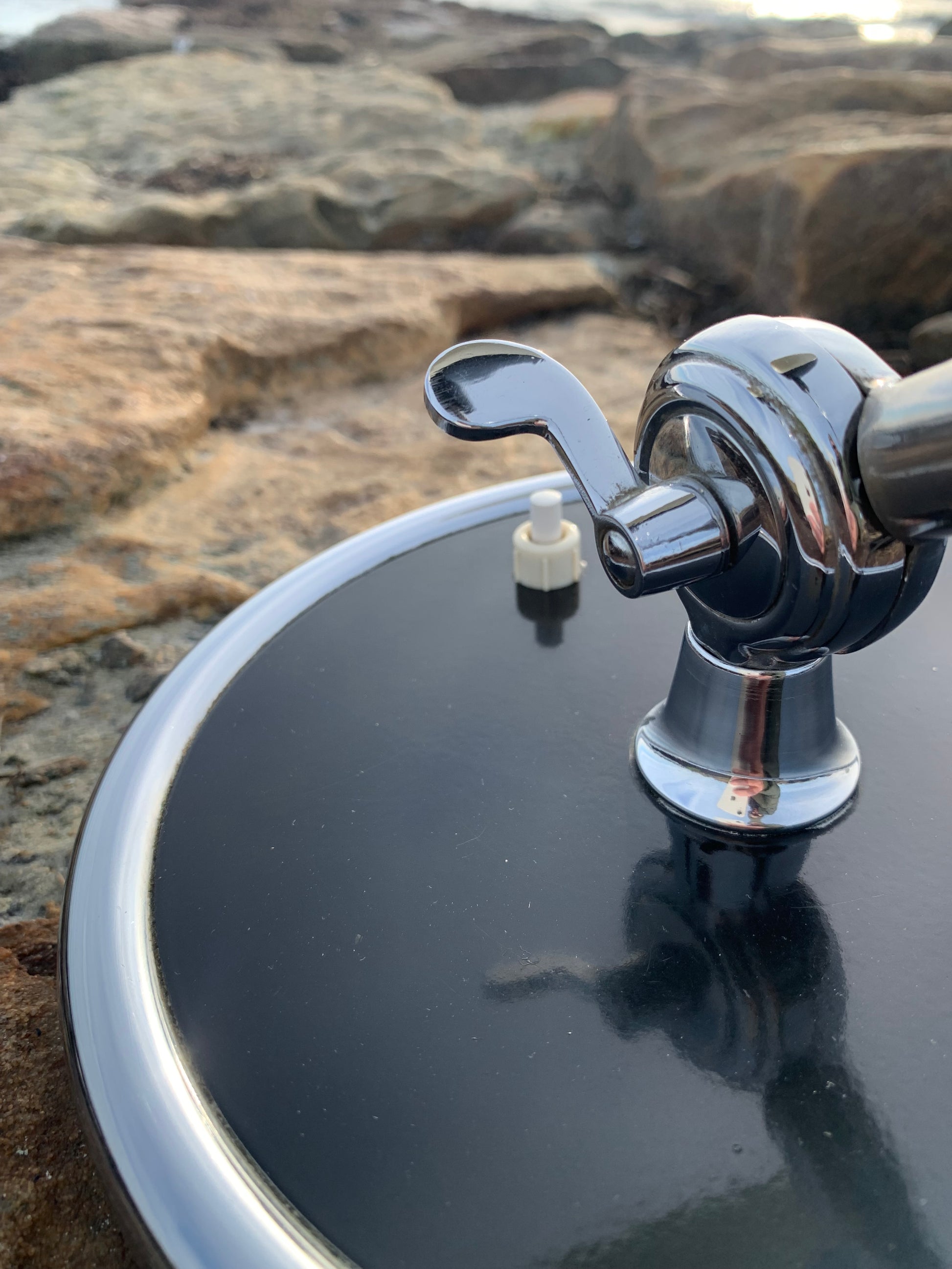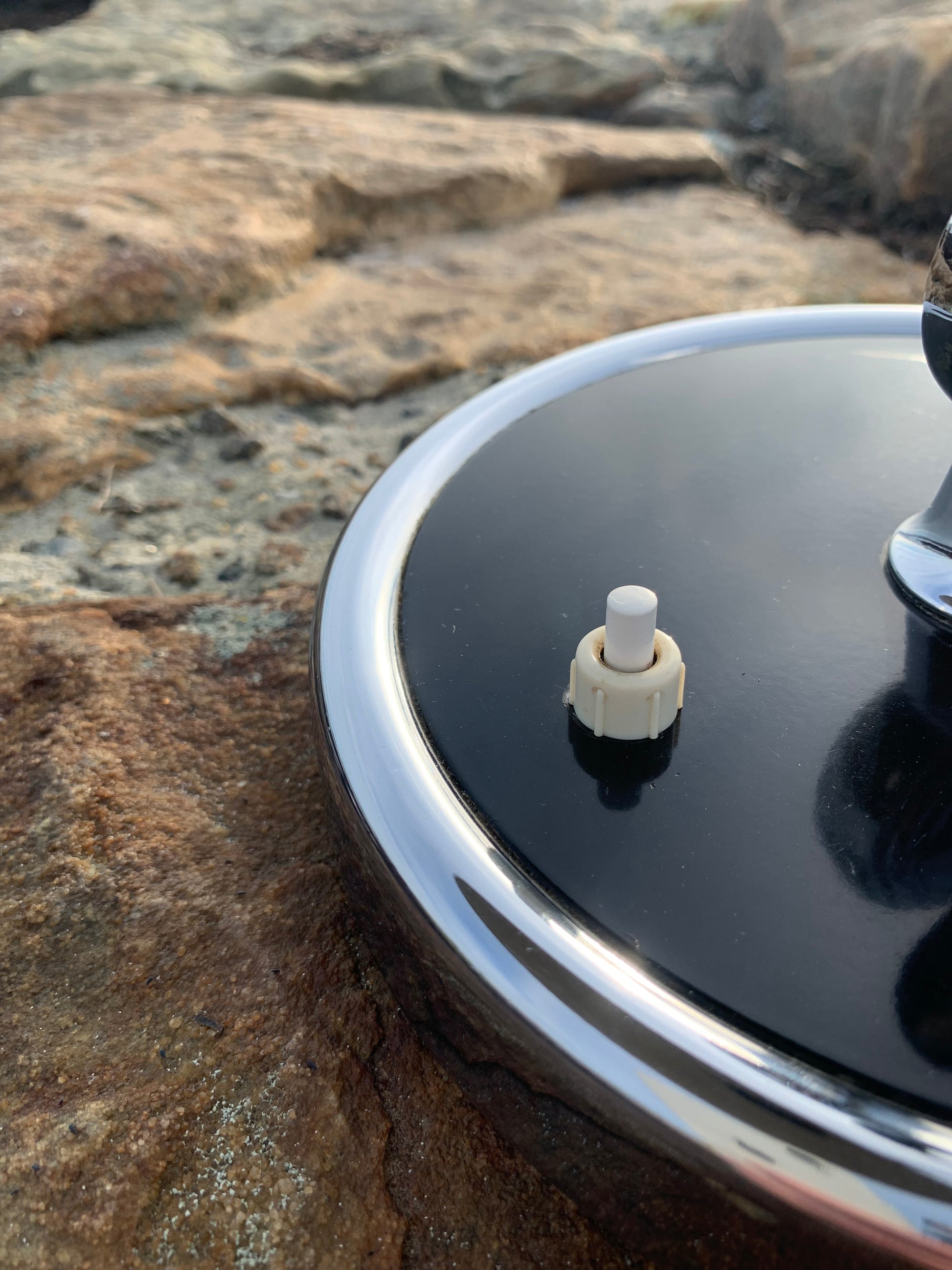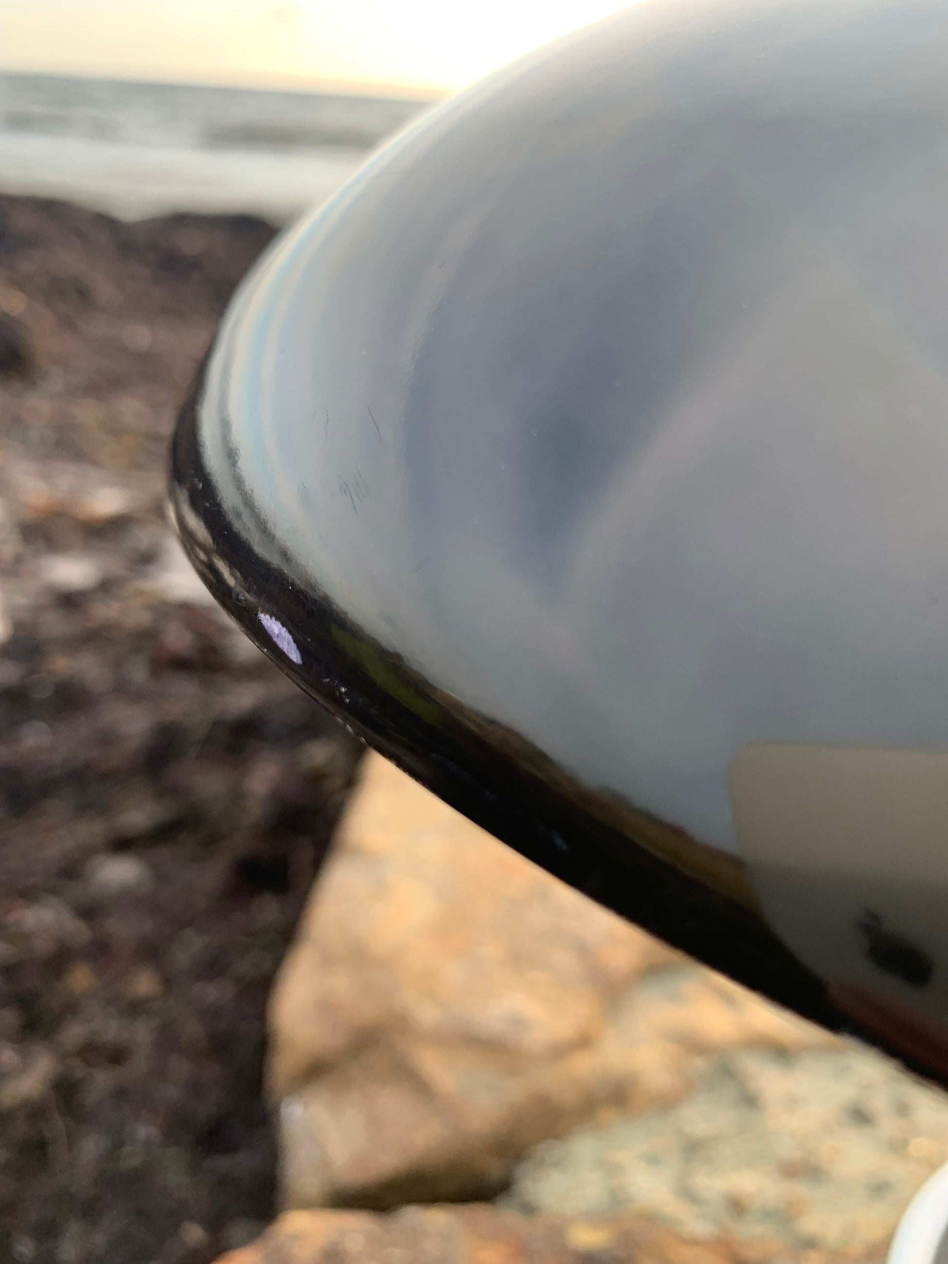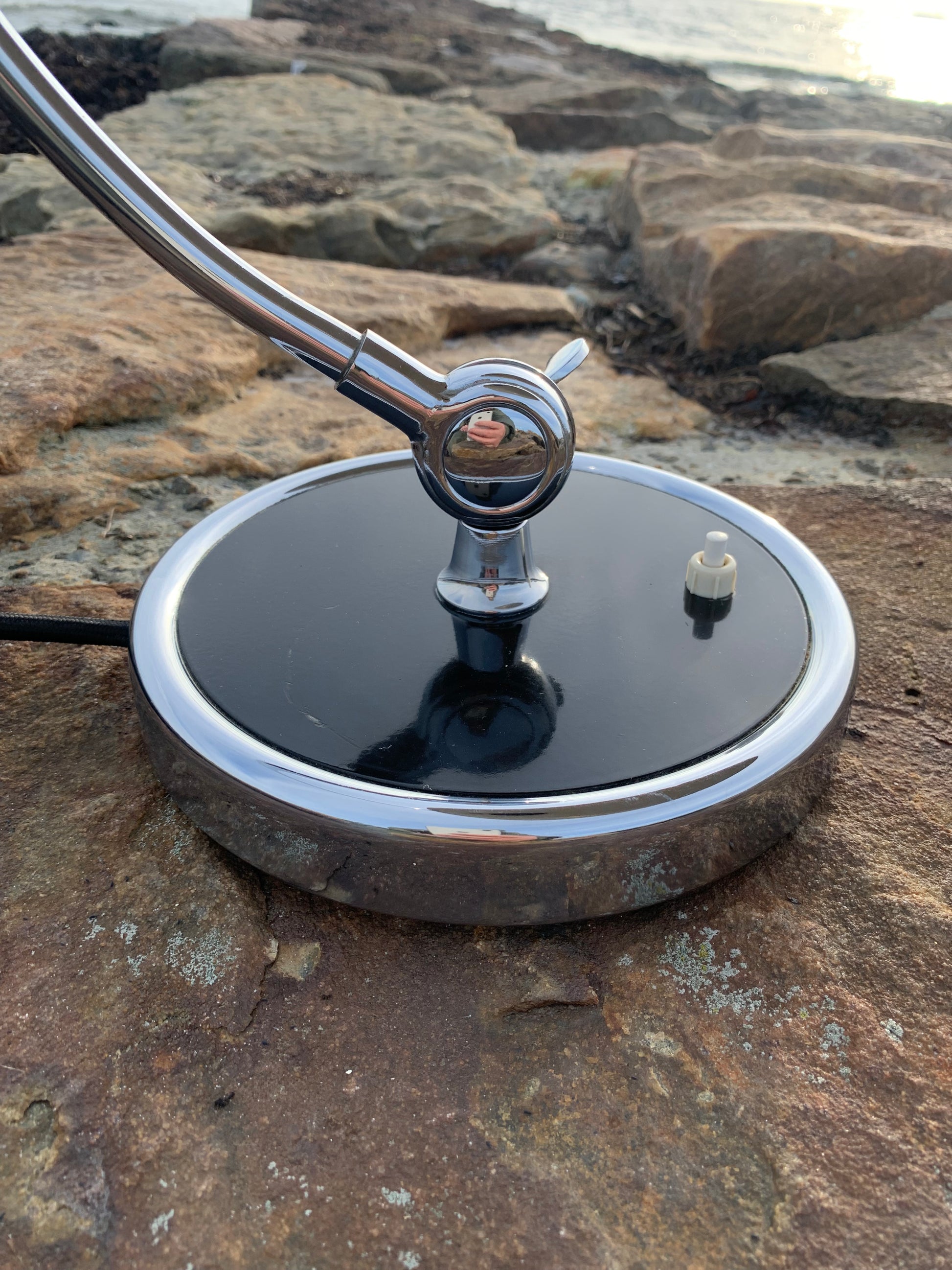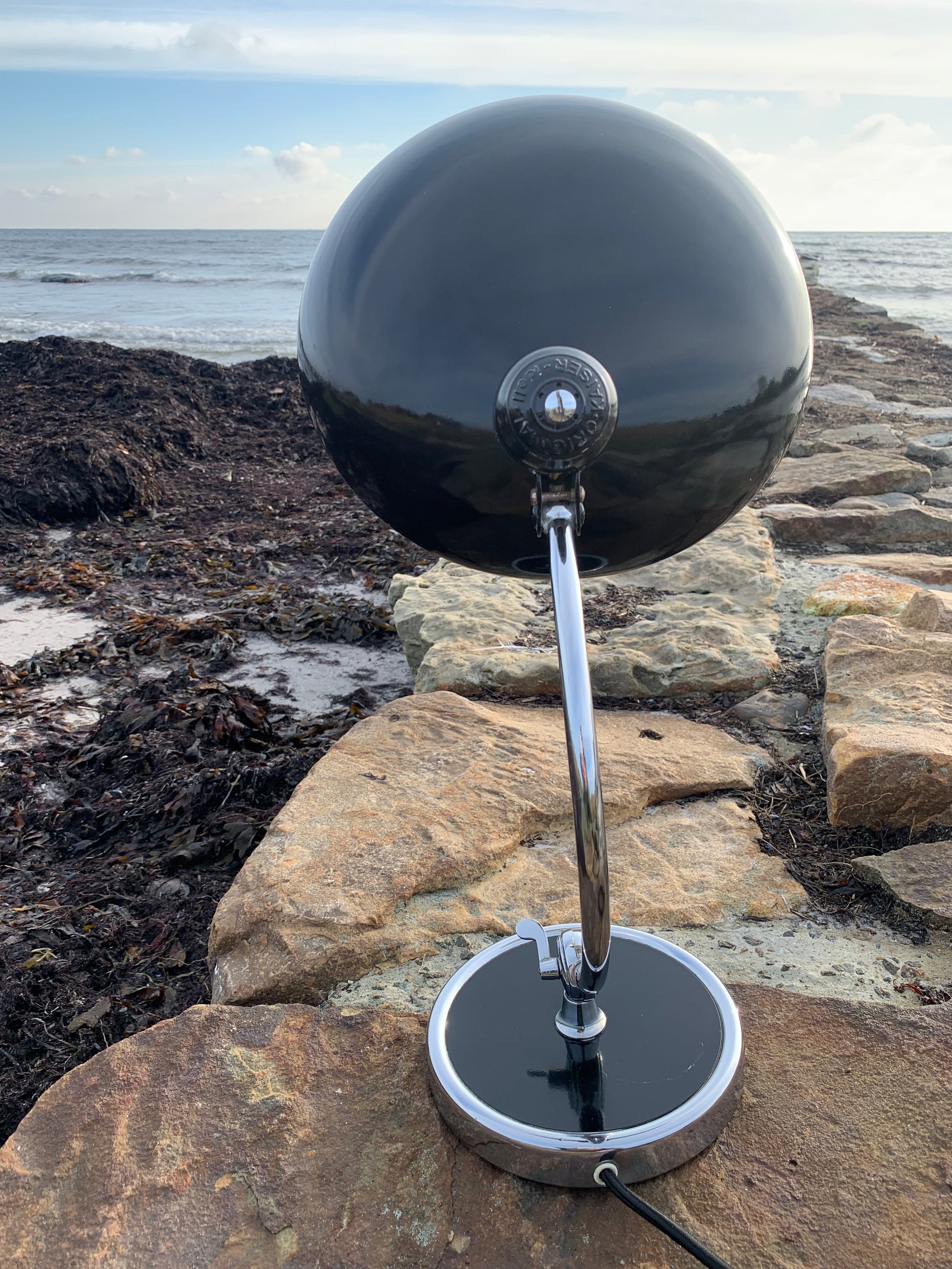 Detta exemplar framstår i originallackering och med nya kablar. Lampan har vissa åldersrelaterade tecken på slitage, vilket en sådan lampa (enligt oss) borde ha. Denna har en repa på basen och lite på kanten av skärmen (se bild) och därför riktar sig lampan till er som ser det perfekta i det ofullkomliga.