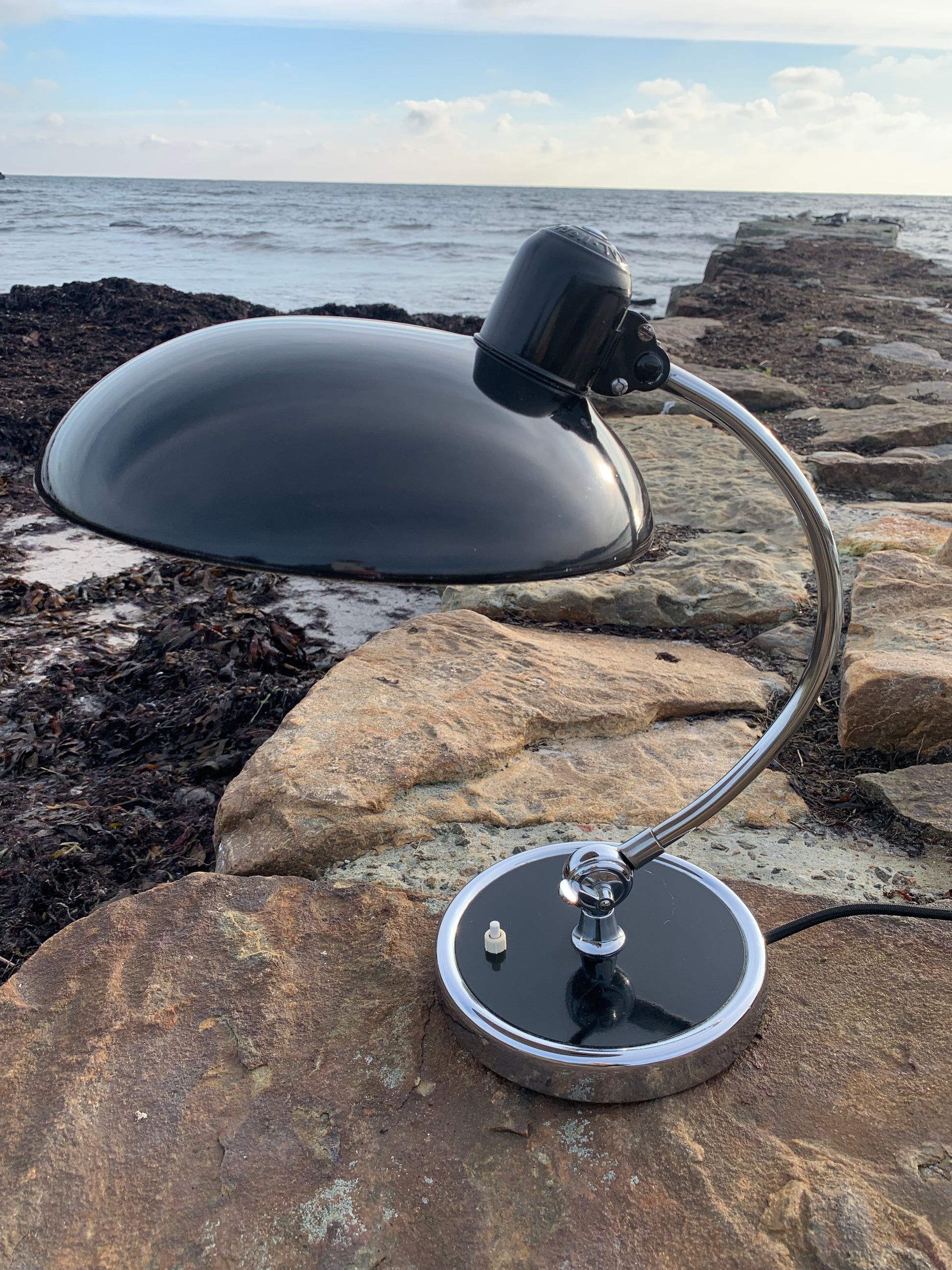 Vacker Kaiser Idell-lampa designad av Christian Dell. Denna vackra lampa är för dig som ser skönheten i en god och tidlös design. De fina gamla Kaiser Idell-lamporna vittnar om god kvalitet och gott hantverk. Dessa vackra gamla vintagelampor har ofta åldersrelaterade tecken på användning, vilket både förstärker äktheten och originaliteten. Dessa tecken både vittnar om och berättar historien om lampans resa genom många decennier.