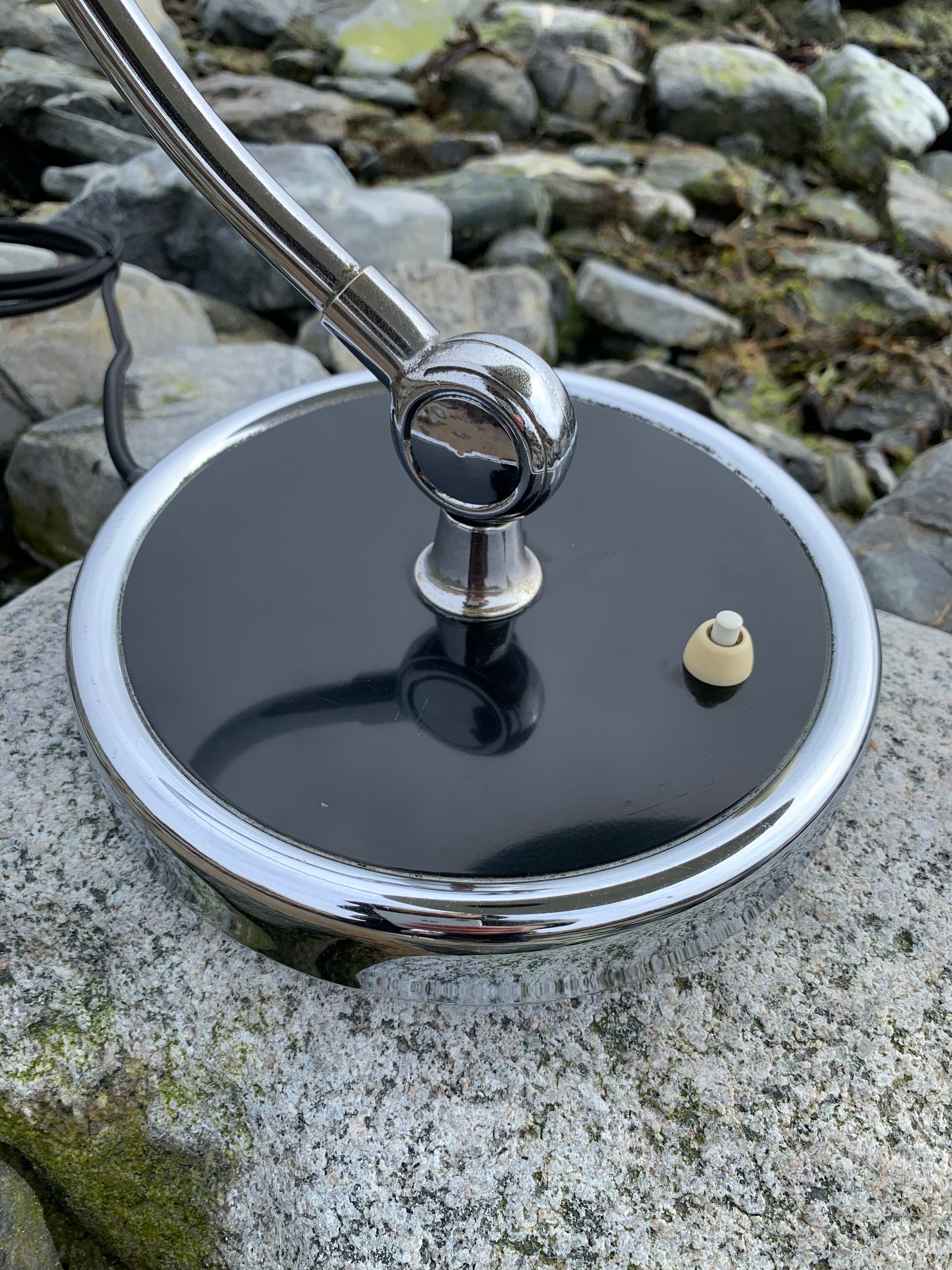 Vacker "President" vintage lampa designad av Christian Dell. Det här exemplaret förekommer i originalversionen och tidens tand har bitit lite på den på det mycket charmiga sättet. Stativet är original och väldigt fint med tanke på åldern. Lampan har kopplats om.