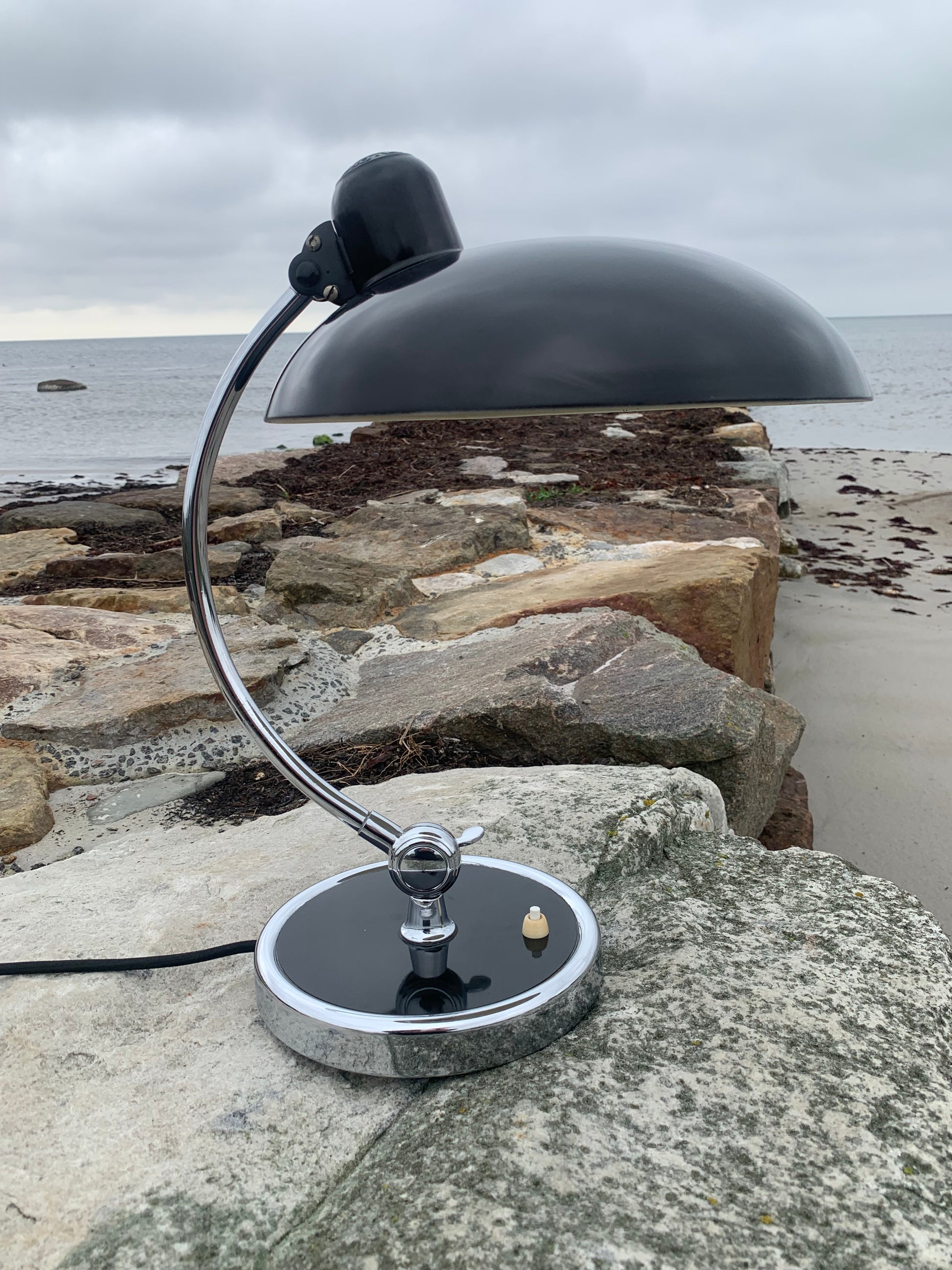 Vacker Kaiser Idell-lampa designad av Christian Dell. Denna vackra lampa är för dig som ser skönheten i en god och tidlös design. De fina gamla Kaiser Idell-lamporna vittnar om god kvalitet och gott hantverk. Dessa vackra gamla vintagelampor har ofta åldersrelaterade tecken på användning, vilket både förstärker äktheten och originaliteten. Dessa tecken både vittnar om och berättar historien om lampans resa genom många decennier.