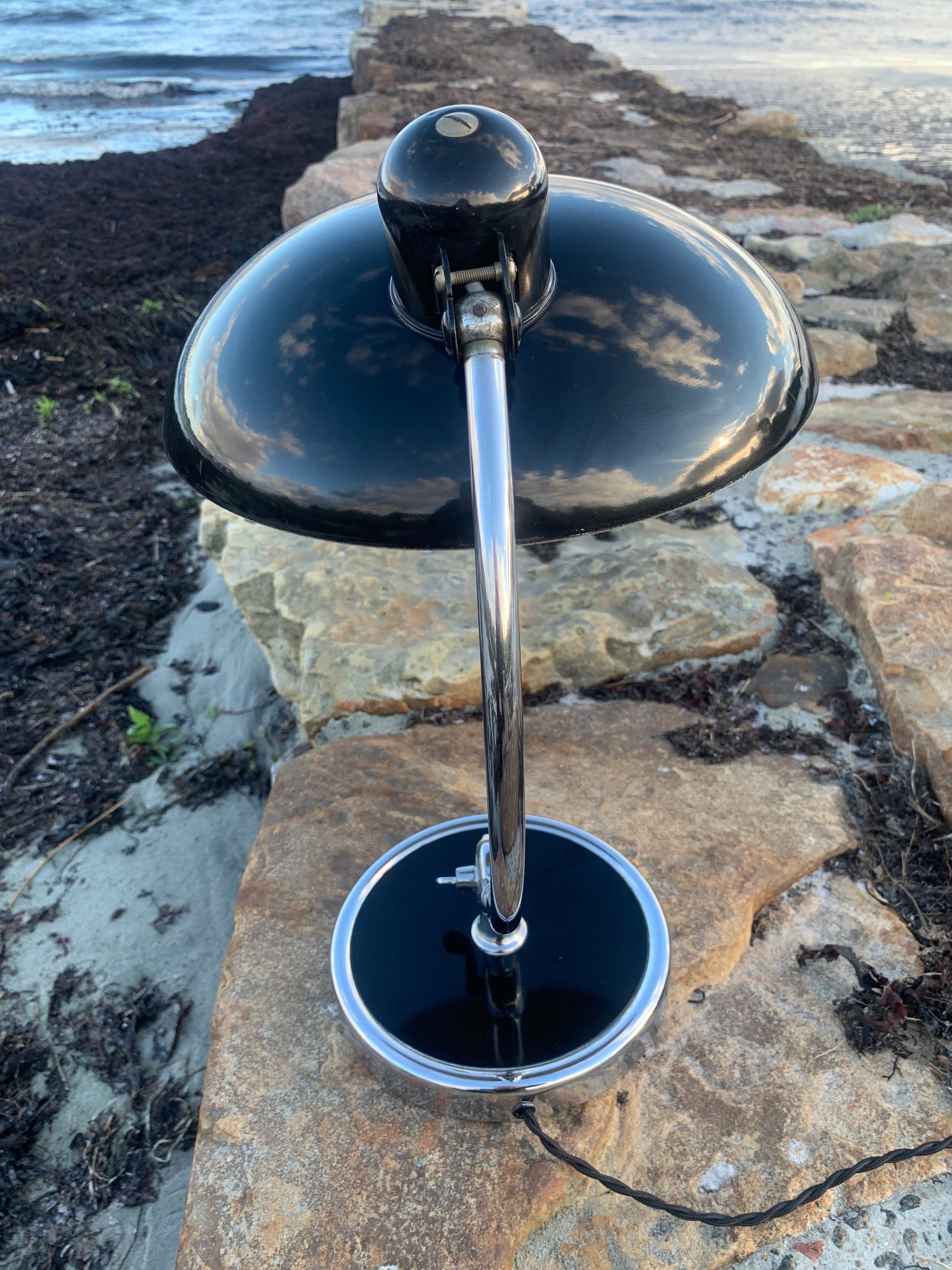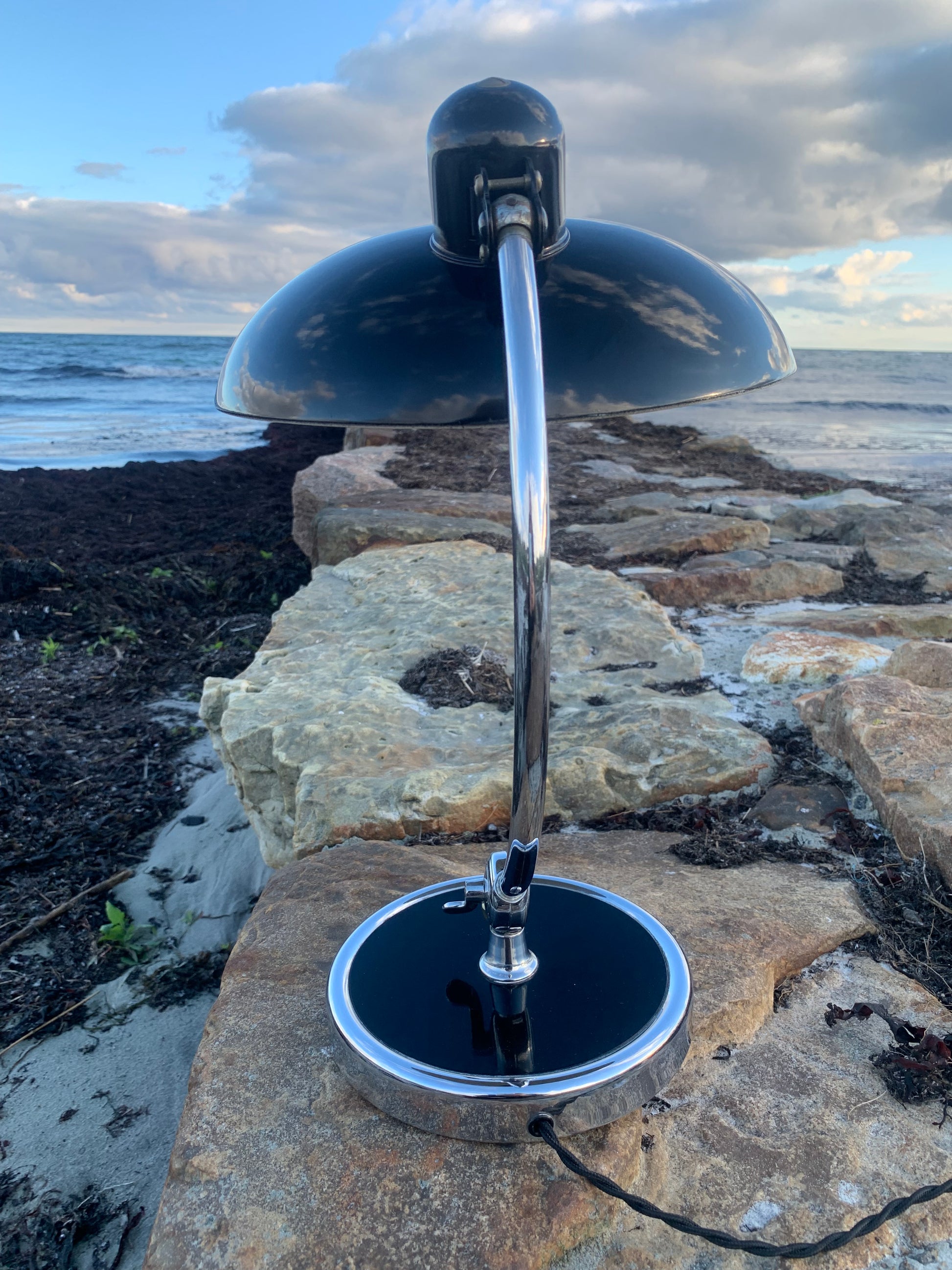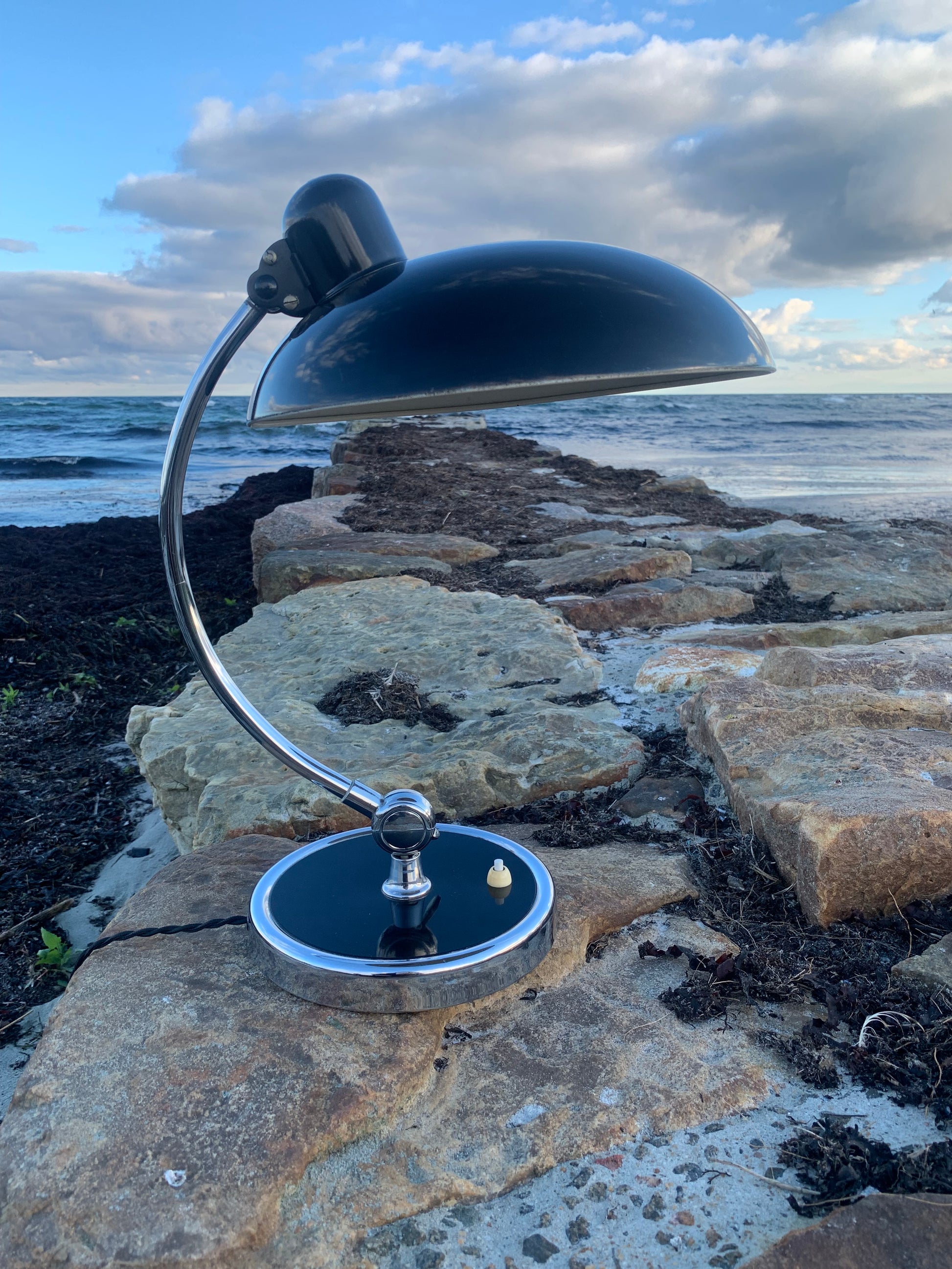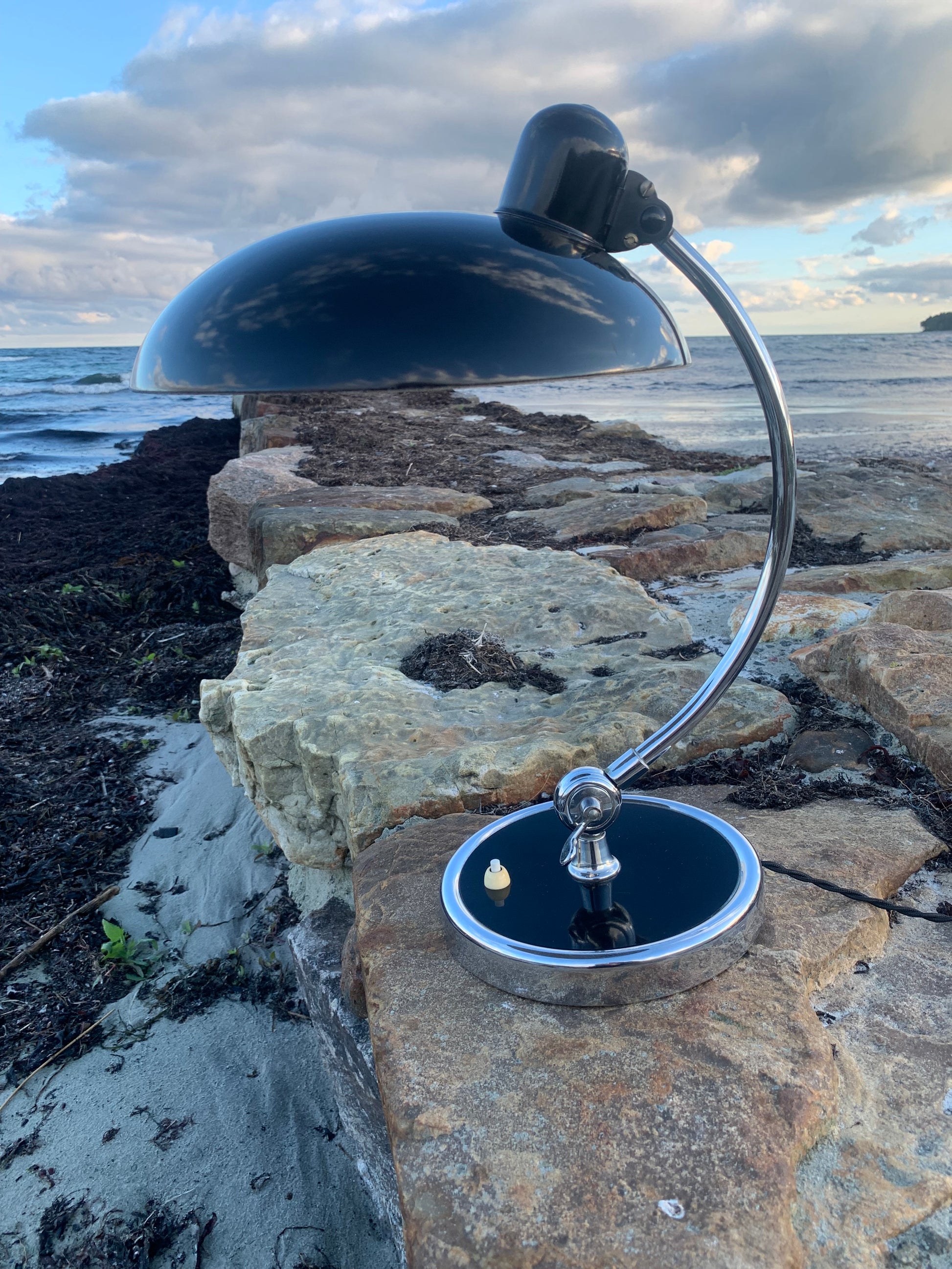 Vacker Kaiser Idell-lampa designad av Christian Dell. Denna vackra lampa är för dig som ser skönheten i en god och tidlös design. De fina gamla Kaiser Idell-lamporna vittnar om god kvalitet och gott hantverk. Dessa vackra gamla vintagelampor har ofta åldersrelaterade tecken på användning, vilket både förstärker äktheten och originaliteten. Dessa tecken både vittnar om och berättar historien om lampans resa genom många decennier.