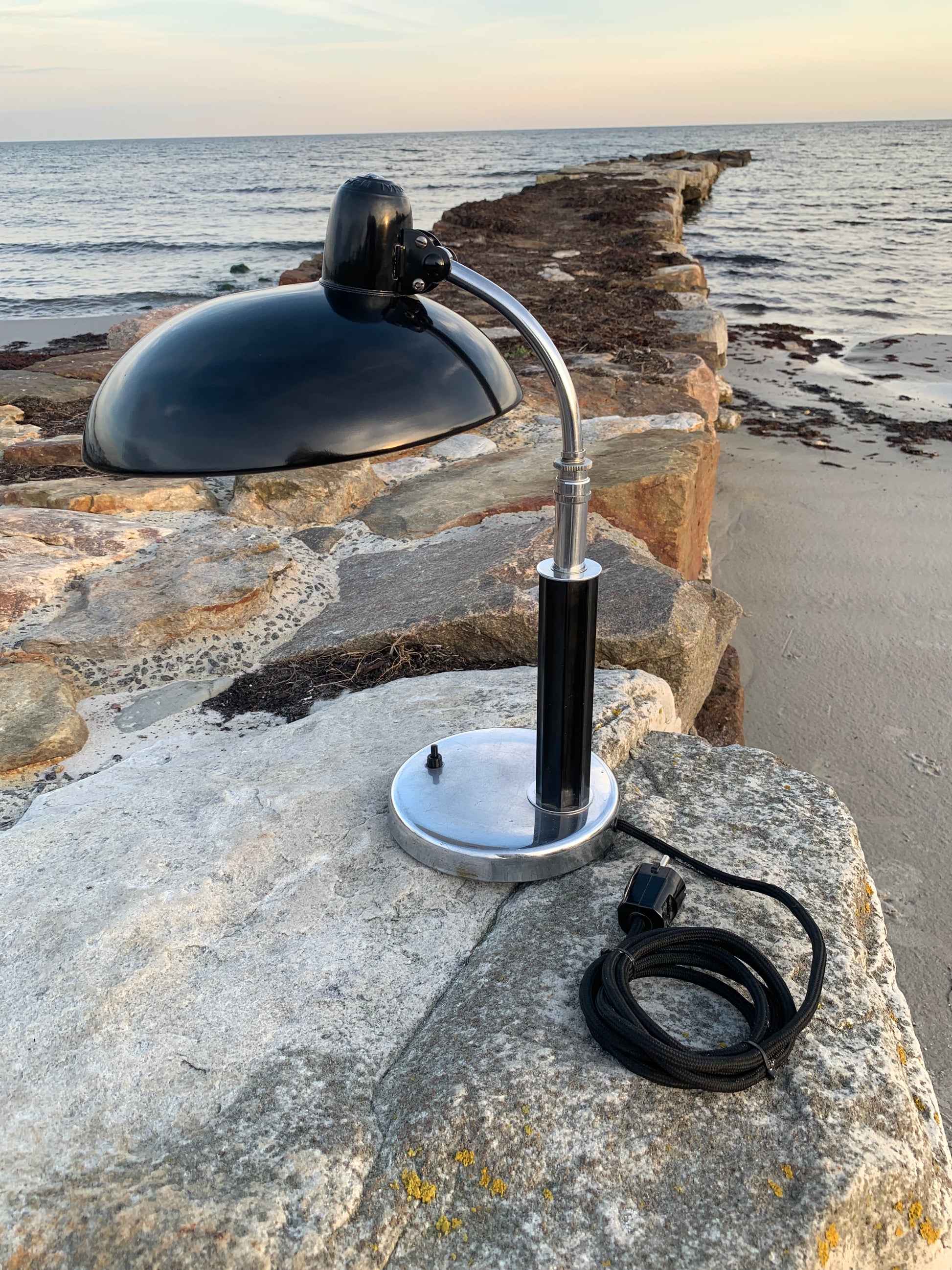Vacker och sällsynt Kaiser Idell-lampa designad av Christian Dell. Denna vackra lampa är för dig som ser skönhet i god och tidlös design. De fina gamla Kaiser Idell-lamporna vittnar om god kvalitet och gott hantverk. Dessa vackra gamla vintagelampor har ofta mindre åldersrelaterade tecken på slitage, vilket både förstärker äktheten och originaliteten. Dessa tecken både vittnar om och berättar historien om lampans resa genom flera decennier.