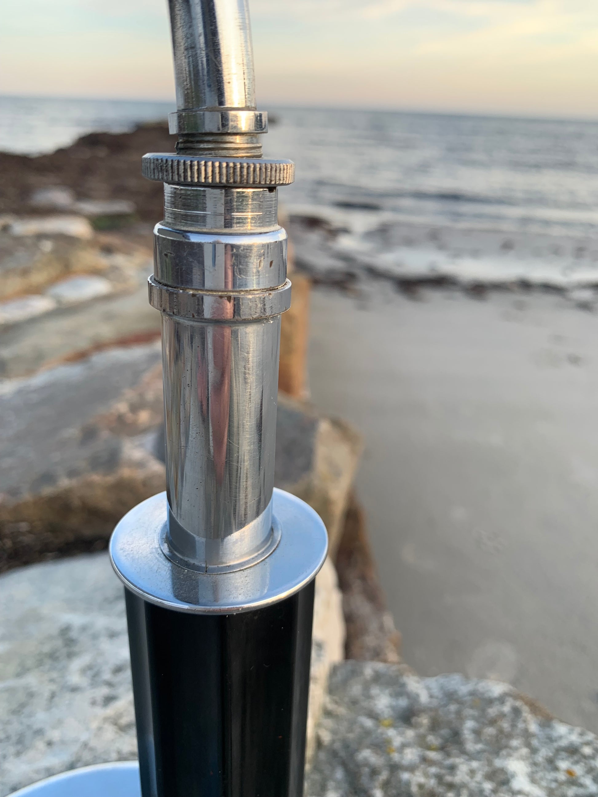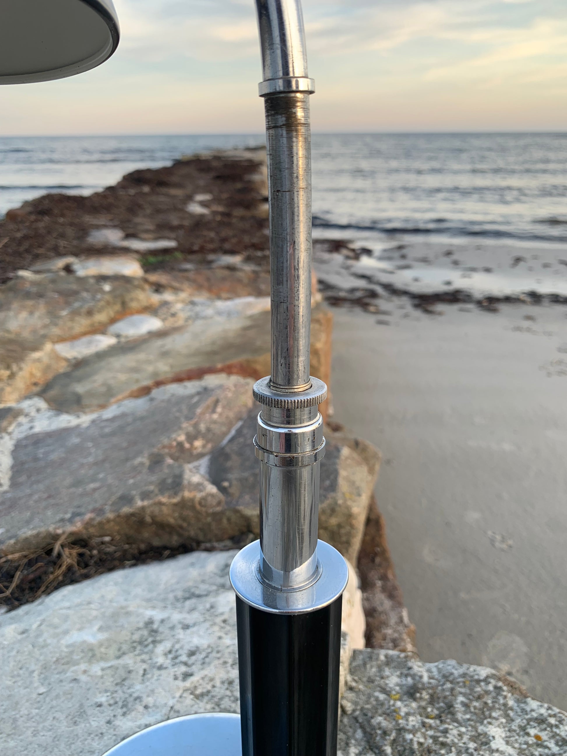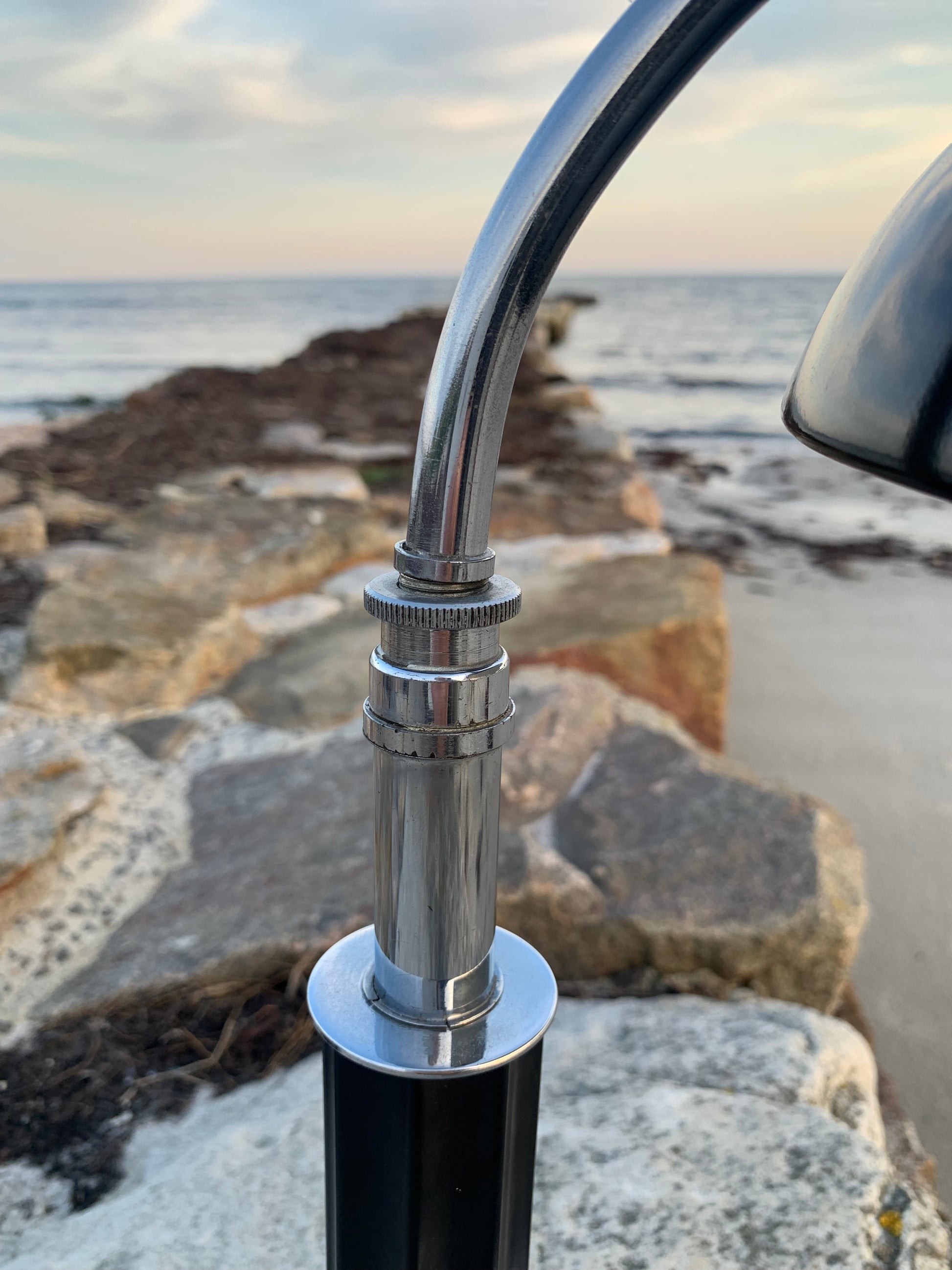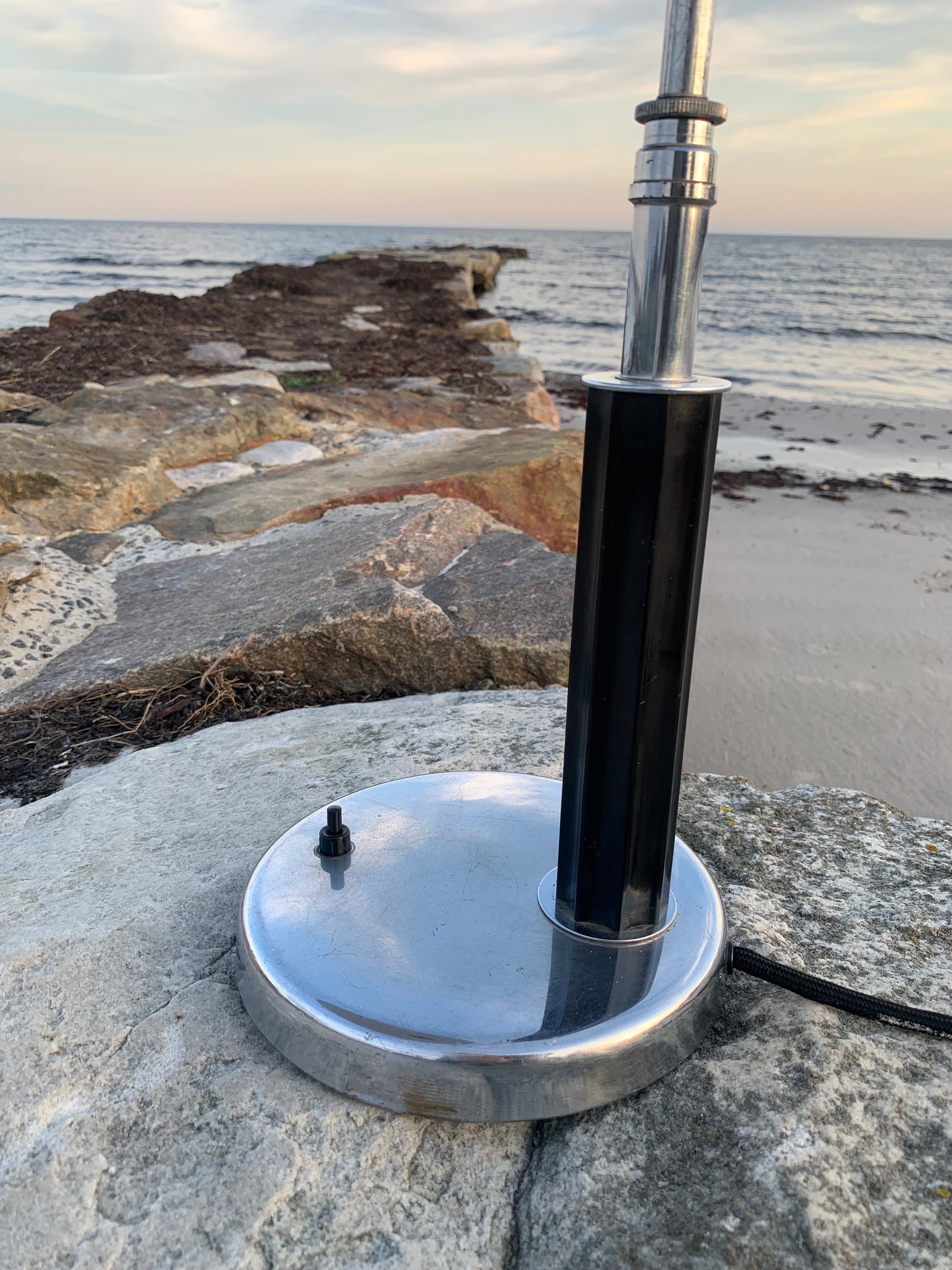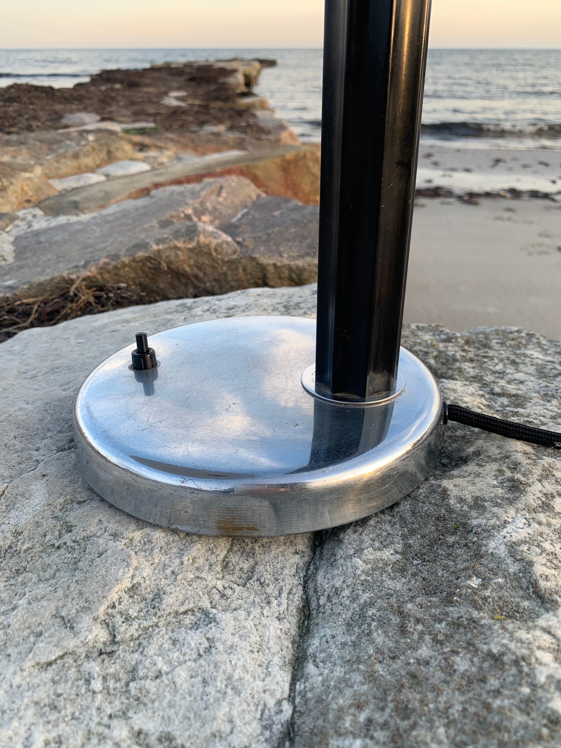 Denna lampa är troligen från mitten av 1930-talet och är ganska unik. Den nedre delen av "armen" är tillverkad av bakelit. Lampan är också höj- och sänkbar. Lampan har vissa åldersrelaterade bruksspår, vilket en sådan lampa (enligt oss) borde ha.