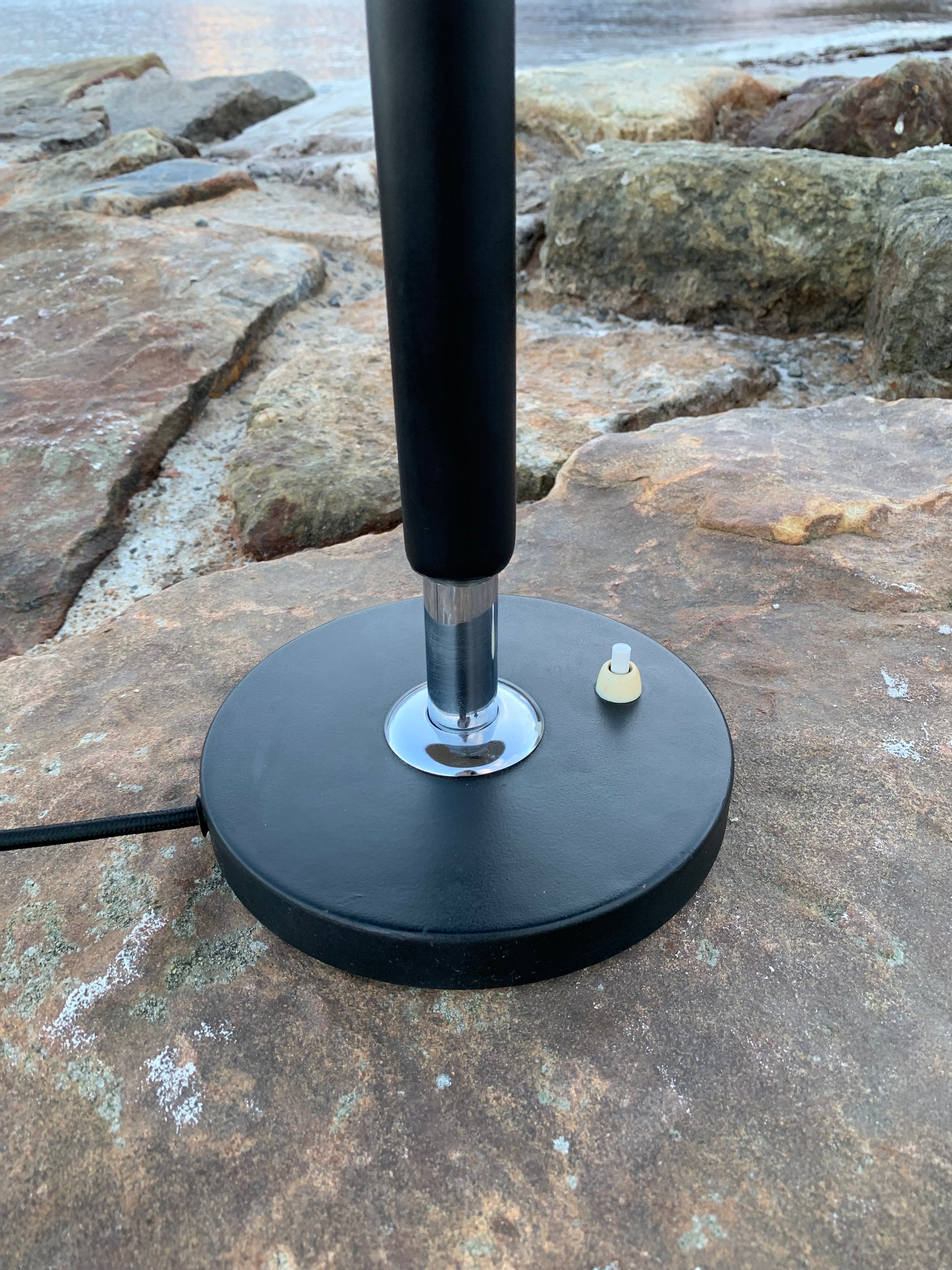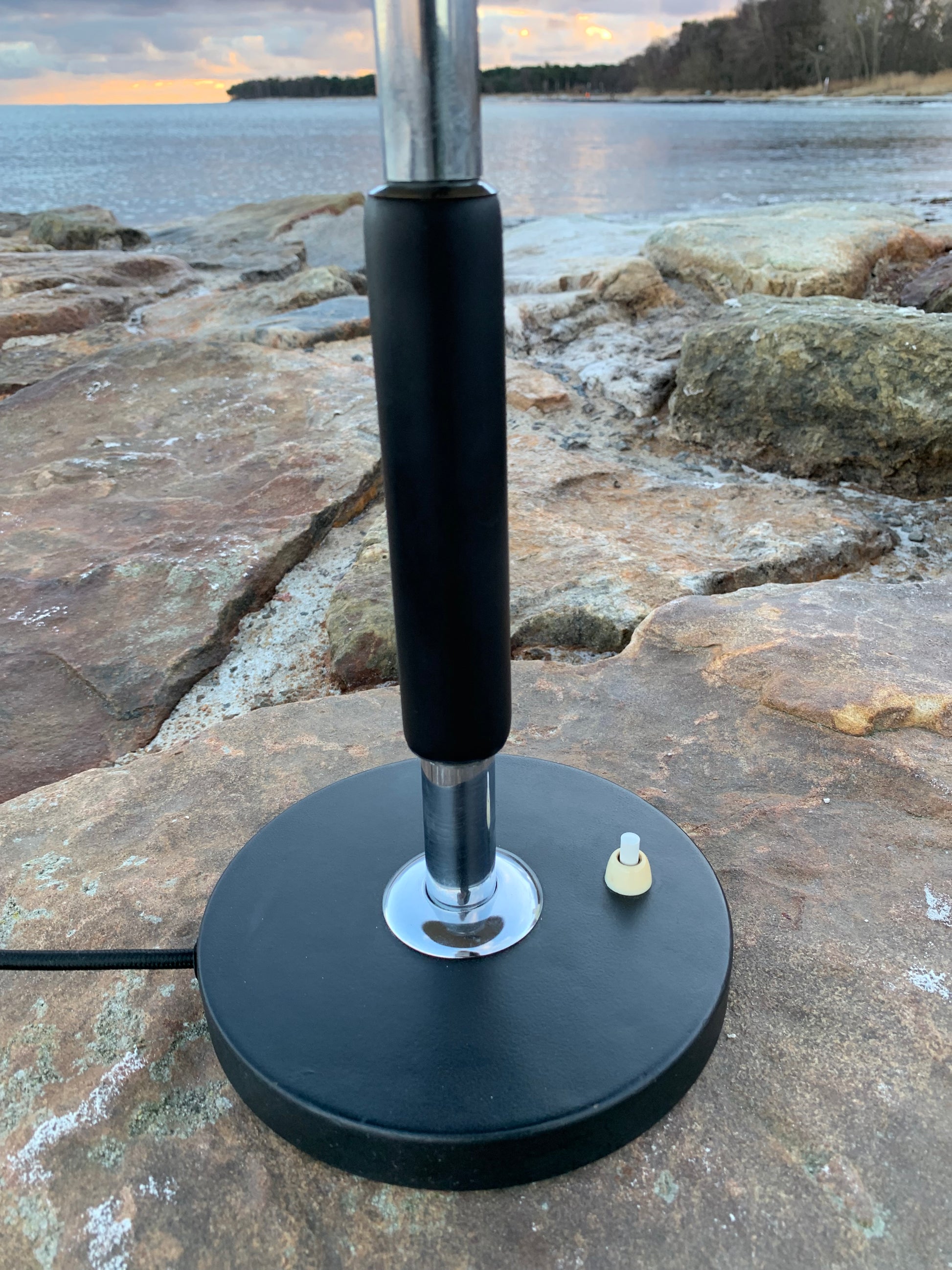 Detta exemplar från ca. 1930 är omsorgsfullt restaurerad och framstår med ny lackering och nya ledningar. Trots restaureringen har vintagelampan behållit sin charm. Det syns ändå att lampan har en del charmiga bruksspår, vilket en sådan lampa (enligt oss) nästan borde ha.