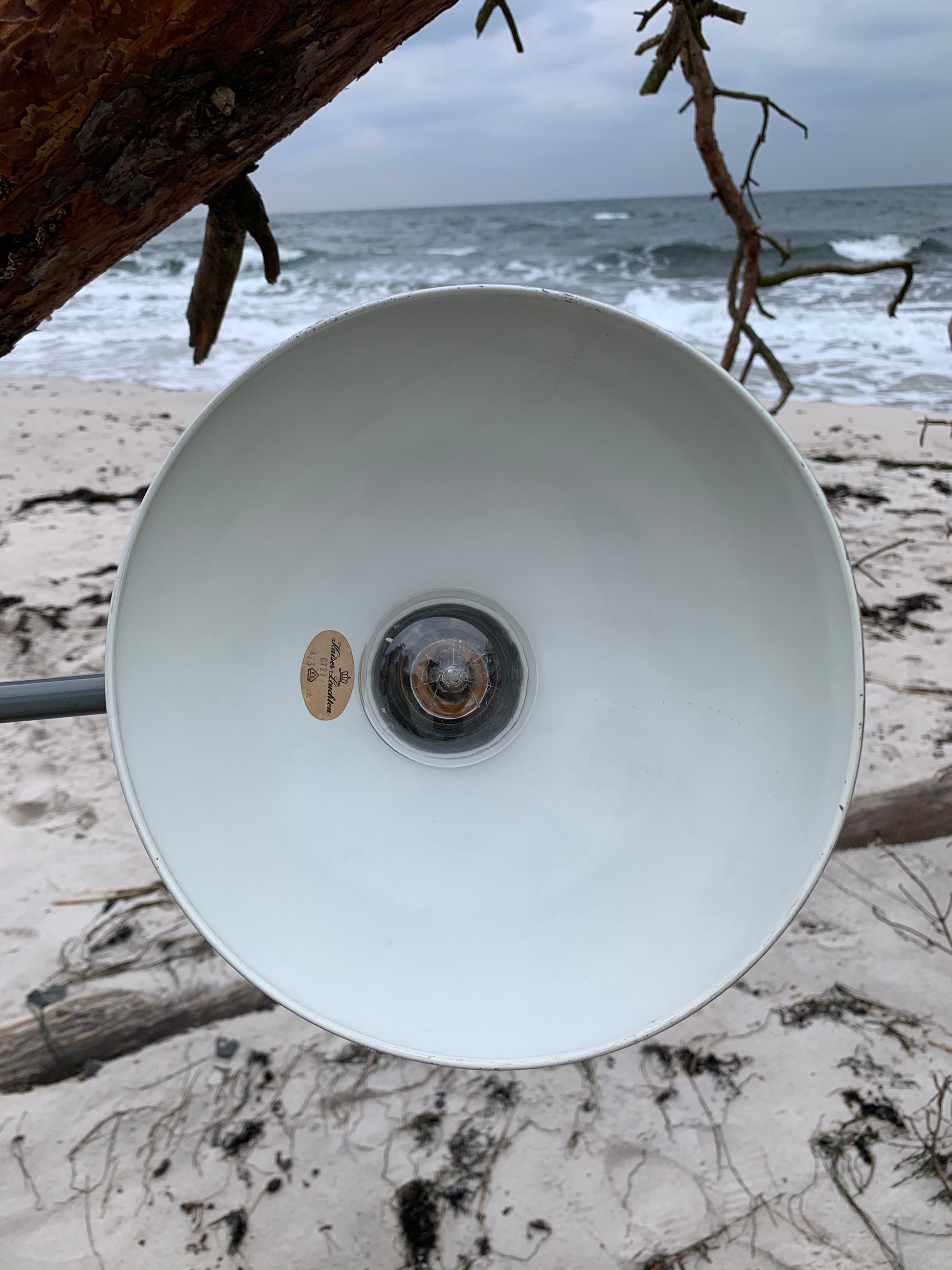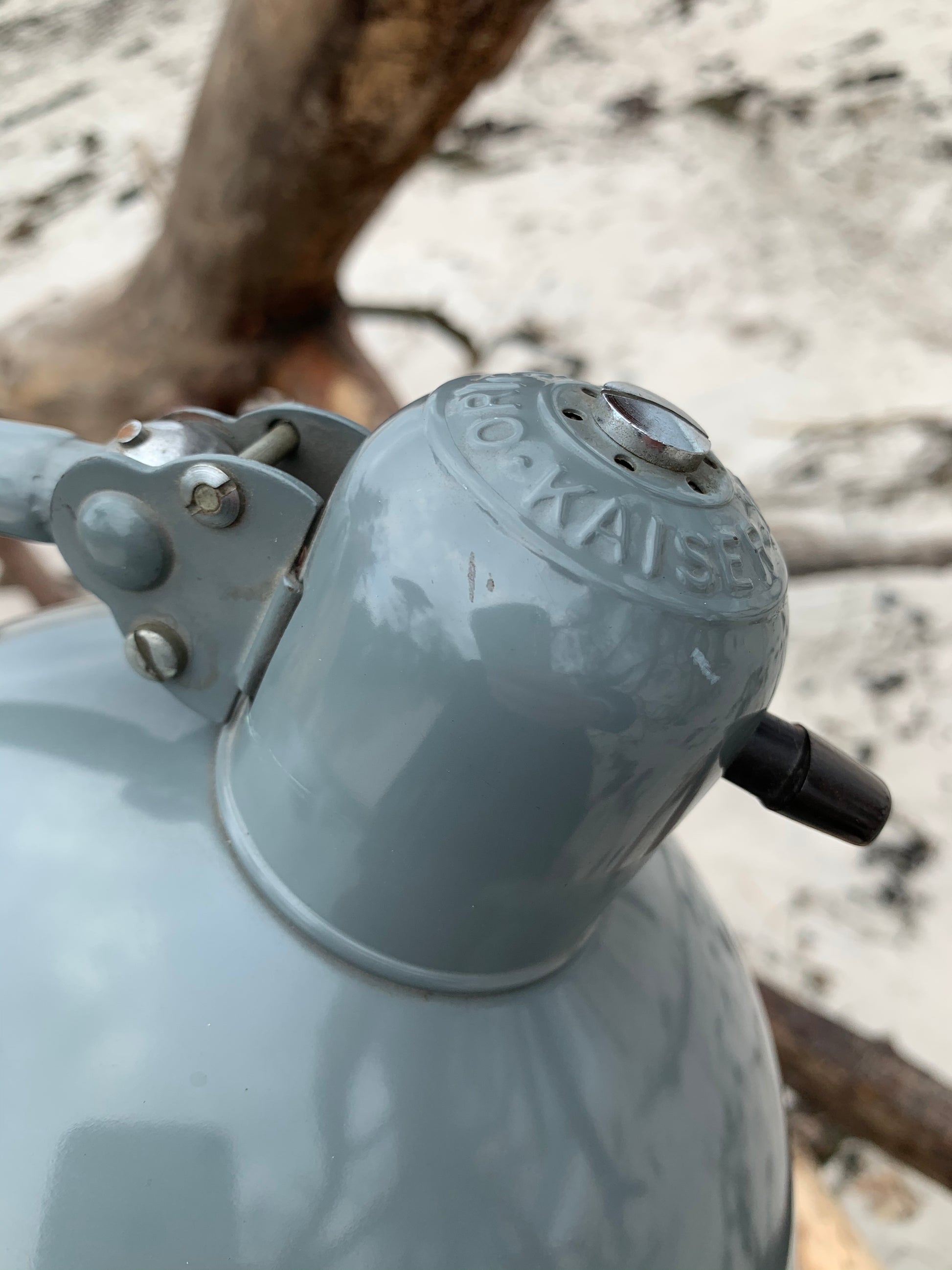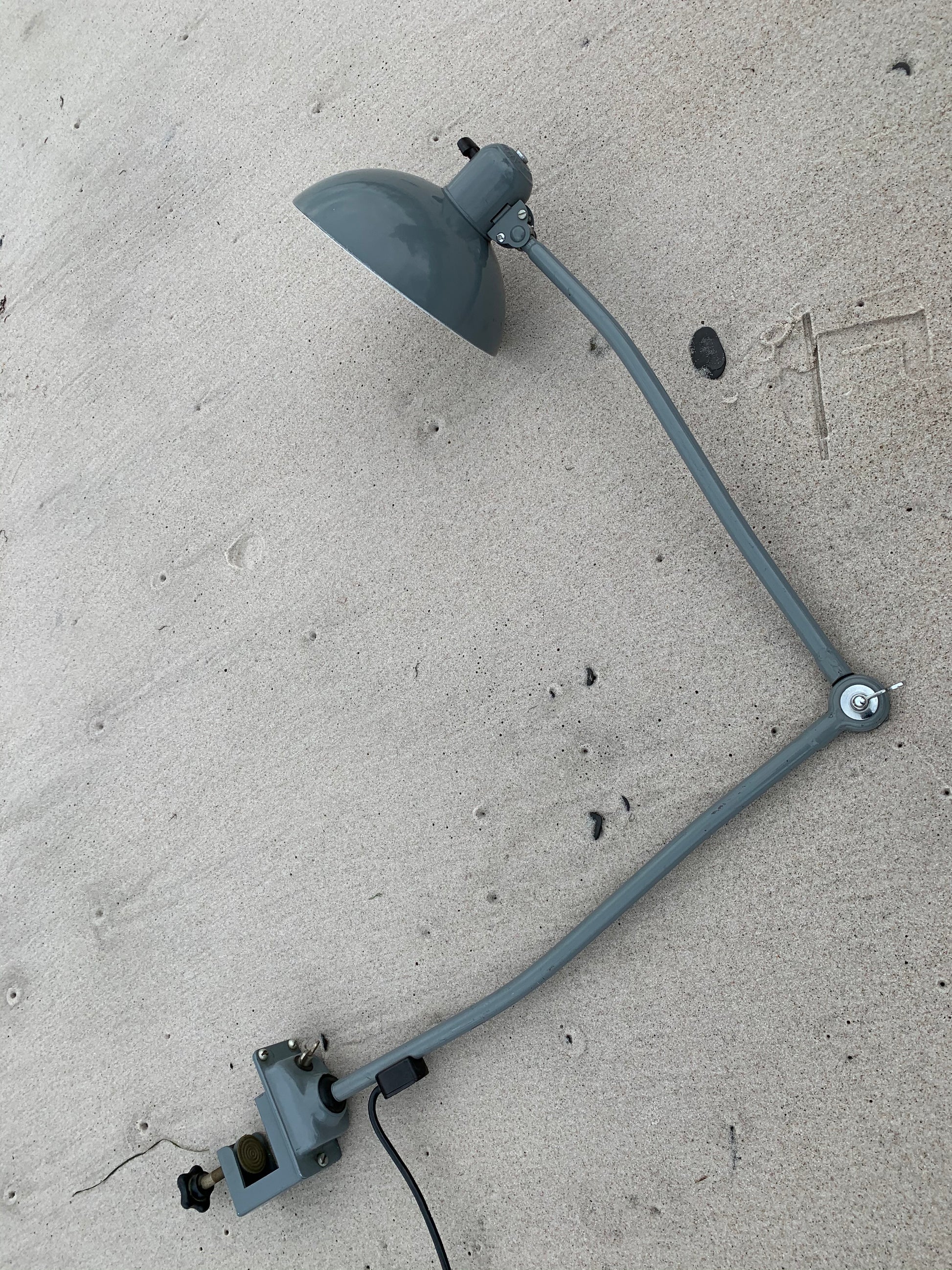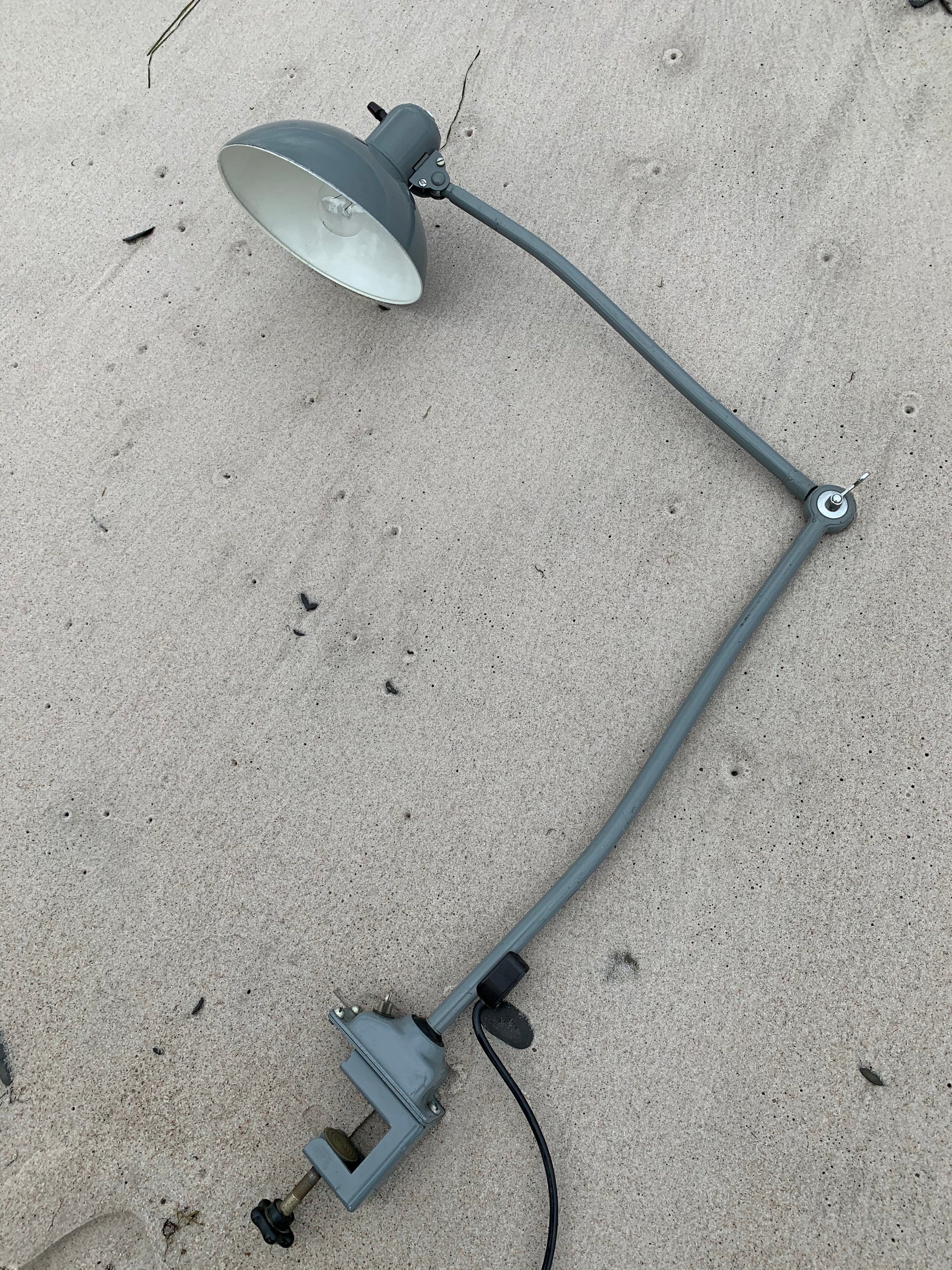 Vacker arkitektlampa med bordsbeslag från Kaiser Idell. Denna modell ses inte särskilt ofta. Den har många vackra detaljer - se bara de vackra och lätt svängda armarna och de läckra bordsbeslagen.