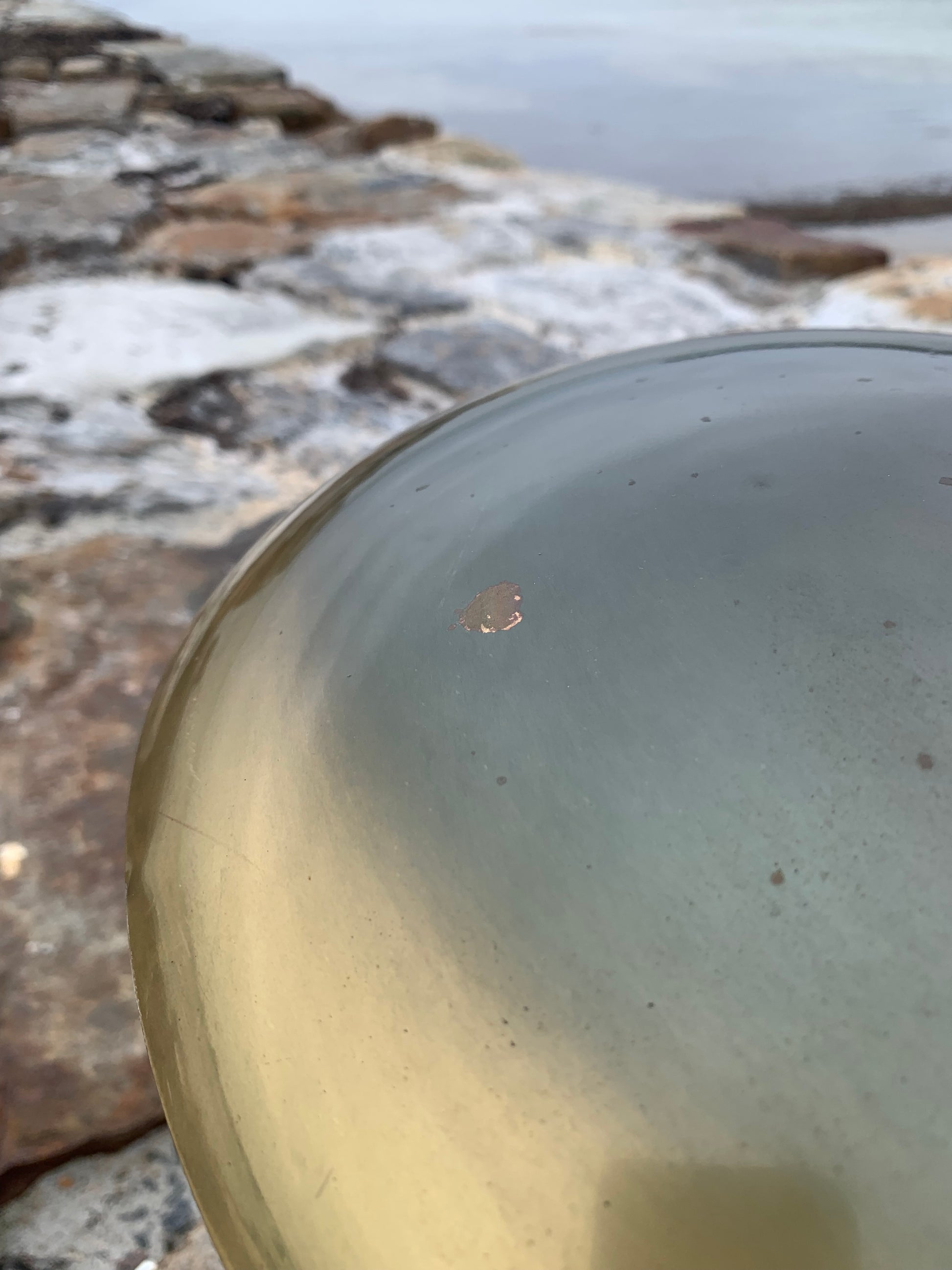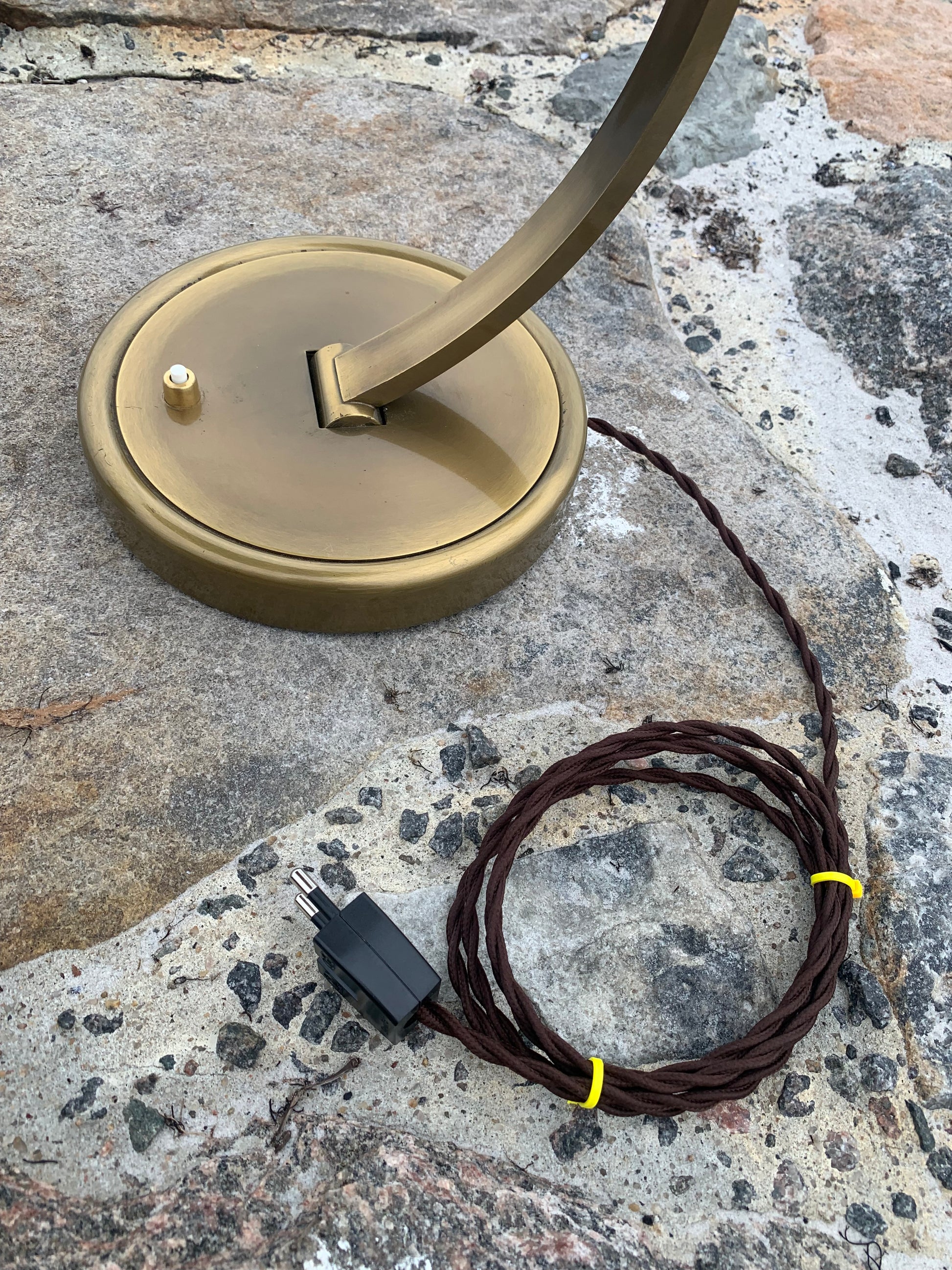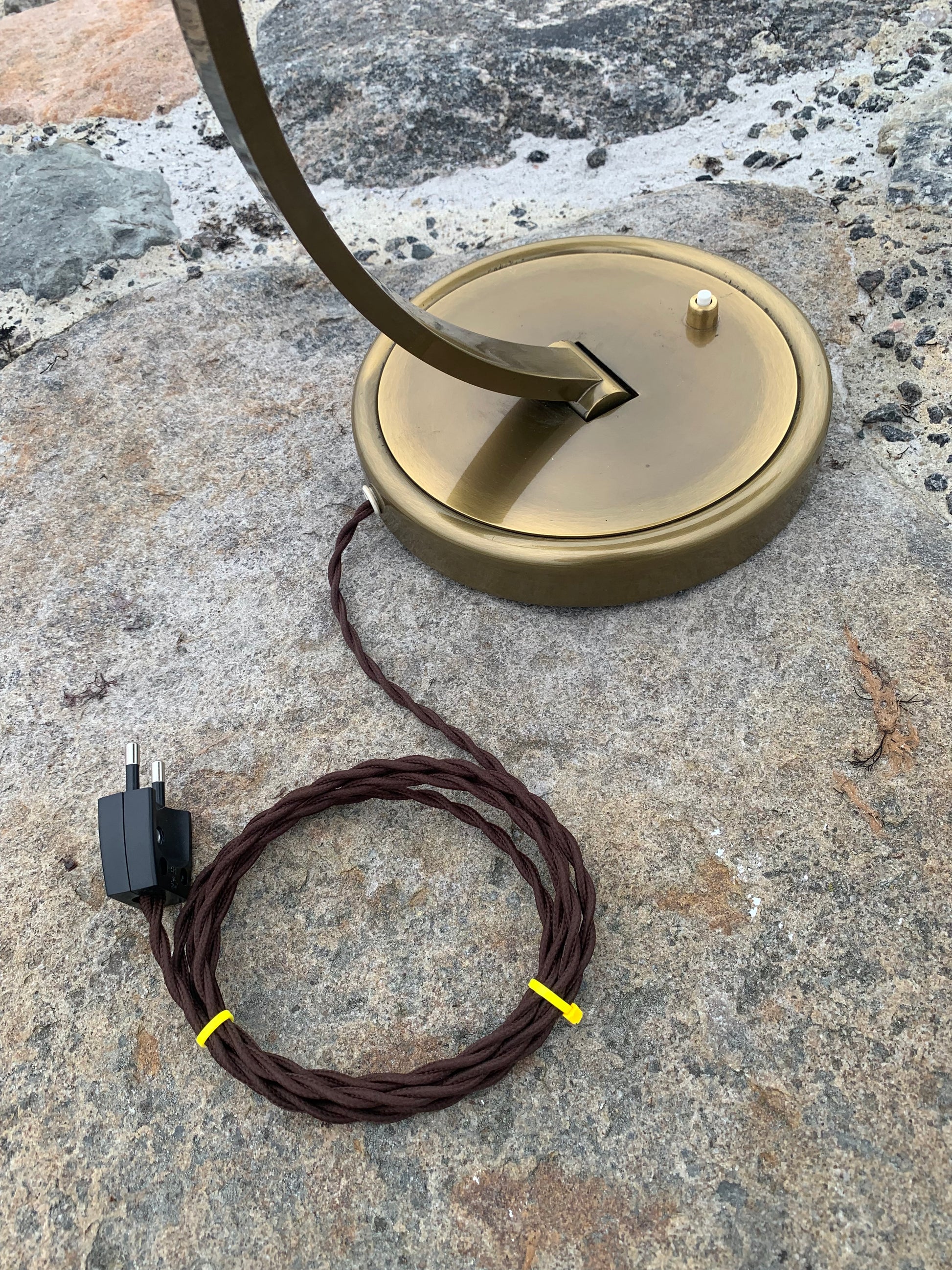 Denna kopia visas med originalytan och nya kablar. Lampan har vissa åldersrelaterade bruksspår, vilket en sådan lampa (enligt oss) borde ha. På ena sidan av skärmen finns en liten "fläck" och även några "fräknar" (se bild)