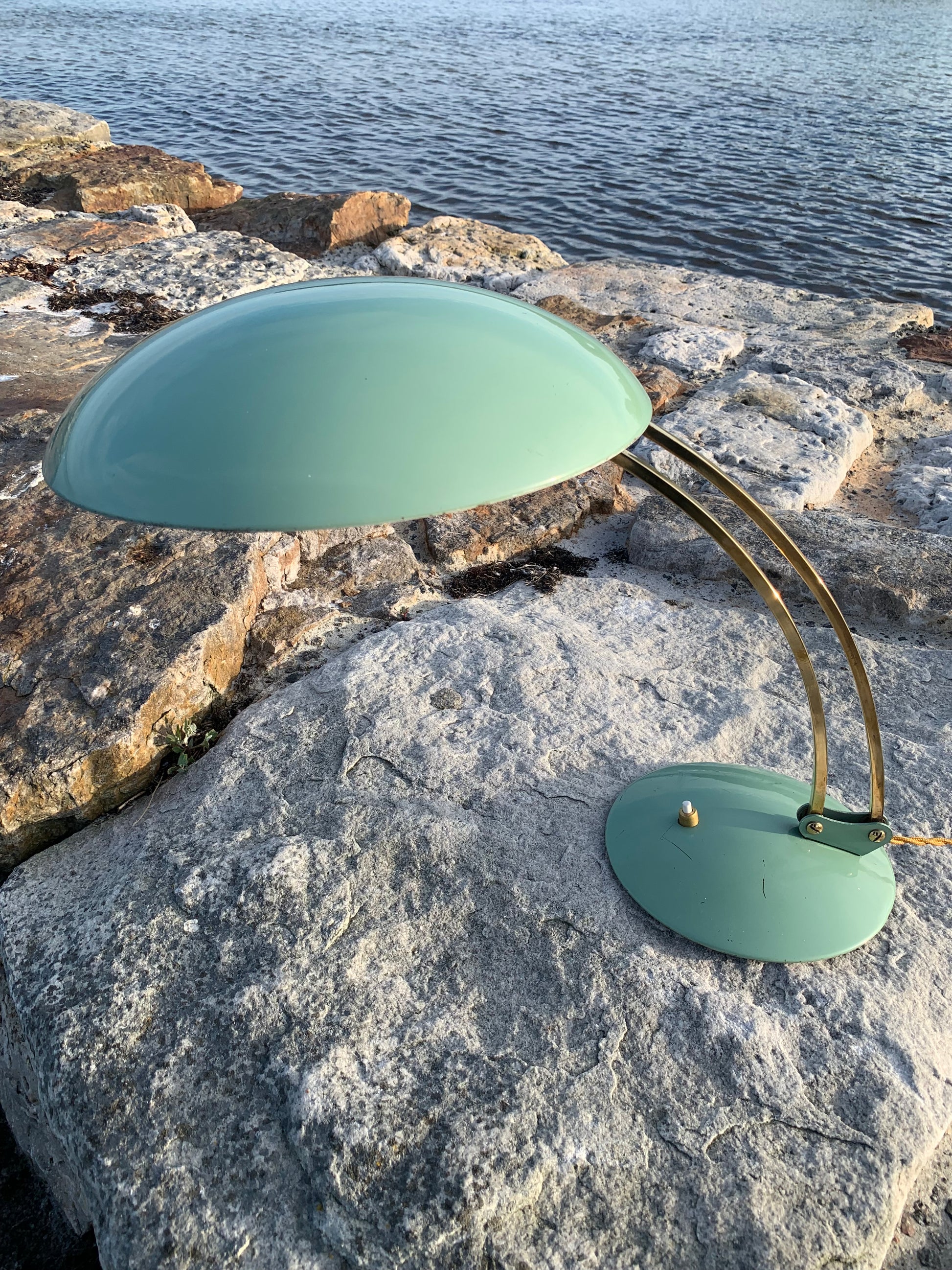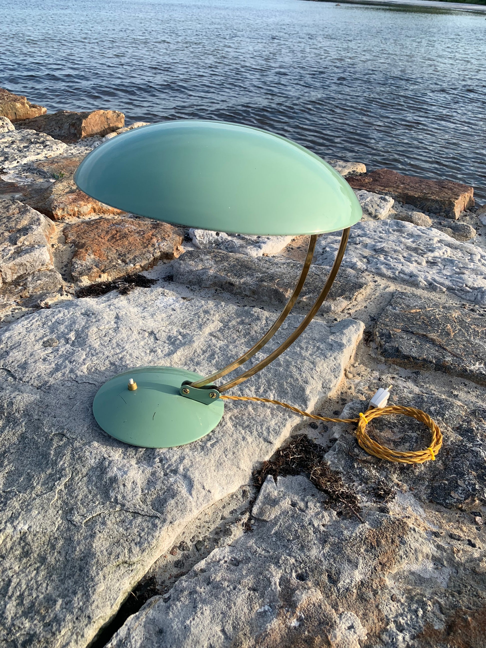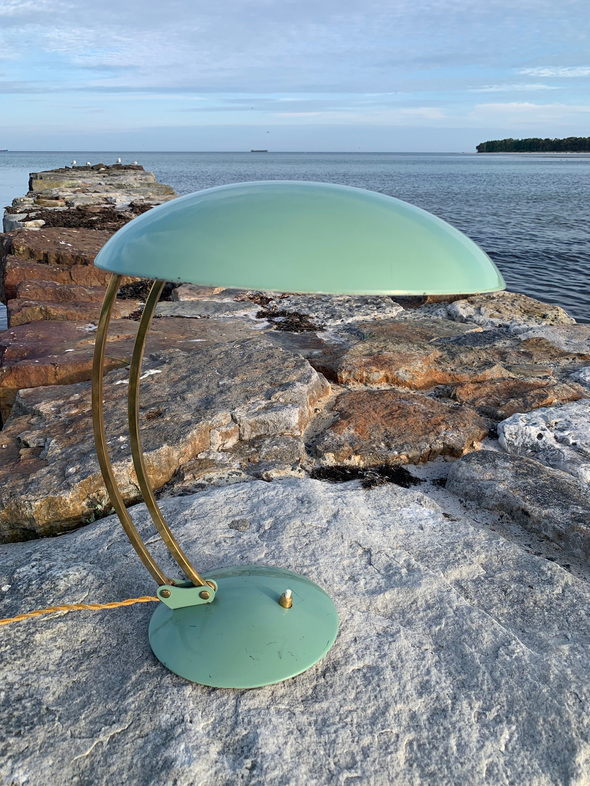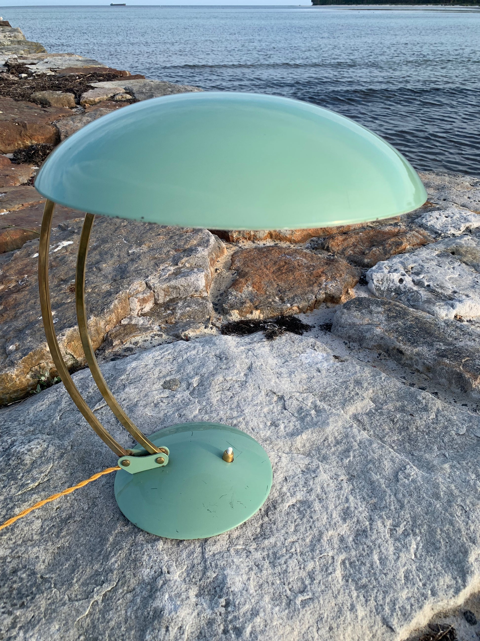 Vacker Kaiser Idell-lampa designad av Christian Dell. Denna vackra lampa är för dig som ser skönheten i en god och tidlös design. De fina gamla Kaiser Idell-lamporna är ett bevis på god kvalitet och gott hantverk. Dessa vackra gamla vintagelampor har ofta vissa åldersrelaterade tecken på användning, vilket både förstärker äktheten och originaliteten. Dessa tecken både vittnar om och berättar historien om lampans resa genom flera decennier.